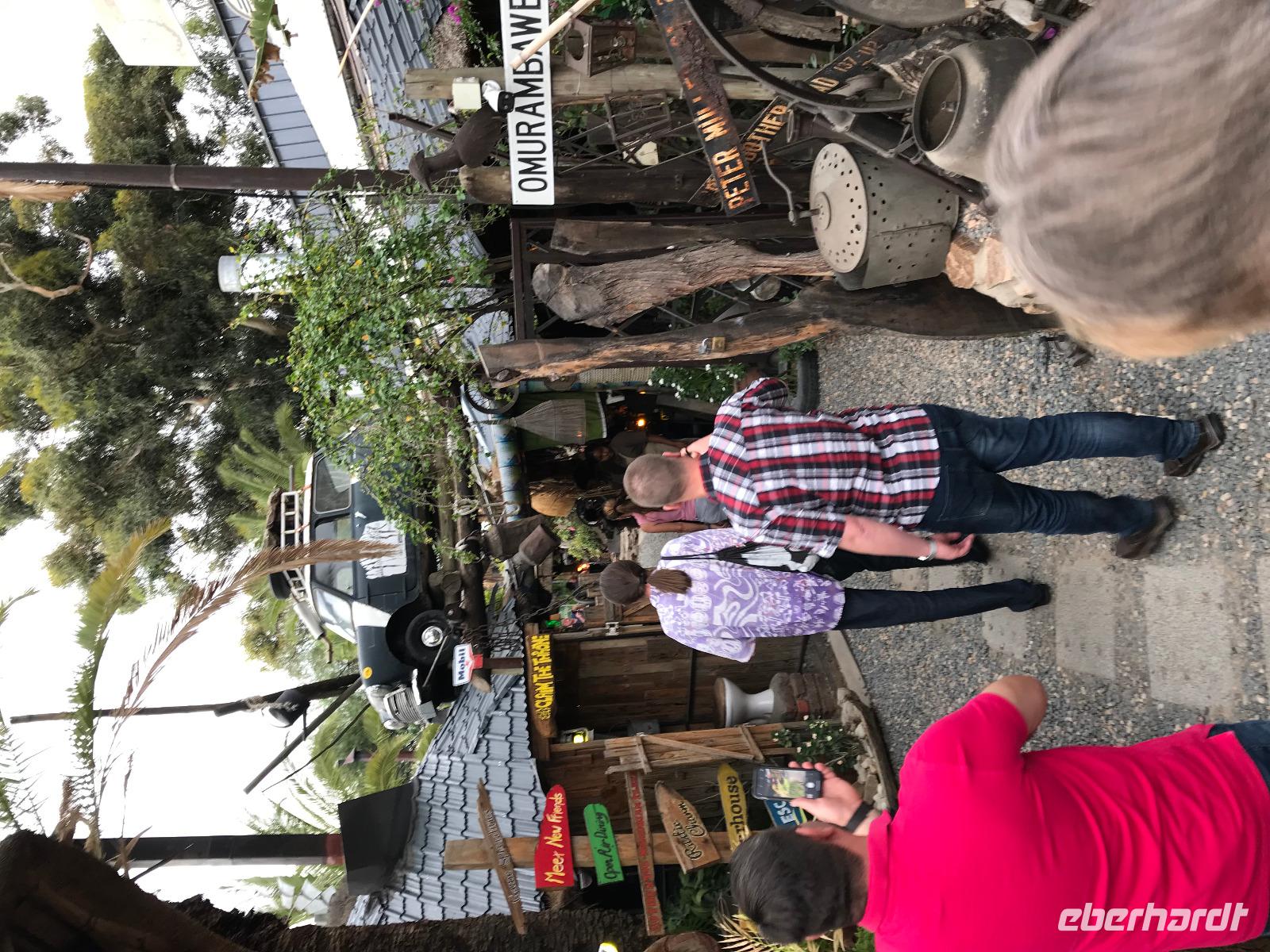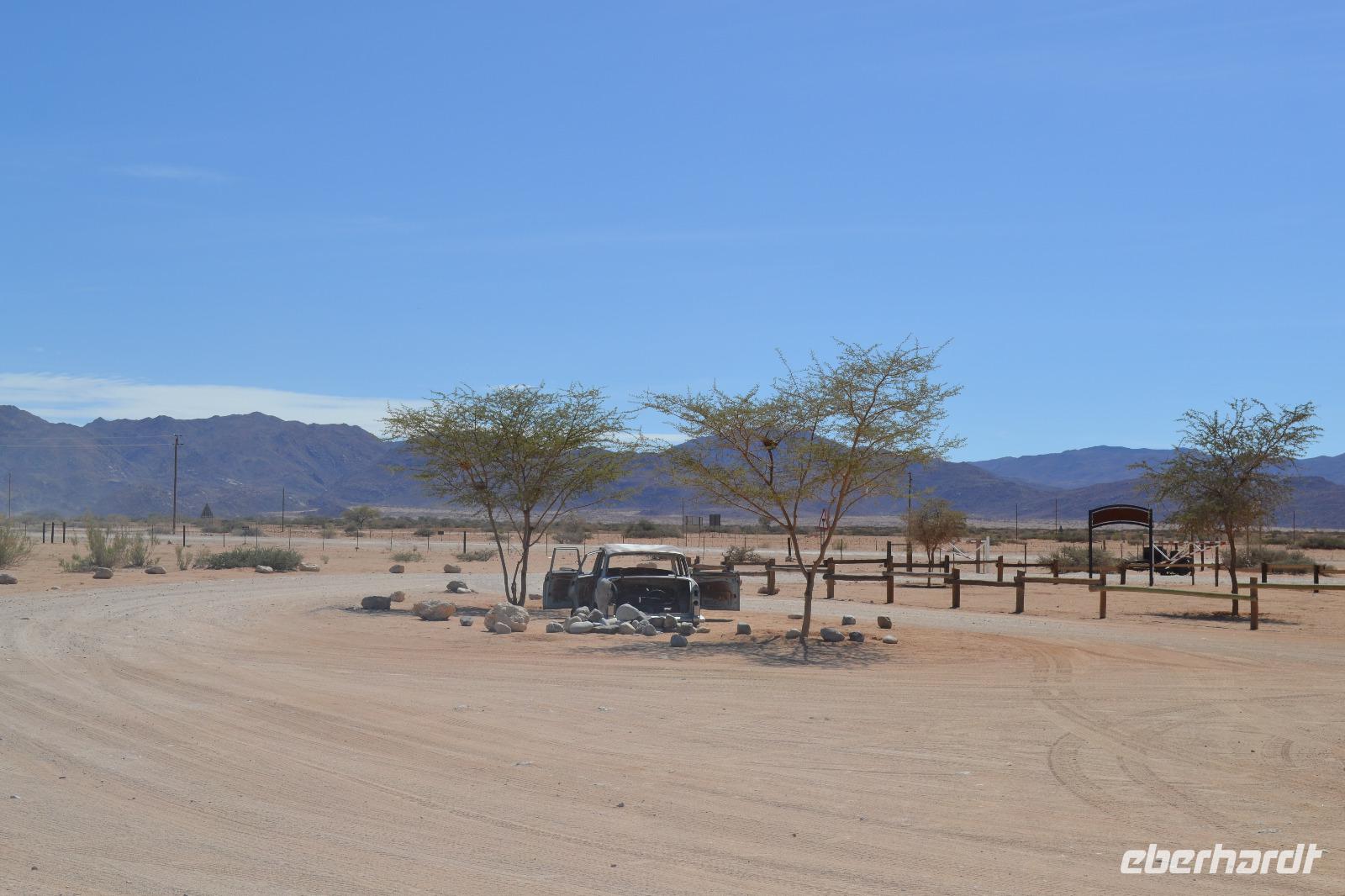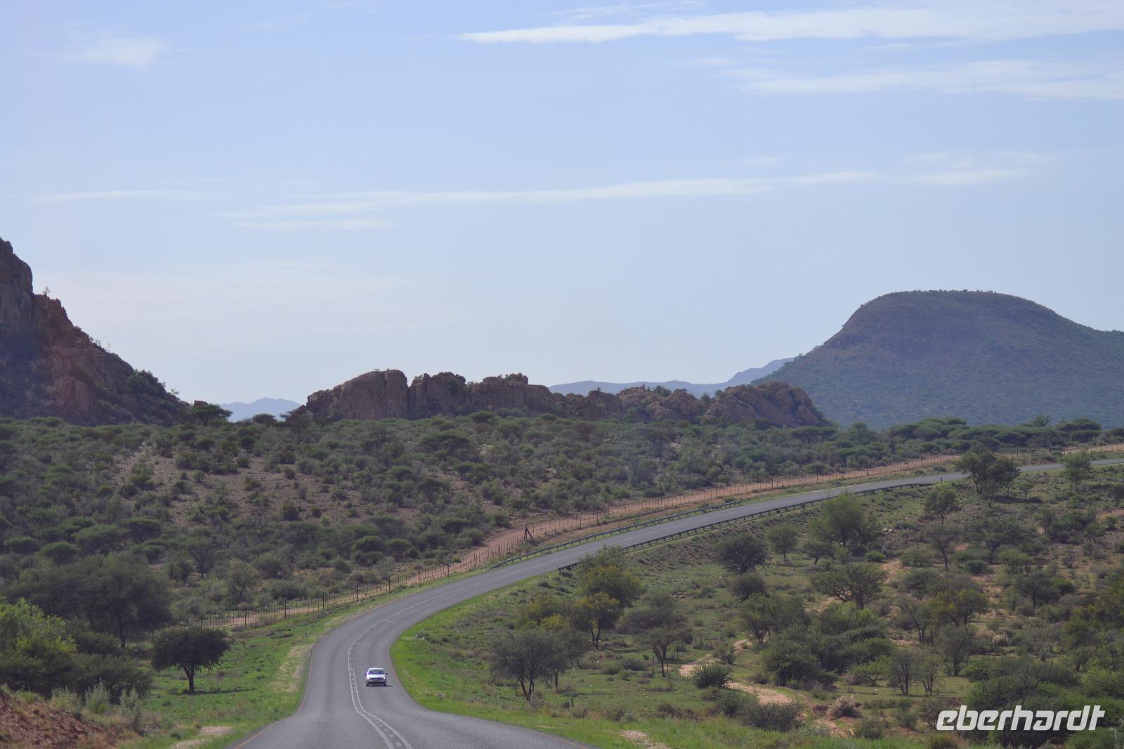 Heute fuhren wir unserem Ziel und auch dem Anfangspunkt unserer Reise ein Stück entgegen. Der Großteil der Strecke bestand aus asphaltierter Straße. Der erste Teil bis Outjio kam uns bekannt vor, denn wir legten den Weg bereits auf dem Weg zum Nationalpark zurück. Anschließend hielten wir in Otjiwarongo wo unserer Reiseleiterin Dagmar den Zahnarzt aufsuchte und wir uns am Bahnhof die alte deutsche Dampflok ansahen. Im April 1906 erhielt der Ort einen Eisenbahnanschluss. Die alte Lok „Nr. 41" wurde 1912 von der Firma Henschel in Kassel gebaut. Sie wurde auf der Strecke zwischen Swakopmund und Otavi eingesetzt. Otjiwarongo bedeutet in der Herero Sprache „schöner Platz der fetten Rinder". Danach tranken wir noch einen Kaffee im Supermarkt und fuhren mit Dagmar weiter zum Holzmarkt in Okahandja. Dort handelten wir stark um uns ein paar schöne Holzschnitzereien für Zuhause zu ergattern. Am Nachmittag erreichten wir unser Farmhaus wo wir die Zeit auf dem Gelände nutzen um uns zu entspannen. Laura und Dagmar bereiteten die Abreise vor. Am Abend trafen wir uns alle am Lagerfeuer um die restlichen Schnaps und Wein Vorräte zu leeren. Unter dem Pavillon wurde uns das letzte Abendessen serviert. In ausgelassener Atmosphäre nahmen wir Abschied voneinander.