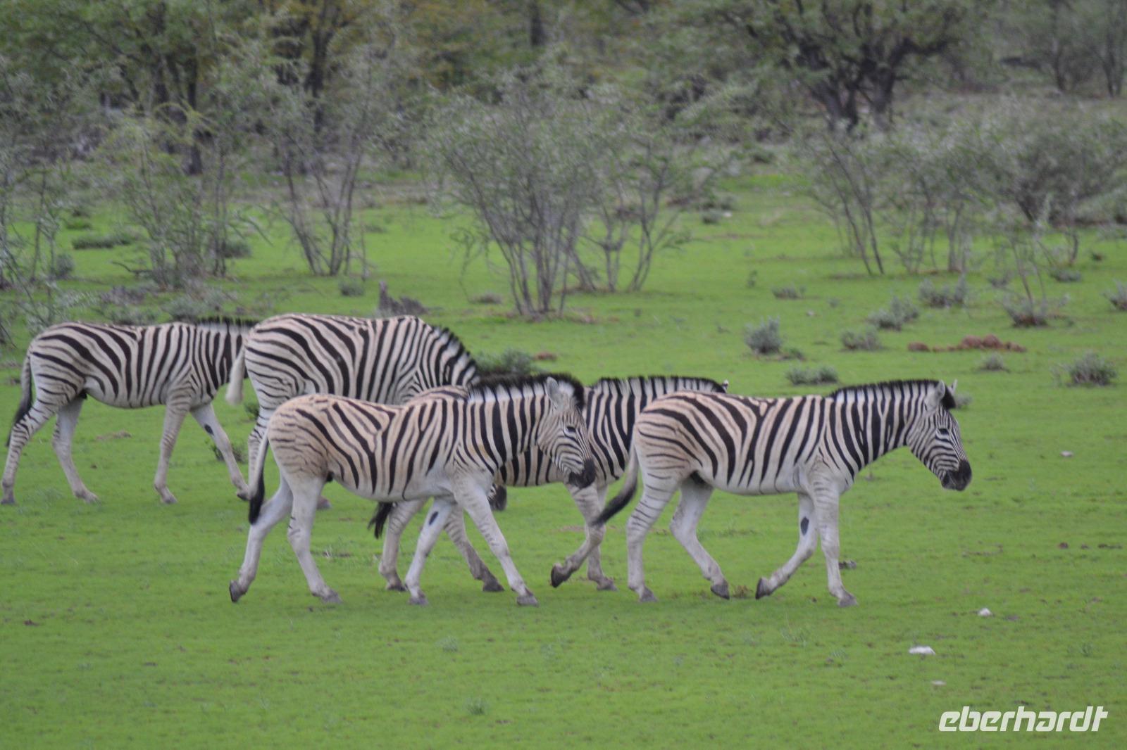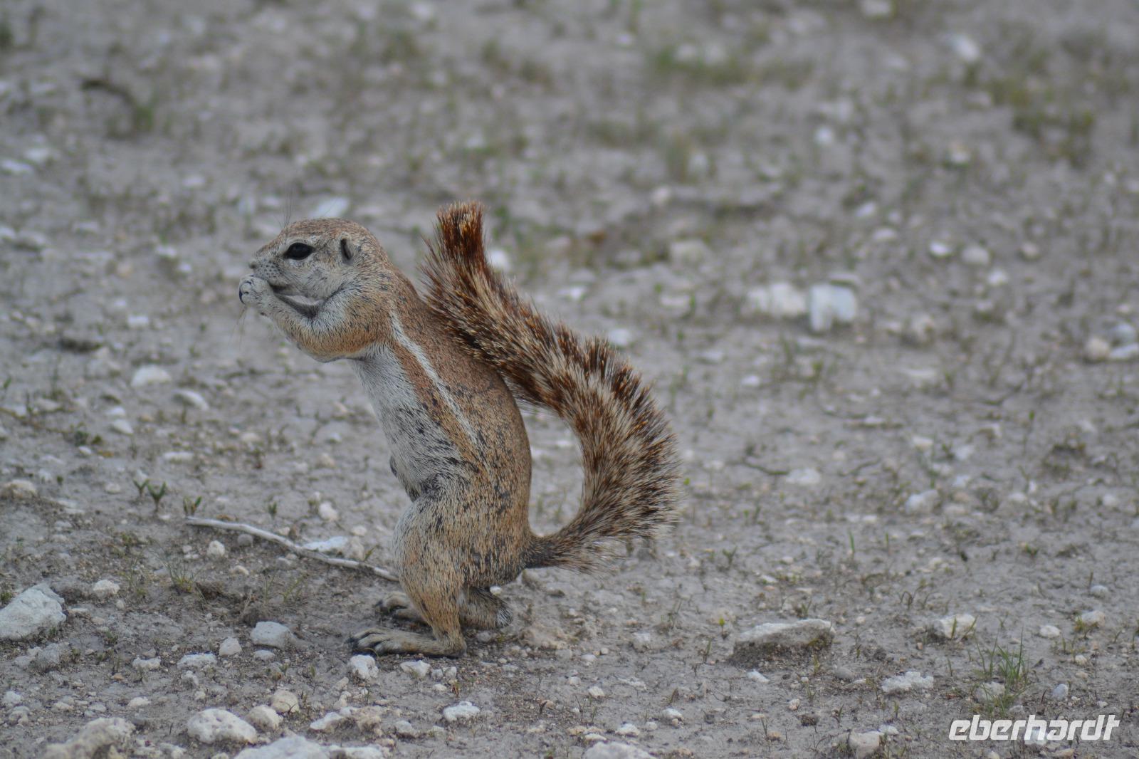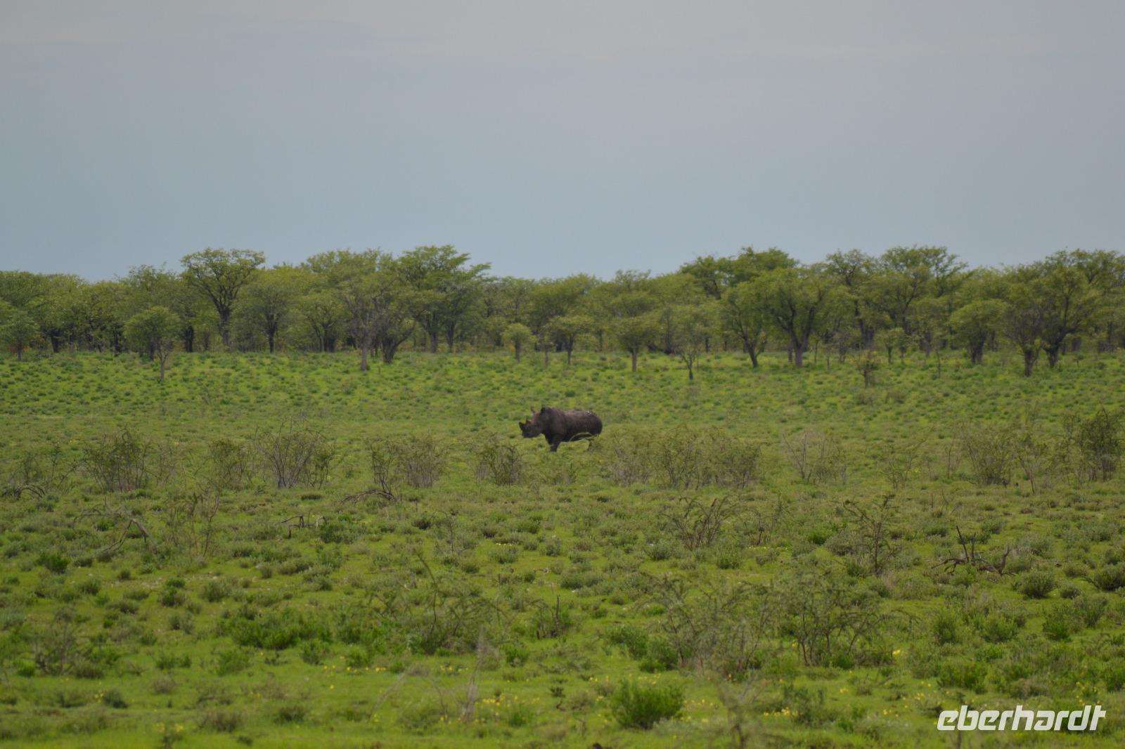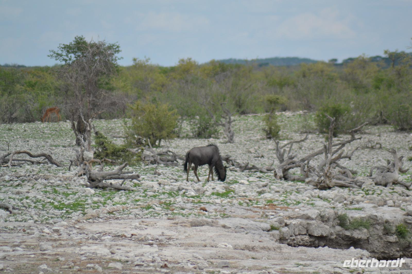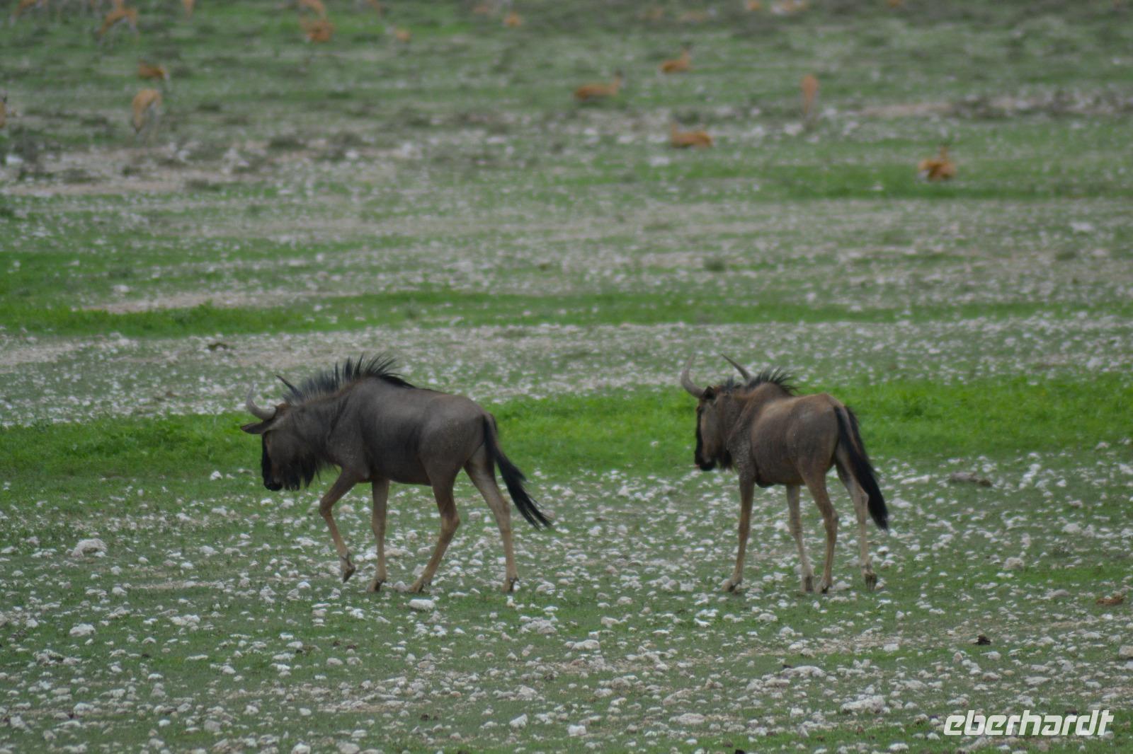 Der heutige Tag stand ganz im Sinne der der Tierbeobachtungen. Einige Gäste nutzen den Morgen um auszuschlafen und entspannt zu frühstücken. Nach der vergangenen Nacht mit großem Unwetter gingen wir bereits am frühen Morgen pünktlich zur Parköffnung auf unsere 1. Pirsch Fahrt. Wir sahen anfangs wieder die üblichen Verdächtigen Herden von Zebras, Oryx und Springböcken. Unsere Fahrt führte uns entlang der Salztonpfanne bis nach Salvadora. „Etosha" stammt aus der Sprache der Oshivambo und bedeutet „großer weißer Platz". Unterwegs sahen wir zwei kleine Löwen Gruppen und ein einzelnes Nashorn. Unser Wunsch nach einem Elefanten ging leider nicht in Erfüllung. Über die Mittagszeit kehrten wir zurück in das Hotel, um uns bei einem kleinen Mittagessen zu stärken. Leider waren keine Nudeln im Hotel vorhanden, weshalb wir kurzfristig unseren Speisewunsch statt Napolitana auf ein Sandwich umlegen mussten. Am Nachmittag lud uns Laura auf Grund des Ausfalles der Klimaanlage im Truck auf eine Safari im offenen Jeep ein. Der erste Teil der Fahrt war sonnig und wir sahen eine kleine Gruppe mit Erdhörnchen. Diese sind nicht zu verwechseln mit den Erdmännchen und sehen eher einem Eichhörnchen ähnlich. Später wurde es immer dunkler am Himmel und wir fuhren unmittelbar in die Unwetter Front. Kurzerhand drehten wir um und entkamen den weiteren Wolken. Auf dem Weg zurück in die Logde holte uns glücklicherweise Brayn mit dem Bus ab und brachten uns trocken bis vor unsere Zimmer. Eigentlich wollten wir heute Abend im Camp des Geländes Essen, doch bei dem Wetter bevorzugten wir das Hauptrestaurant. Draußen kühlte es sich durch den Regen schnell ab.