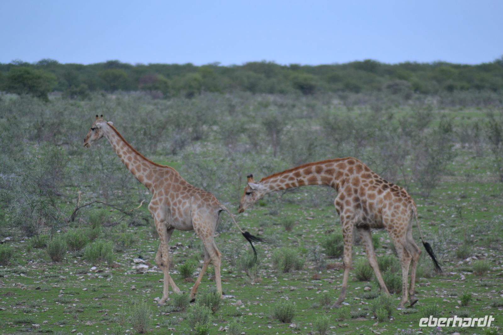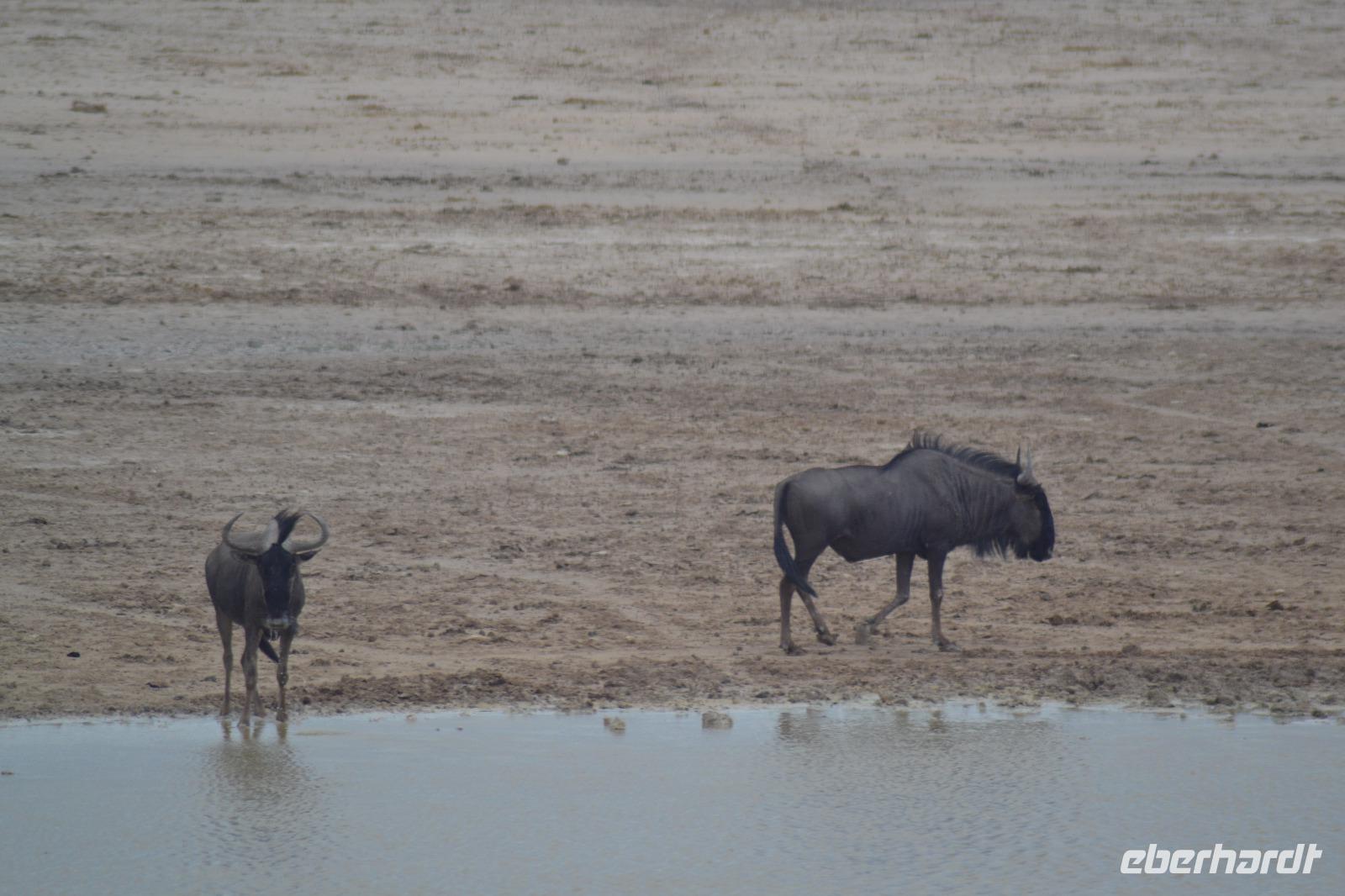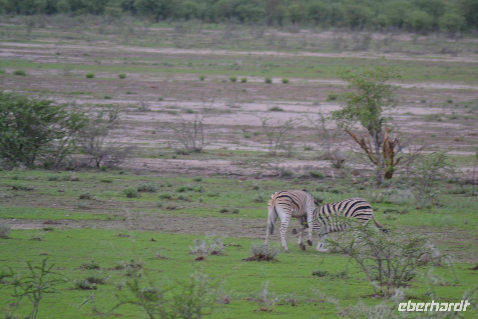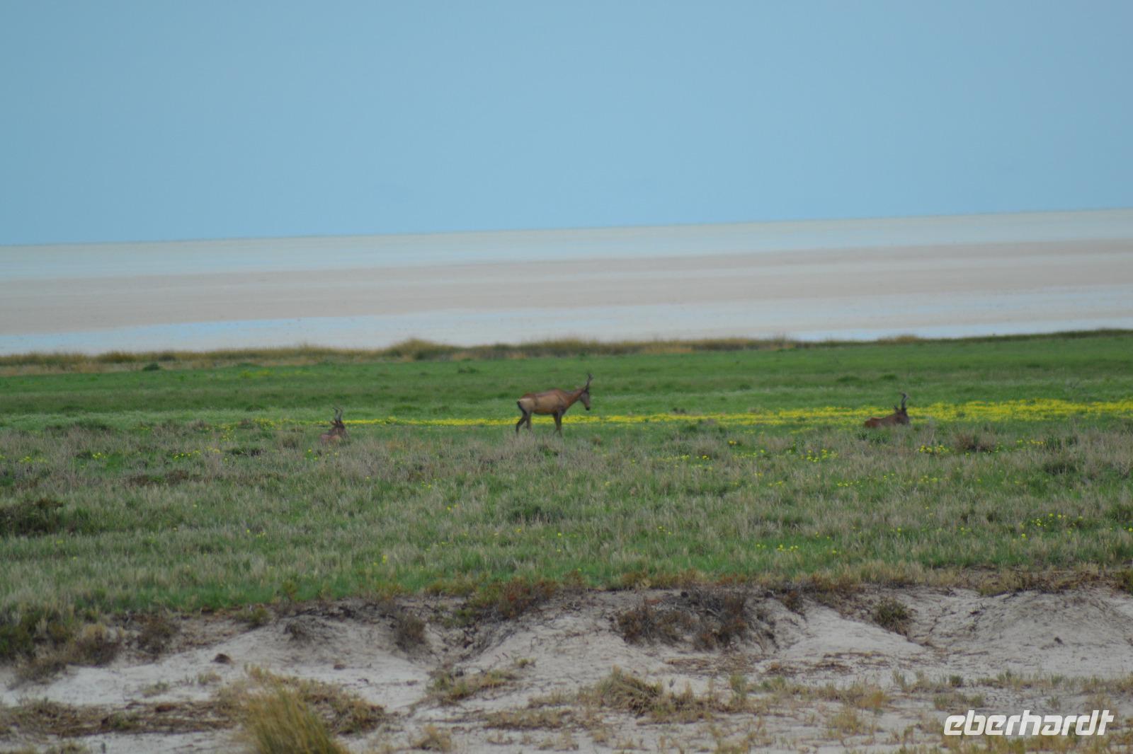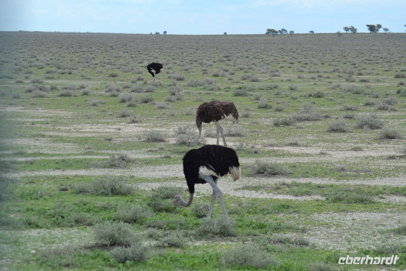 Der heutige Tag stand ganz im Sinne der der Tierbeobachtungen. Einige Gäste nutzen den Morgen um auszuschlafen und entspannt zu frühstücken. Nach der vergangenen Nacht mit großem Unwetter gingen wir bereits am frühen Morgen pünktlich zur Parköffnung auf unsere 1. Pirsch Fahrt. Wir sahen anfangs wieder die üblichen Verdächtigen Herden von Zebras, Oryx und Springböcken. Unsere Fahrt führte uns entlang der Salztonpfanne bis nach Salvadora. „Etosha" stammt aus der Sprache der Oshivambo und bedeutet „großer weißer Platz". Unterwegs sahen wir zwei kleine Löwen Gruppen und ein einzelnes Nashorn. Unser Wunsch nach einem Elefanten ging leider nicht in Erfüllung. Über die Mittagszeit kehrten wir zurück in das Hotel, um uns bei einem kleinen Mittagessen zu stärken. Leider waren keine Nudeln im Hotel vorhanden, weshalb wir kurzfristig unseren Speisewunsch statt Napolitana auf ein Sandwich umlegen mussten. Am Nachmittag lud uns Laura auf Grund des Ausfalles der Klimaanlage im Truck auf eine Safari im offenen Jeep ein. Der erste Teil der Fahrt war sonnig und wir sahen eine kleine Gruppe mit Erdhörnchen. Diese sind nicht zu verwechseln mit den Erdmännchen und sehen eher einem Eichhörnchen ähnlich. Später wurde es immer dunkler am Himmel und wir fuhren unmittelbar in die Unwetter Front. Kurzerhand drehten wir um und entkamen den weiteren Wolken. Auf dem Weg zurück in die Logde holte uns glücklicherweise Brayn mit dem Bus ab und brachten uns trocken bis vor unsere Zimmer. Eigentlich wollten wir heute Abend im Camp des Geländes Essen, doch bei dem Wetter bevorzugten wir das Hauptrestaurant. Draußen kühlte es sich durch den Regen schnell ab.