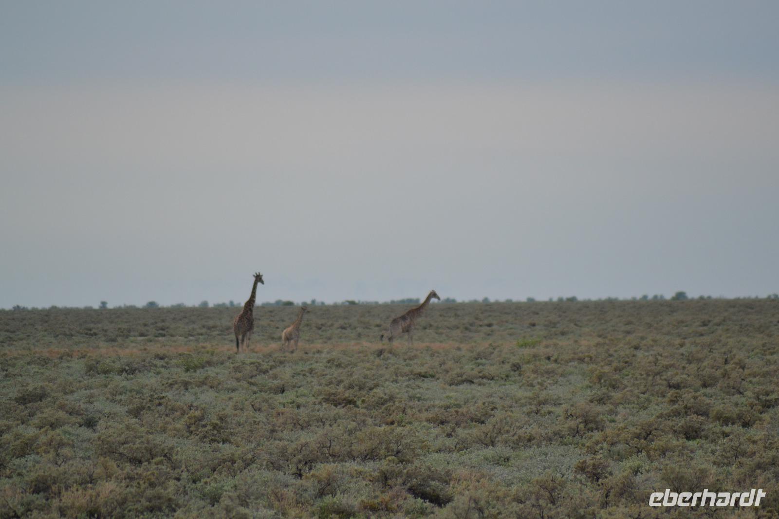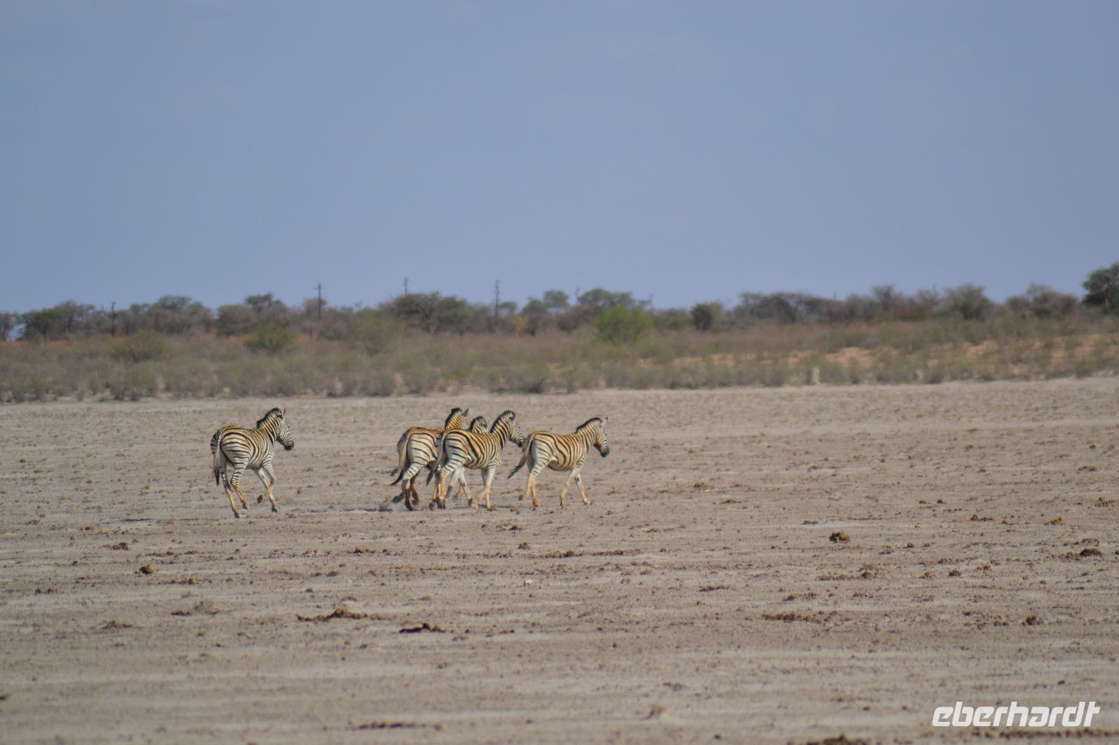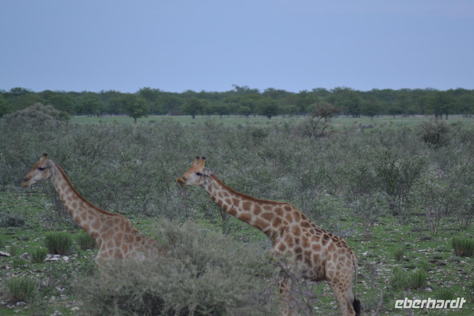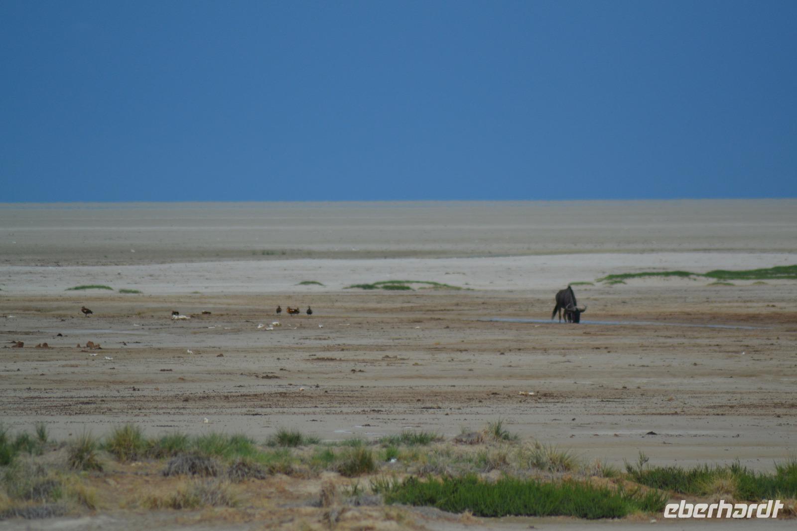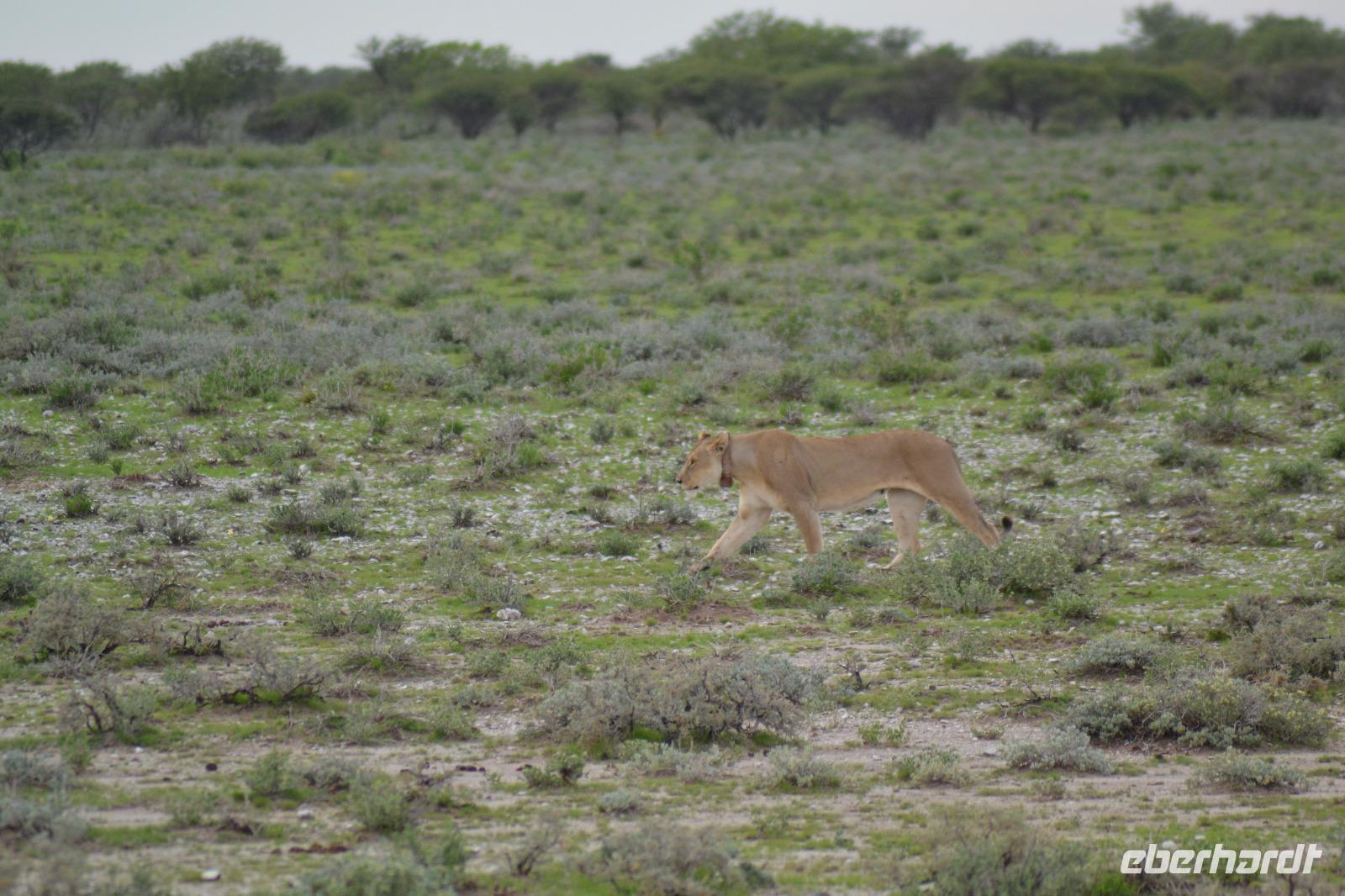 Der heutige Tag stand ganz im Sinne der der Tierbeobachtungen. Einige Gäste nutzen den Morgen um auszuschlafen und entspannt zu frühstücken. Nach der vergangenen Nacht mit großem Unwetter gingen wir bereits am frühen Morgen pünktlich zur Parköffnung auf unsere 1. Pirsch Fahrt. Wir sahen anfangs wieder die üblichen Verdächtigen Herden von Zebras, Oryx und Springböcken. Unsere Fahrt führte uns entlang der Salztonpfanne bis nach Salvadora. „Etosha" stammt aus der Sprache der Oshivambo und bedeutet „großer weißer Platz". Unterwegs sahen wir zwei kleine Löwen Gruppen und ein einzelnes Nashorn. Unser Wunsch nach einem Elefanten ging leider nicht in Erfüllung. Über die Mittagszeit kehrten wir zurück in das Hotel, um uns bei einem kleinen Mittagessen zu stärken. Leider waren keine Nudeln im Hotel vorhanden, weshalb wir kurzfristig unseren Speisewunsch statt Napolitana auf ein Sandwich umlegen mussten. Am Nachmittag lud uns Laura auf Grund des Ausfalles der Klimaanlage im Truck auf eine Safari im offenen Jeep ein. Der erste Teil der Fahrt war sonnig und wir sahen eine kleine Gruppe mit Erdhörnchen. Diese sind nicht zu verwechseln mit den Erdmännchen und sehen eher einem Eichhörnchen ähnlich. Später wurde es immer dunkler am Himmel und wir fuhren unmittelbar in die Unwetter Front. Kurzerhand drehten wir um und entkamen den weiteren Wolken. Auf dem Weg zurück in die Logde holte uns glücklicherweise Brayn mit dem Bus ab und brachten uns trocken bis vor unsere Zimmer. Eigentlich wollten wir heute Abend im Camp des Geländes Essen, doch bei dem Wetter bevorzugten wir das Hauptrestaurant. Draußen kühlte es sich durch den Regen schnell ab.