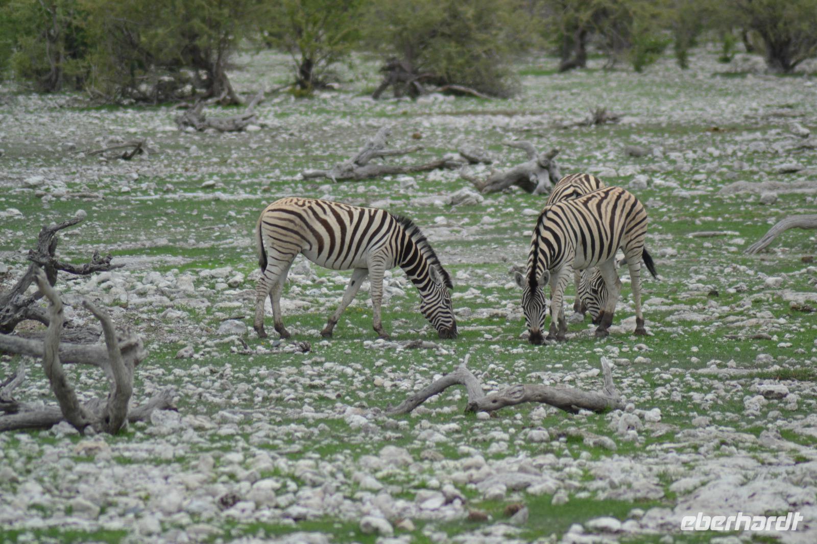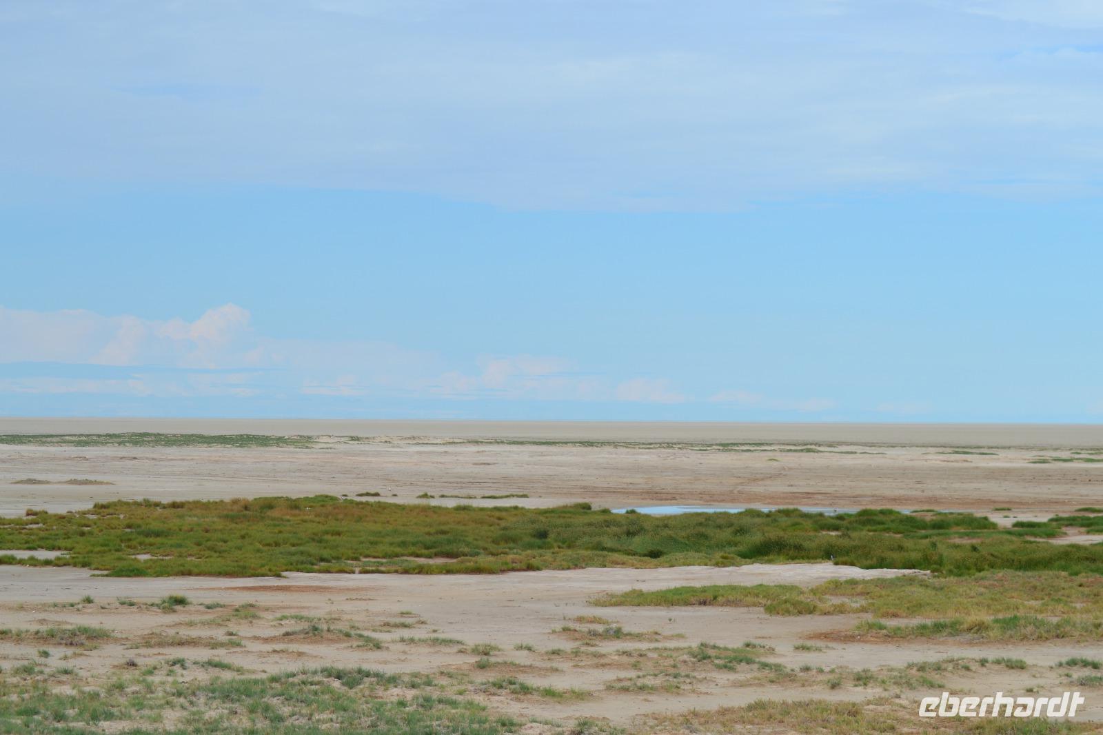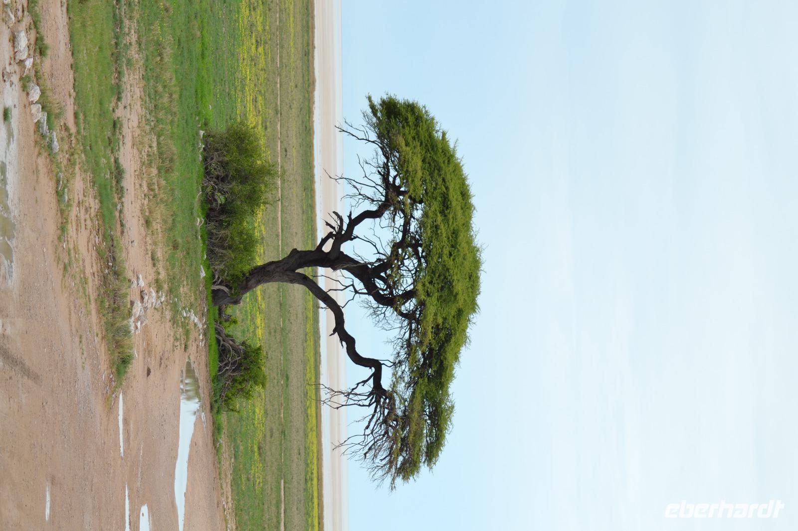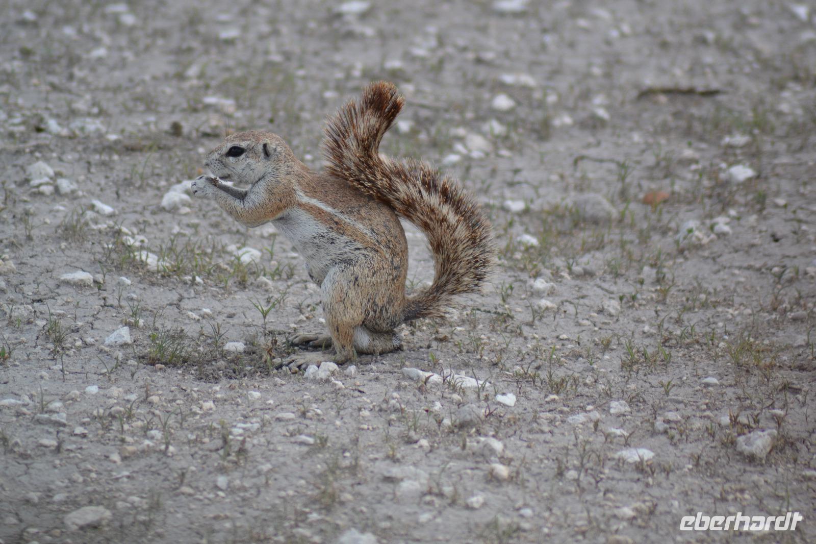 Der heutige Tag stand ganz im Sinne der der Tierbeobachtungen. Einige Gäste nutzen den Morgen um auszuschlafen und entspannt zu frühstücken. Nach der vergangenen Nacht mit großem Unwetter gingen wir bereits am frühen Morgen pünktlich zur Parköffnung auf unsere 1. Pirsch Fahrt. Wir sahen anfangs wieder die üblichen Verdächtigen Herden von Zebras, Oryx und Springböcken. Unsere Fahrt führte uns entlang der Salztonpfanne bis nach Salvadora. „Etosha" stammt aus der Sprache der Oshivambo und bedeutet „großer weißer Platz". Unterwegs sahen wir zwei kleine Löwen Gruppen und ein einzelnes Nashorn. Unser Wunsch nach einem Elefanten ging leider nicht in Erfüllung. Über die Mittagszeit kehrten wir zurück in das Hotel, um uns bei einem kleinen Mittagessen zu stärken. Leider waren keine Nudeln im Hotel vorhanden, weshalb wir kurzfristig unseren Speisewunsch statt Napolitana auf ein Sandwich umlegen mussten. Am Nachmittag lud uns Laura auf Grund des Ausfalles der Klimaanlage im Truck auf eine Safari im offenen Jeep ein. Der erste Teil der Fahrt war sonnig und wir sahen eine kleine Gruppe mit Erdhörnchen. Diese sind nicht zu verwechseln mit den Erdmännchen und sehen eher einem Eichhörnchen ähnlich. Später wurde es immer dunkler am Himmel und wir fuhren unmittelbar in die Unwetter Front. Kurzerhand drehten wir um und entkamen den weiteren Wolken. Auf dem Weg zurück in die Logde holte uns glücklicherweise Brayn mit dem Bus ab und brachten uns trocken bis vor unsere Zimmer. Eigentlich wollten wir heute Abend im Camp des Geländes Essen, doch bei dem Wetter bevorzugten wir das Hauptrestaurant. Draußen kühlte es sich durch den Regen schnell ab.