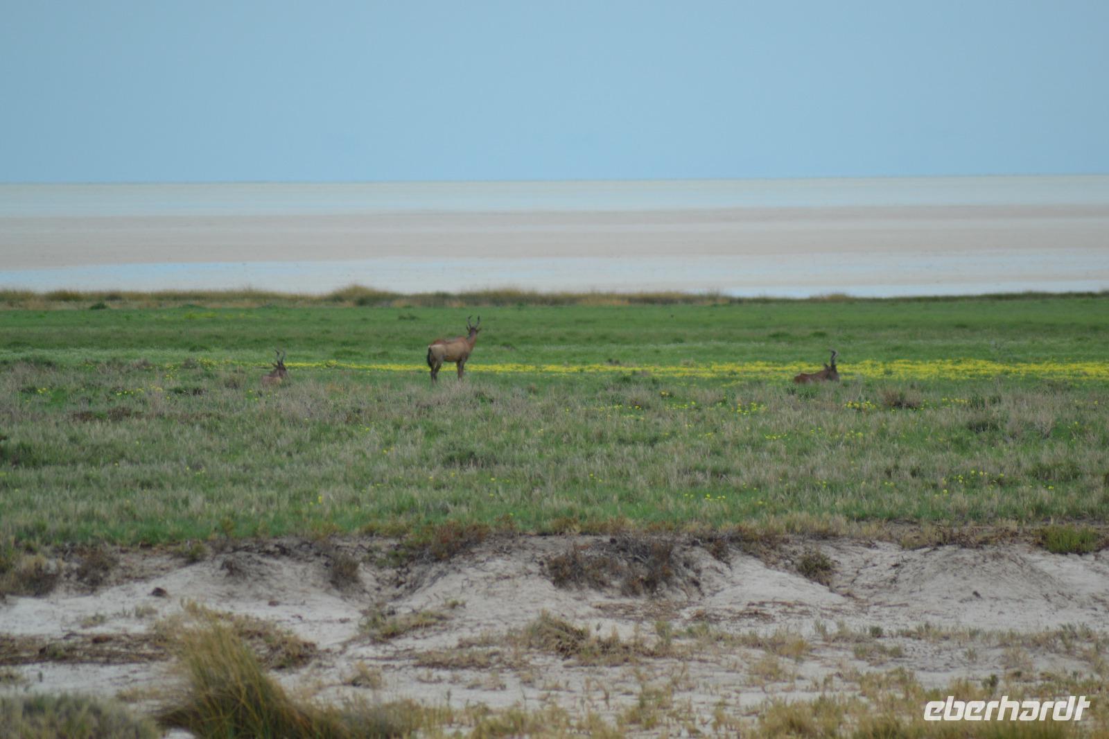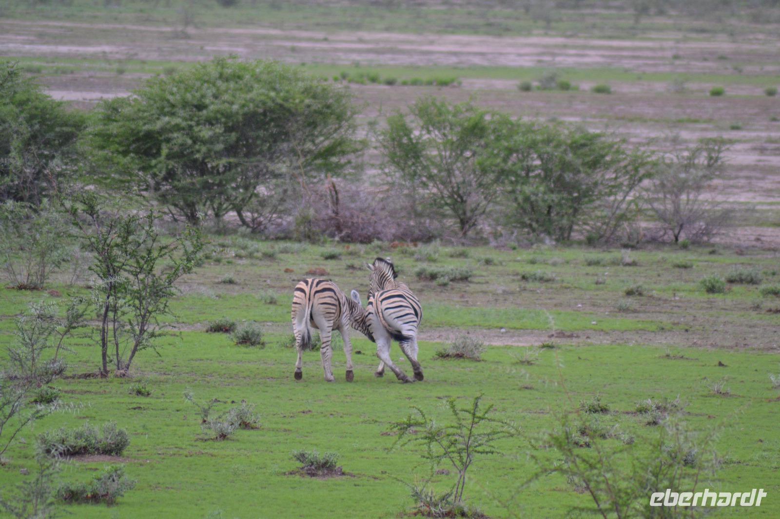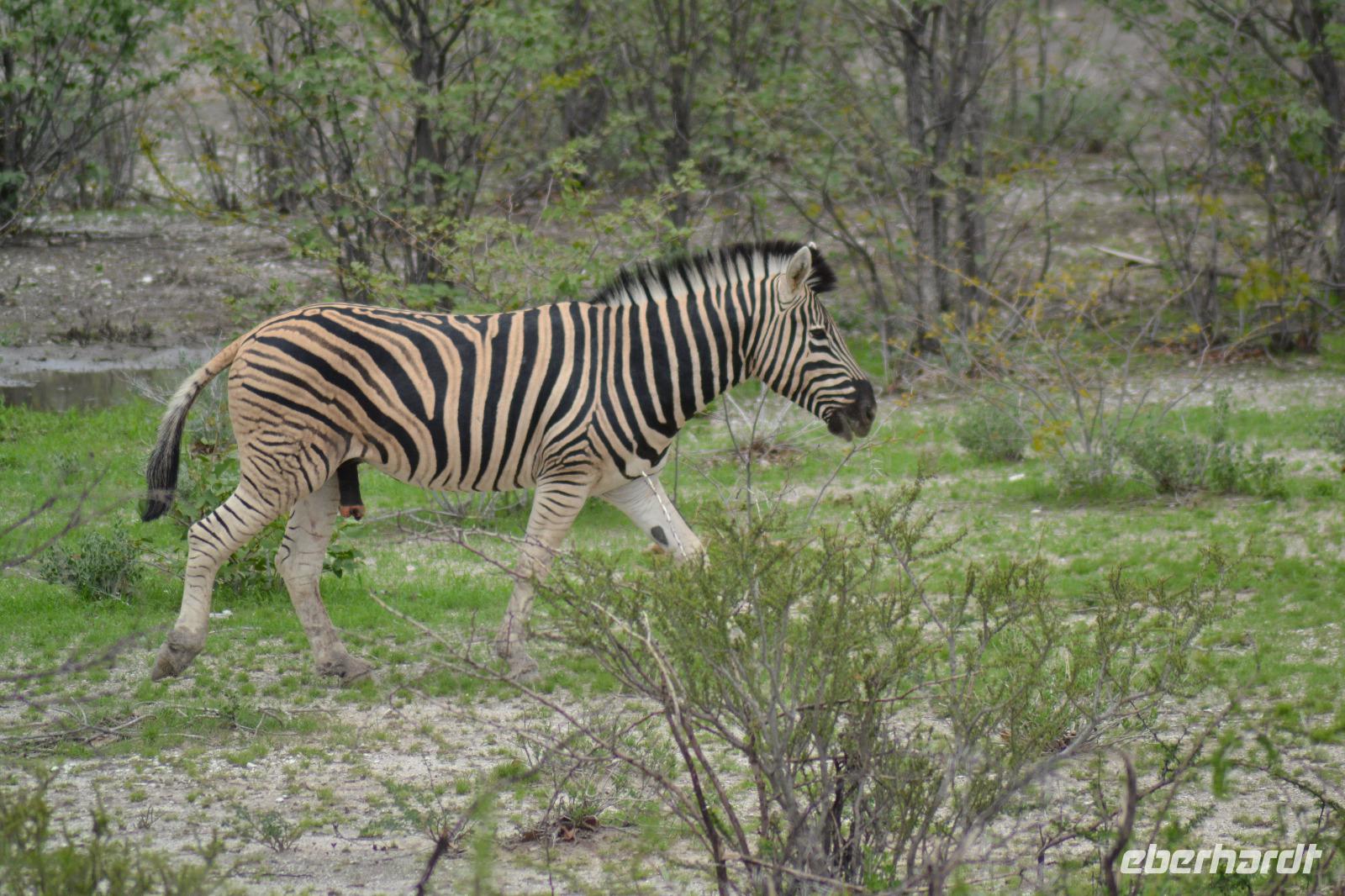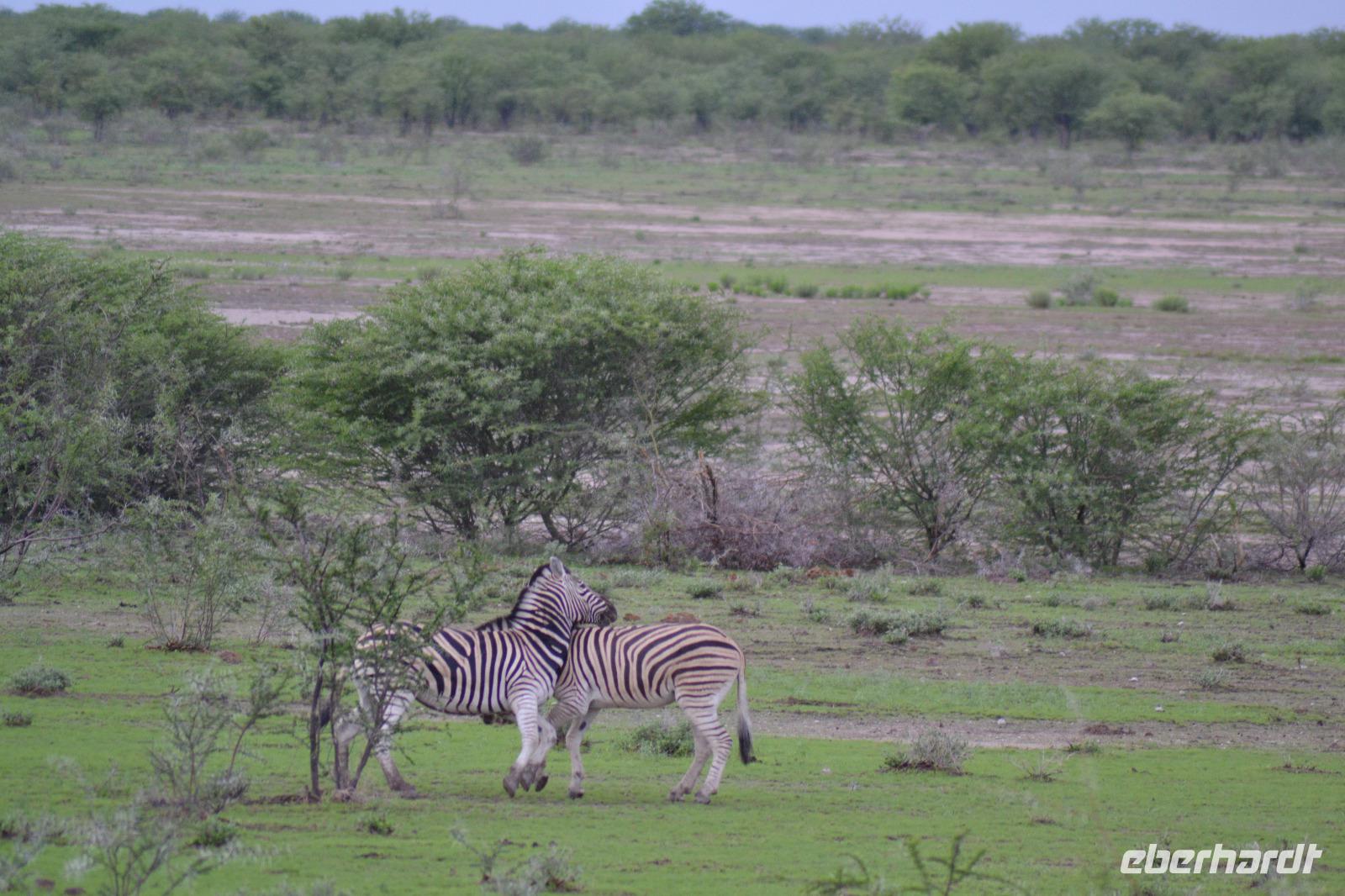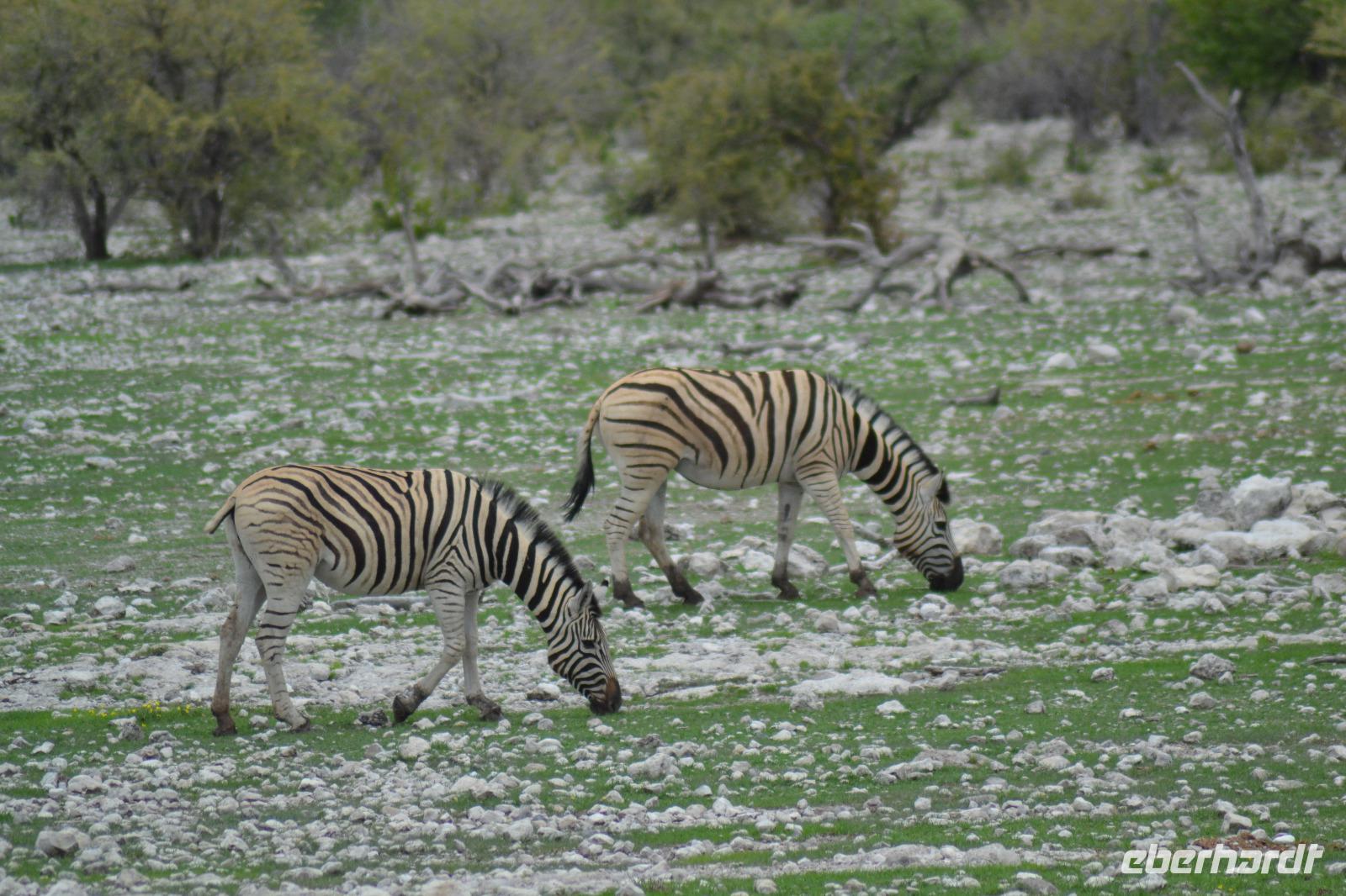 Der heutige Tag stand ganz im Sinne der der Tierbeobachtungen. Einige Gäste nutzen den Morgen um auszuschlafen und entspannt zu frühstücken. Nach der vergangenen Nacht mit großem Unwetter gingen wir bereits am frühen Morgen pünktlich zur Parköffnung auf unsere 1. Pirsch Fahrt. Wir sahen anfangs wieder die üblichen Verdächtigen Herden von Zebras, Oryx und Springböcken. Unsere Fahrt führte uns entlang der Salztonpfanne bis nach Salvadora. „Etosha" stammt aus der Sprache der Oshivambo und bedeutet „großer weißer Platz". Unterwegs sahen wir zwei kleine Löwen Gruppen und ein einzelnes Nashorn. Unser Wunsch nach einem Elefanten ging leider nicht in Erfüllung. Über die Mittagszeit kehrten wir zurück in das Hotel, um uns bei einem kleinen Mittagessen zu stärken. Leider waren keine Nudeln im Hotel vorhanden, weshalb wir kurzfristig unseren Speisewunsch statt Napolitana auf ein Sandwich umlegen mussten. Am Nachmittag lud uns Laura auf Grund des Ausfalles der Klimaanlage im Truck auf eine Safari im offenen Jeep ein. Der erste Teil der Fahrt war sonnig und wir sahen eine kleine Gruppe mit Erdhörnchen. Diese sind nicht zu verwechseln mit den Erdmännchen und sehen eher einem Eichhörnchen ähnlich. Später wurde es immer dunkler am Himmel und wir fuhren unmittelbar in die Unwetter Front. Kurzerhand drehten wir um und entkamen den weiteren Wolken. Auf dem Weg zurück in die Logde holte uns glücklicherweise Brayn mit dem Bus ab und brachten uns trocken bis vor unsere Zimmer. Eigentlich wollten wir heute Abend im Camp des Geländes Essen, doch bei dem Wetter bevorzugten wir das Hauptrestaurant. Draußen kühlte es sich durch den Regen schnell ab.