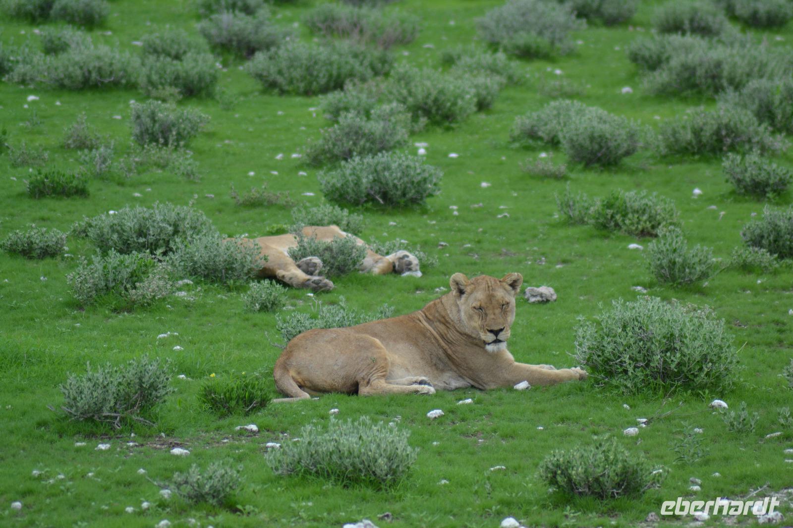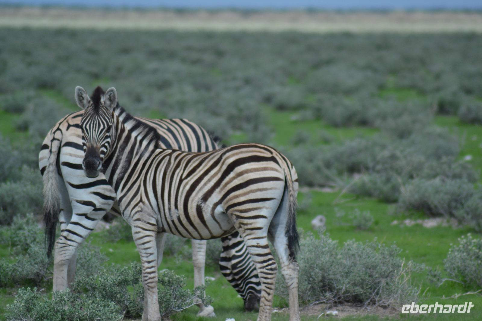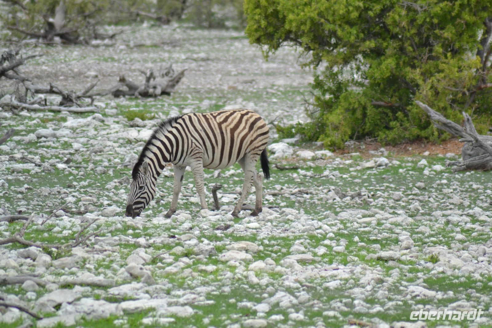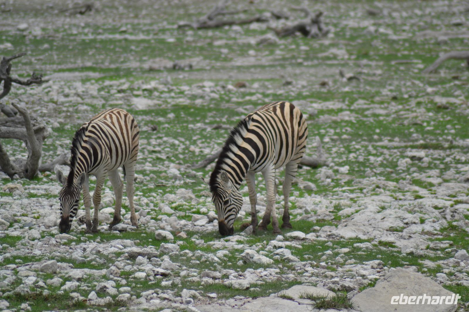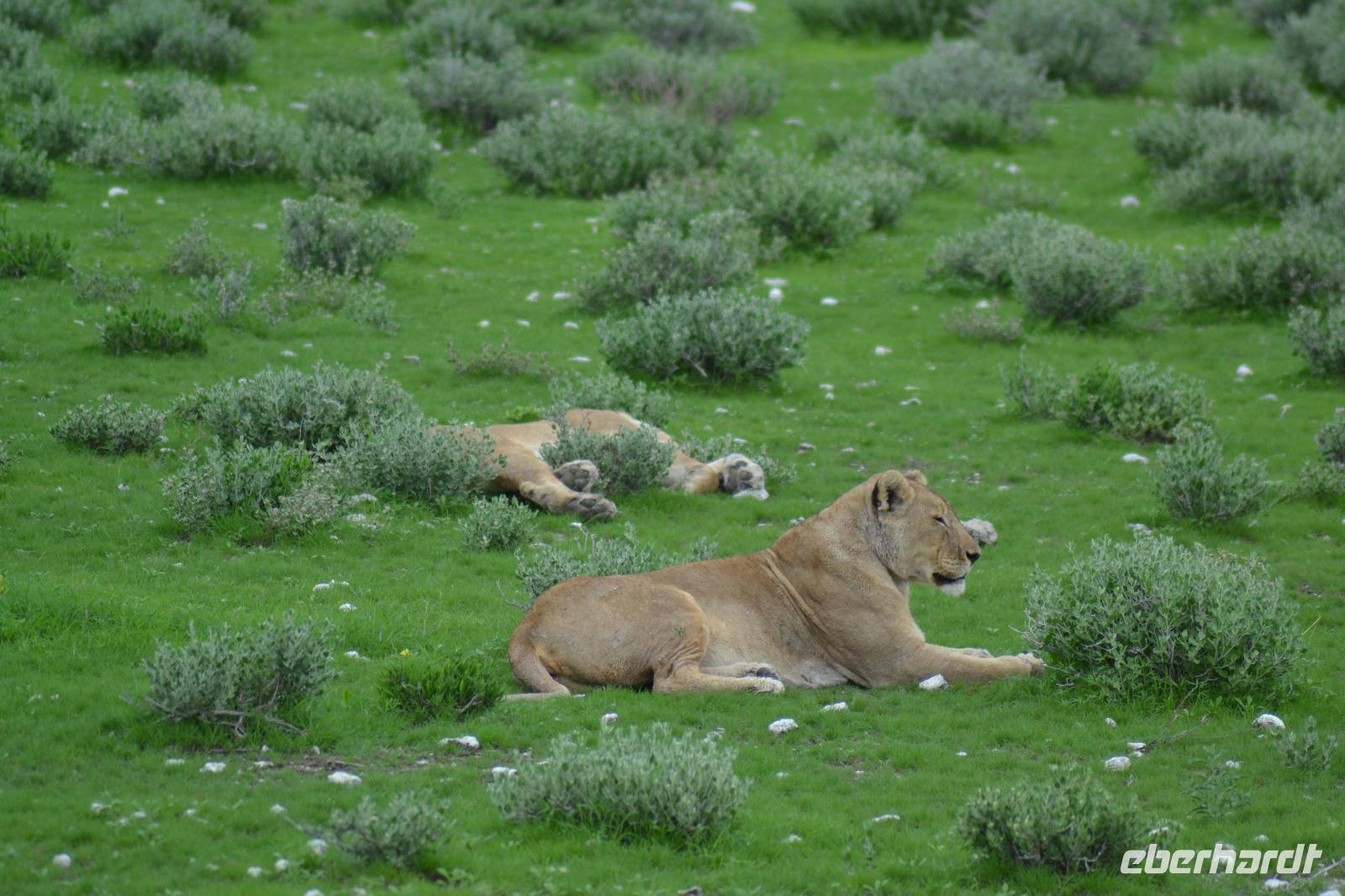 Der heutige Tag stand ganz im Sinne der der Tierbeobachtungen. Einige Gäste nutzen den Morgen um auszuschlafen und entspannt zu frühstücken. Nach der vergangenen Nacht mit großem Unwetter gingen wir bereits am frühen Morgen pünktlich zur Parköffnung auf unsere 1. Pirsch Fahrt. Wir sahen anfangs wieder die üblichen Verdächtigen Herden von Zebras, Oryx und Springböcken. Unsere Fahrt führte uns entlang der Salztonpfanne bis nach Salvadora. „Etosha" stammt aus der Sprache der Oshivambo und bedeutet „großer weißer Platz". Unterwegs sahen wir zwei kleine Löwen Gruppen und ein einzelnes Nashorn. Unser Wunsch nach einem Elefanten ging leider nicht in Erfüllung. Über die Mittagszeit kehrten wir zurück in das Hotel, um uns bei einem kleinen Mittagessen zu stärken. Leider waren keine Nudeln im Hotel vorhanden, weshalb wir kurzfristig unseren Speisewunsch statt Napolitana auf ein Sandwich umlegen mussten. Am Nachmittag lud uns Laura auf Grund des Ausfalles der Klimaanlage im Truck auf eine Safari im offenen Jeep ein. Der erste Teil der Fahrt war sonnig und wir sahen eine kleine Gruppe mit Erdhörnchen. Diese sind nicht zu verwechseln mit den Erdmännchen und sehen eher einem Eichhörnchen ähnlich. Später wurde es immer dunkler am Himmel und wir fuhren unmittelbar in die Unwetter Front. Kurzerhand drehten wir um und entkamen den weiteren Wolken. Auf dem Weg zurück in die Logde holte uns glücklicherweise Brayn mit dem Bus ab und brachten uns trocken bis vor unsere Zimmer. Eigentlich wollten wir heute Abend im Camp des Geländes Essen, doch bei dem Wetter bevorzugten wir das Hauptrestaurant. Draußen kühlte es sich durch den Regen schnell ab.