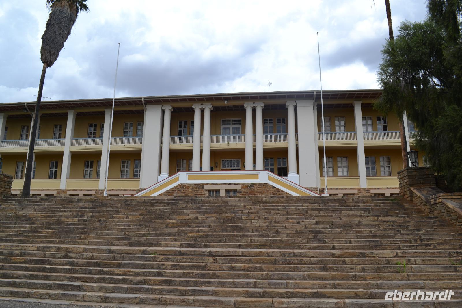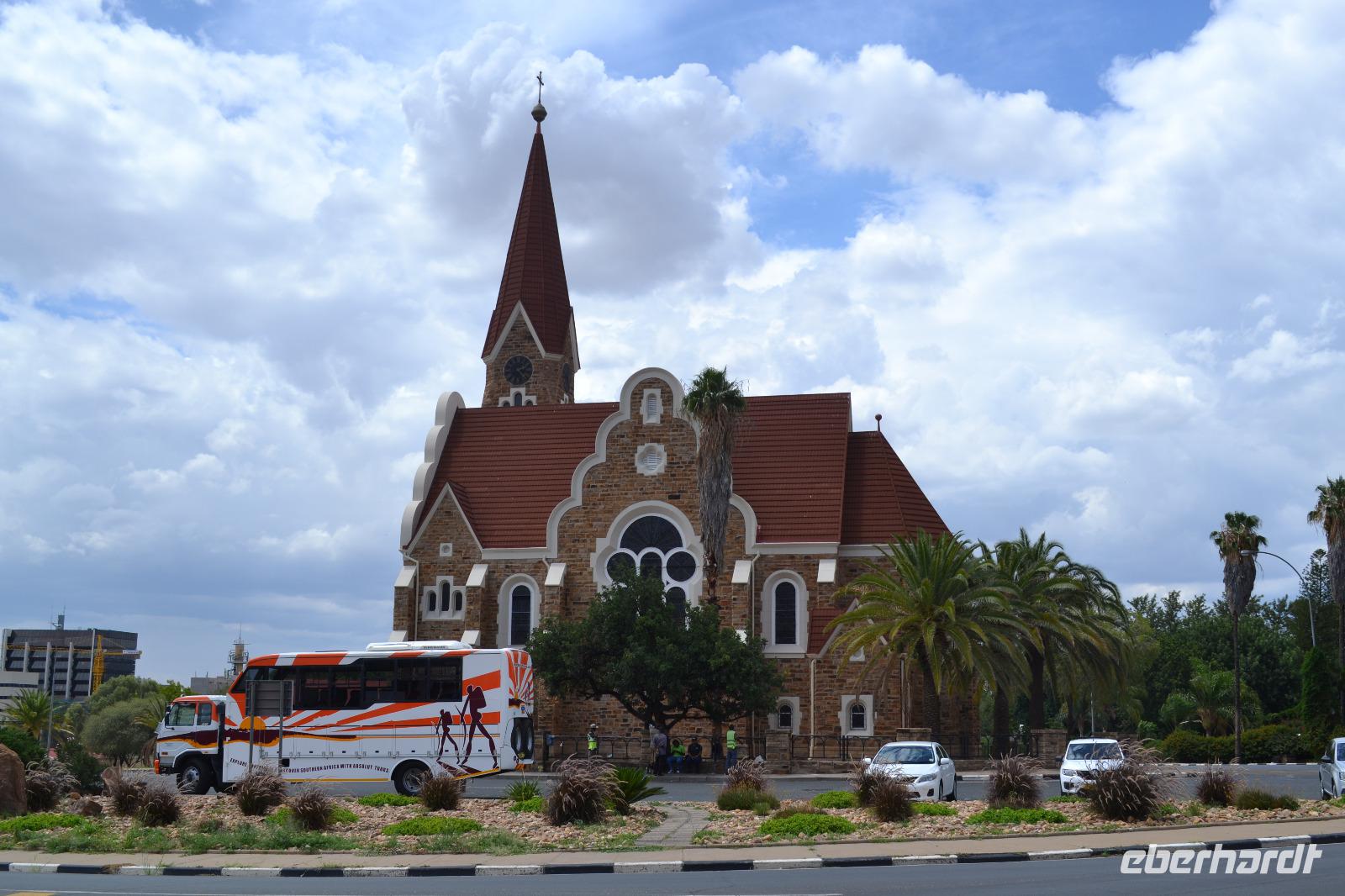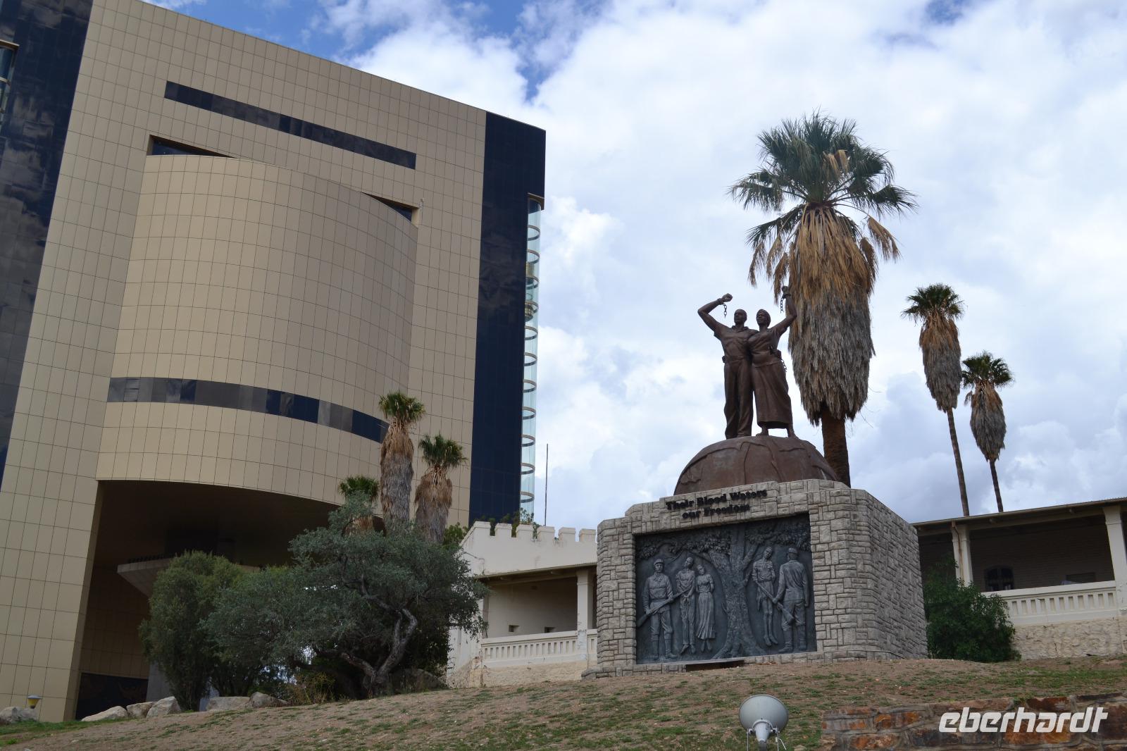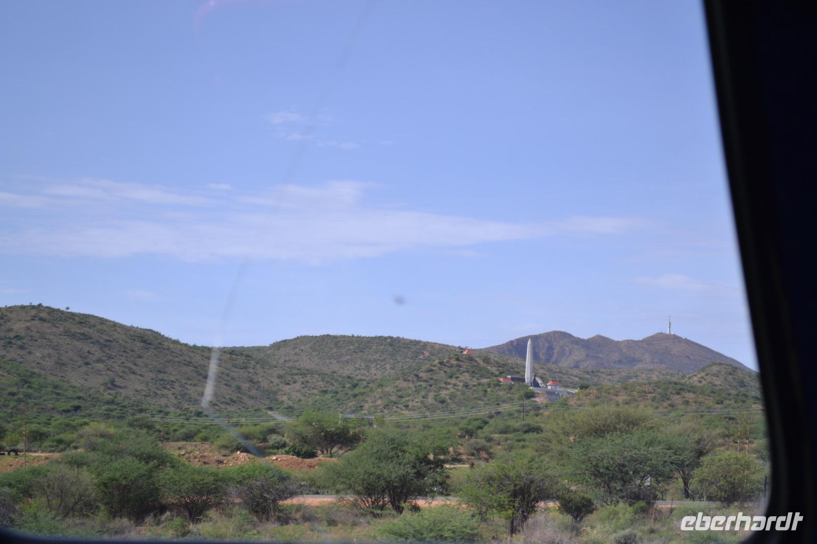 Wir erreichten unser Windhoek zum Mittag wo bereits unsere Reiseleiterin Dagmar, Busfahrer Brayn, sowie zwei weitere Gäste auf uns warteten. Nach einem kurzen Geldtausch fuhren wir zunächst zum Staatshaus. Der Amts- und Wohnsitz des Präsidenten von Namibia im Stadtteil Auasblick wurde von einem nordkoreanischen Unternehmen erbaut und hat das Land Schlappe 600 Mio. Namibia Dollar gekostet. Man gab besonders viele Bauwerke in die Hände der koreanischen, chinesischen und amerikanischen Hände um mit den Aufträgen Schulden zu begleichen. Für den ersten kleinen Hunger stöberten wir durch die Regale des Spar Supermarktes und besorgten uns namibiamische Adapter und Mosquito Spray. Im Anschluss besichtigten wir das historische Zentrum Windhoeks. Das Nationalmuseum mit der Namibianischen Geschichte ist prägend für das Stadtbild und wird liebevoll die Kaffeemaschine genannt. Weiter ging es an der alten Schule bis zum heutigen Schulungszentrum der namibischen Bank, welches einem deutschen Bahnhof ähnelt. Am Nachmittag erreichten wir unser Hotel Thule im Stadtgebiet Auasblick und erfrischten uns nach dem langen Flug. Zum Abend holten uns Dagmar und Bryan mit dem Truck ab und fuhren mit uns zum bekannten Joe's Biergarten. Dieser war skurril, aber liebevoll mit Jägermeister Flaschen und anderen detailgetreue deutschen Artikeln geschmückt. Der Großteil von uns probierte einen Fleischspieß bestückt mit den unterschiedlichsten afrikanischen Fleischarten. Zebra, Oryx, Kudu und Springbock. Ein erster schöner Abend neigte sich dem Ende.