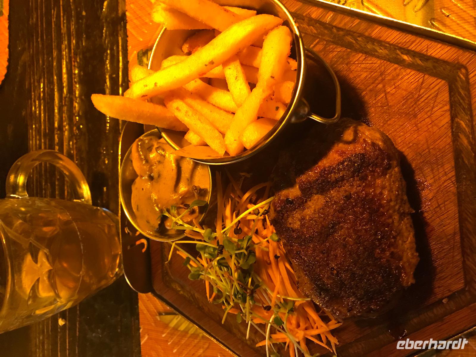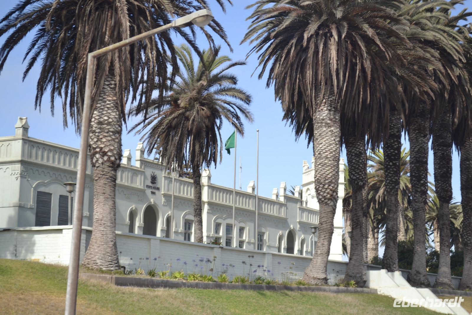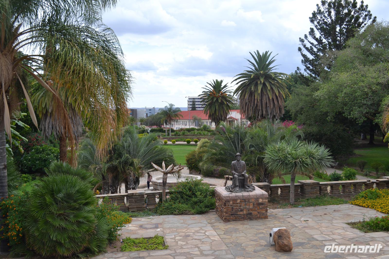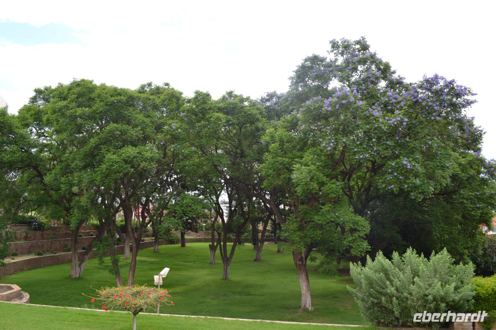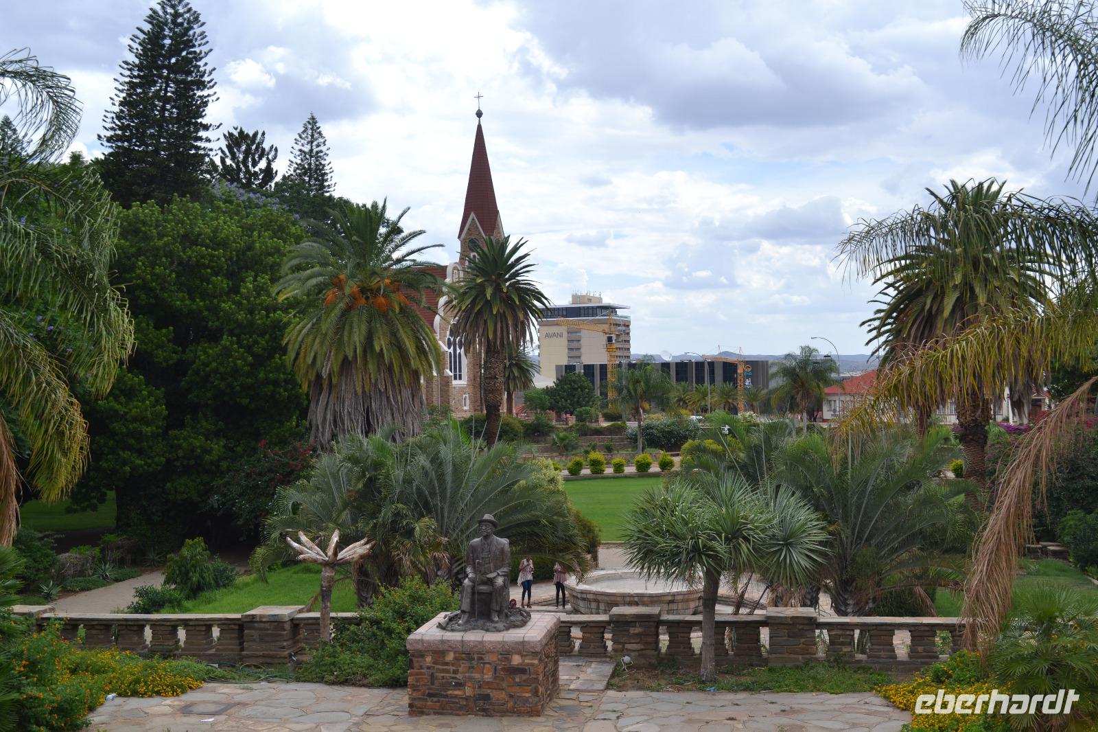 Wir erreichten unser Windhoek zum Mittag wo bereits unsere Reiseleiterin Dagmar, Busfahrer Brayn, sowie zwei weitere Gäste auf uns warteten. Nach einem kurzen Geldtausch fuhren wir zunächst zum Staatshaus. Der Amts- und Wohnsitz des Präsidenten von Namibia im Stadtteil Auasblick wurde von einem nordkoreanischen Unternehmen erbaut und hat das Land Schlappe 600 Mio. Namibia Dollar gekostet. Man gab besonders viele Bauwerke in die Hände der koreanischen, chinesischen und amerikanischen Hände um mit den Aufträgen Schulden zu begleichen. Für den ersten kleinen Hunger stöberten wir durch die Regale des Spar Supermarktes und besorgten uns namibiamische Adapter und Mosquito Spray. Im Anschluss besichtigten wir das historische Zentrum Windhoeks. Das Nationalmuseum mit der Namibianischen Geschichte ist prägend für das Stadtbild und wird liebevoll die Kaffeemaschine genannt. Weiter ging es an der alten Schule bis zum heutigen Schulungszentrum der namibischen Bank, welches einem deutschen Bahnhof ähnelt. Am Nachmittag erreichten wir unser Hotel Thule im Stadtgebiet Auasblick und erfrischten uns nach dem langen Flug. Zum Abend holten uns Dagmar und Bryan mit dem Truck ab und fuhren mit uns zum bekannten Joe's Biergarten. Dieser war skurril, aber liebevoll mit Jägermeister Flaschen und anderen detailgetreue deutschen Artikeln geschmückt. Der Großteil von uns probierte einen Fleischspieß bestückt mit den unterschiedlichsten afrikanischen Fleischarten. Zebra, Oryx, Kudu und Springbock. Ein erster schöner Abend neigte sich dem Ende.