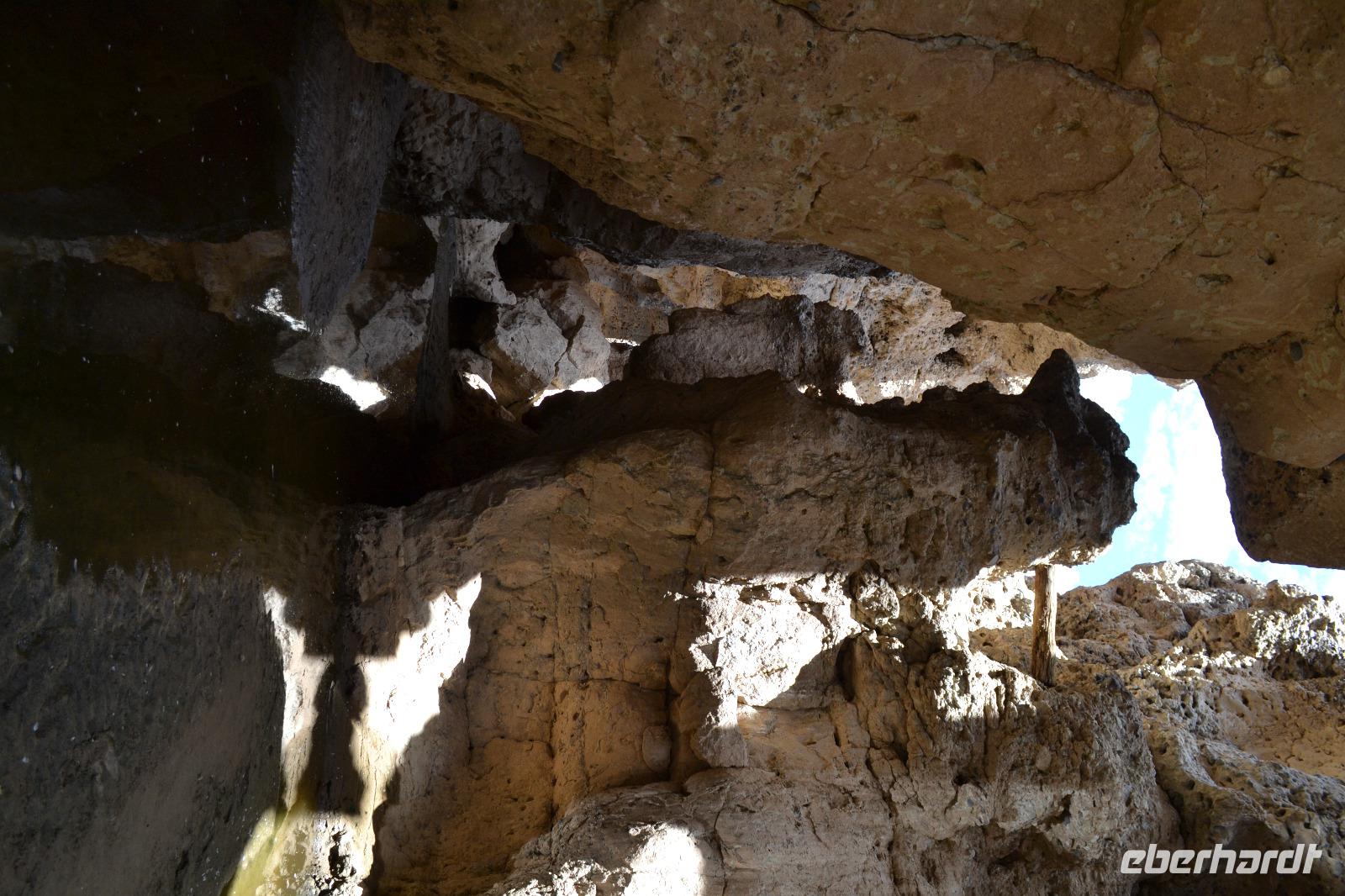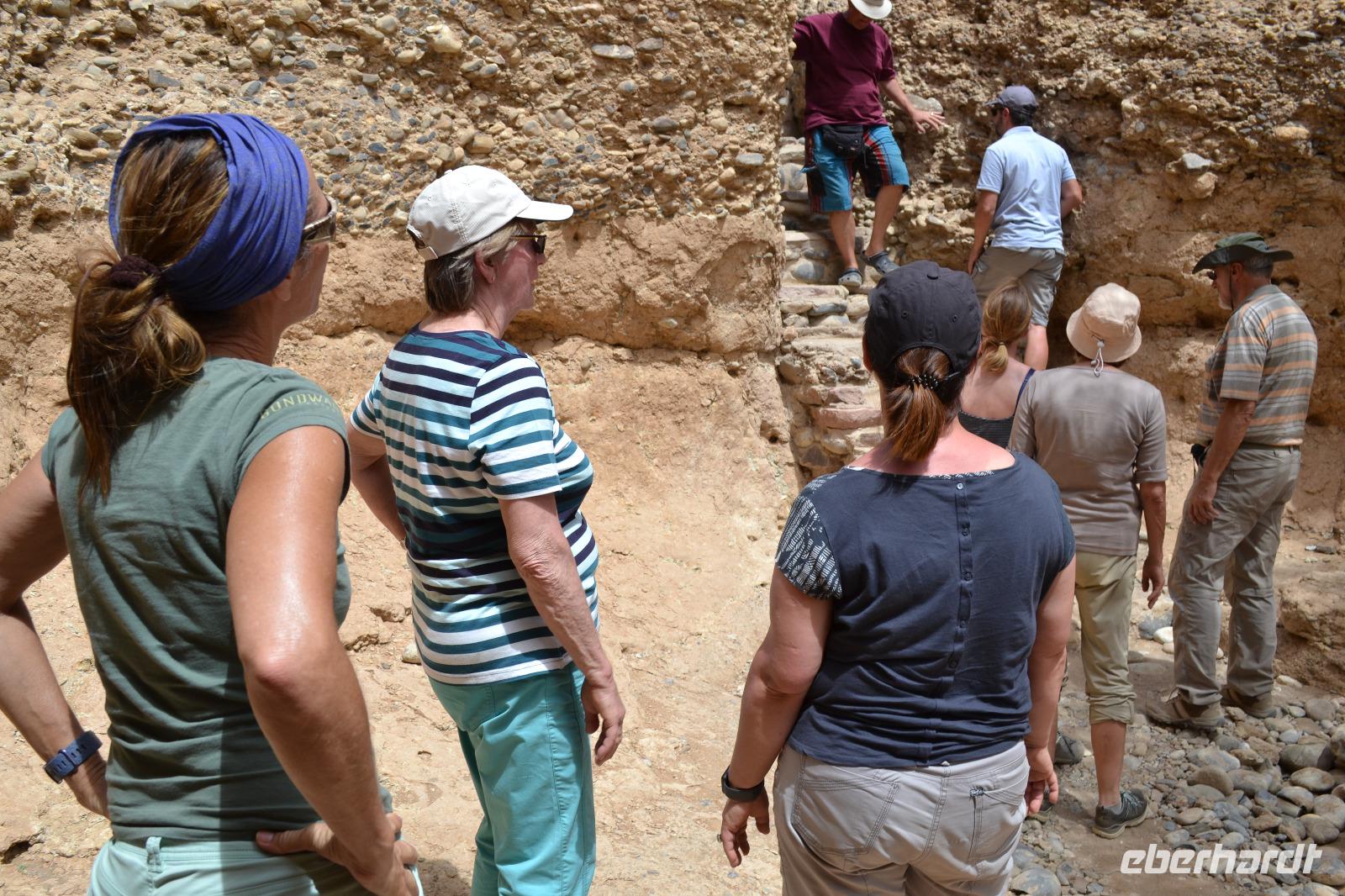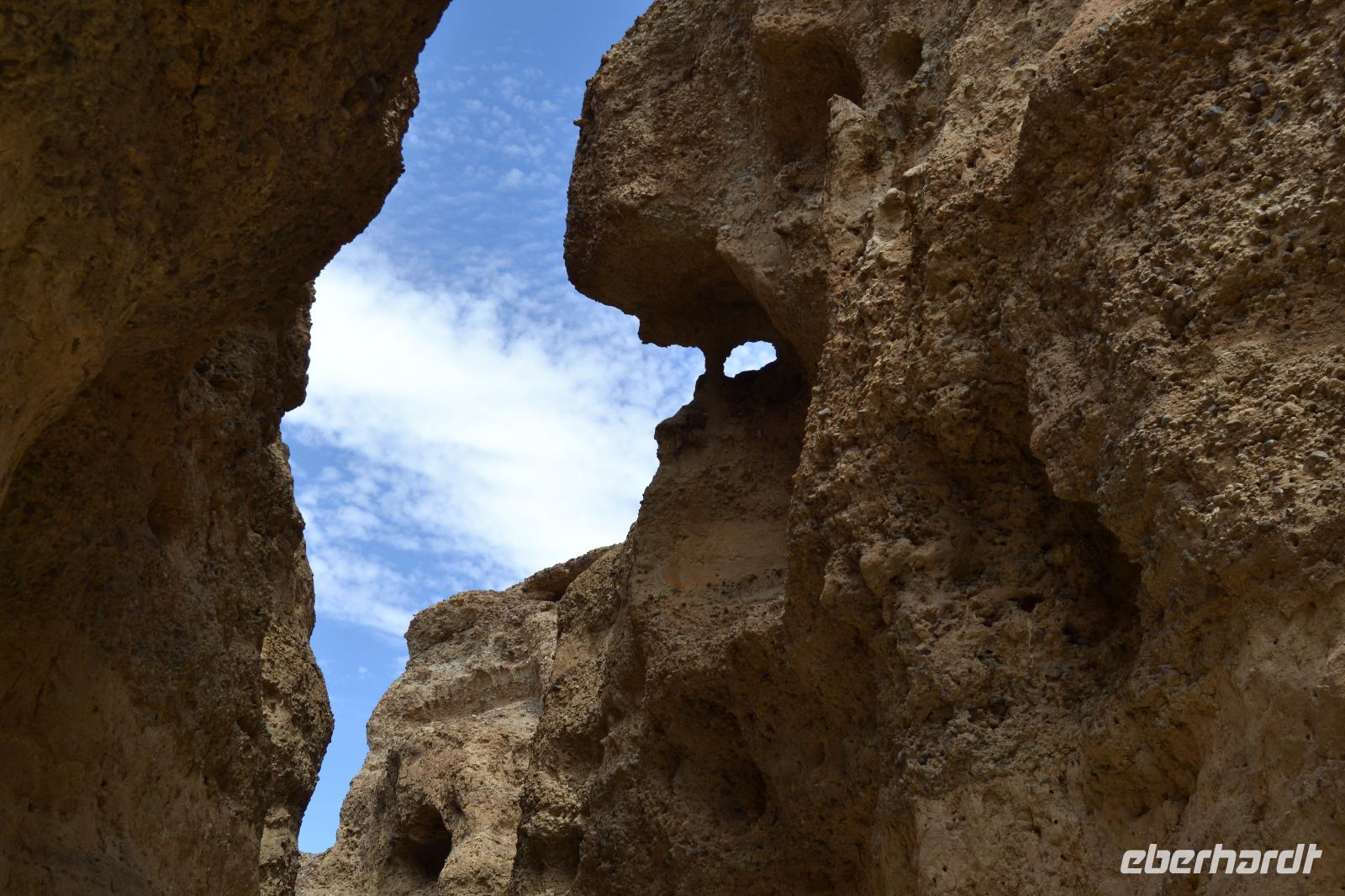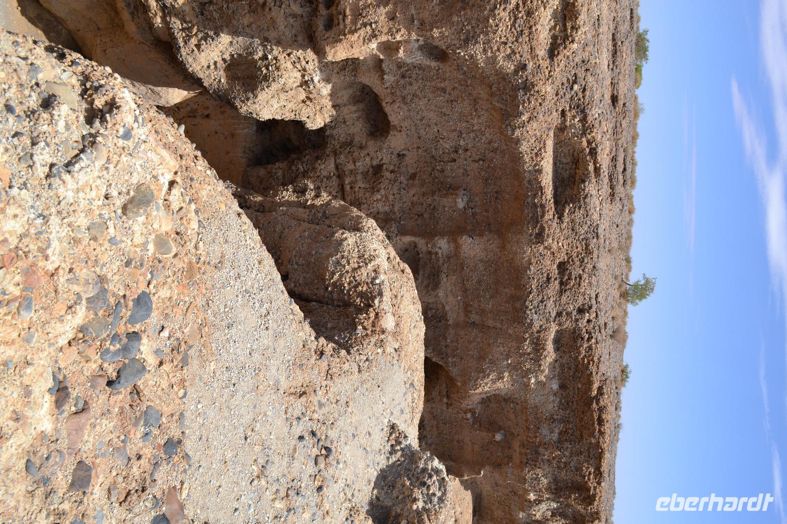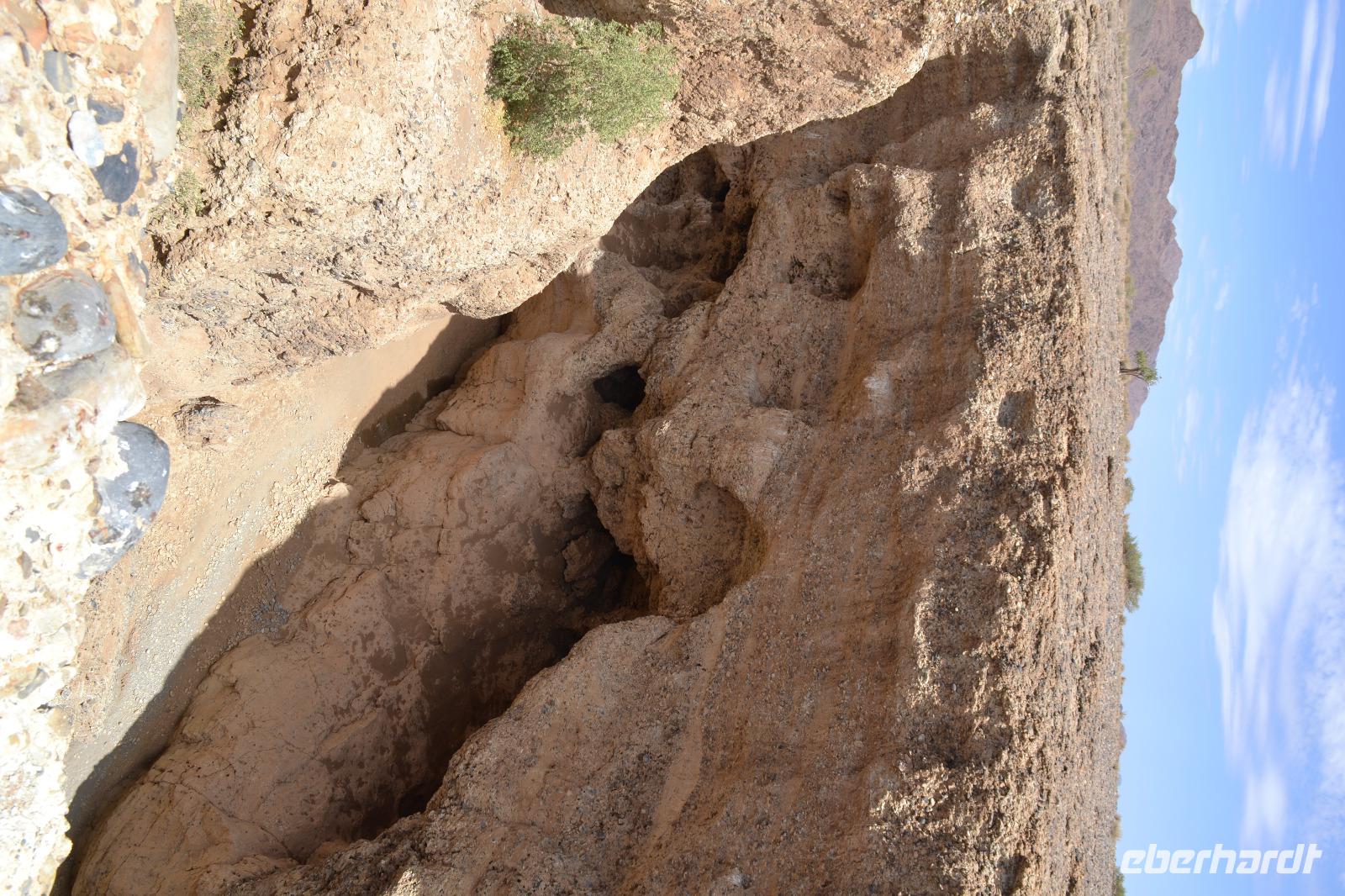 Wir frühstückten in dem neuen Stadthotel und fuhren heute mal etwas später los als gewohnt. Unserer Dagmar ging es heute leider nicht so gut. Sie hatte am Vortag anscheinend etwas Falsches gegessen. Die Kripo besuchte vor der Abfahrt noch die örtliche Polizeistation und schoß ein paar Erinnerungsfotos. Anschließend fuhren wir nicht allzu weit zur Spitzkoppe. Der Inselberg mit 1728 m Höhe wird auch als das „Matterhorn Namibias" bezeichnet. Seit 2011 gilt es als Nationaldenkmal und unterhielt damals eine Polizeistation der Schutztruppe für Deutsch-Südwestafrika. Leider verloren wir auf der gestrigen Holperfahrt unsere Klimaanlage und mussten nun mit offenen Fenstern auskommen. Eine Reparatur oder ein Bustausch war auf Grund der Ferien bis zum 07.01. leider nicht möglich. An dem Berg angekommen unternahmen wir zunächst einen kleinen Spaziergang über die skurrile Fels Landschaft zum Rock Arch, dem Felsbogen. Lange hielt man es auf Grund der Hitze dort allerdings nicht aus. Unter einem schönen Baum veranstalteten wir ein Reste-Picknick, wobei wir einiges am Morgen in Swakopmund frisch einkauften. Unser Highlight war am Ende des Picknicks der Springbock Tanz mit dem anschließend namensgleichen Getränk. Dazu mischten Laura und Dagmar Pfefferminz Likör mit Amarula. Ein leckeres und erfrischendes Schnäpsle. Auf dem Weg zur Lodge hielten wir an den Ständen der Kinder, welche aus Blech gebastelte und bemalte Mobiles verkauften. Wir verteilten die Reste unseres Picknicks an die Kinder, welche sich sehr darüber freuten. Am Nachmittag erreichten wir die Ai Aiba Lodge und bezogen unsere Zimmer am Fuße eines Felsens im Erongo Gebirge. Wie regenerierten uns bei einem kühlen Getränk oder einem kleinen Schläfchen. 17 Uhr ging es dann auf eine Sundowner Fahrt durch das Erongo Tal. Auf dieser Tour mit dem Jeep sahen wir unterschiedlichste Landschaftsbilder, Giraffen, Warzenschweine, Oryx und Wandmalereien. Diese dienten der Weiter Erzählung von Geschichten, waren Veranstaltungsort für Zeremonien und stellten die Geschichte der Ureinwohner dar. An einem höher gelegenen Felsen legten wir mit den Jeeps eine Pause ein. Jeder bekam ein kühles Getränk für den Sonnenuntergang im Gebirge, sowie ein paar Naschereien. Am Abend kamen wir in der Dunkelheit zurück in das Hotel, wo bereits N. Und Dagmar hungrig auf uns und das Abendessen warteten.