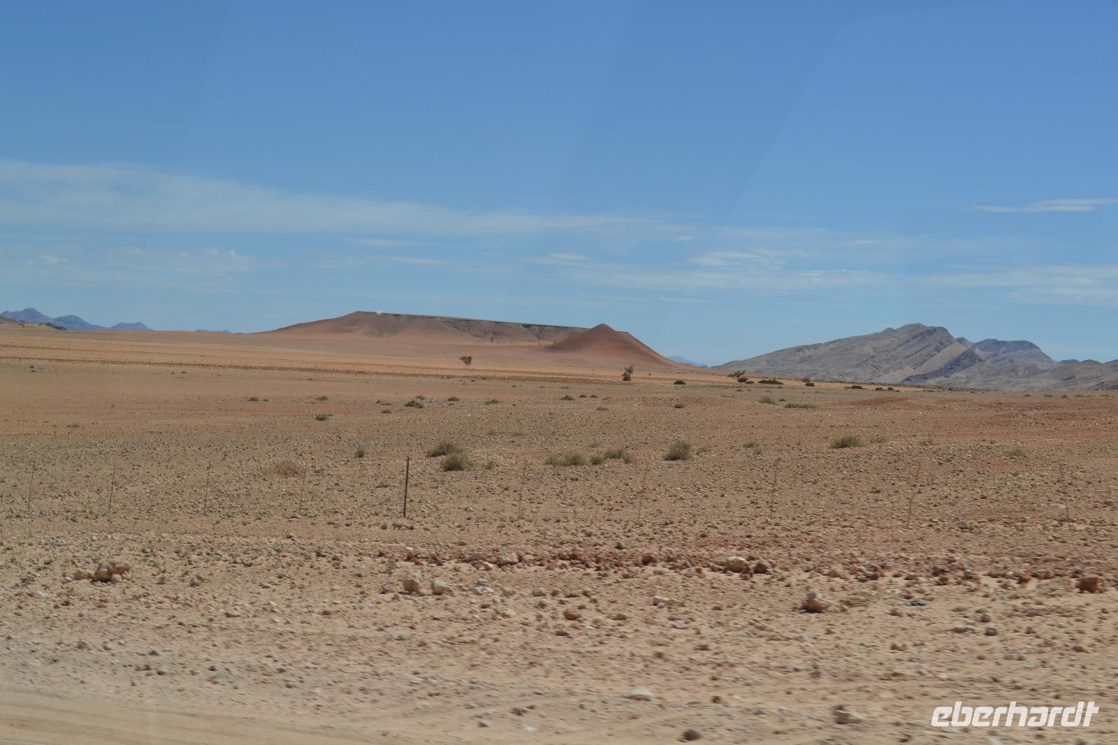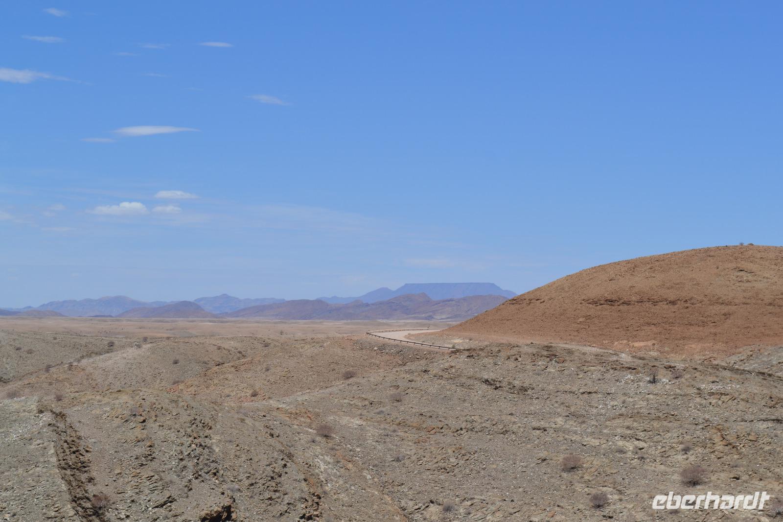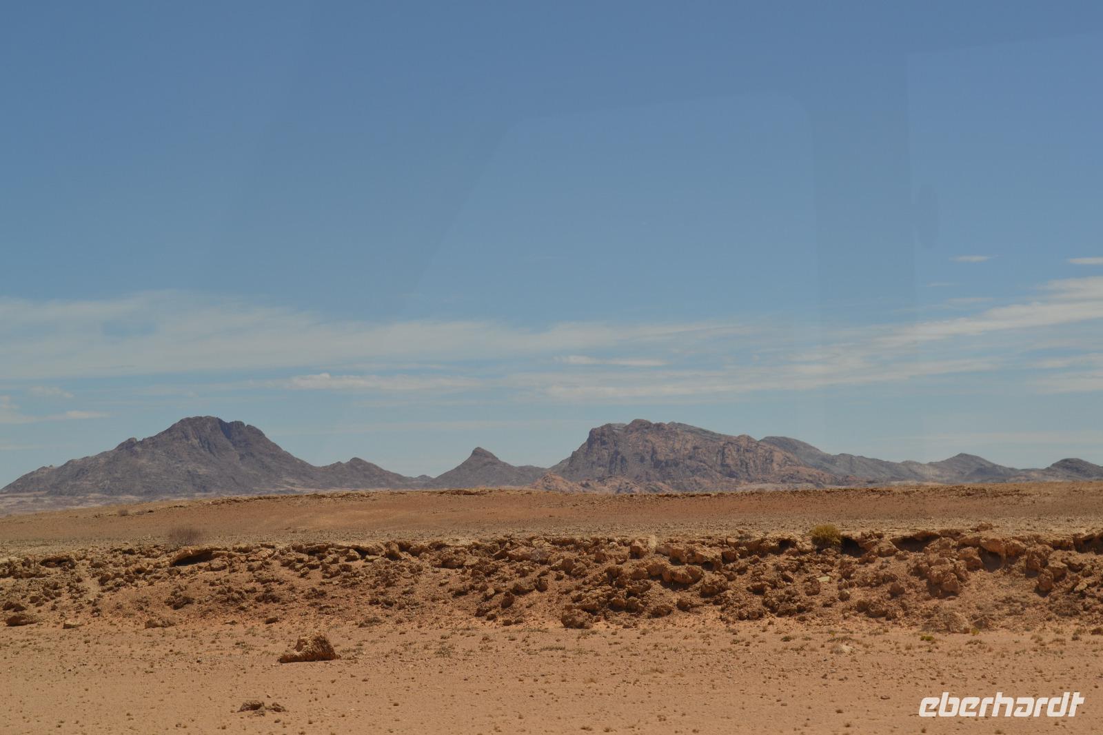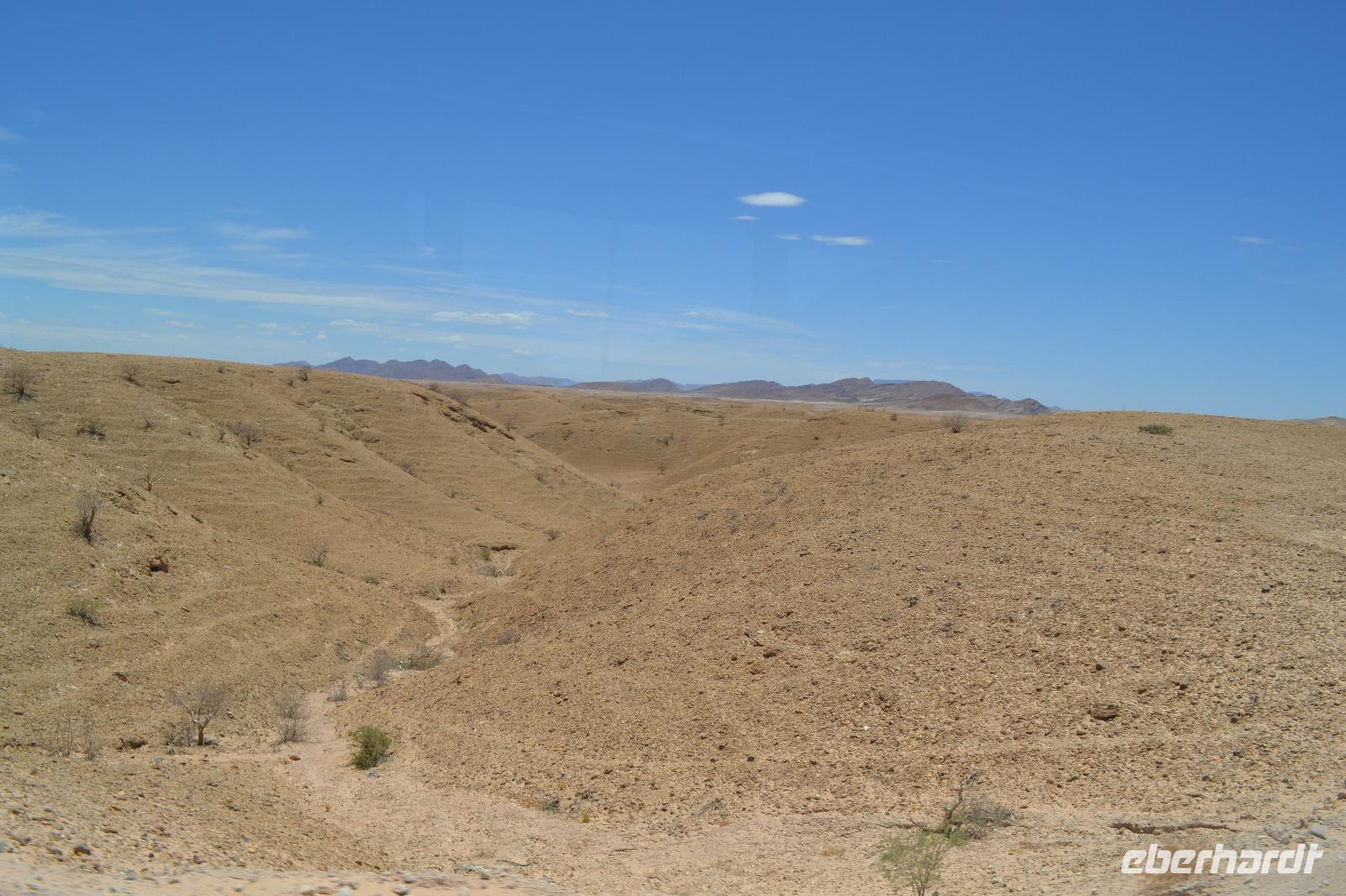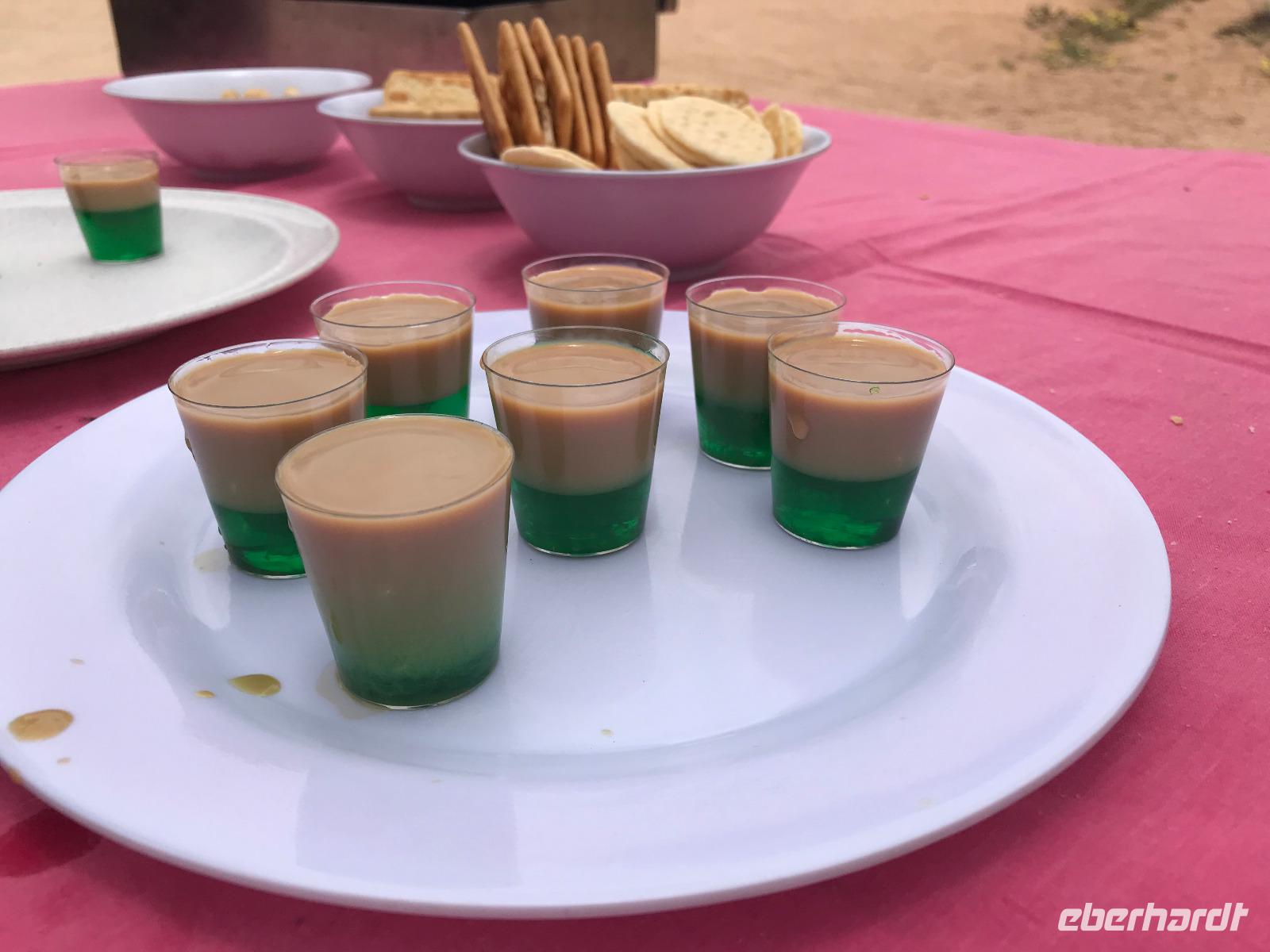 Wir verabschiedeten uns beim Frühstück von der traumhaften Natur mit den dort lebenden Tieren und fuhren weiter gen Osten! Nach einer kurzen Toilettenpause in dem kleinen Ort Mariental ging es über ein extremes Pad nach Maltahöhe. Auf dem landschaftlich kargen Weg erklärte uns Dagmar umfassend die Hintergründe der 11 ethnischen Gruppen Namibia, deren Sprache und Gebiet. Besonders die San und Khoikhoi erklärte sie genau anhand der äußerlichen Merkmale. Namibia ist extrem dünn besiedelt und nach der Mongolei der Staat mit der geringsten Bevölkerungsdichte weltweit. Die Bevölkerung verteilt sich ungleichmäßig und konzentriert sich auf wenige Städte. Hier kam der dritte alkoholische Tipp ins Spiel. Man solle viel Wein trinken, denn dieser enthält wichtige Vitamine. In Maltahöhe leben ca. 50 deutsche Mischlinge und etwa 2.000 San. Wir legten unsere Mittagspause in einem deutschen Country Hotel ein und genossen eine kurze Erholungspause der holprigen Fahrt. Ein leckeres und leichtes Sandwich mit einem erfrischenden Rock Shandy, dem national Getränk des Landes! Nun folgte der am schlechtesten gecradelte Pad der gesamten Reise. Unserer Busfahrer warf den Staubsauger im hinteren Teil des Busses an sonst säßen wir in einer Staubwolke. Die Fahrt durch die Randstufe glich einer Mondlandschaft. Am Nachmittag erreichten wir unser Wüstenschloss, wo wir den Nachmittag nutzen um uns zu entspannen und auf den Silvester Abend vorzubereiten. 19 Uhr trafen wir uns an der Feuerschale und beobachteten den traumhaften Sonnenuntergang entlang der Randstufe. Bei einem kühlen Getränk und leckeren Häppchen starteten wir in den letzten Abend des Jahres. Mit netten Gesprächen lernten wir uns besser kennen. Anschließend aßen wir in einer romantisch beleuchteten Atmosphäre in der dunklen Wüste. Es gab ein traditionelles Braain mit verschiedenem Gemüse, Fisch und Fleischarten. Die letzten Stunden von 2019 verbrachten wir mit der Forschung von Sternbildern und einem kleinen Afrikaans Sprachkur. Am späten Abend boten uns die Hotelangestellten noch eine kleine musikalische und tänzerische Vorführung. Kurz vor Mitternacht wurde das neue Jahr angezündet und ein Countdown zählte das neue Jahr ein. Mit einem Glas Sekt in der Hand tanzten wir zu der A Capella Musik der Angestellten. Nachdem alle Gläser geleert waren fielen wir müde in unsere Betten.