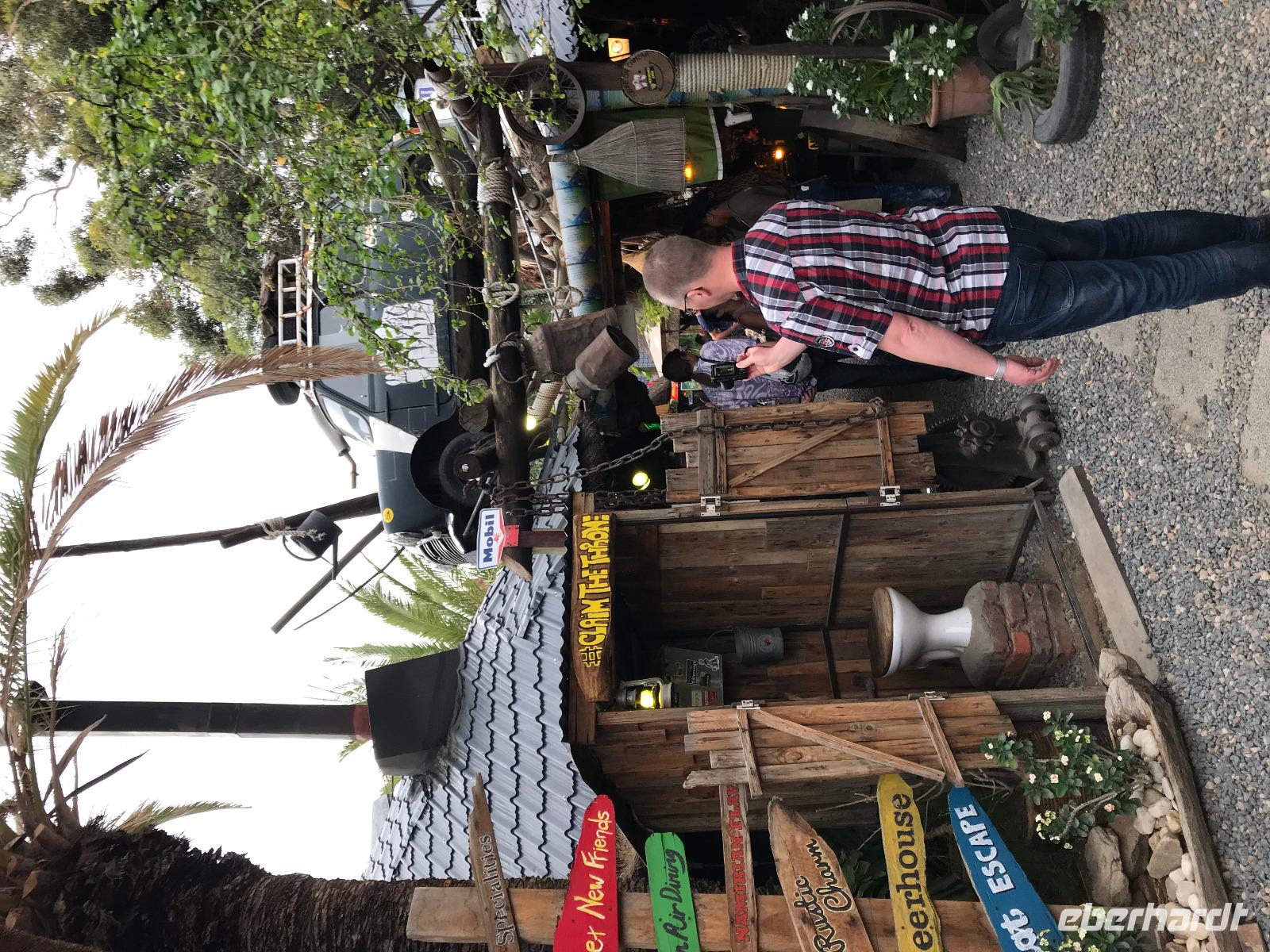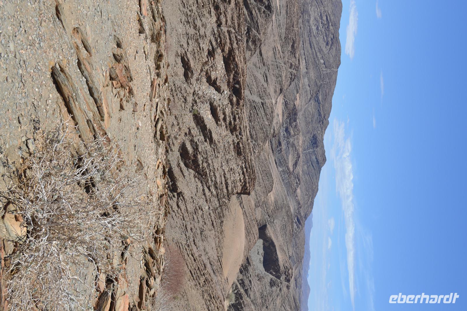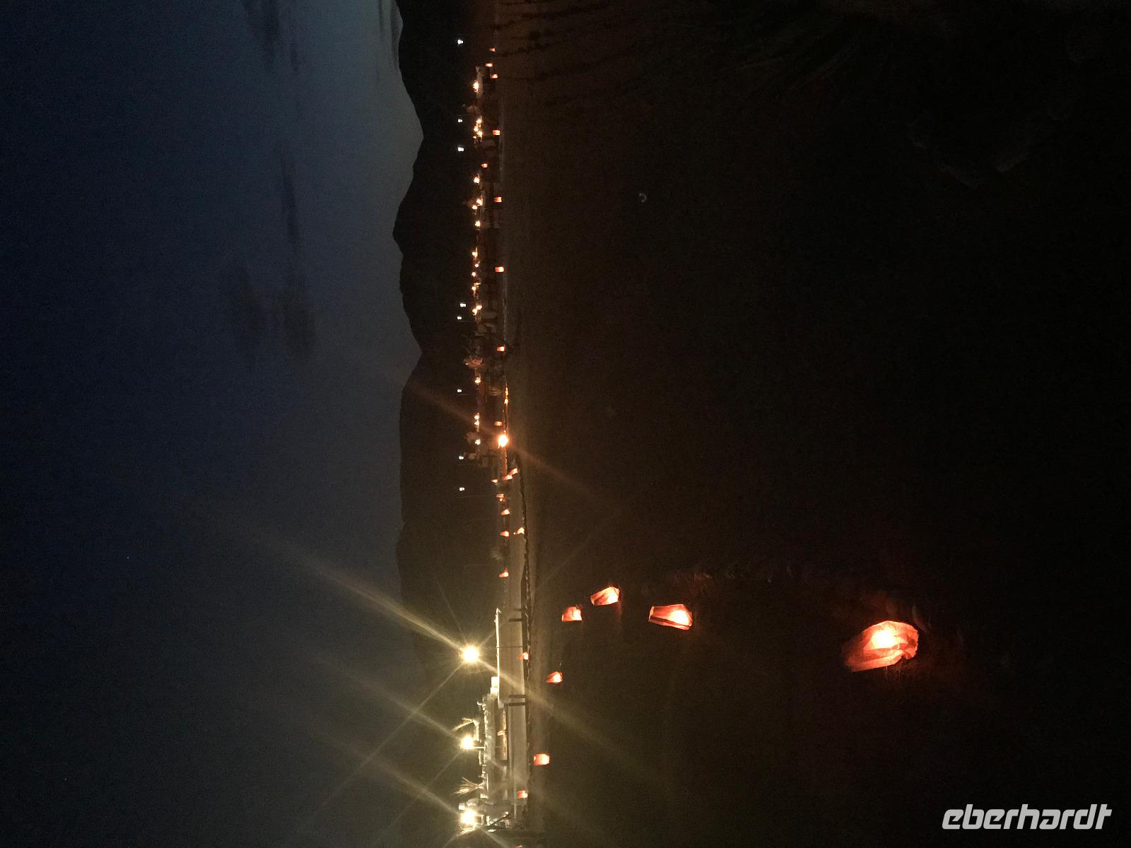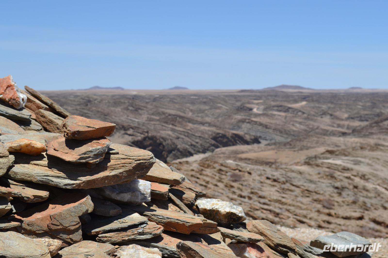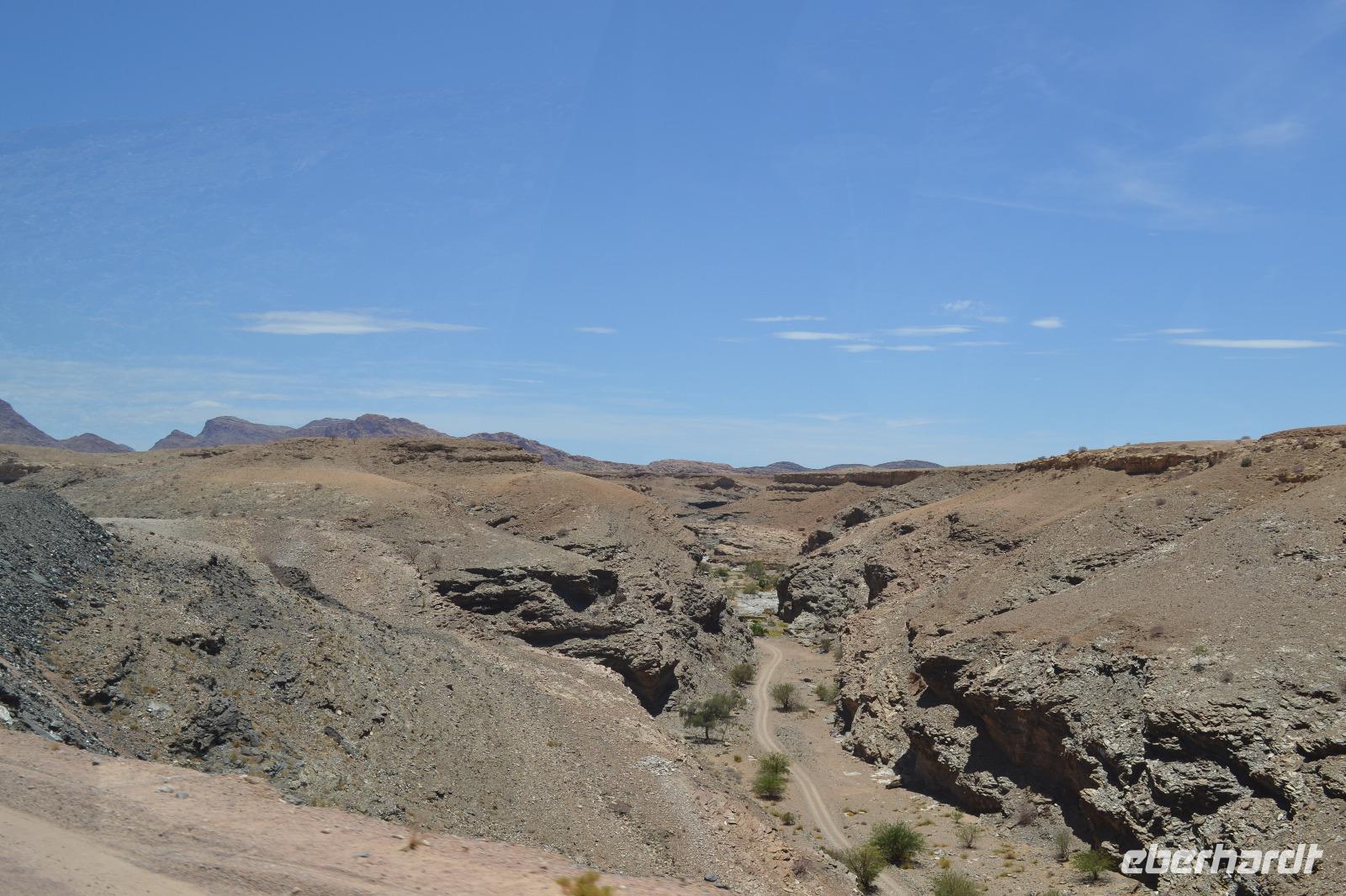 Wir verabschiedeten uns beim Frühstück von der traumhaften Natur mit den dort lebenden Tieren und fuhren weiter gen Osten! Nach einer kurzen Toilettenpause in dem kleinen Ort Mariental ging es über ein extremes Pad nach Maltahöhe. Auf dem landschaftlich kargen Weg erklärte uns Dagmar umfassend die Hintergründe der 11 ethnischen Gruppen Namibia, deren Sprache und Gebiet. Besonders die San und Khoikhoi erklärte sie genau anhand der äußerlichen Merkmale. Namibia ist extrem dünn besiedelt und nach der Mongolei der Staat mit der geringsten Bevölkerungsdichte weltweit. Die Bevölkerung verteilt sich ungleichmäßig und konzentriert sich auf wenige Städte. Hier kam der dritte alkoholische Tipp ins Spiel. Man solle viel Wein trinken, denn dieser enthält wichtige Vitamine. In Maltahöhe leben ca. 50 deutsche Mischlinge und etwa 2.000 San. Wir legten unsere Mittagspause in einem deutschen Country Hotel ein und genossen eine kurze Erholungspause der holprigen Fahrt. Ein leckeres und leichtes Sandwich mit einem erfrischenden Rock Shandy, dem national Getränk des Landes! Nun folgte der am schlechtesten gecradelte Pad der gesamten Reise. Unserer Busfahrer warf den Staubsauger im hinteren Teil des Busses an sonst säßen wir in einer Staubwolke. Die Fahrt durch die Randstufe glich einer Mondlandschaft. Am Nachmittag erreichten wir unser Wüstenschloss, wo wir den Nachmittag nutzen um uns zu entspannen und auf den Silvester Abend vorzubereiten. 19 Uhr trafen wir uns an der Feuerschale und beobachteten den traumhaften Sonnenuntergang entlang der Randstufe. Bei einem kühlen Getränk und leckeren Häppchen starteten wir in den letzten Abend des Jahres. Mit netten Gesprächen lernten wir uns besser kennen. Anschließend aßen wir in einer romantisch beleuchteten Atmosphäre in der dunklen Wüste. Es gab ein traditionelles Braain mit verschiedenem Gemüse, Fisch und Fleischarten. Die letzten Stunden von 2019 verbrachten wir mit der Forschung von Sternbildern und einem kleinen Afrikaans Sprachkur. Am späten Abend boten uns die Hotelangestellten noch eine kleine musikalische und tänzerische Vorführung. Kurz vor Mitternacht wurde das neue Jahr angezündet und ein Countdown zählte das neue Jahr ein. Mit einem Glas Sekt in der Hand tanzten wir zu der A Capella Musik der Angestellten. Nachdem alle Gläser geleert waren fielen wir müde in unsere Betten.