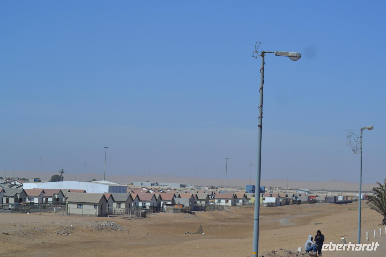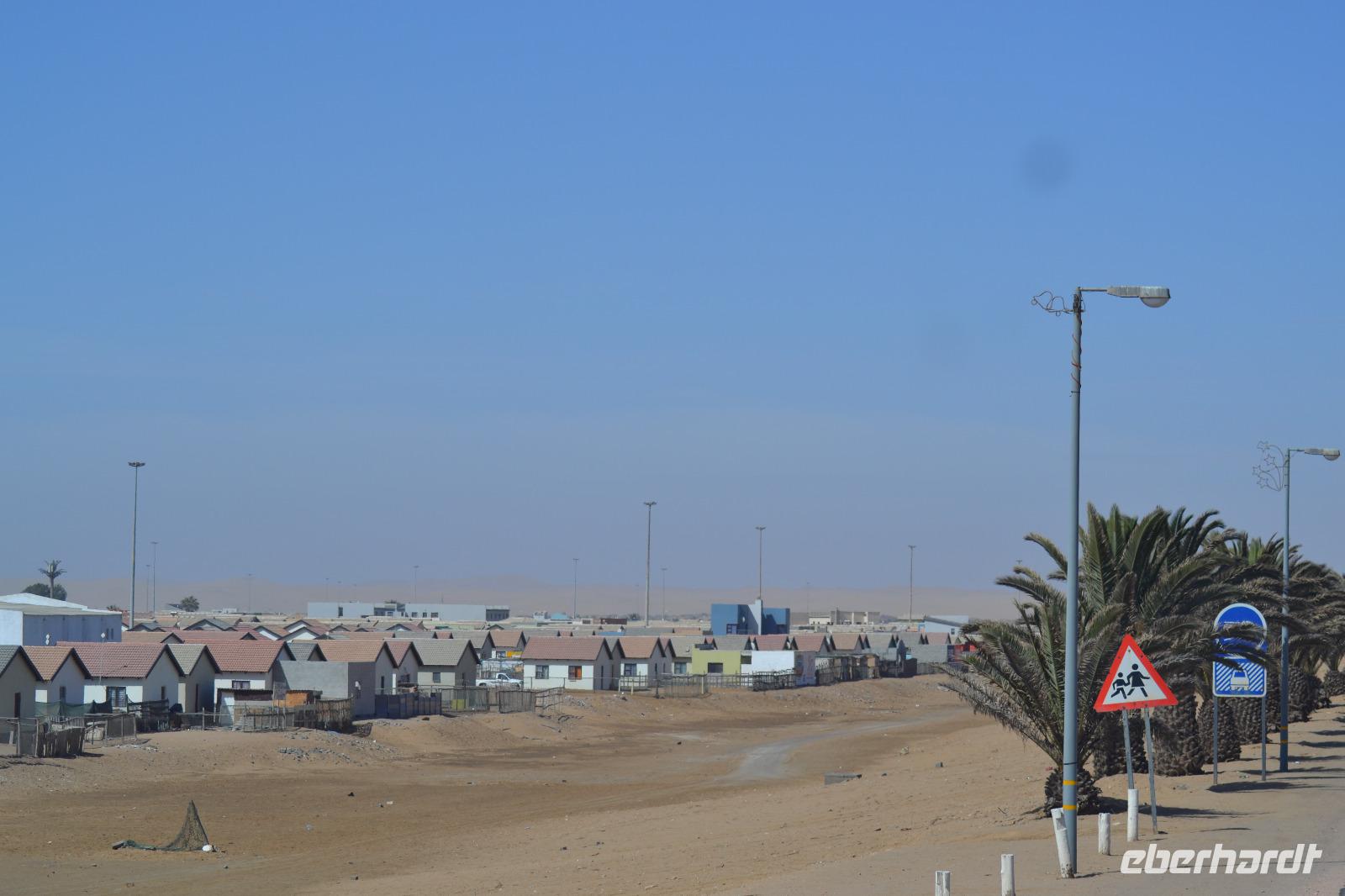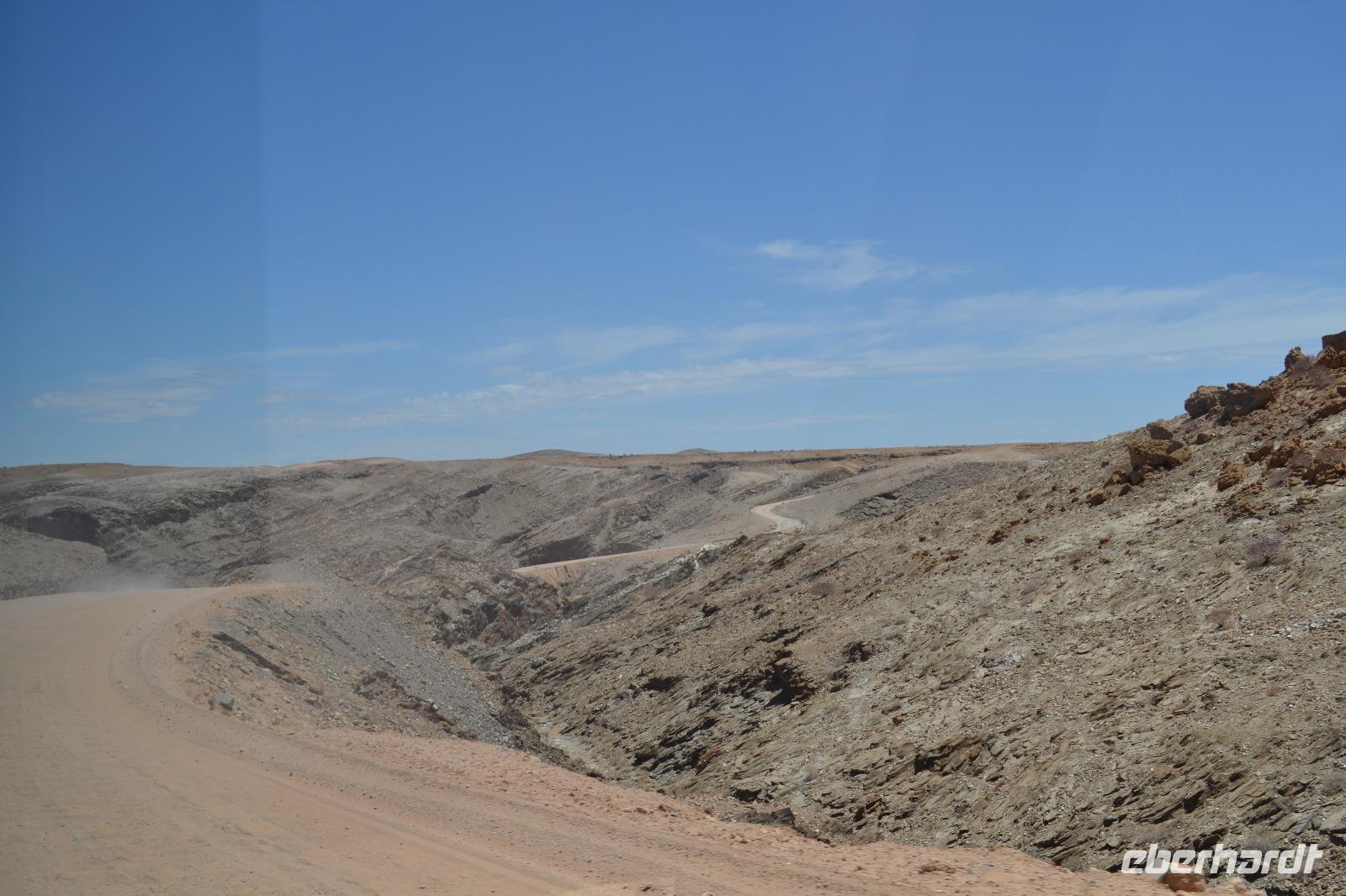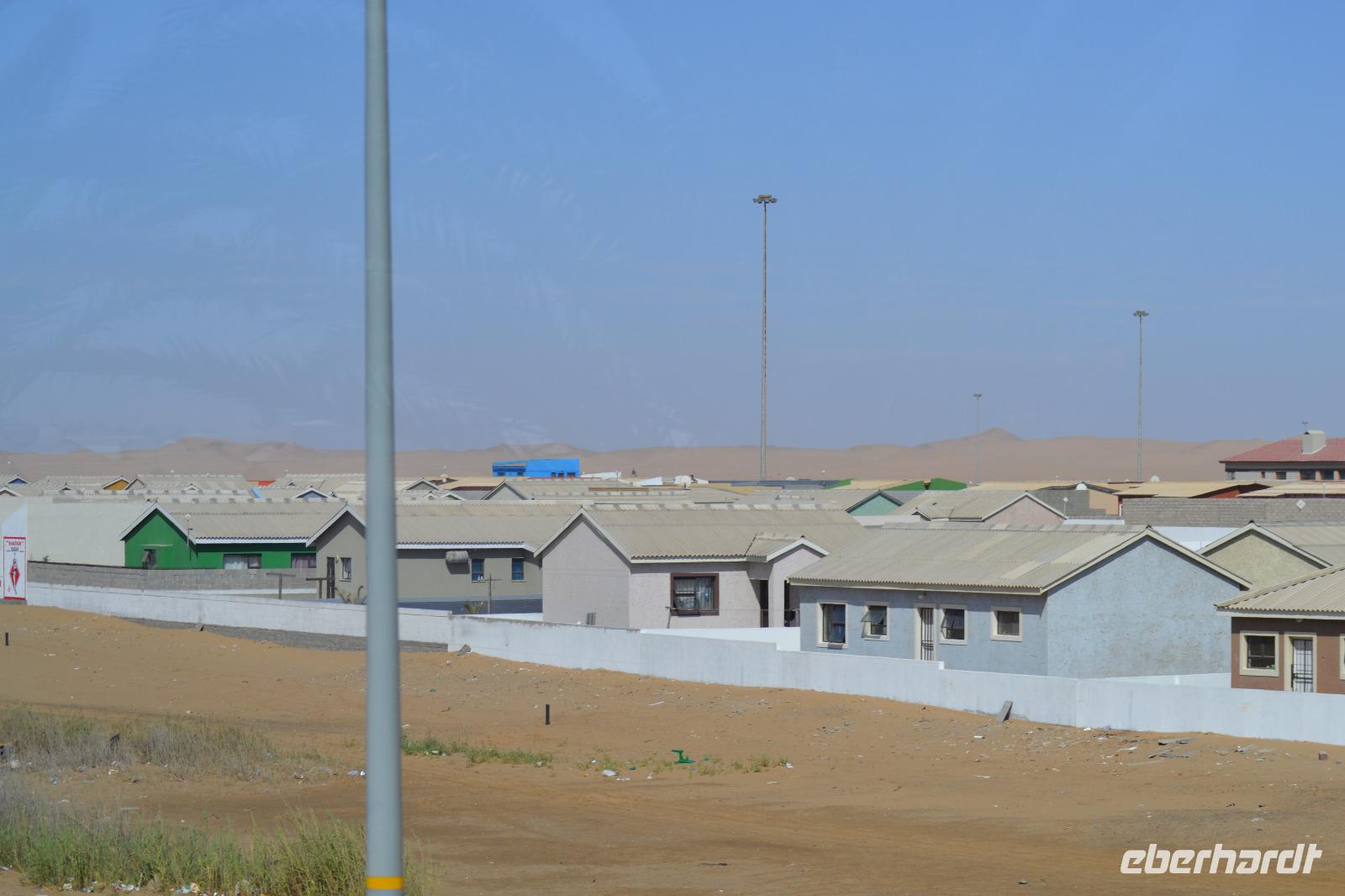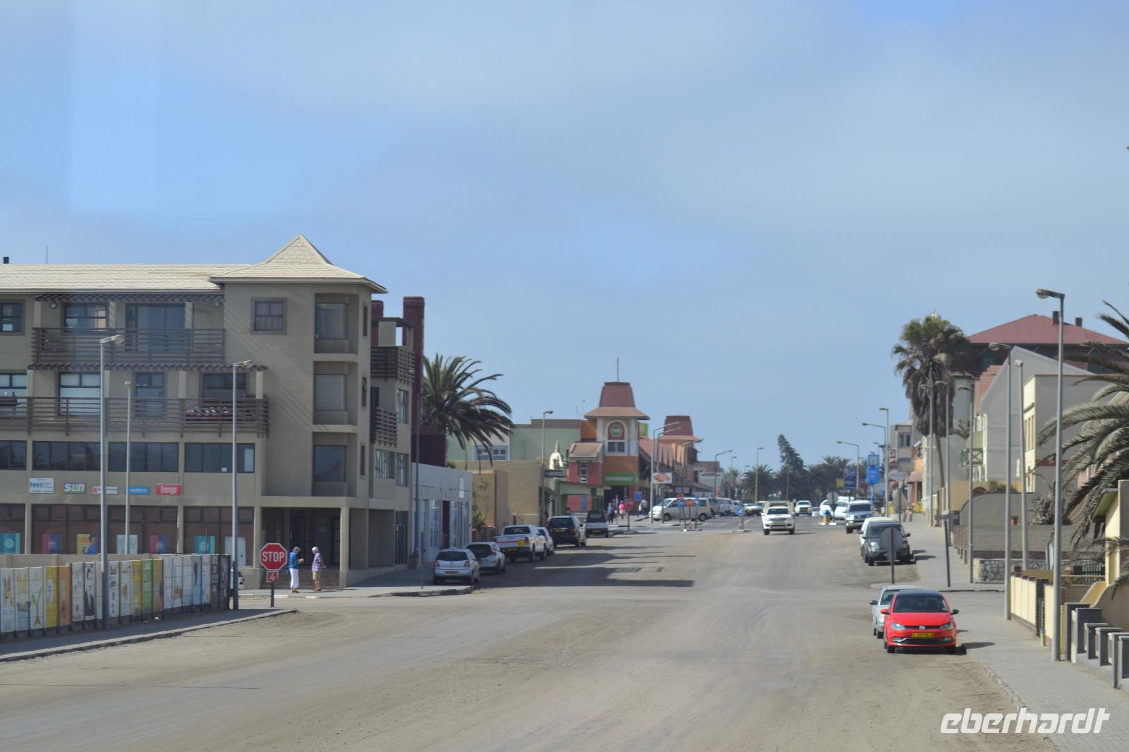 Es war wieder eine kurze Nacht, denn wir fuhren bereits 8 Uhr am Hotel los. Heute stand ein langer Tag im Bus bevor. Auf einer der schlechtesten Straßen Namibias. Nach der ersten längeren Strecke hielten wir in einer Kleinstadt mit nur ca. 80 Einwohnern namens Solitaire. Dort gibt es eine kleine Bäckerei mit europäischen Leckereien. Besonders beliebt ist der frische Apfelkuchen. Auf der ca. 7 stündigen Fahrt durch die Mondlandschaft legten wir unterschiedliche Fotostopps ein. Zunächst am Schild des südlichen Wendekreises des Steinbocks auf dem 23,5 Breitengrad. Auf ihnen steht die Sonne am Mittag zur jeweiligen Sonnenwende im Zenit. Dann fuhren wir über den Gaub Pass bis zum Kuiseb Canyon. Von 1837 bis 1977 hat der Kuiseb River nur 14-mal den Atlantik erreicht. Endlich kühlte es sich ein wenig ab und wir fotografierten den Köcherbaumwald bestehend aus 3 Bäumen. Am Nachmittag trafen wir in der Hafenstadt Walvis Bay ein und sahen die erste AIDA des neuen Jahres im Hafen liegen. An einer Bucht in der Nähe des Hafens tummelten sich tausende von Zwergflamingos die ihr Futter im Wasser fischten. Nach der kurzen Fotopause fuhren wir vorbei am dem neu angelegten Stadtteil Long Beach über die asphaltierte Straße nach Skwakopmund. In dieser Stadt wurde Dagmar geboren. Sie zeigte uns die alten deutschen Gebäude wie das Amtsgericht, die Schule, Hotels, das Bismarck Haus und vieles mehr. Leider blieb uns für die Erkundungstour auf eigene Faust nur wenig Zeit, da uns die Fahrt aus der Wüste zu viel Zeit gekostet hat. Wir erreichten das erst im Frühjahr 2019 eröffnete Hotel Atlantic Garden und machten uns auf den Zimmern frisch. Wir waren vom dem Tag auf der Schotterstraße sehr erschöpft und freuten uns auf das Abendessen. Gemeinsam spazierten wir entlang der Promenade zur Jetty 1905. Das Restaurant liegt auf Seebrücke mit einem traumhaften Ausblick auf das Wasser und den Strand. Wir ließen uns das Essen schmecken und vielen bei angenehmen Temperaturen müde ins Bett.
