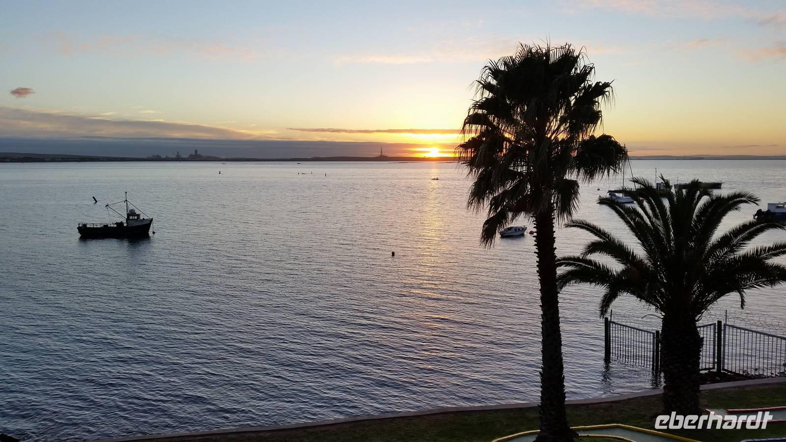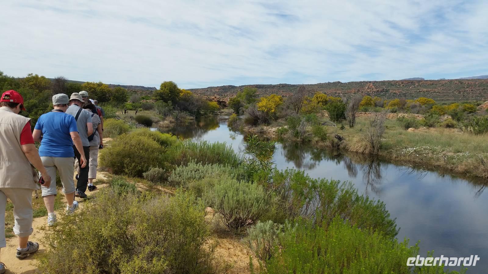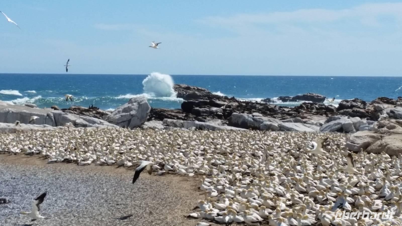 Wieder gut erholt und von einem tollen Sonnenaufgang geweckt, freuten wir uns auf die heutige Weiterreise mit Clanwilliam als Ziel. Bevor es richtig losging, besuchten wir das Einkaufszentrum, denn für unsere gemeinsamen Picknicks will ja schließlich vorgesorgt sein. Dann fuhr uns Scalla über Teerstraßen und Dirt Road vorbei an Velddrift und Elandsberg erst einmal nach Lambert´s Bay. Dort konnten wir eine erstaunlich große Brutkolonie der Kaptölpel bewundern. Dann fuhren wir zu einem schönen Aussichtspunkt und nutzen die tolle Kulisse für unser erstes Picknick. Bei Wurst, Käse, Tomaten und frische Brötchen stärkten wir uns erst einmal. Nun war es auch nicht mehr weit nach Clanwilliam in den Zederbergen. Dieses kleine Örtchen, welches als eine der ältesten Städte Südafrikas gilt, machten wir noch einmal bei einem Spaziergang unsicher. Die Gegend ist vor allem aber auch bekannt für seine großen Rooibos-Farmen. Leider blieb uns die Verkostung des Rooibos-Tees verwehrt, da das kleine Gartencafé leider Ruhetag hatte. Den erlebnisreichen Tag ließen wir in einem nahgelegenen Restaurant ausklingen, in dem wir noch eine unterhaltsame Tanzvorführung der Namas erleben durften...ein gelungener Abschluss!