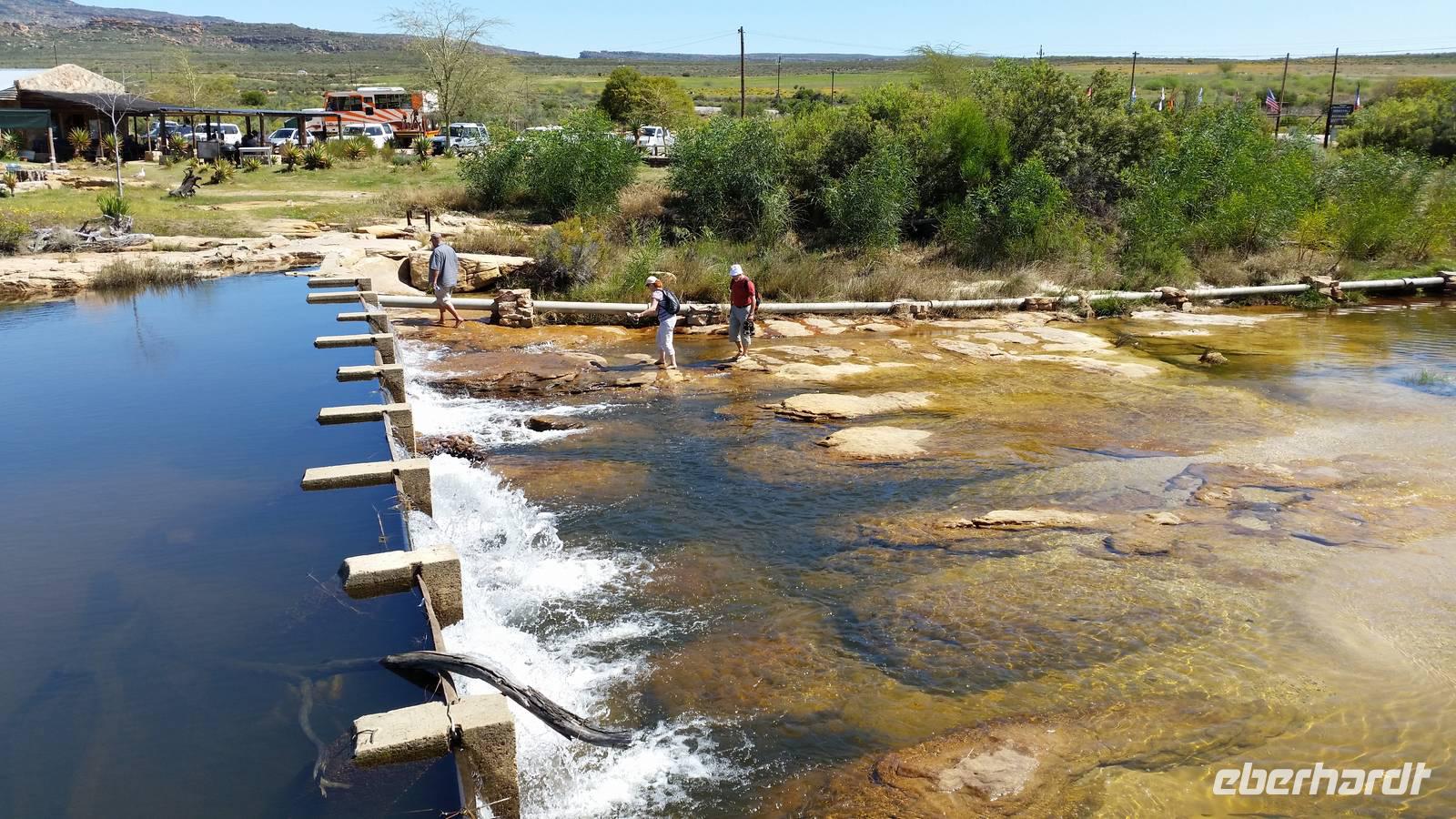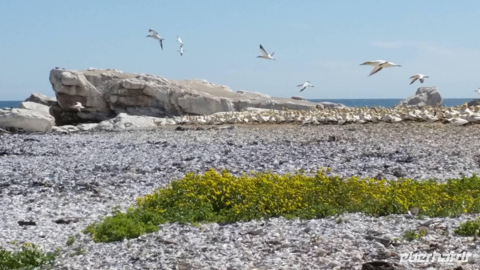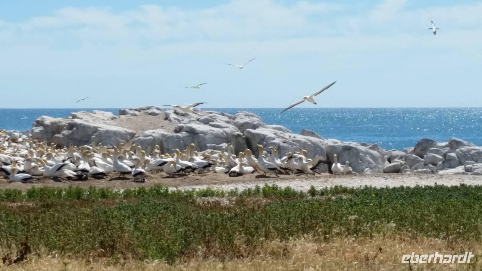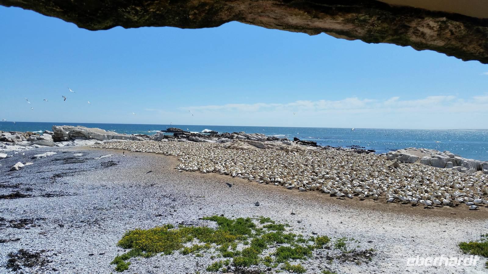 Wieder gut erholt und von einem tollen Sonnenaufgang geweckt, freuten wir uns auf die heutige Weiterreise mit Clanwilliam als Ziel. Bevor es richtig losging, besuchten wir das Einkaufszentrum, denn für unsere gemeinsamen Picknicks will ja schließlich vorgesorgt sein. Dann fuhr uns Scalla über Teerstraßen und Dirt Road vorbei an Velddrift und Elandsberg erst einmal nach Lambert´s Bay. Dort konnten wir eine erstaunlich große Brutkolonie der Kaptölpel bewundern. Dann fuhren wir zu einem schönen Aussichtspunkt und nutzen die tolle Kulisse für unser erstes Picknick. Bei Wurst, Käse, Tomaten und frische Brötchen stärkten wir uns erst einmal. Nun war es auch nicht mehr weit nach Clanwilliam in den Zederbergen. Dieses kleine Örtchen, welches als eine der ältesten Städte Südafrikas gilt, machten wir noch einmal bei einem Spaziergang unsicher. Die Gegend ist vor allem aber auch bekannt für seine großen Rooibos-Farmen. Leider blieb uns die Verkostung des Rooibos-Tees verwehrt, da das kleine Gartencafé leider Ruhetag hatte. Den erlebnisreichen Tag ließen wir in einem nahgelegenen Restaurant ausklingen, in dem wir noch eine unterhaltsame Tanzvorführung der Namas erleben durften...ein gelungener Abschluss!