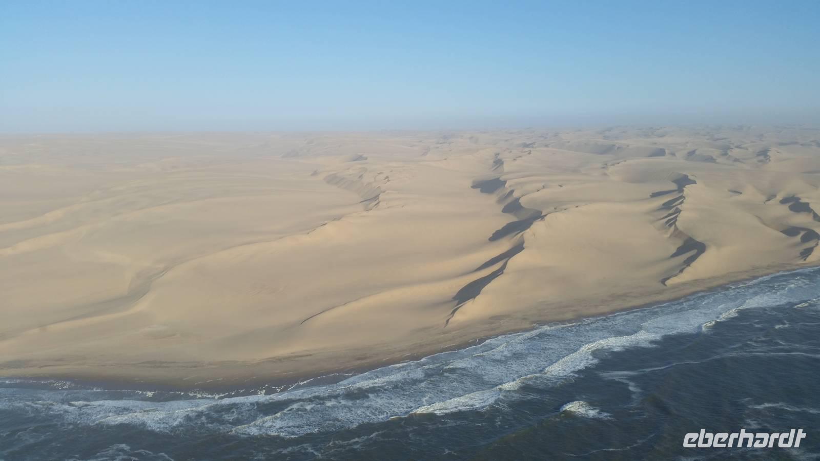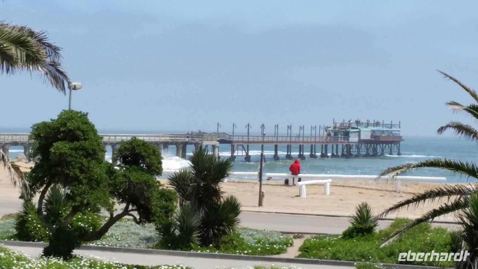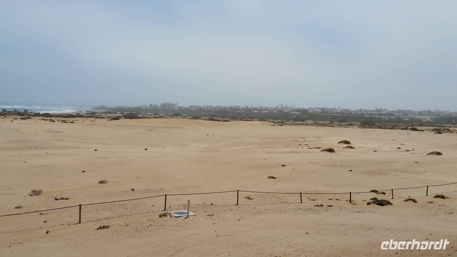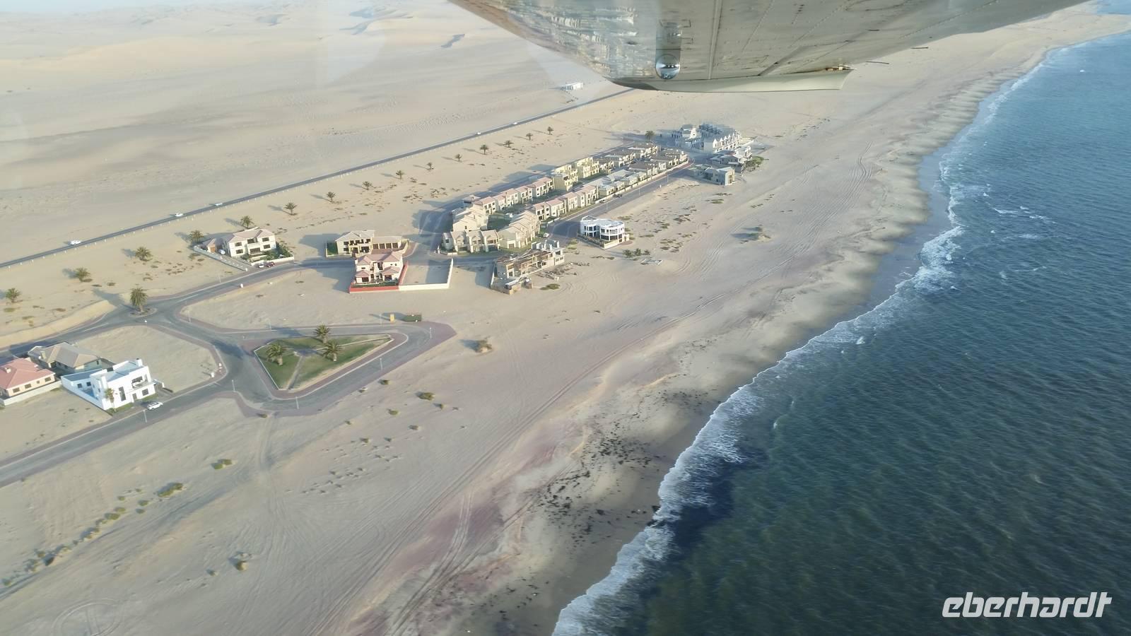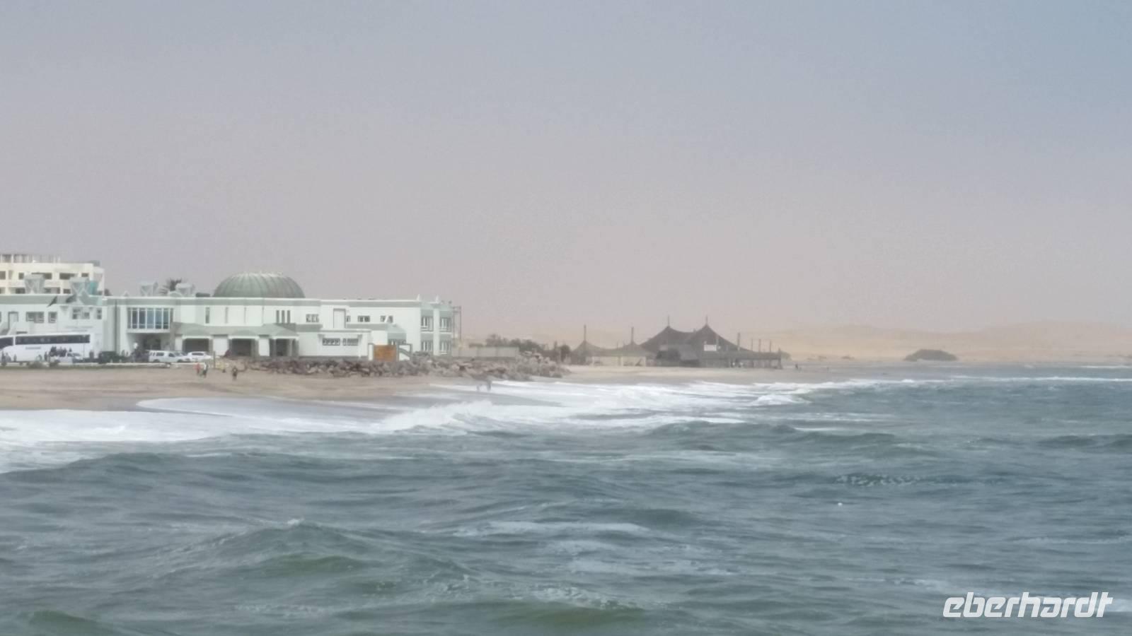 Nach den heißen Tagen in der Wüste war unser heutiges Ziel Swakopmund, das uns mit einer frischen Meeresbrise des Atlantiks erwartete. Doch auf der Strecke dahin erlebten wir landschaftlich einige Höhepunkte. Erst stoppten wir am Wendekreis des Steinbocks, dem Tropic of capricorn, dann fuhren wir über den eindrucksvollen Gaub-Pass und schließlich erreichten wir den Kuiseb Canyon, der uns ebenfalls mächtige Panoramen bietete. Und plötzlich? Plötzlich war alles flach, sandig und weit und breit eine unendliche Weite. Je näher wir ans Meer kamen, desto kühler und nebliger wurde es. In Walvis Bay machten wir noch ein kleines Picknick bei den Flamingos und rollten dann weiter. Nachdem wir in Swakopmund unser Zimmer bezogen hatten, spazierten wir ein kleines Stück in dem beschaulichen Städtchen. Der restliche Nachmittag stand dann zur freien Verfügung. Einige Gäste nutzten die Zeit, um sich die Dünenmeere und "Sehenswürdigkeiten" der Namib von oben mit einer Cessna anzusehen. Ein eindrucksvolles Erlebnis!