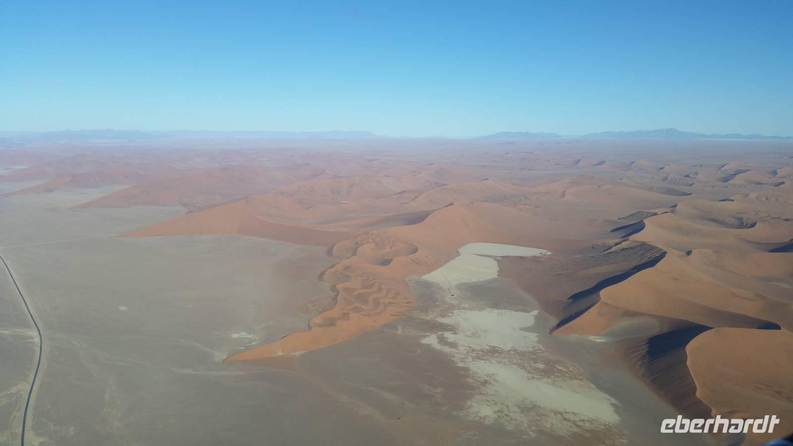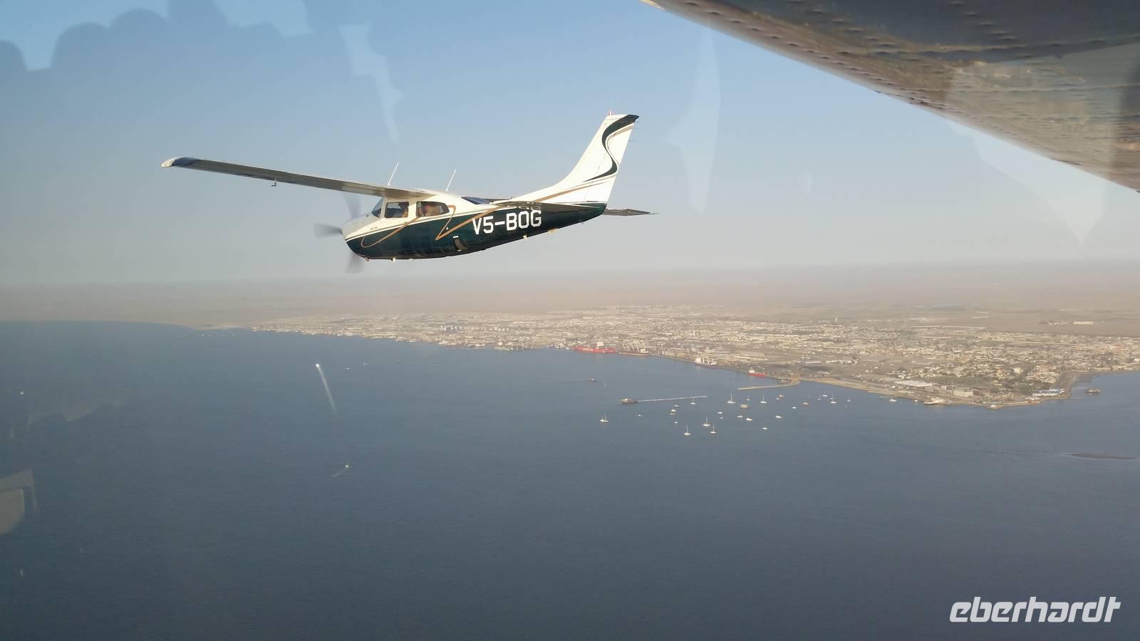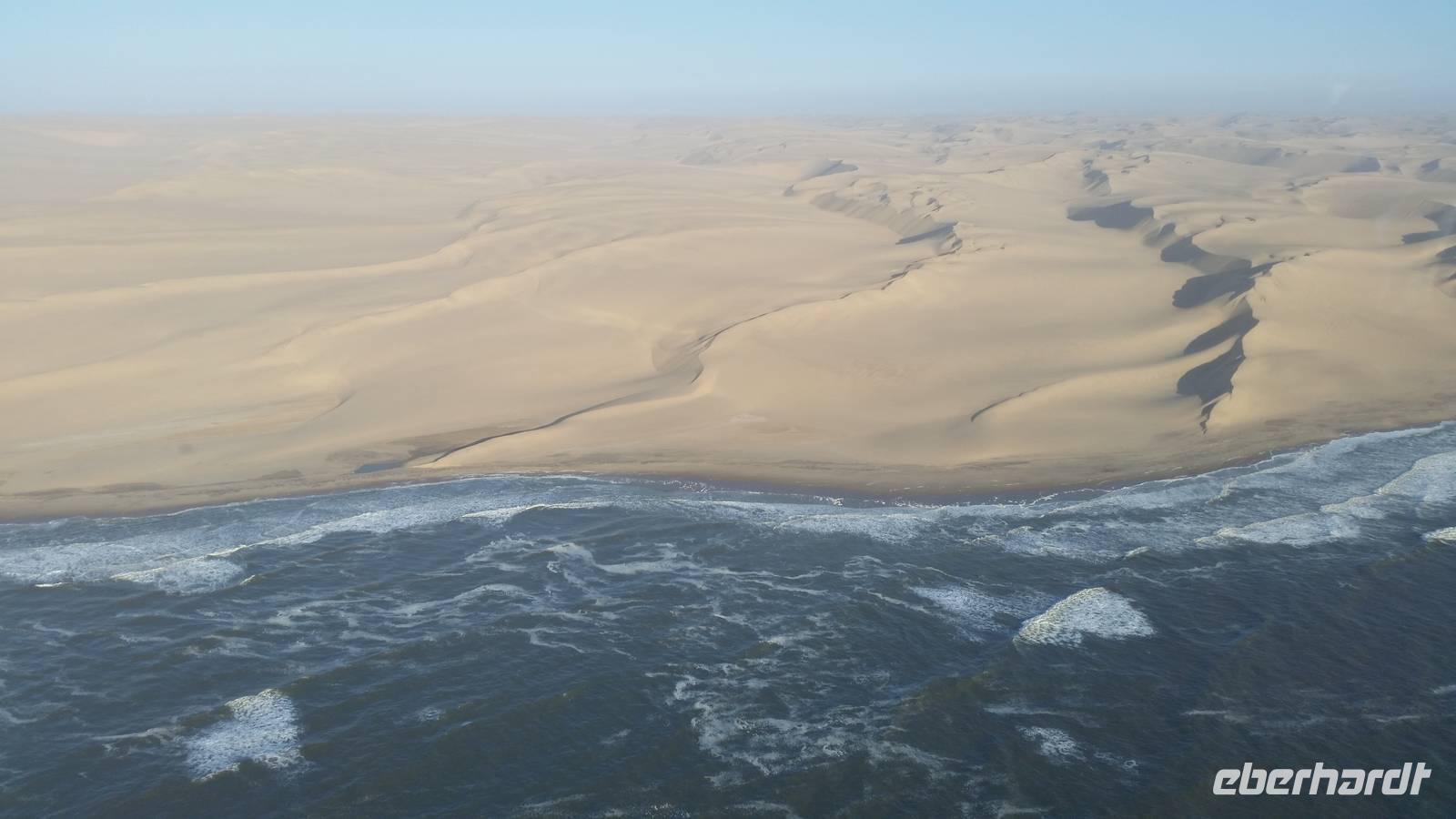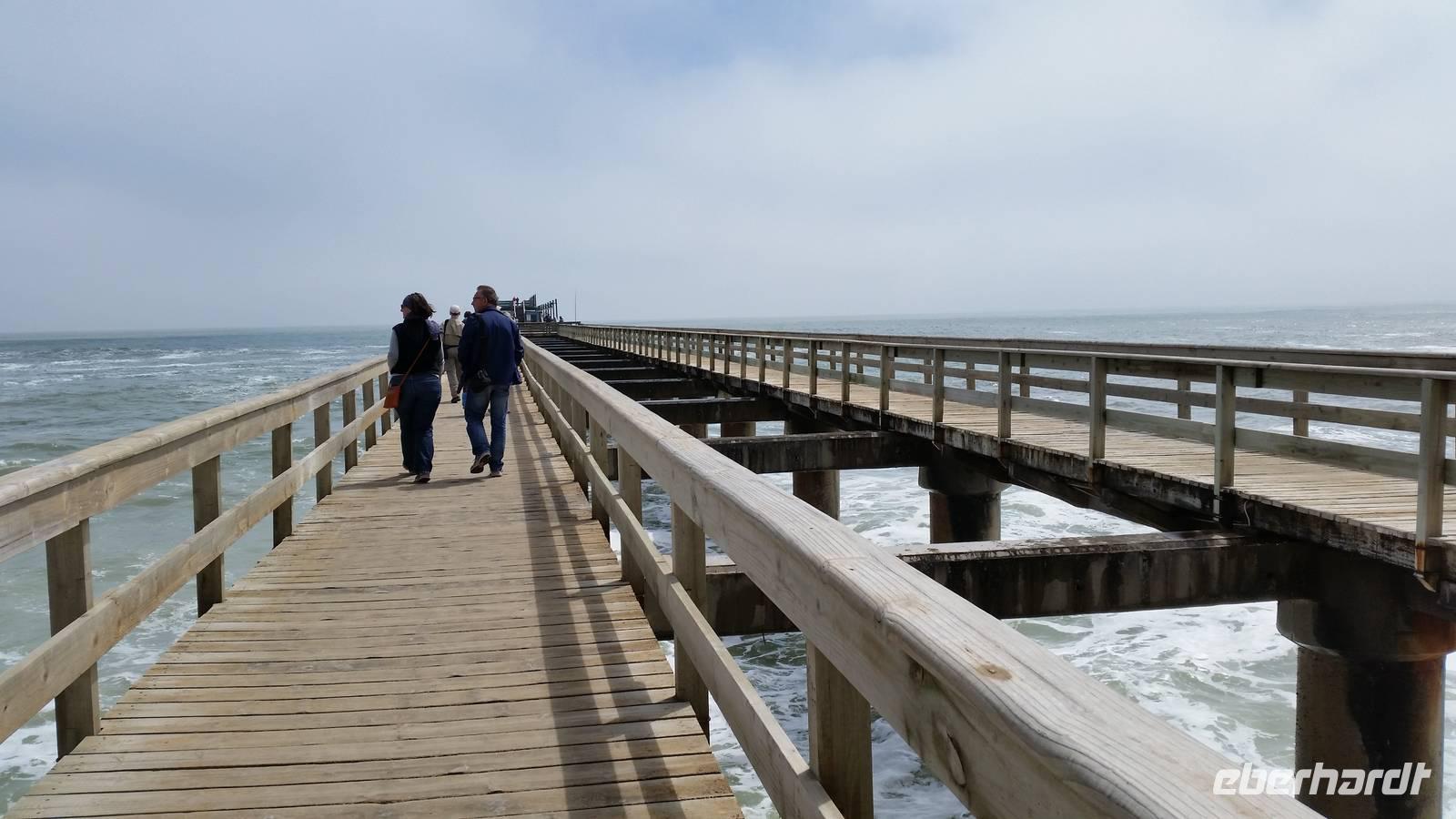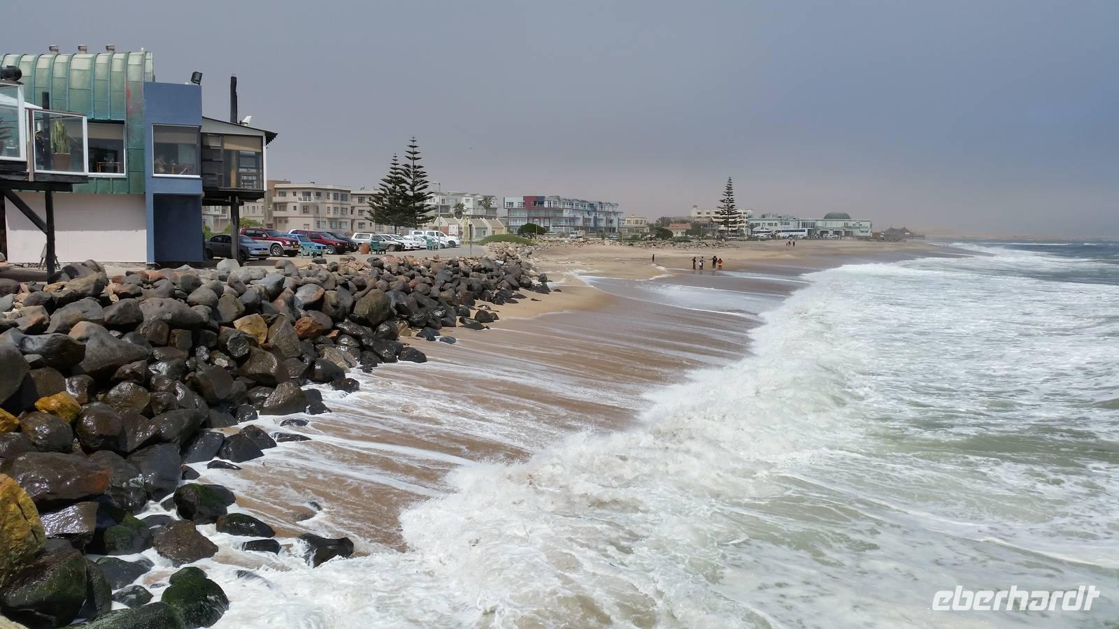 Nach den heißen Tagen in der Wüste war unser heutiges Ziel Swakopmund, das uns mit einer frischen Meeresbrise des Atlantiks erwartete. Doch auf der Strecke dahin erlebten wir landschaftlich einige Höhepunkte. Erst stoppten wir am Wendekreis des Steinbocks, dem Tropic of capricorn, dann fuhren wir über den eindrucksvollen Gaub-Pass und schließlich erreichten wir den Kuiseb Canyon, der uns ebenfalls mächtige Panoramen bietete. Und plötzlich? Plötzlich war alles flach, sandig und weit und breit eine unendliche Weite. Je näher wir ans Meer kamen, desto kühler und nebliger wurde es. In Walvis Bay machten wir noch ein kleines Picknick bei den Flamingos und rollten dann weiter. Nachdem wir in Swakopmund unser Zimmer bezogen hatten, spazierten wir ein kleines Stück in dem beschaulichen Städtchen. Der restliche Nachmittag stand dann zur freien Verfügung. Einige Gäste nutzten die Zeit, um sich die Dünenmeere und "Sehenswürdigkeiten" der Namib von oben mit einer Cessna anzusehen. Ein eindrucksvolles Erlebnis!
