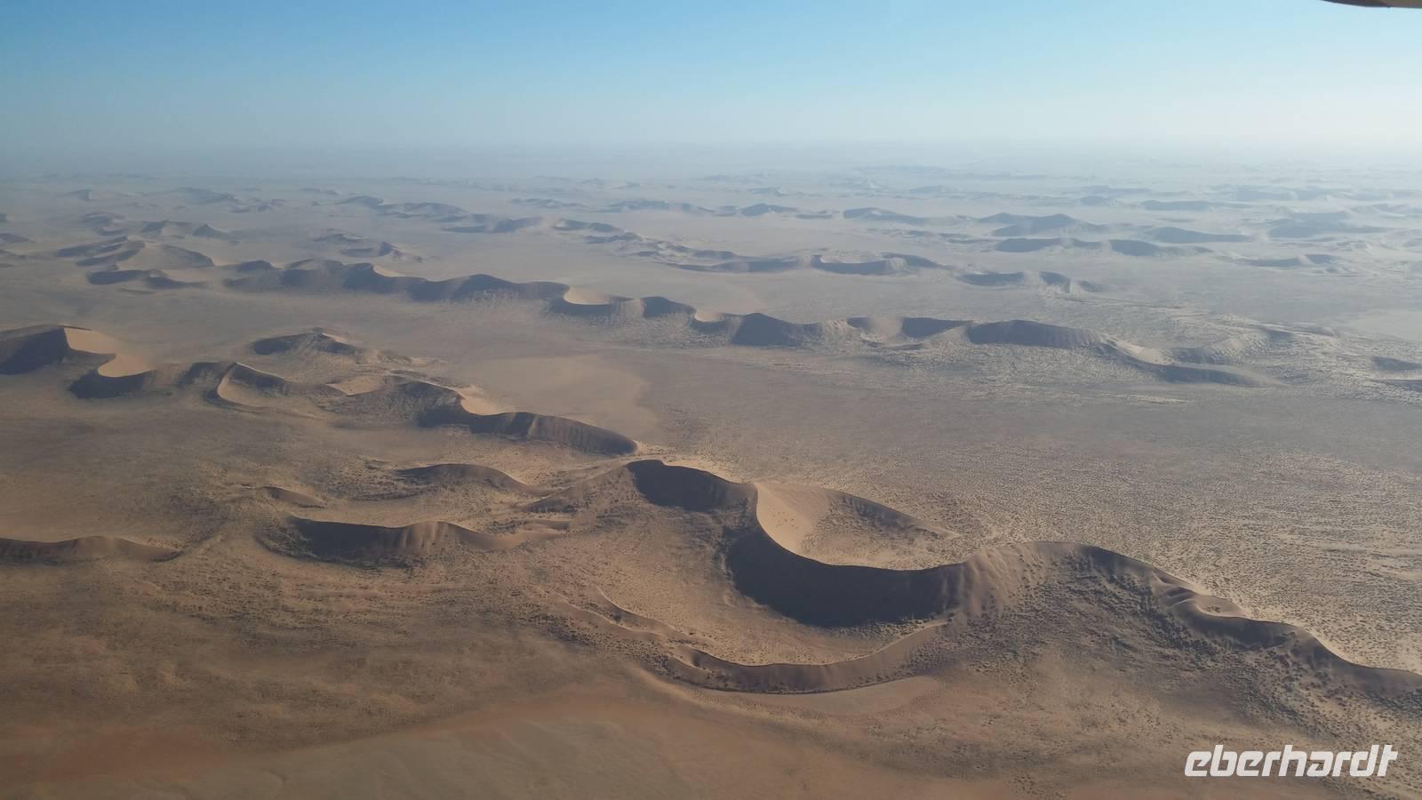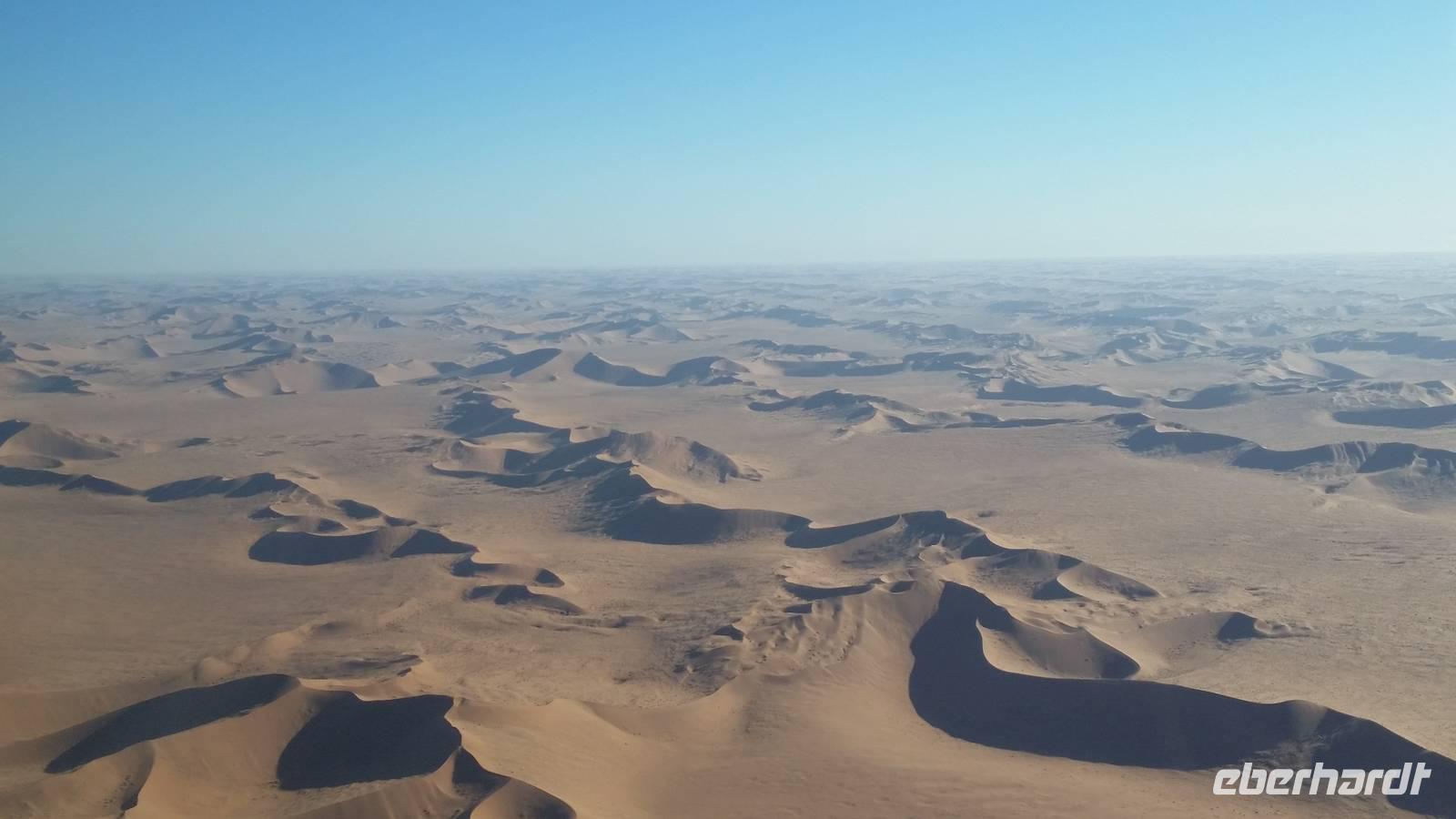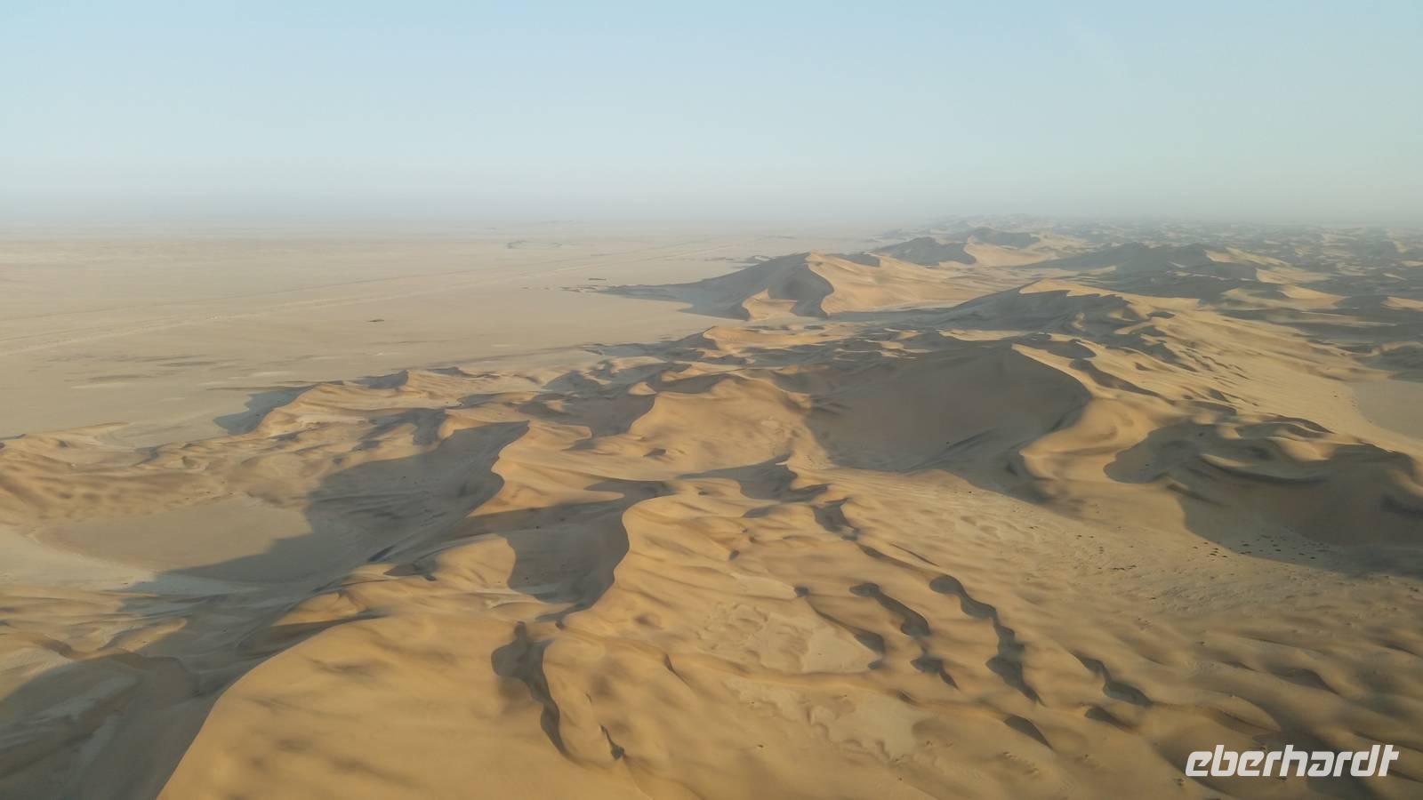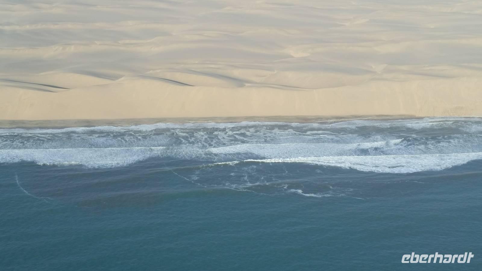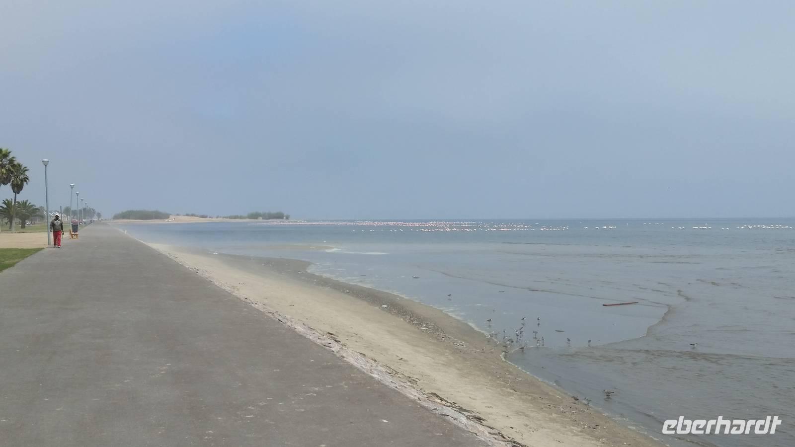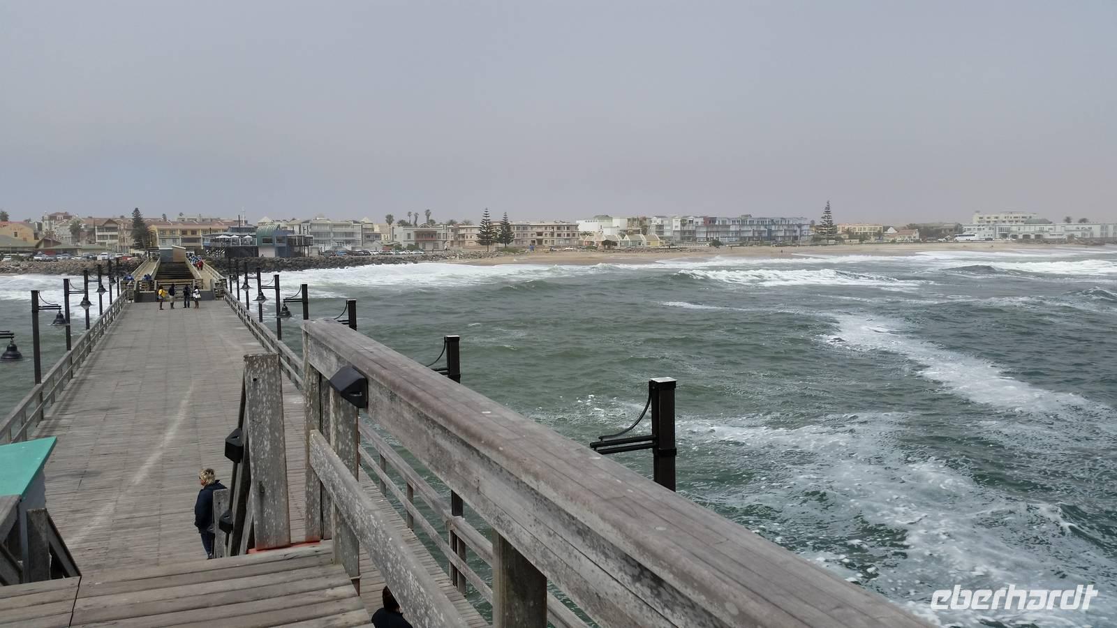 Nach den heißen Tagen in der Wüste war unser heutiges Ziel Swakopmund, das uns mit einer frischen Meeresbrise des Atlantiks erwartete. Doch auf der Strecke dahin erlebten wir landschaftlich einige Höhepunkte. Erst stoppten wir am Wendekreis des Steinbocks, dem Tropic of capricorn, dann fuhren wir über den eindrucksvollen Gaub-Pass und schließlich erreichten wir den Kuiseb Canyon, der uns ebenfalls mächtige Panoramen bietete. Und plötzlich? Plötzlich war alles flach, sandig und weit und breit eine unendliche Weite. Je näher wir ans Meer kamen, desto kühler und nebliger wurde es. In Walvis Bay machten wir noch ein kleines Picknick bei den Flamingos und rollten dann weiter. Nachdem wir in Swakopmund unser Zimmer bezogen hatten, spazierten wir ein kleines Stück in dem beschaulichen Städtchen. Der restliche Nachmittag stand dann zur freien Verfügung. Einige Gäste nutzten die Zeit, um sich die Dünenmeere und "Sehenswürdigkeiten" der Namib von oben mit einer Cessna anzusehen. Ein eindrucksvolles Erlebnis!