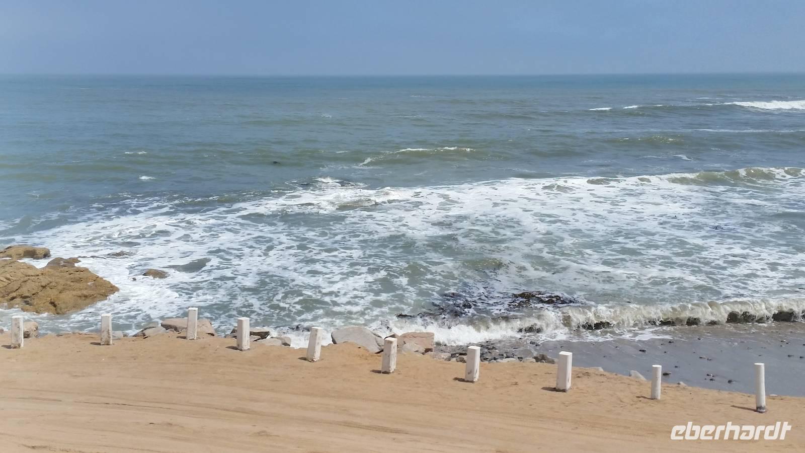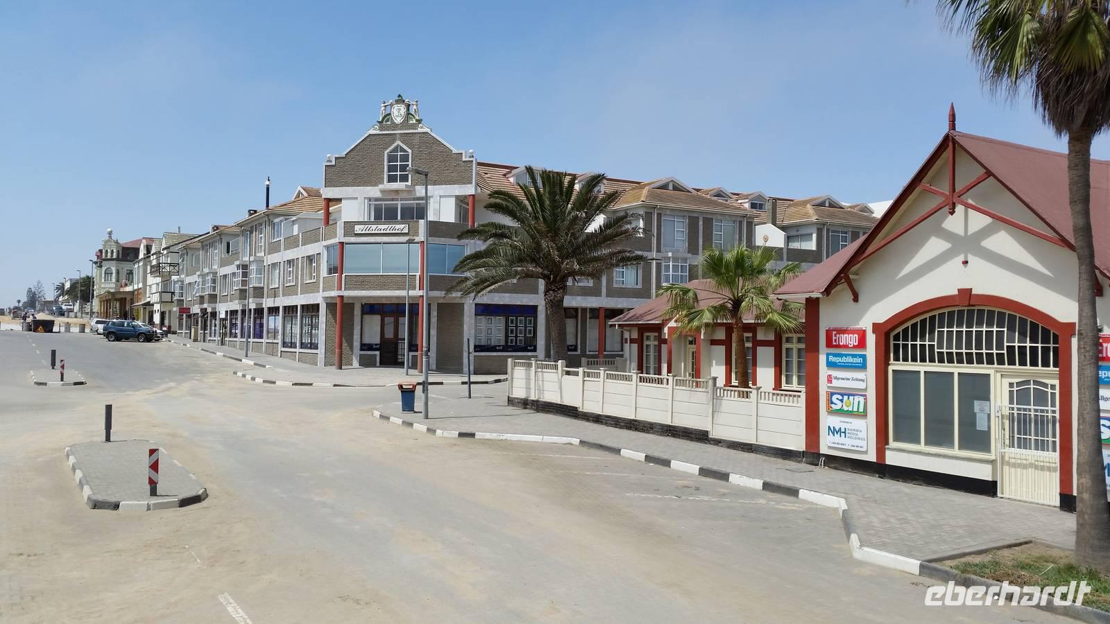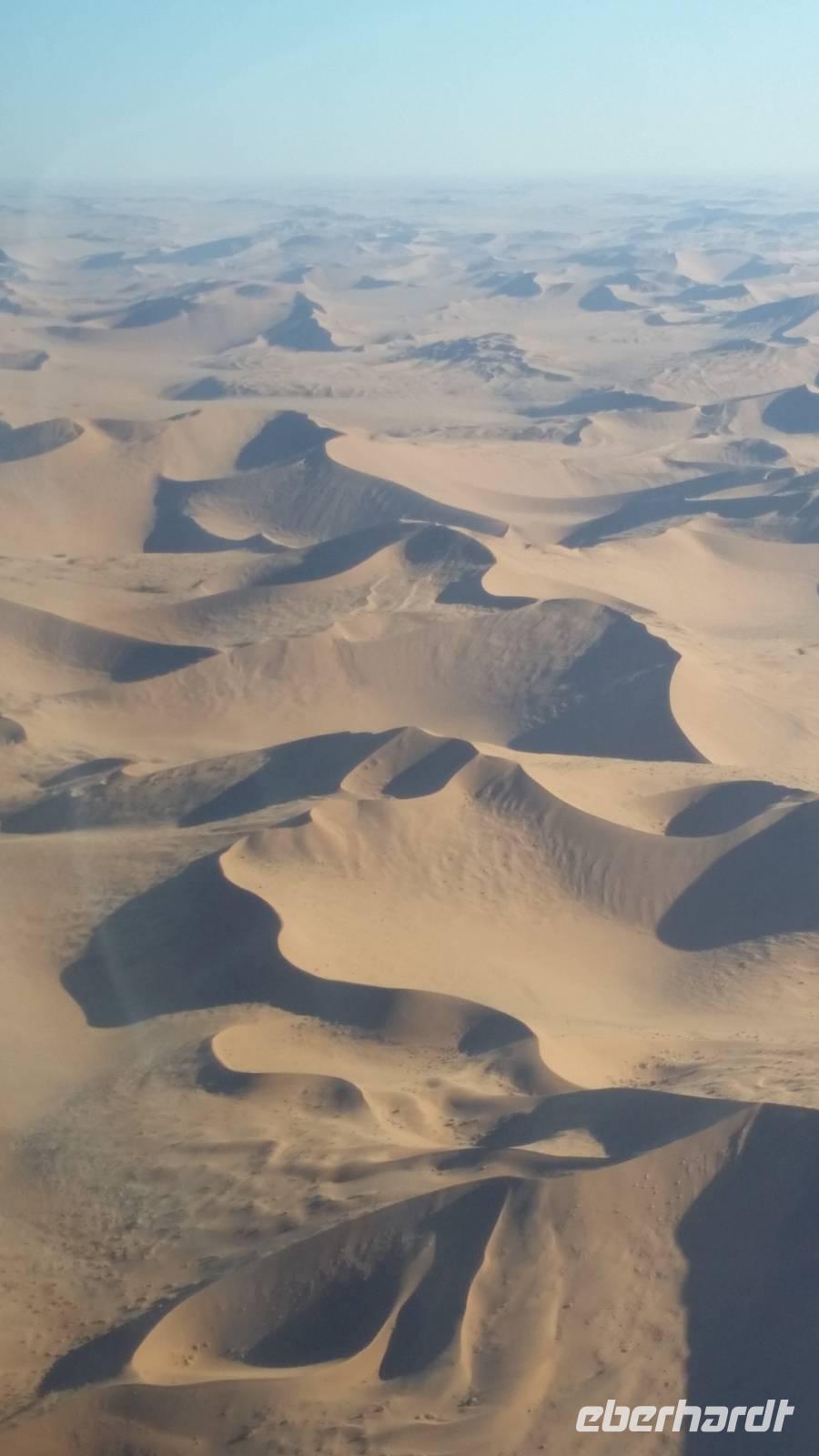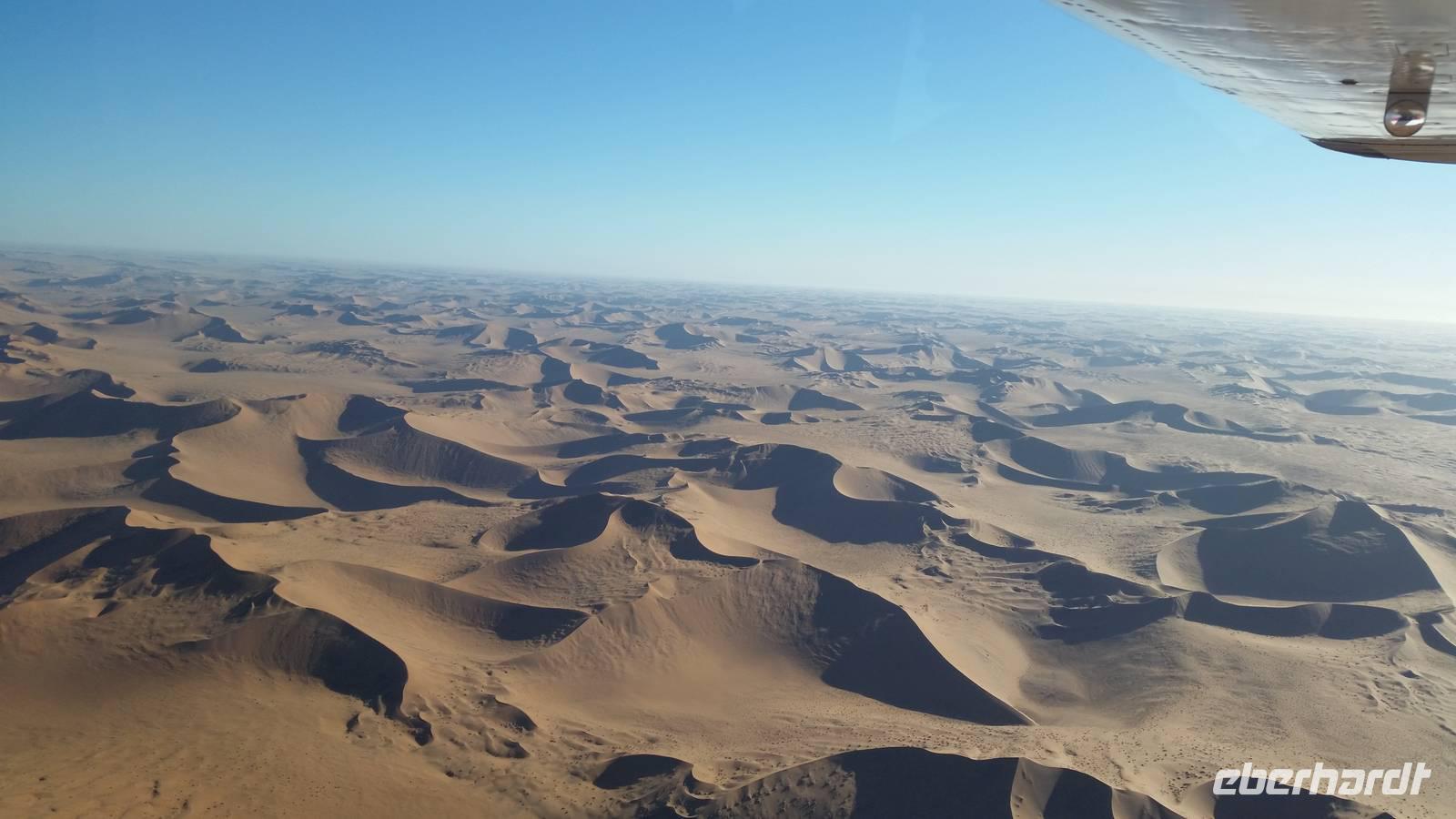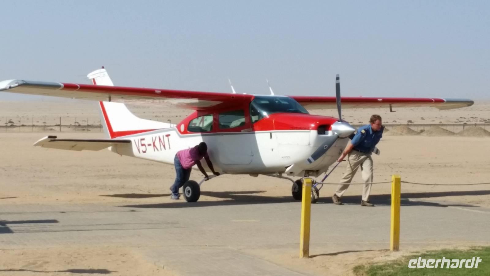 Nach den heißen Tagen in der Wüste war unser heutiges Ziel Swakopmund, das uns mit einer frischen Meeresbrise des Atlantiks erwartete. Doch auf der Strecke dahin erlebten wir landschaftlich einige Höhepunkte. Erst stoppten wir am Wendekreis des Steinbocks, dem Tropic of capricorn, dann fuhren wir über den eindrucksvollen Gaub-Pass und schließlich erreichten wir den Kuiseb Canyon, der uns ebenfalls mächtige Panoramen bietete. Und plötzlich? Plötzlich war alles flach, sandig und weit und breit eine unendliche Weite. Je näher wir ans Meer kamen, desto kühler und nebliger wurde es. In Walvis Bay machten wir noch ein kleines Picknick bei den Flamingos und rollten dann weiter. Nachdem wir in Swakopmund unser Zimmer bezogen hatten, spazierten wir ein kleines Stück in dem beschaulichen Städtchen. Der restliche Nachmittag stand dann zur freien Verfügung. Einige Gäste nutzten die Zeit, um sich die Dünenmeere und "Sehenswürdigkeiten" der Namib von oben mit einer Cessna anzusehen. Ein eindrucksvolles Erlebnis!