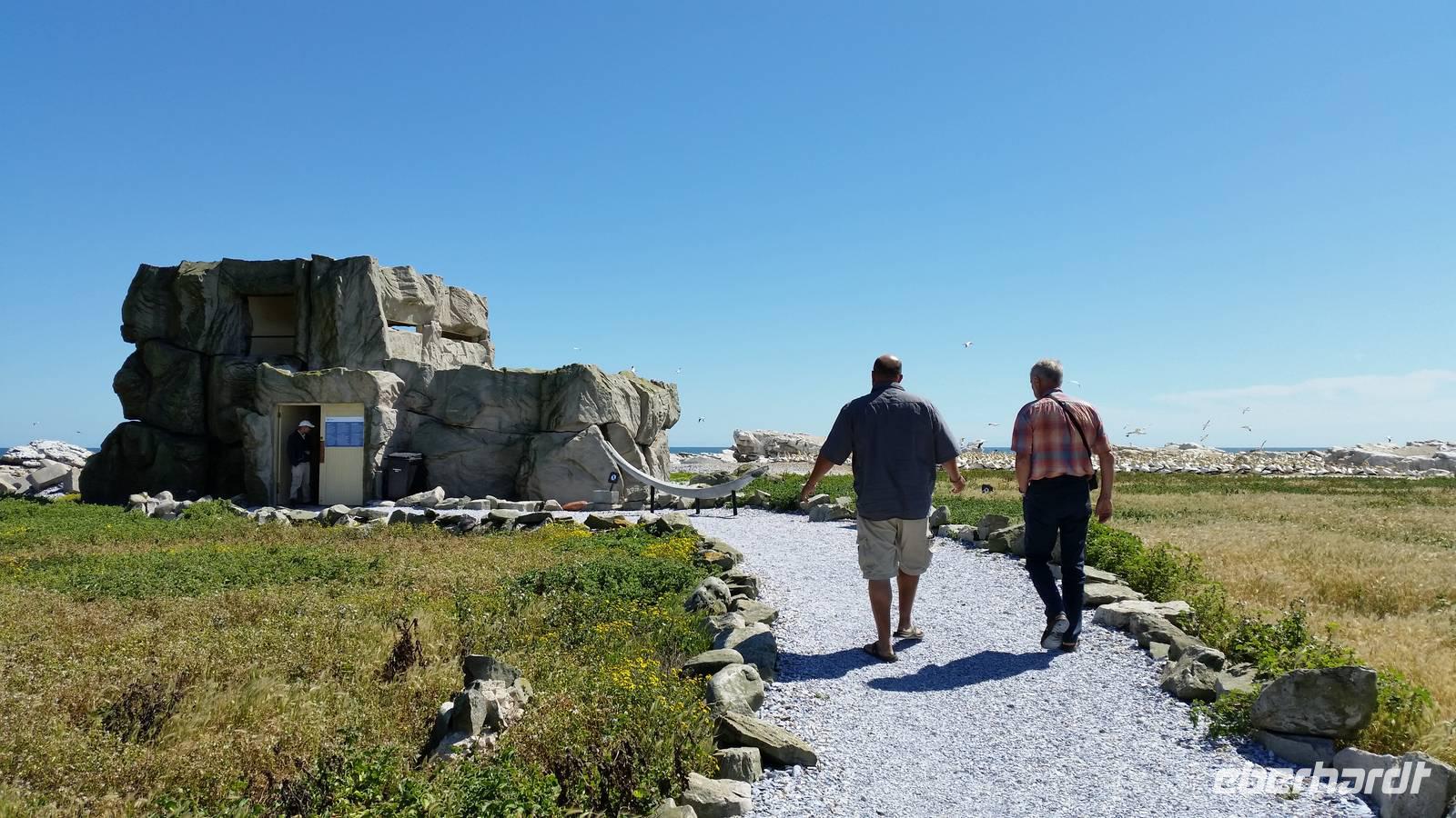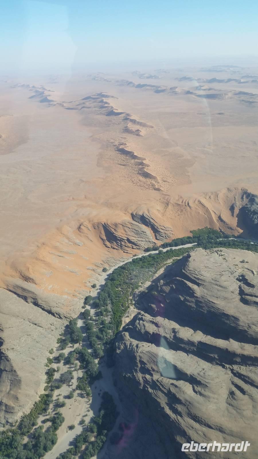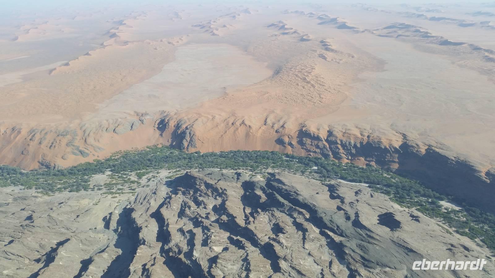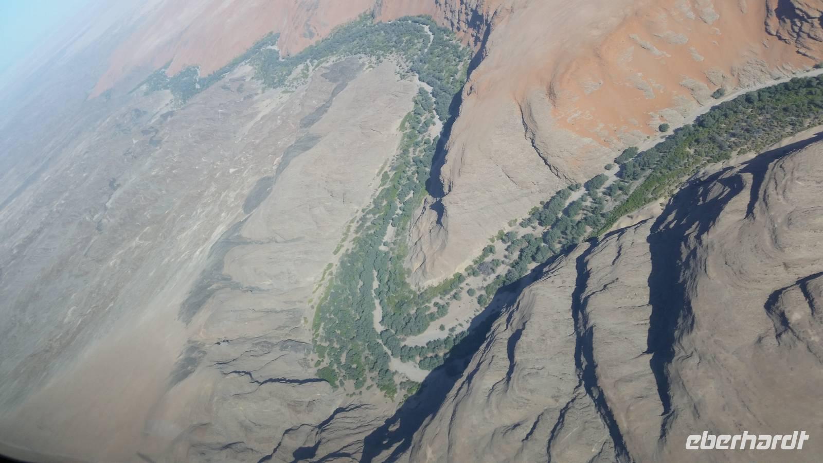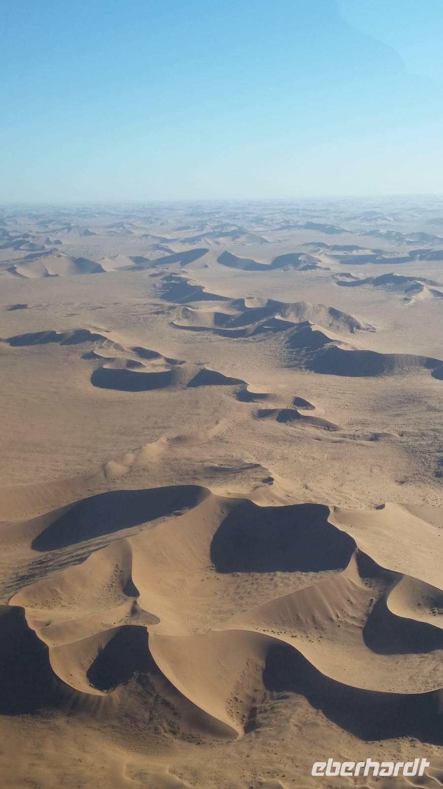 Nach den heißen Tagen in der Wüste war unser heutiges Ziel Swakopmund, das uns mit einer frischen Meeresbrise des Atlantiks erwartete. Doch auf der Strecke dahin erlebten wir landschaftlich einige Höhepunkte. Erst stoppten wir am Wendekreis des Steinbocks, dem Tropic of capricorn, dann fuhren wir über den eindrucksvollen Gaub-Pass und schließlich erreichten wir den Kuiseb Canyon, der uns ebenfalls mächtige Panoramen bietete. Und plötzlich? Plötzlich war alles flach, sandig und weit und breit eine unendliche Weite. Je näher wir ans Meer kamen, desto kühler und nebliger wurde es. In Walvis Bay machten wir noch ein kleines Picknick bei den Flamingos und rollten dann weiter. Nachdem wir in Swakopmund unser Zimmer bezogen hatten, spazierten wir ein kleines Stück in dem beschaulichen Städtchen. Der restliche Nachmittag stand dann zur freien Verfügung. Einige Gäste nutzten die Zeit, um sich die Dünenmeere und "Sehenswürdigkeiten" der Namib von oben mit einer Cessna anzusehen. Ein eindrucksvolles Erlebnis!