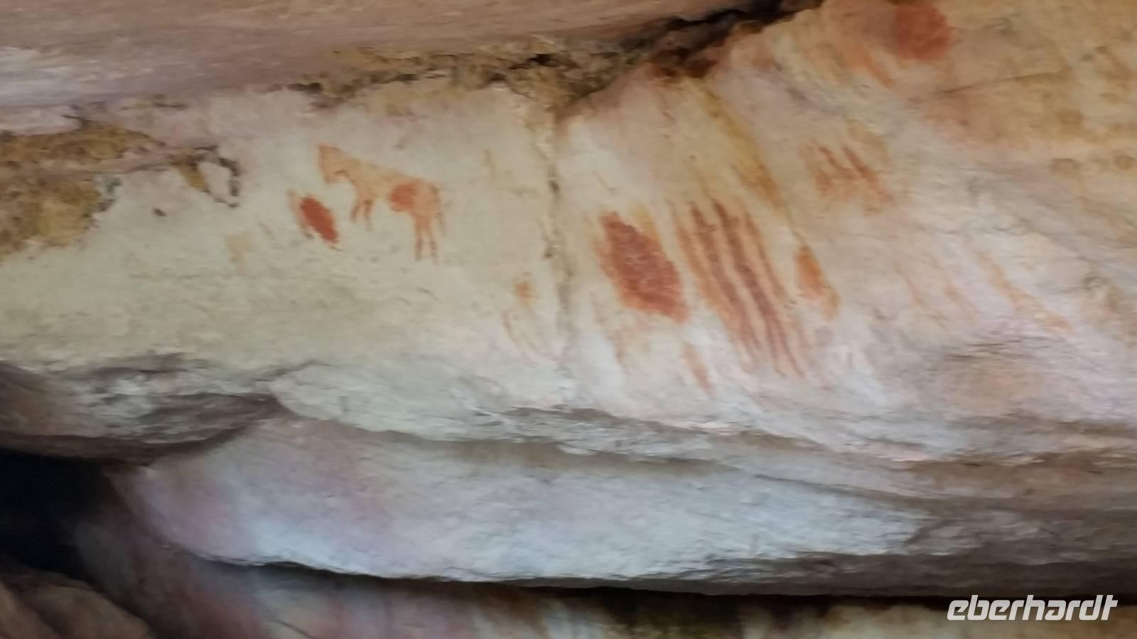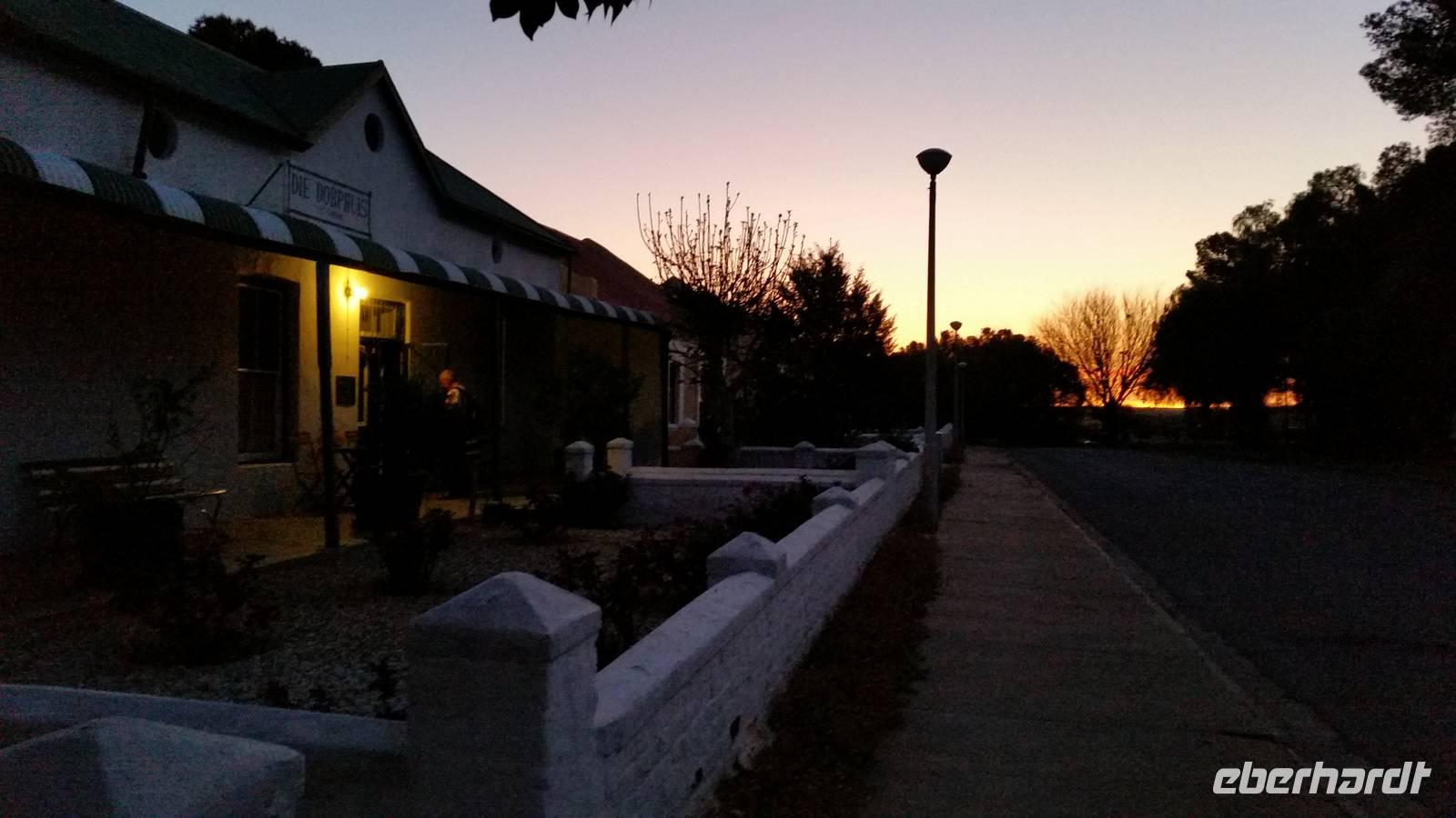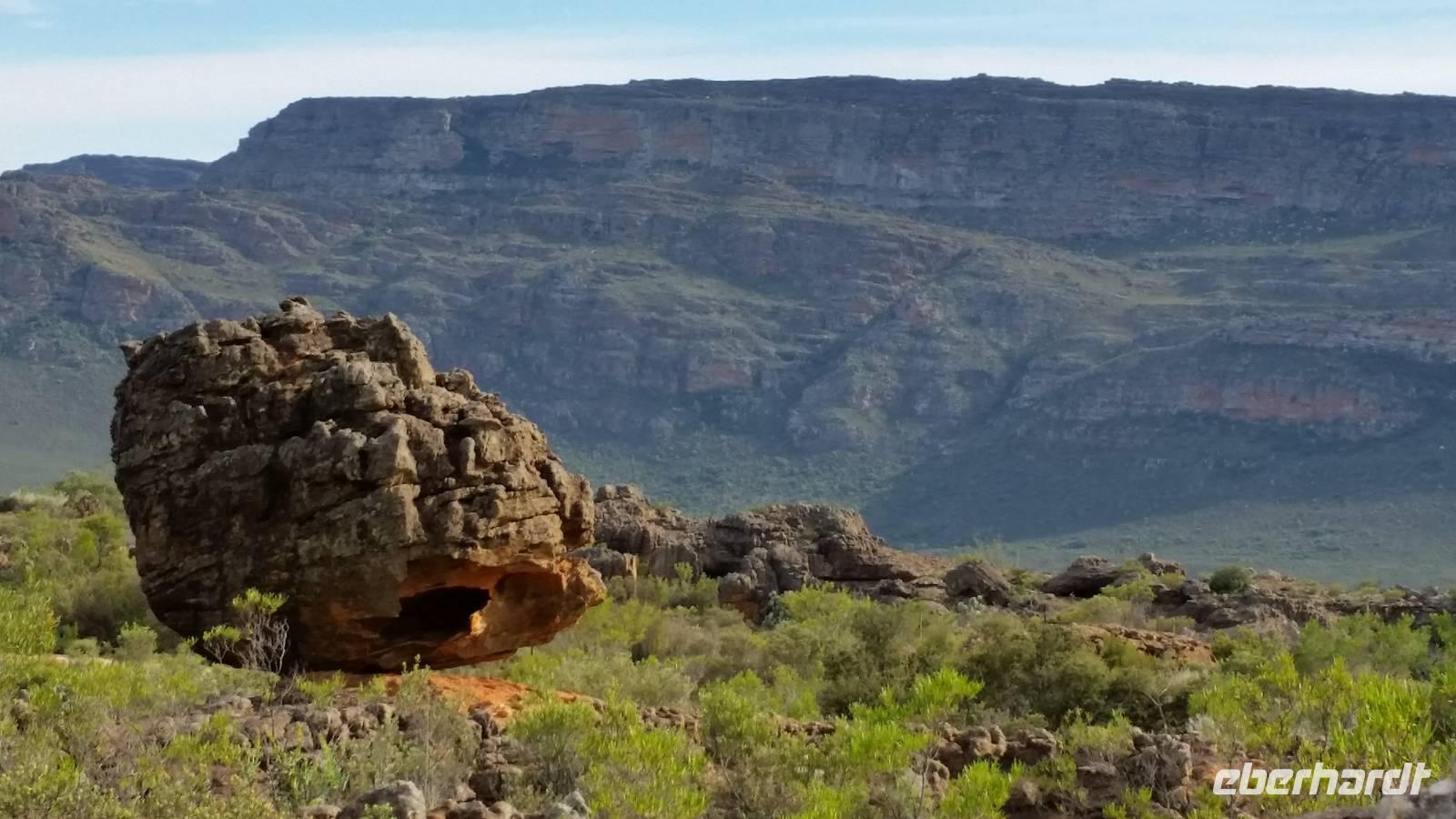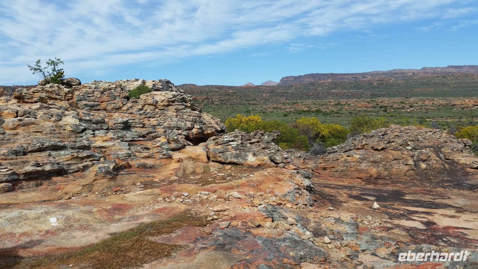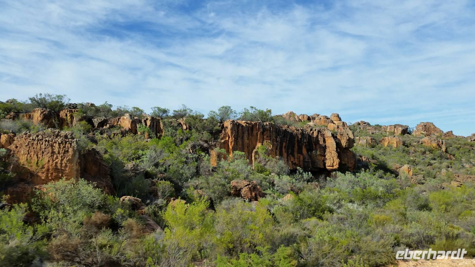 Bei wieder sonnigem Wetter stand heute die Wanderung auf dem Sevilla Rock Art Trail auf dem Programm. Dieser 4km lange Wanderweg ist mit vielen Zeichnungen der San Buschmänner gespickt. Die Malereien, die das Leben dieser Menschen zeigen, sind teilweise so gut erhalten, als wären sie erst gestern entstanden. Es gibt jedoch viele verschiedene Interpretationsmöglichkeiten. Vom „letzten Abendmahl", Monstern, dem Buschmänner-Ballett bis hin zum Ameisenbär gab es noch viele weitere schöne Malereien. Auf der Strecke konnten wir ein wahnsinnig tolles Panorama bestaunen und auch die Blumenfreunde unter uns kamen auf ihre Kosten. Wieder am Ausgangspunkt angekommen, erfrischten wir uns bei einem kühlen Getränk und einem leckeren Sandwich. Dann ging die Reise weiter, Berg hoch, berg runter, Berg hoch, berg runter auf der schnurgeraden Dirt Road über den Booterkloof-Pass schließlich nach Calvinia. Unsere Unterkunft, die Hantam Huis, waren sehr schöne, hübsch eingerichtete Häuschen mit Wohlfühl-Faktor. Den Abend ließen wir bei einem traditionellen Kap-Abendessen im historischem Ambiente ausklingen.