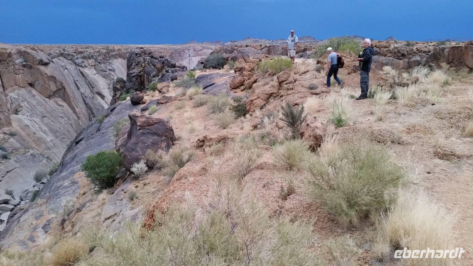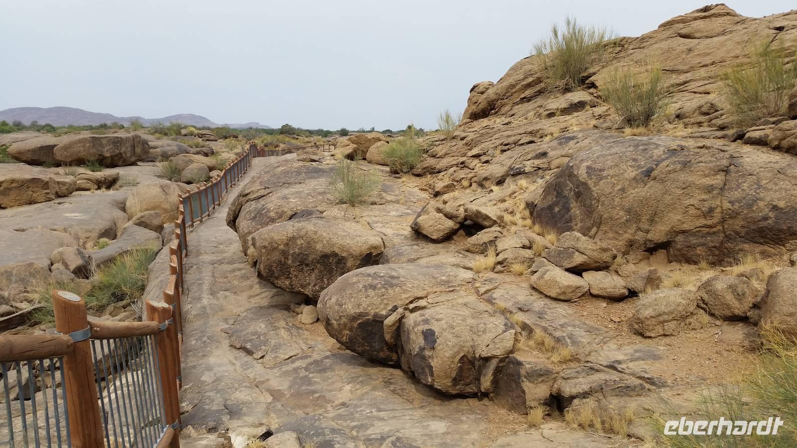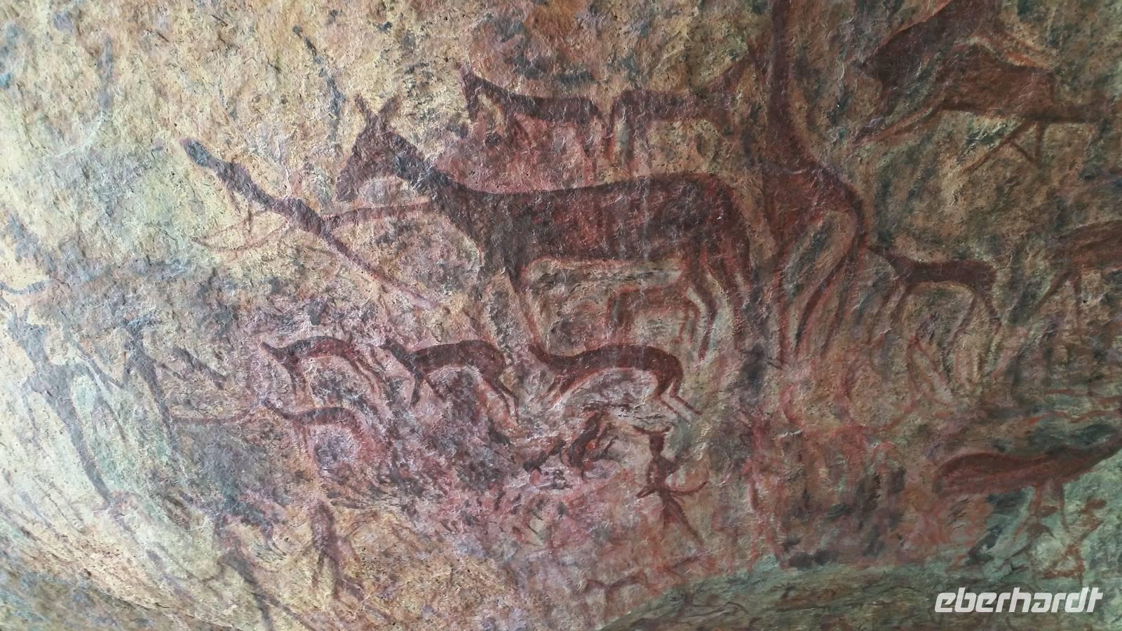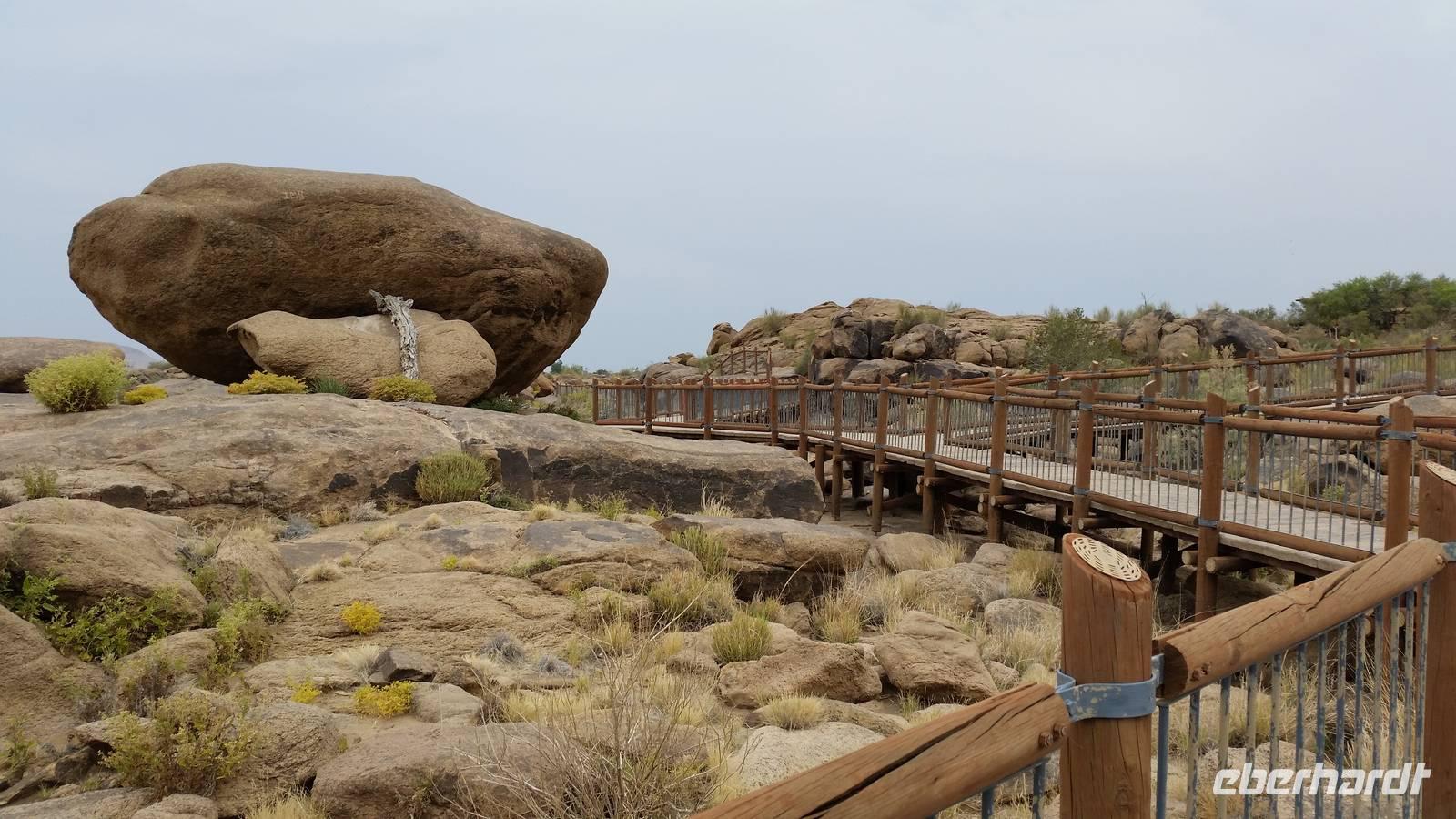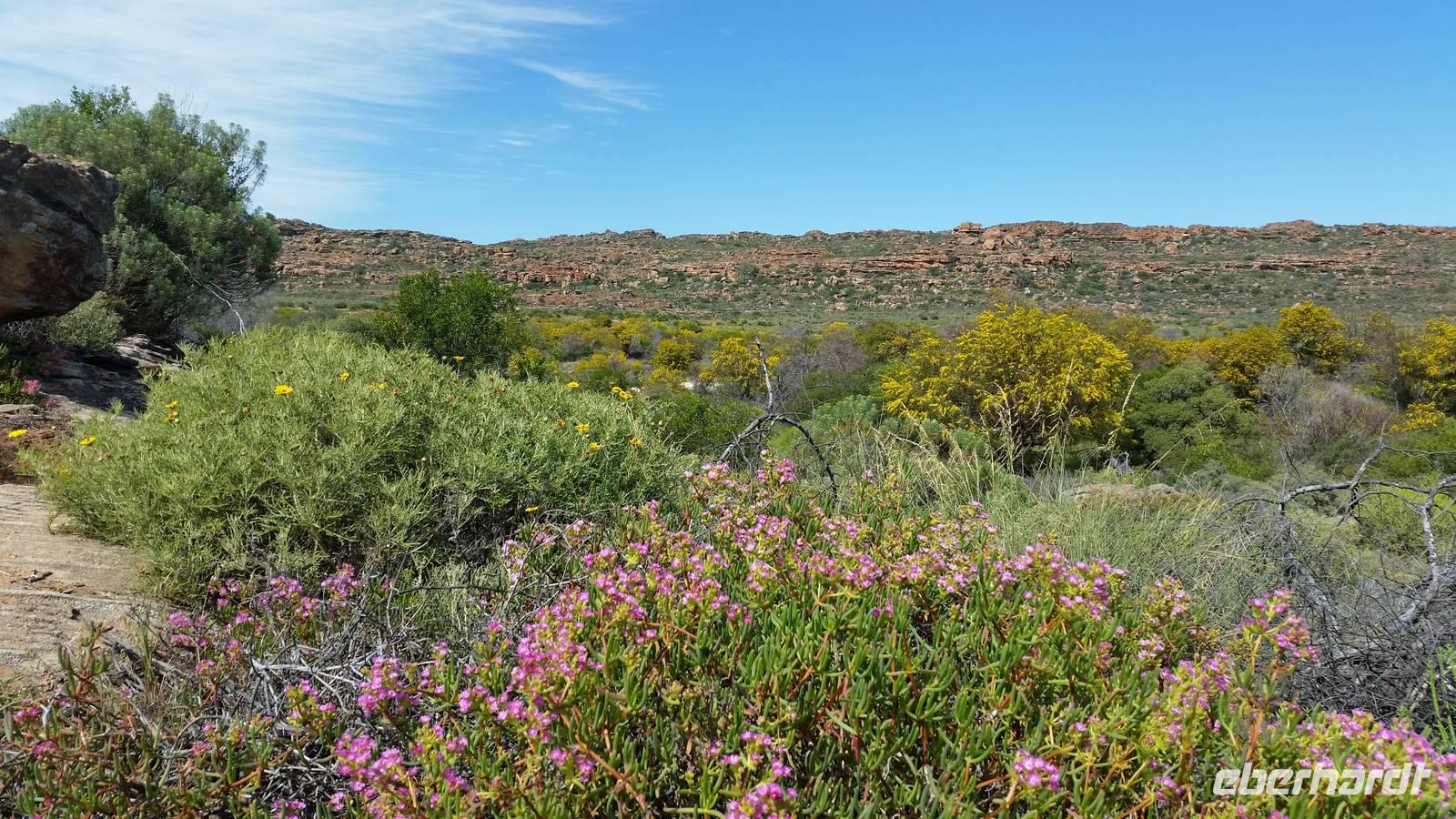 Bei wieder sonnigem Wetter stand heute die Wanderung auf dem Sevilla Rock Art Trail auf dem Programm. Dieser 4km lange Wanderweg ist mit vielen Zeichnungen der San Buschmänner gespickt. Die Malereien, die das Leben dieser Menschen zeigen, sind teilweise so gut erhalten, als wären sie erst gestern entstanden. Es gibt jedoch viele verschiedene Interpretationsmöglichkeiten. Vom „letzten Abendmahl", Monstern, dem Buschmänner-Ballett bis hin zum Ameisenbär gab es noch viele weitere schöne Malereien. Auf der Strecke konnten wir ein wahnsinnig tolles Panorama bestaunen und auch die Blumenfreunde unter uns kamen auf ihre Kosten. Wieder am Ausgangspunkt angekommen, erfrischten wir uns bei einem kühlen Getränk und einem leckeren Sandwich. Dann ging die Reise weiter, Berg hoch, berg runter, Berg hoch, berg runter auf der schnurgeraden Dirt Road über den Booterkloof-Pass schließlich nach Calvinia. Unsere Unterkunft, die Hantam Huis, waren sehr schöne, hübsch eingerichtete Häuschen mit Wohlfühl-Faktor. Den Abend ließen wir bei einem traditionellen Kap-Abendessen im historischem Ambiente ausklingen.