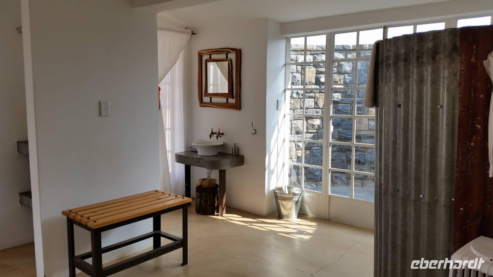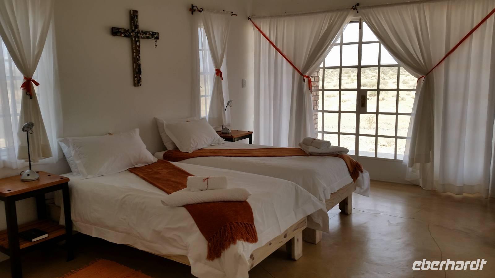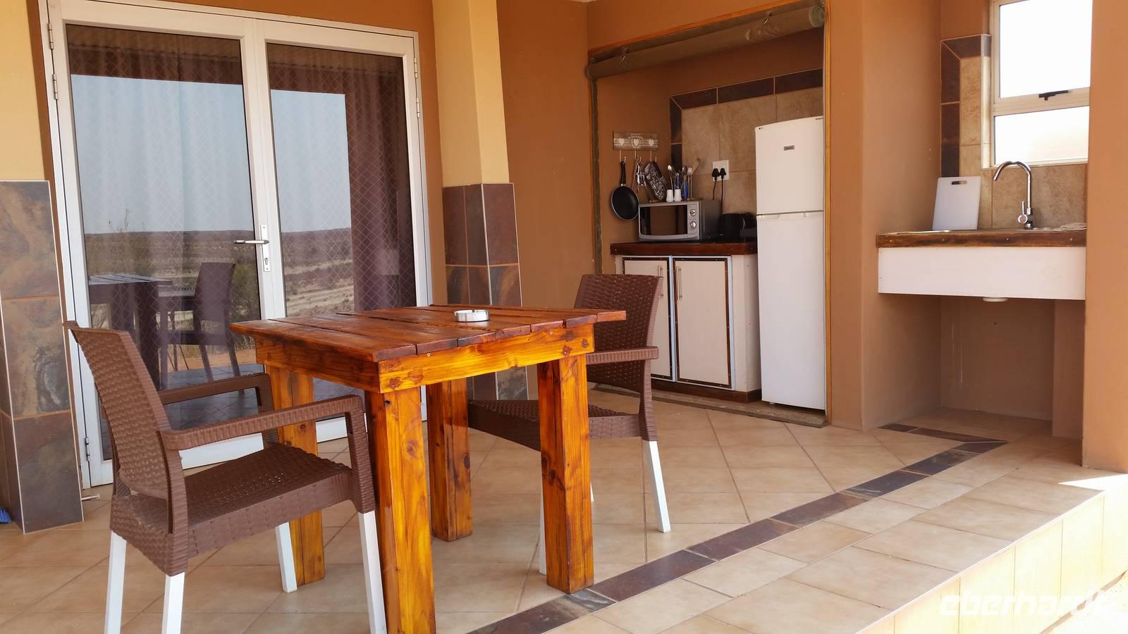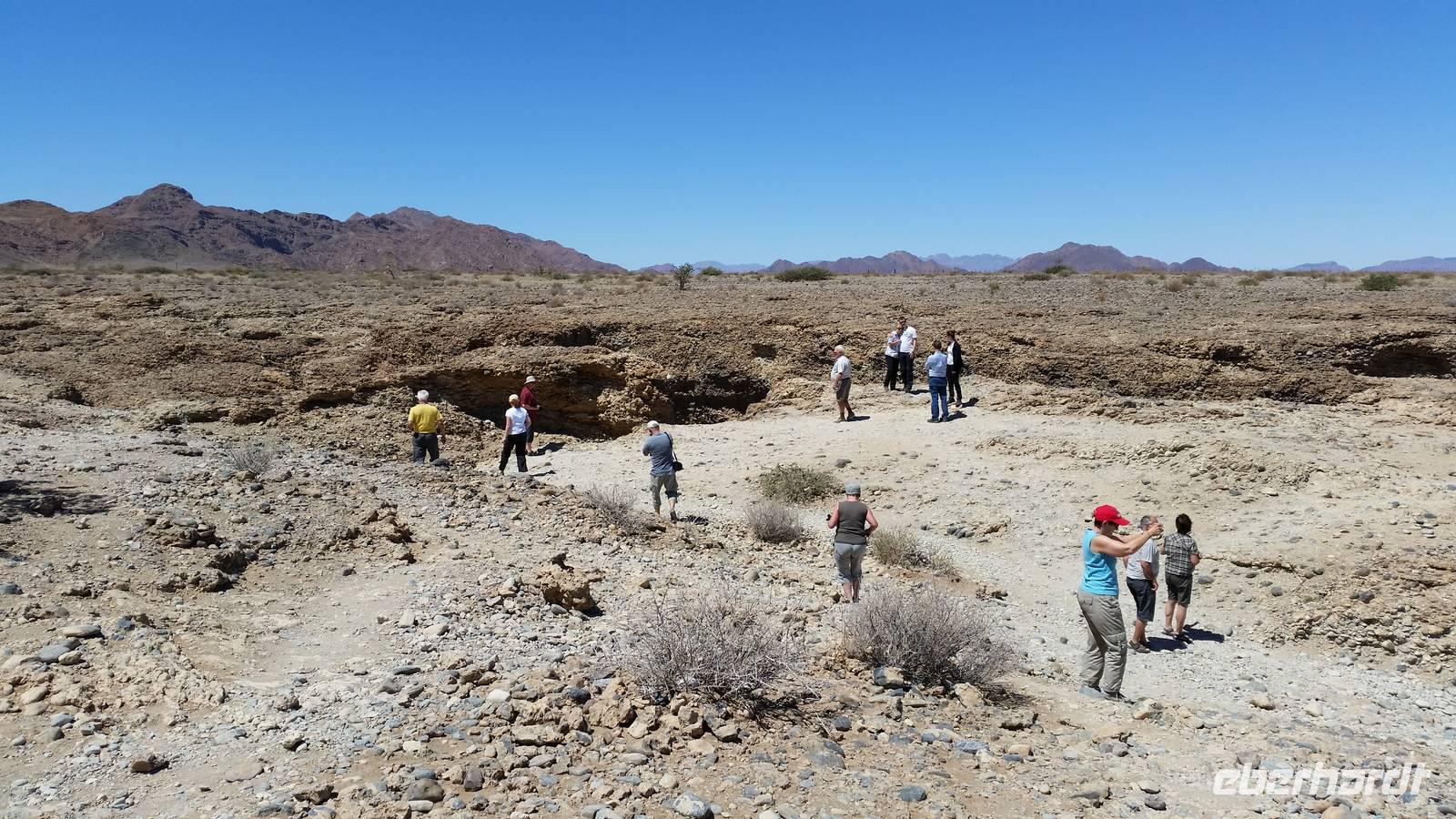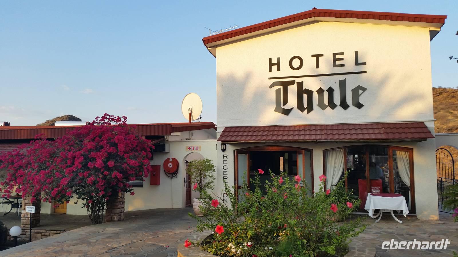 Heute hieß es erst einmal Abschied nehmen von Südafrika, denn die unendliche Weite Namibias erwartete uns. Nach dem Frühstück fuhren wir die vielen Kilometer in Richtung der ehemaligen Kolonie Deutsch Südwest Afrika. Über Rietfontier überquerten wir schließlich die Grenze und erledigten die entsprechenden Formalitäten. Kurz nachdem wir wieder auf der Strecke waren, war plötzlich große Aufregung im Bus, denn Tom hatte eine Kap-Kobra auf der Straße liegen sehen. Scalla legte schnell den Rückwärtsgang ein, damit wir das giftige Tier aus dem Bus fotografieren konnten. Die Schlange war natürlich wenig erfreut und bäumte sich regelrecht vor uns auf. Zum Glück waren wir sicher hinter verschlossenen Scheiben. Was für ein Erlebnis! Dann rollten wir weiter und weiter und kamen schließlich am Nachmittag in unsere Lodge „Alte Kalköfen" an. In unserem gemütlichen Häuschen und in der gepflegten Anlage konnten wir den Nachmittag noch etwas genüsslich ausklingen lassen.