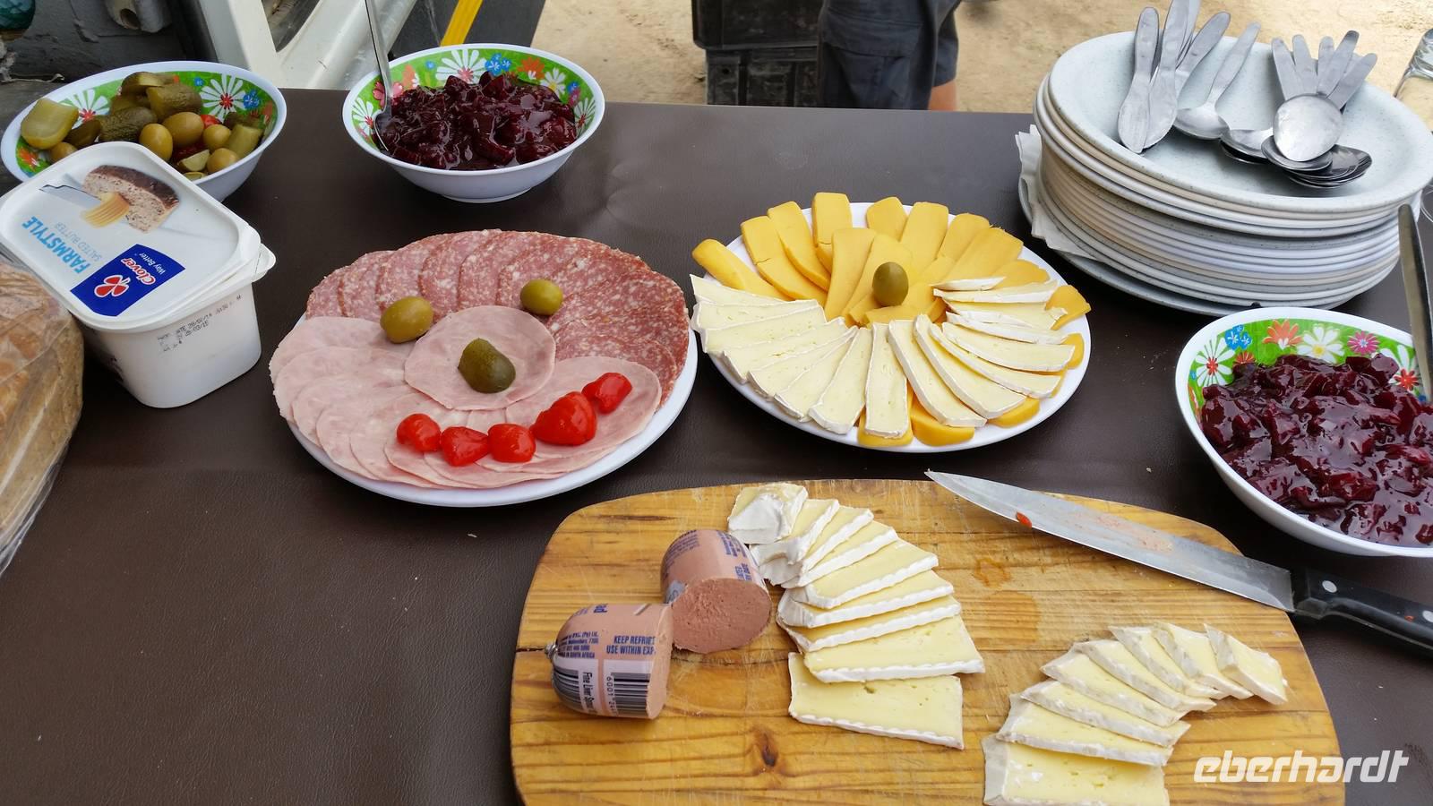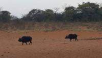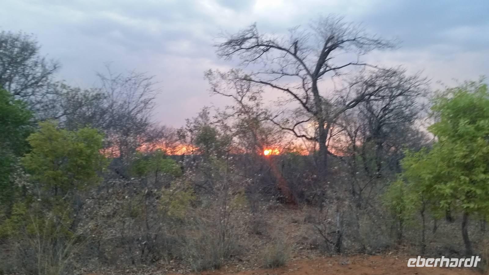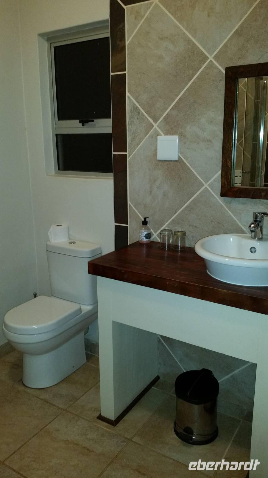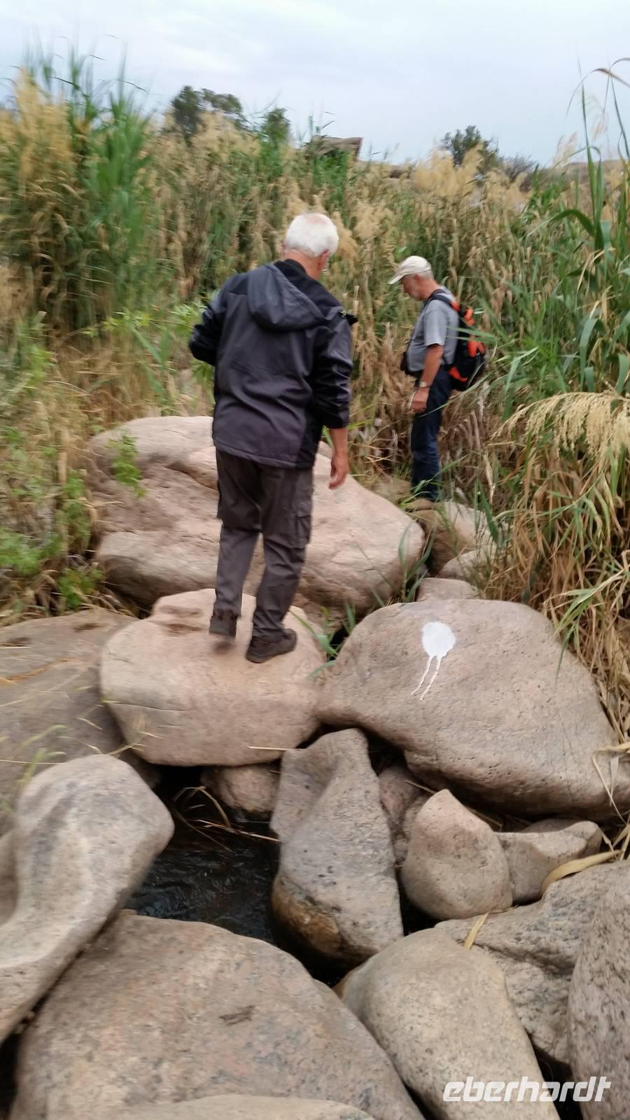 Noch vor dem Frühstück unternahmen wir eine kleine Wanderung zum Soldatenfriedhof, auf dem die gefallenen Kriegsopfer der Schlacht am Waterberg 1904 begraben waren. Unter anderem stammten diese Opfer aus Magdeburg, Zwickau oder Dresden. Danach stärkten wir uns bei einem leckeren Frühstück und konnten nun die Zeit bis zum gemeinsamen Picknick individuell gestalten. Ein Teil erwanderte das Waterberg-Gebiet noch etwas und hielt sich mit lautem Getöse die lästigen Paviane vom Hals, der andere Teil entspannte am Pool. Am Nachmittag fuhren wir dann im offenen Jeep auf das Waterberg-Plateau. Nach einem gigantischen Foto-Stopp mit Aussicht auf das weite, flache Land genossen wir die Rundfahrt mit unserem Guide Martin, der uns neben Nashörnern, Giraffen und Kudus sogar noch unentdeckte Tiere wie die Säbelantilope und die Elan-Antilope zeigte. Und dann hatten wir ja noch einen kleinen Wunsch: wir wollten die BigFive komplett haben und dafür fehlte uns der Büffel. Dies erklärten wir Martin und er versprach uns, welche zu finden. Und er hatte nicht zu viel versprochen: am dritten Wasserloch kamen endlich zwei dieser mächtigen Tiere zur Tränke! BINGO! Auftrag erfüllt! Nun konnte es ganz entspannt wieder zurück ins Camp gehen, wo wir Tom gleich von unseren Erfolgen berichteten...