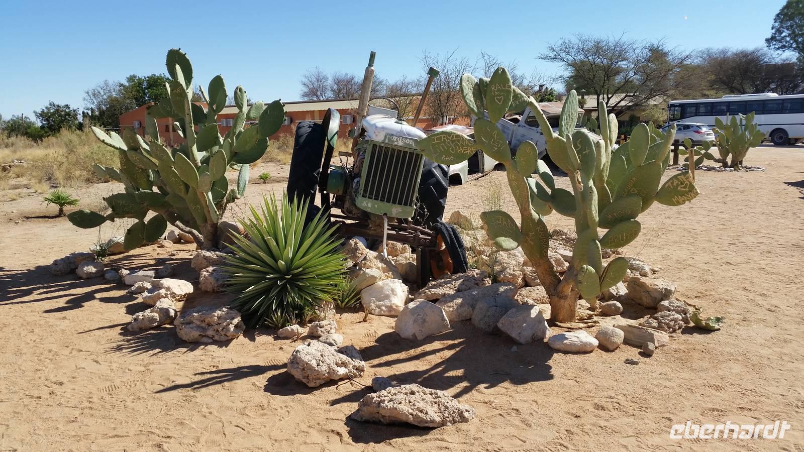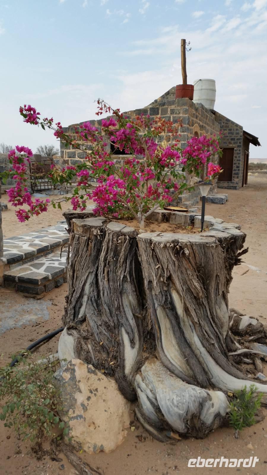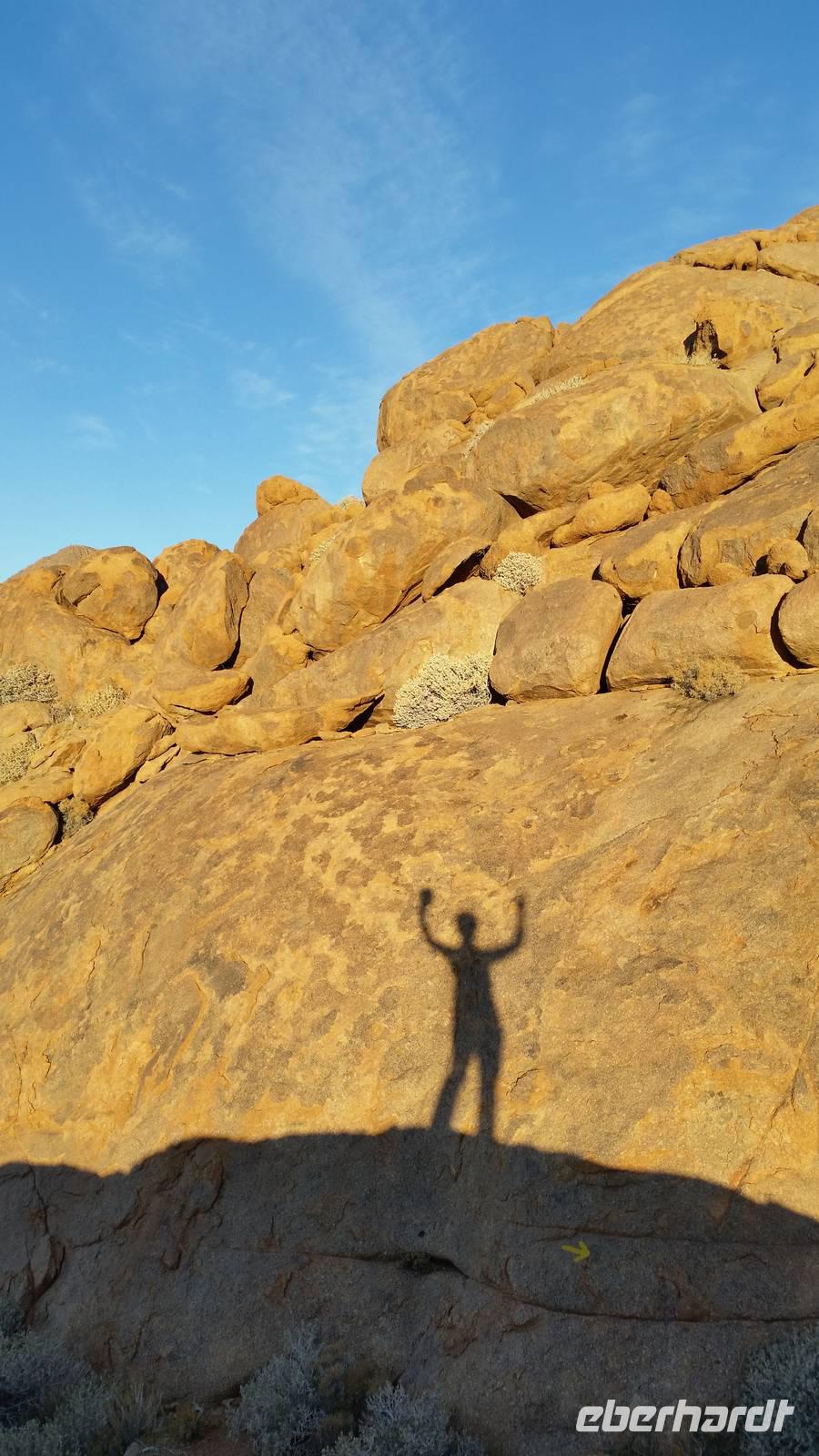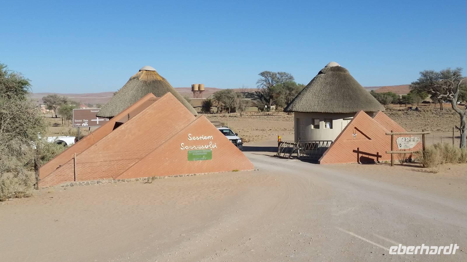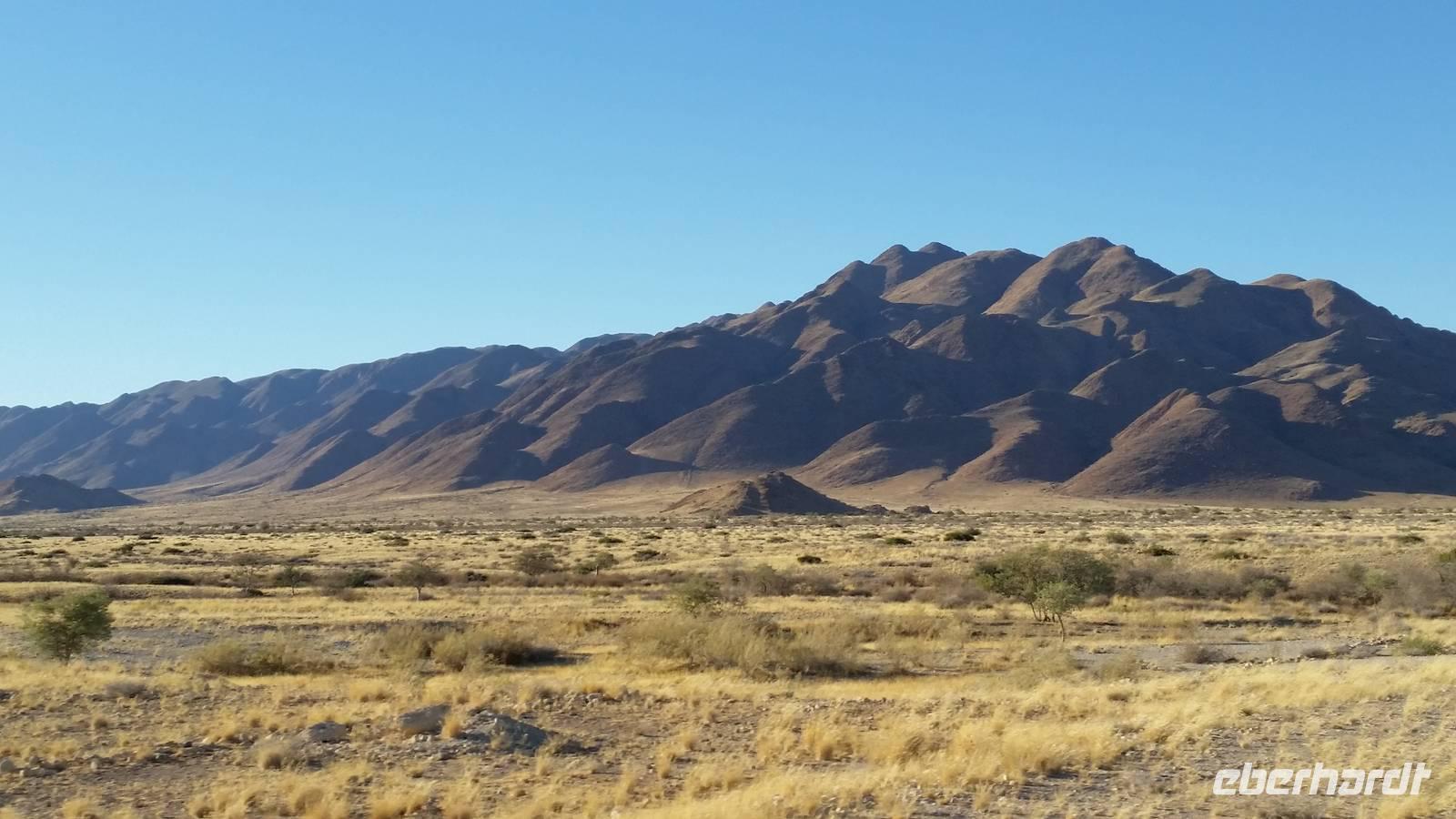 Bevor wir in dem gemütlichen Ambiente der Lodge Alte Kalköfen frühstückten, unternahmen wir noch einen kleinen Rundgang durch das Gelände. Der Besitzer zeigte uns seine „lebenden Steine", den Kalkofen und die liebevoll angelegte Gartenanlage. Zum Frühstück gab es auch auf Grund eines Ehrentages ein Ständchen der besonderen Art und einen kleinen Geburtstagskuchen. Dann machten wir uns auf die Weiterreise über Helmeringhausen, Maltahöhe und Solitaire in unsere Lodge am Rande des Namib Naukluft Parks. Am Abend bestiegen wir den kleinen Hausberg um den Sonnenuntergang zu beobachten. Oben angekommen erzählte uns Tom noch die ein oder andere wahre oder unwahre Geschichte ? und dann stießen wir bei einem Gläschen Amarula auf einen Tag voller eindrucksvoller Landschaften, herzlichen Menschen und tollen Momenten an!
