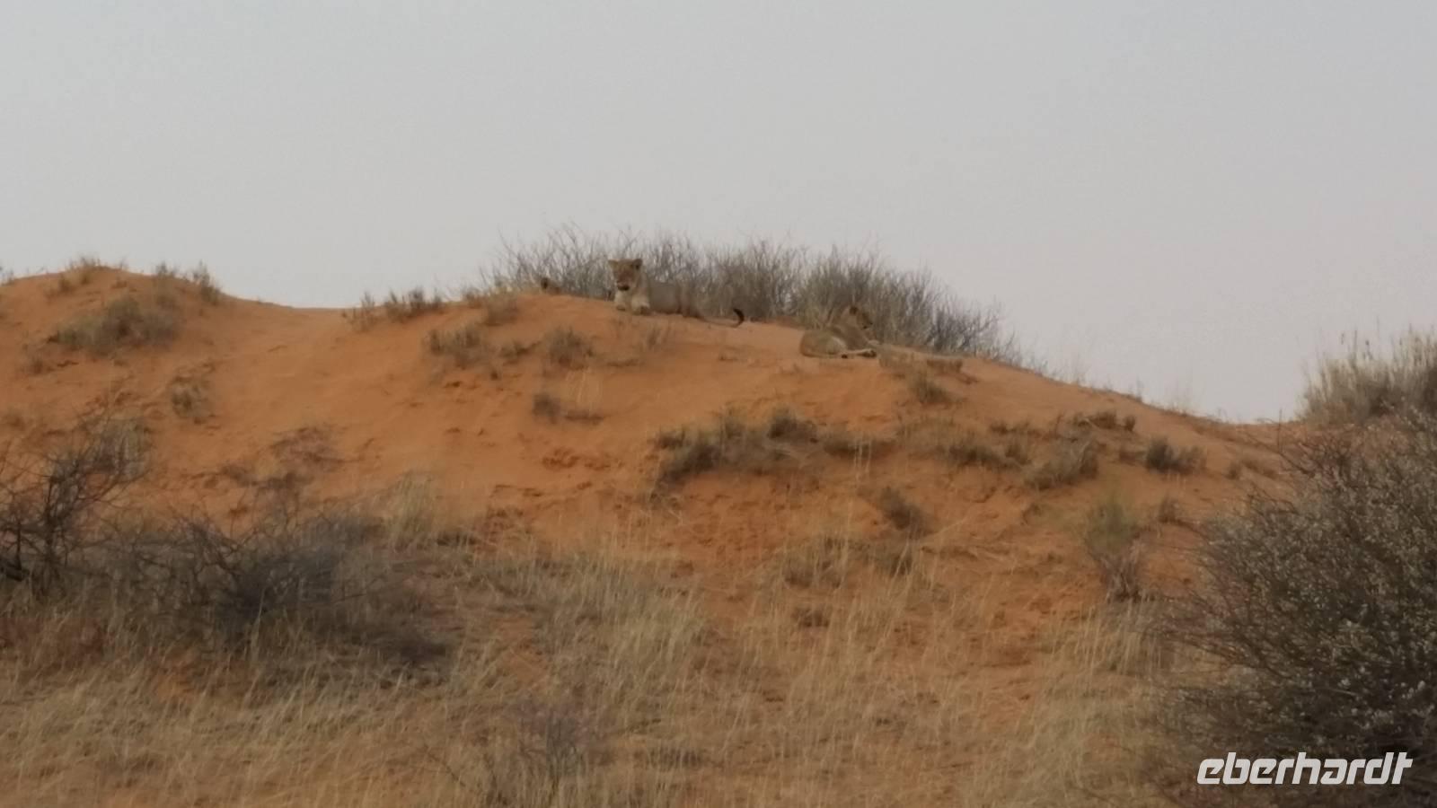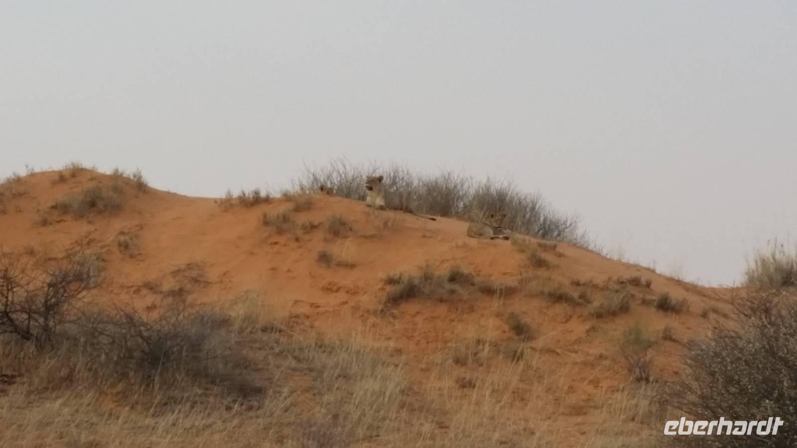 Heute stand unser Programm ganz im Zeichen der Pirscherei. Bereits vor Sonnenaufgang starten wir unsere Tour im Park in der Hoffnung beispielsweise einen Rudel Löwen zu sichten. Alle gingen auf Ihren Plätzen in Lauerstellung um die ersten Tiere zu entdecken. Und das waren doch einige: wir sahen jede Menge Springböcke (Tom´s Hymne dazu: „Springböckchen, springelingeling, Springböckchen spring..." ?), Kudus, Antilopen, Löffelhunde, Strauße und Erdhörnchen. Nur die Löwen wollten sich noch nicht sehen lassen. Nach zweieinhalb Stunden Pirschfahrt fuhren wir nach Auchterlonie, unserm Frühstücksplatz im Camp, bei dem wir aussteigen durften. Wir verzehrten die leckeren Lunchpakete von der Kgalagadi-Lodge und Scalla kochte uns einen Kaffee. Noch ein kleiner Abstecher in die andere Richtung und dann ging es erst einmal zurück in die Lodges. Wir lunchten gemeinsam vor „Onkel Toms Hütte" und anschließend war Siesta für alle angesagt! Am späten Nachmittag ging es dann nochmal raus zu einer kleinen Pirschfahrt. Diese hat sich dann richtig gelohnt, denn wir sahen endlich das erhoffte Löwenrudel. Auf einer Düne räkelten sich mehrere Löwinnen und ihre Kleinen. Ein schöner Abschluss unseres Pirschtages, den wir dann beim leckeren Abendessen noch einmal Revue passieren ließen.
