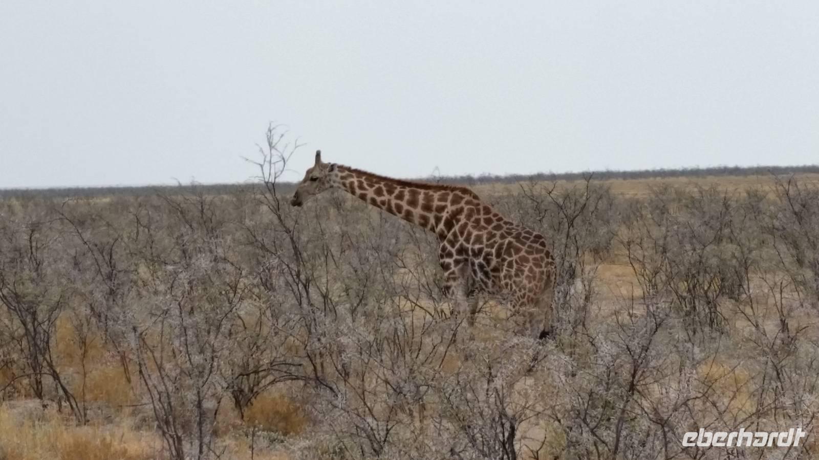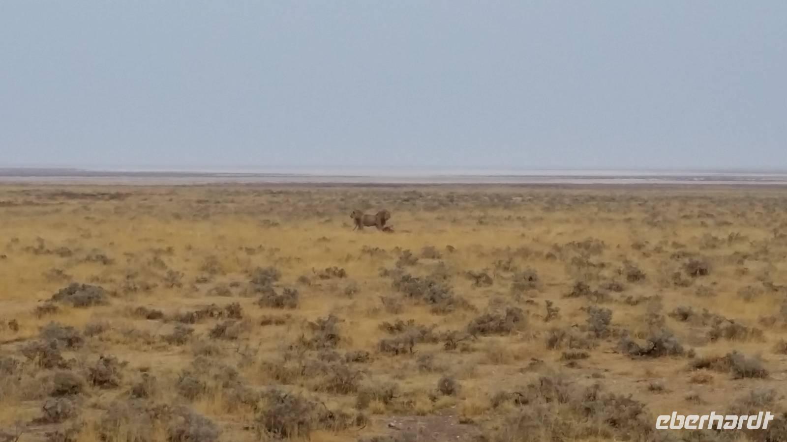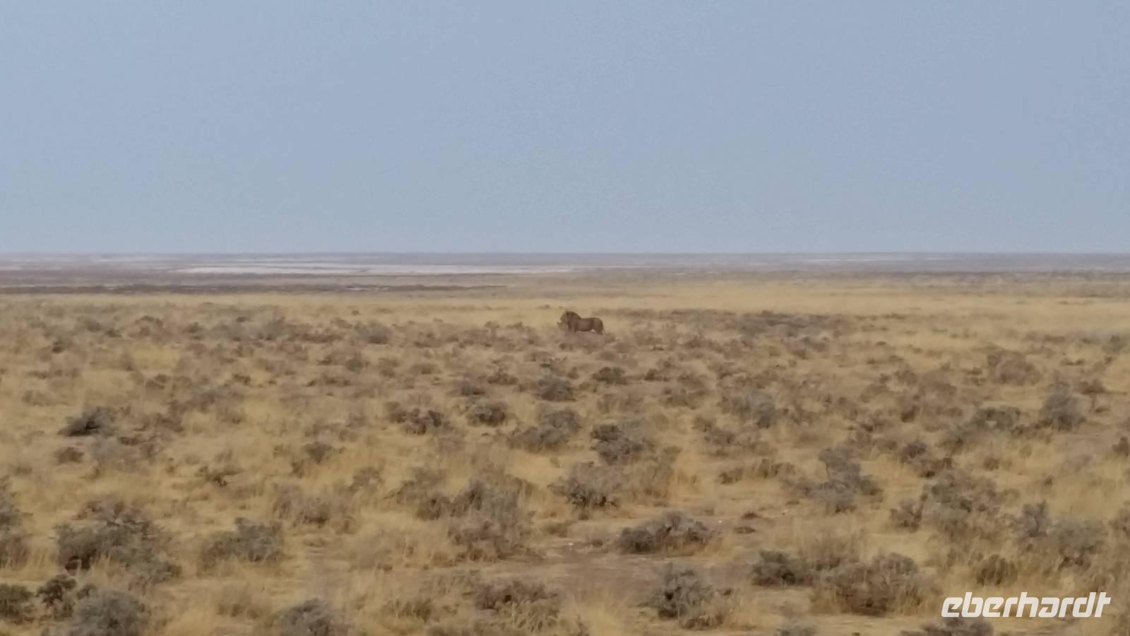 Nach einem gemütlichen Frühstück rollten wir weiter in Richtung Etosha-Nationalpark. Wir stoppten zwischen durch in Omaruru und Outje und legten noch am Parkeingang eine Picknick-Pause unter den Mopanen ein. Dann bezogen wir unsere Lodges und rüsteten uns für unsere erste Pirschfahrt im Park. Nachdem wir Giraffen, Zebras und Kudus gesichtet hat, lauerte noch ein Höhepunkt auf uns: eine erlegte Orex-Antilope und sein satter und müder „Jäger" liegend daneben. Auf den ersten Blick dachten wir, es sei nur ein Kadaver, aber nach genauerem hinsehen sahen wir den Löwen sichtlich voll gefressen danebenliegen. Außerdem sichteten wir noch weitere Giraffen und Zebras.