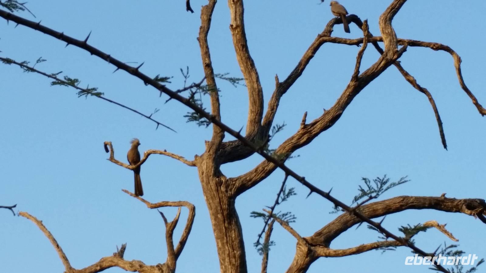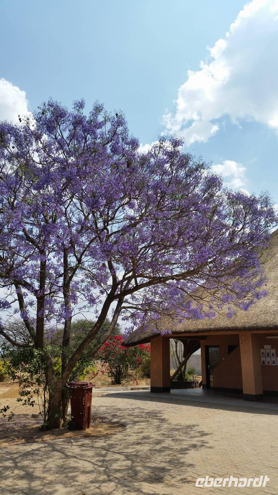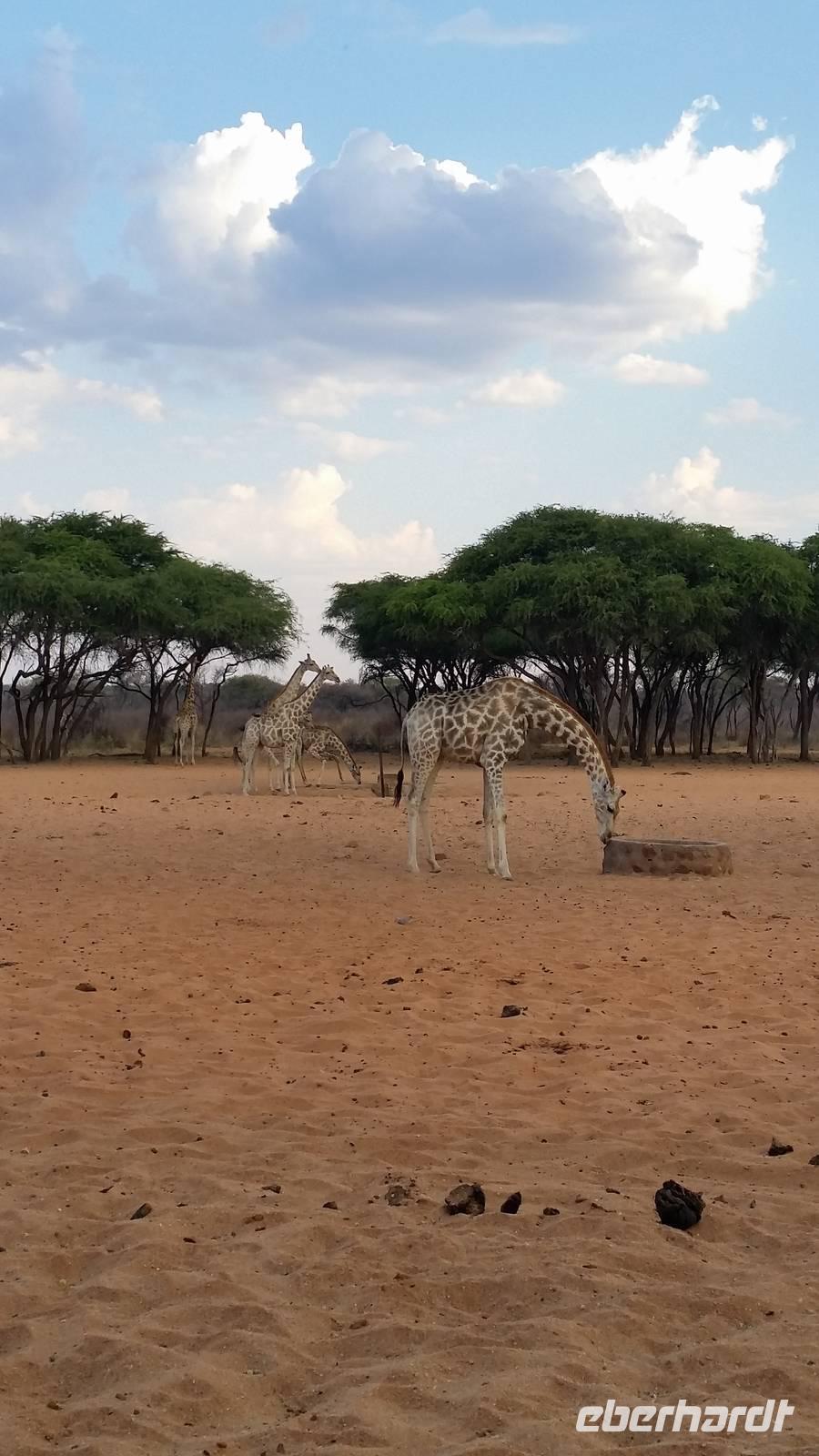 Nach der erfolgreichen Pirschfahrt gestern, startete der heutige Tag gemütlich bei einem ausgedehnten Frühstück. Dann hieß es schon wieder Koffer packen und „Bing, bing, bing...welcome for another sunny day in Africa!". Unsere Reise führte uns nun wieder weiter südlich über Outijo nach Otjiwarongo. Da wir gut in der Zeit waren, besuchten wir kurzerhand in Aufzuchtstation für Geparde, die sogenannte Cheetah Conservation Fund. Dort werden Geparden aufgezogen, die in jungen Jahren ihre Mutter verloren und in der Wildnis nicht überlebensfähig wären. Nach einem kleinen Rundgang zum 5 Hektar großen Gehege konnten wir 3 der „Bewohner" beim faulenzen betrachten. Außerdem sahen wir noch die Farmhunde (namens ???) und die Ziegen. Zum Abschluss durften wir noch bei der Fütterung der Raubkatzen dabei sein, bei der große Stücke Fleisch den Tieren kredenzt worden und diese in Windeseile verschlungen wurden. Danach chauffierte uns Scalla nun in Richtung Nationalpark Waterberg, der von der Vegetation wieder völlig anders war, als der Etosha-Nationalpark. Wir sahen viel mehr grün und vor allem die bekannten lila-blühenden Jakaranda-Bäume. Nachdem wir dann unsere Lodges bezogen hatten, erfrischten wir uns noch im Pool und ließen uns wieder einmal von der ausgezeichneten afrikanischen Küche verwöhnen.