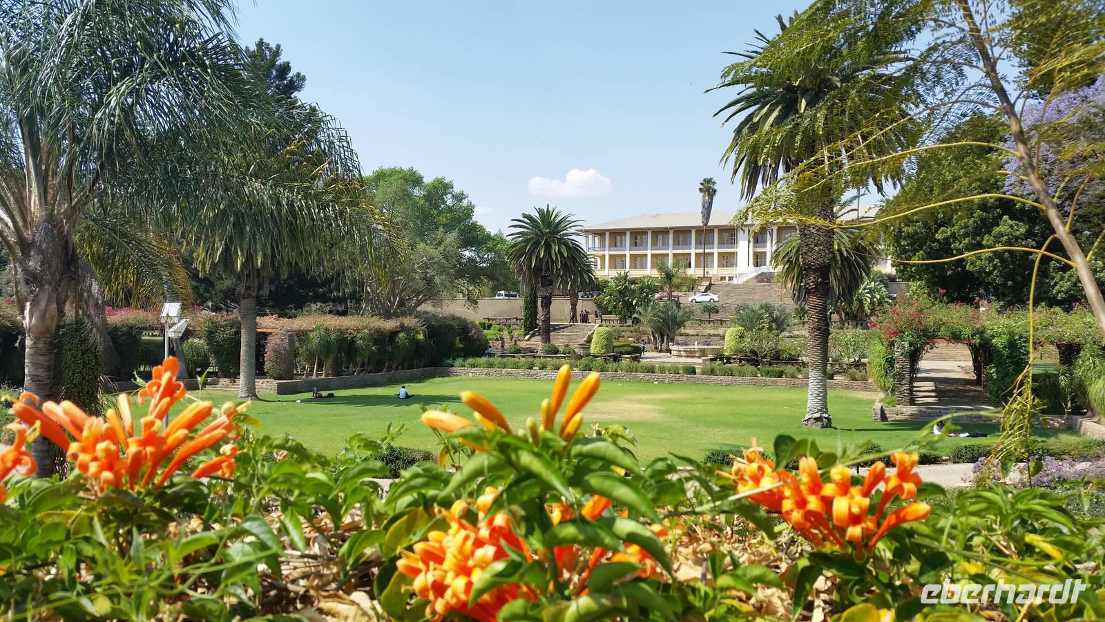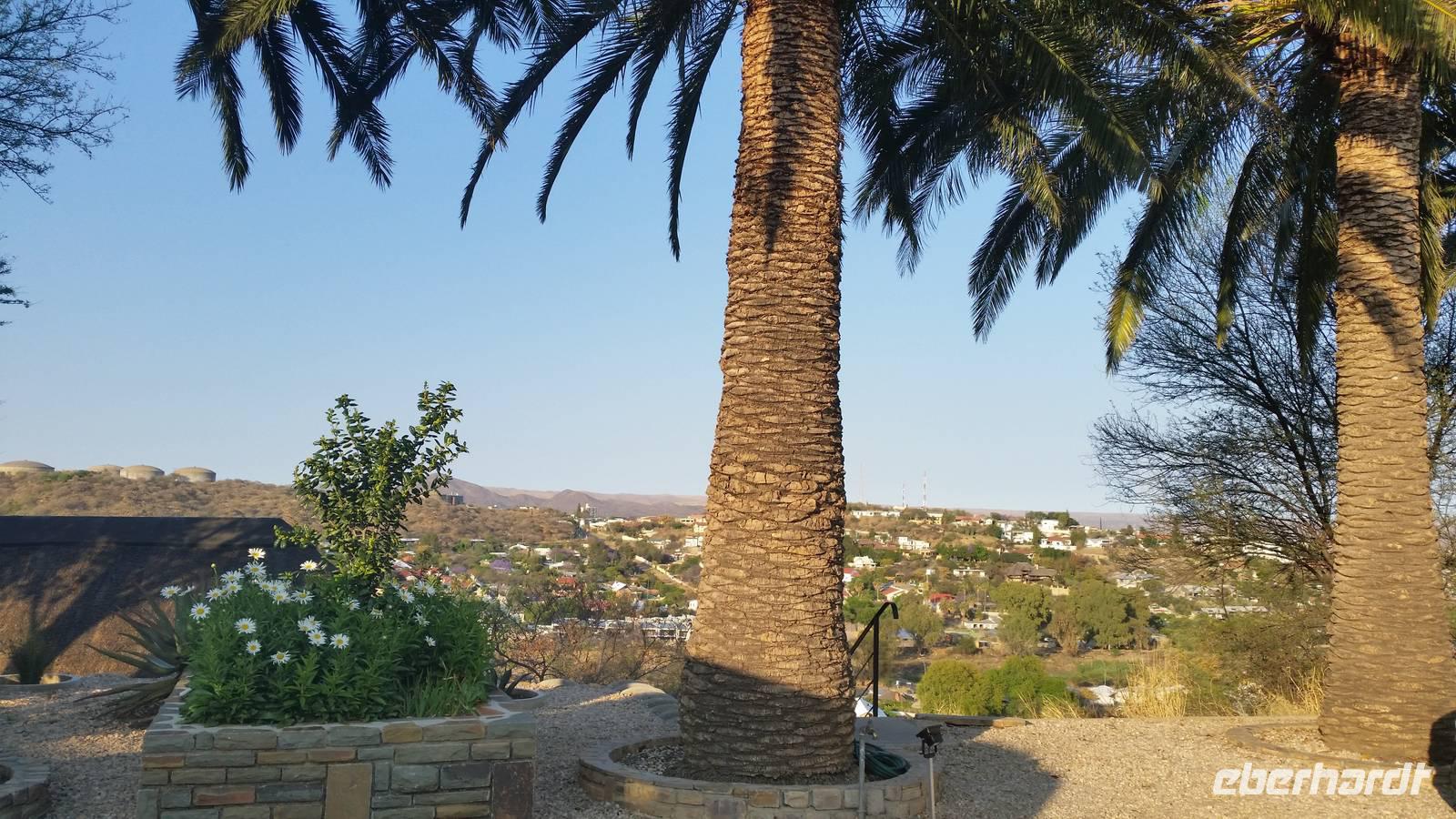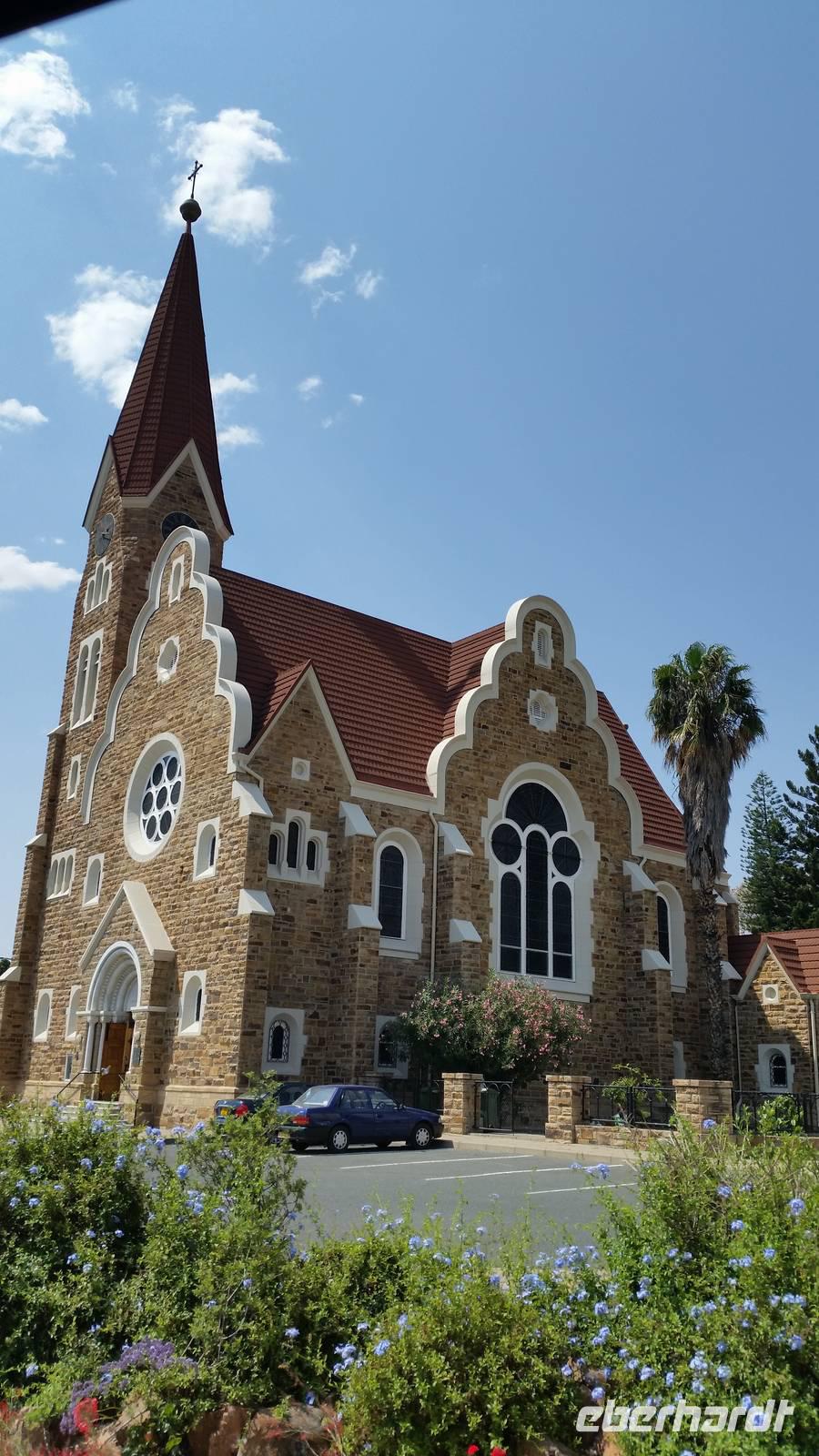 Bevor wir unsere letzte Station Windhoek erreichten, stoppten wir auf unserer letzten Etappe auf einem Holzschnitzermarkt in Okahandtja. Und dort hieß es feilschen, was das Zeug hält! Es gab viele, kleine „Geschäfte", vollgefüllt mit geschnitzten Tieren, Ketten, Schüsseln und sonstigen Mitbringseln. Der ein oder andere erhaschte auch ein Schnappchen, um den Lieben daheim etwas Schönes mitzubringen. Kurz vor Windhoek machten wir dann noch unser letztes Picknick in lustiger Runde. Das werden wir wohl vermissen! Dann zeigte uns Tom noch die schönsten Ecken der namibischen Hauptstadt, deren Name so viel wie „windige Ecke" bedeutet. Die Christuskirche, das ehemalige Reiterdenkmal, der Regierungspalast (auch Tintenpalast genannt) und die Alte Feste waren Teil unserer kurzen Erkundungstour. Den restlichen Nachmittag entspannten wir uns in unserem schönen Hotel oberhalb der Stadt und bereiteten uns seelisch und moralisch auf unsere Heimreise vor.