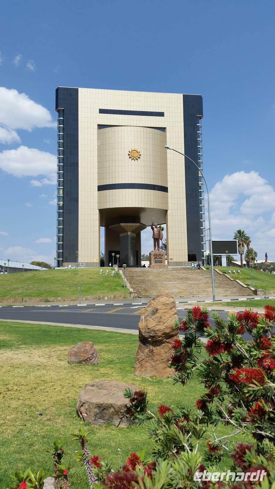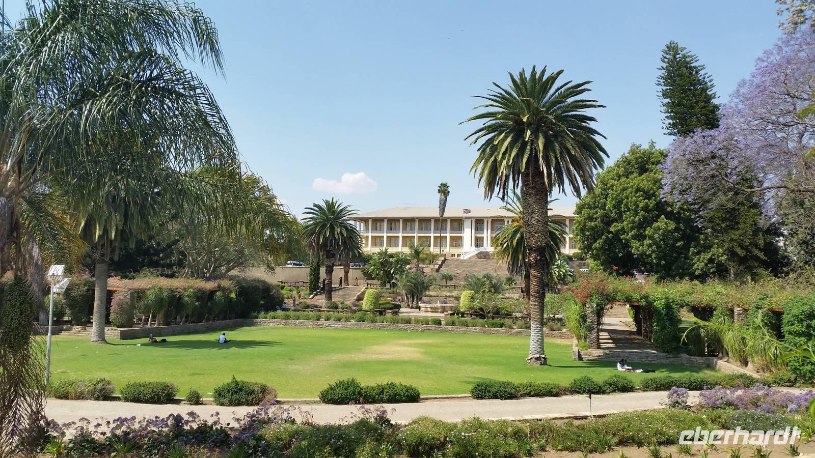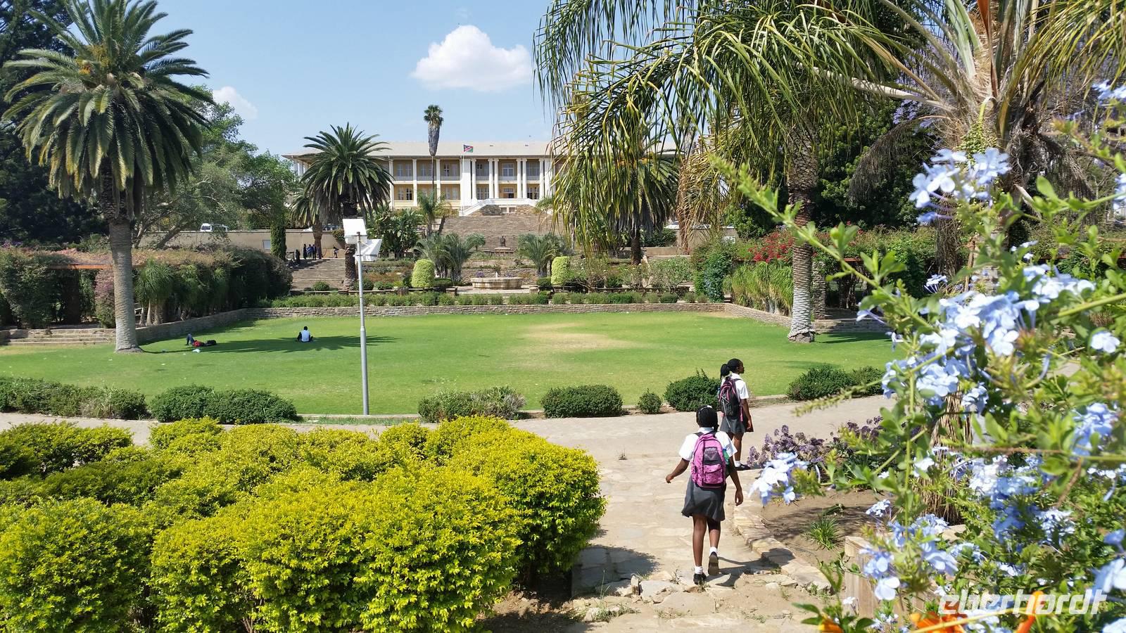 Bevor wir unsere letzte Station Windhoek erreichten, stoppten wir auf unserer letzten Etappe auf einem Holzschnitzermarkt in Okahandtja. Und dort hieß es feilschen, was das Zeug hält! Es gab viele, kleine „Geschäfte", vollgefüllt mit geschnitzten Tieren, Ketten, Schüsseln und sonstigen Mitbringseln. Der ein oder andere erhaschte auch ein Schnappchen, um den Lieben daheim etwas Schönes mitzubringen. Kurz vor Windhoek machten wir dann noch unser letztes Picknick in lustiger Runde. Das werden wir wohl vermissen! Dann zeigte uns Tom noch die schönsten Ecken der namibischen Hauptstadt, deren Name so viel wie „windige Ecke" bedeutet. Die Christuskirche, das ehemalige Reiterdenkmal, der Regierungspalast (auch Tintenpalast genannt) und die Alte Feste waren Teil unserer kurzen Erkundungstour. Den restlichen Nachmittag entspannten wir uns in unserem schönen Hotel oberhalb der Stadt und bereiteten uns seelisch und moralisch auf unsere Heimreise vor.