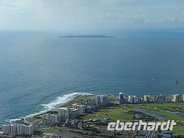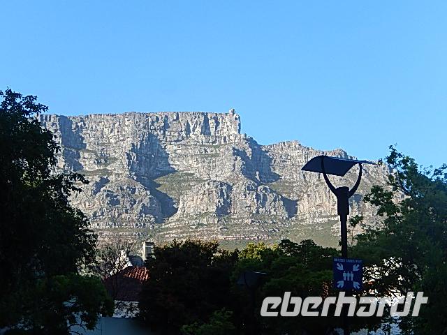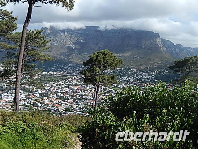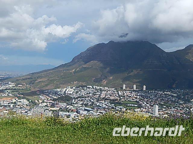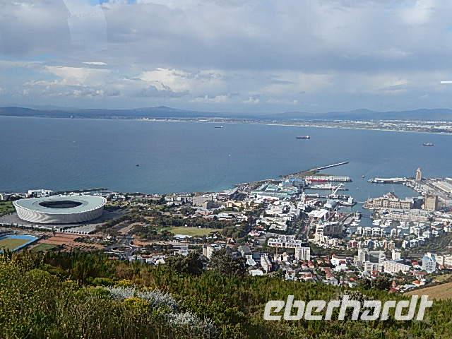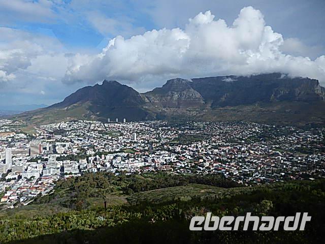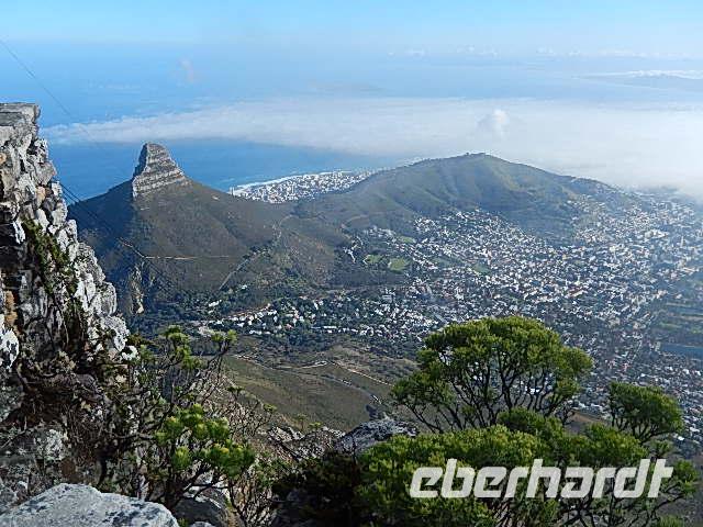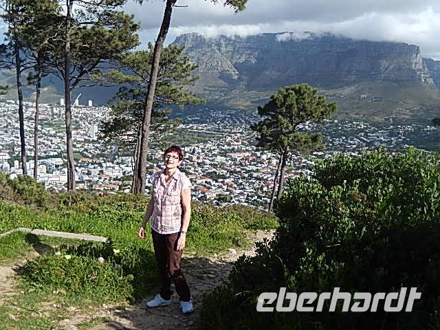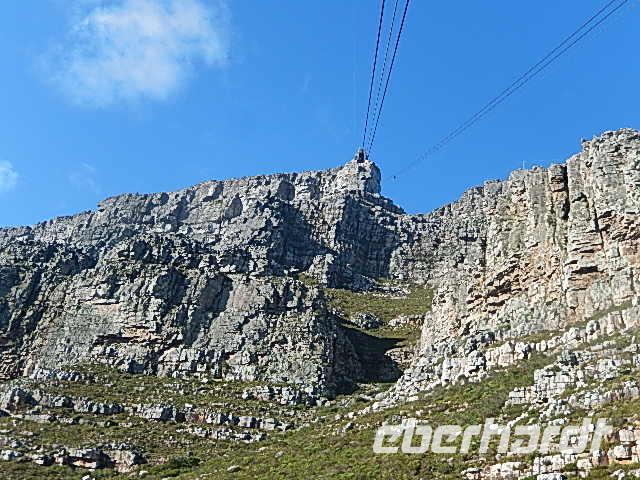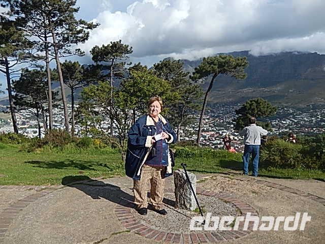 Super - die Sonne lacht, Hildegard hat Recht behalten. Von unserem Hotel aus können wir sehen,der Gipfel des Tafelberges ist frei. Erleichterung und Freude bei allen, wir können mit der Ersteigung beginnen. Wir haben Glück und sind fast die Ersten an der Seilbahn und schweben mit der Gondel nach oben. Während der Auffahrt dreht sich die Gondel einmal komplett um sich selbst, jeder Gast kann also den atemberaubend schönen Blick auf die Stadt und das Meer genießen. Auf dem Gipfel ist es wirklich kühl und windig, wir sind aber gebannt von der traumhaften Aussicht, bevor sich das Tafeltuch wieder über den Gipfel zieht - Glück gehabt.