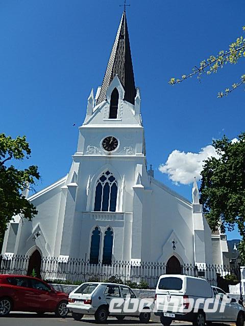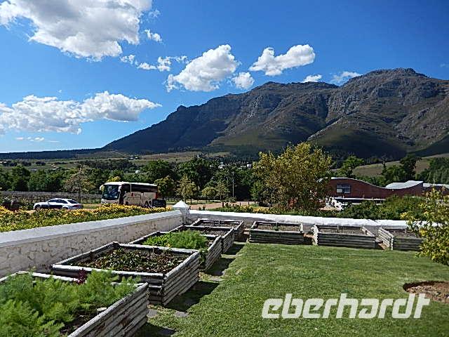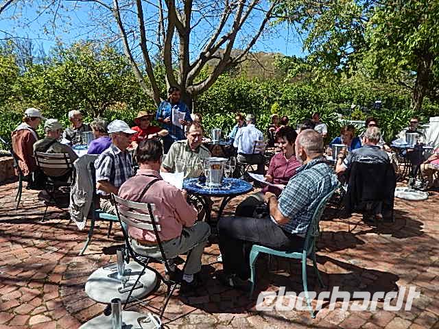 Die grüne Umgebung Kapstadts wartet heute auf uns. Vorbei an Paarl erreichten wir Groot Drakenstein. Hier befindet sich das Gefängnis, wo Nelson Mandela bis zu seiner Freilassung inhaftiert war, eine riesige Bronzestatue erinnert daran. Kurze Zeit später kommen wir in Franschhoek - Französisches Eck - an und Hildegard erzählt uns die Entstehungsgeschichte des Örtchens am Hugenottendenkmal. Im Ort selbst spürt man den französischen Flair an allen Ecken, besonders auf der Main Road, wo sich nette Straßen-Cafes und Shops aneinander reihen. Die erste Verkostung südafrikanischer Weine erwartet uns. Auf dem Weingut Moreson erfahren wir Interessantes über den Weinanbau und natürlich die Weine selbst. Wir verkosten Sekt, Rot- und Weisswein. Danach ging unsere Fahrt weiter in die Universitätsstadt Stellenbosch, die zweitälteste Stadt Südafrikas.