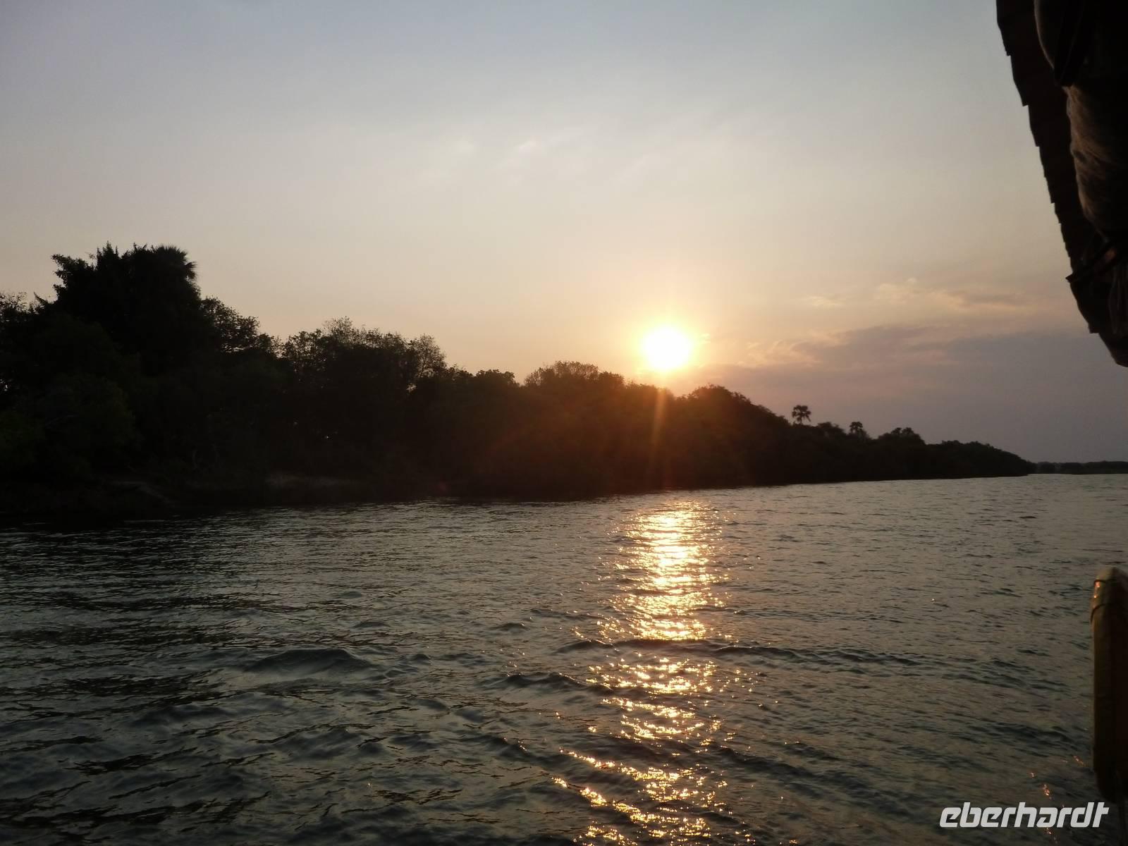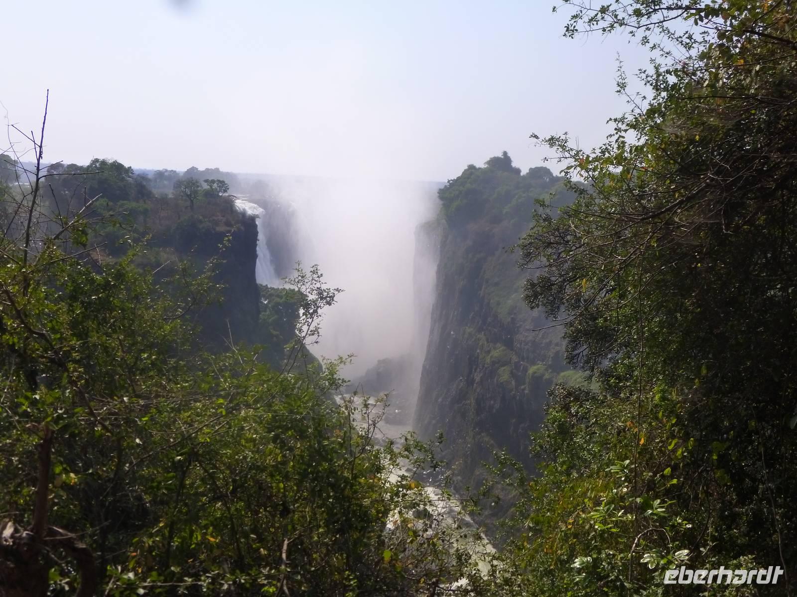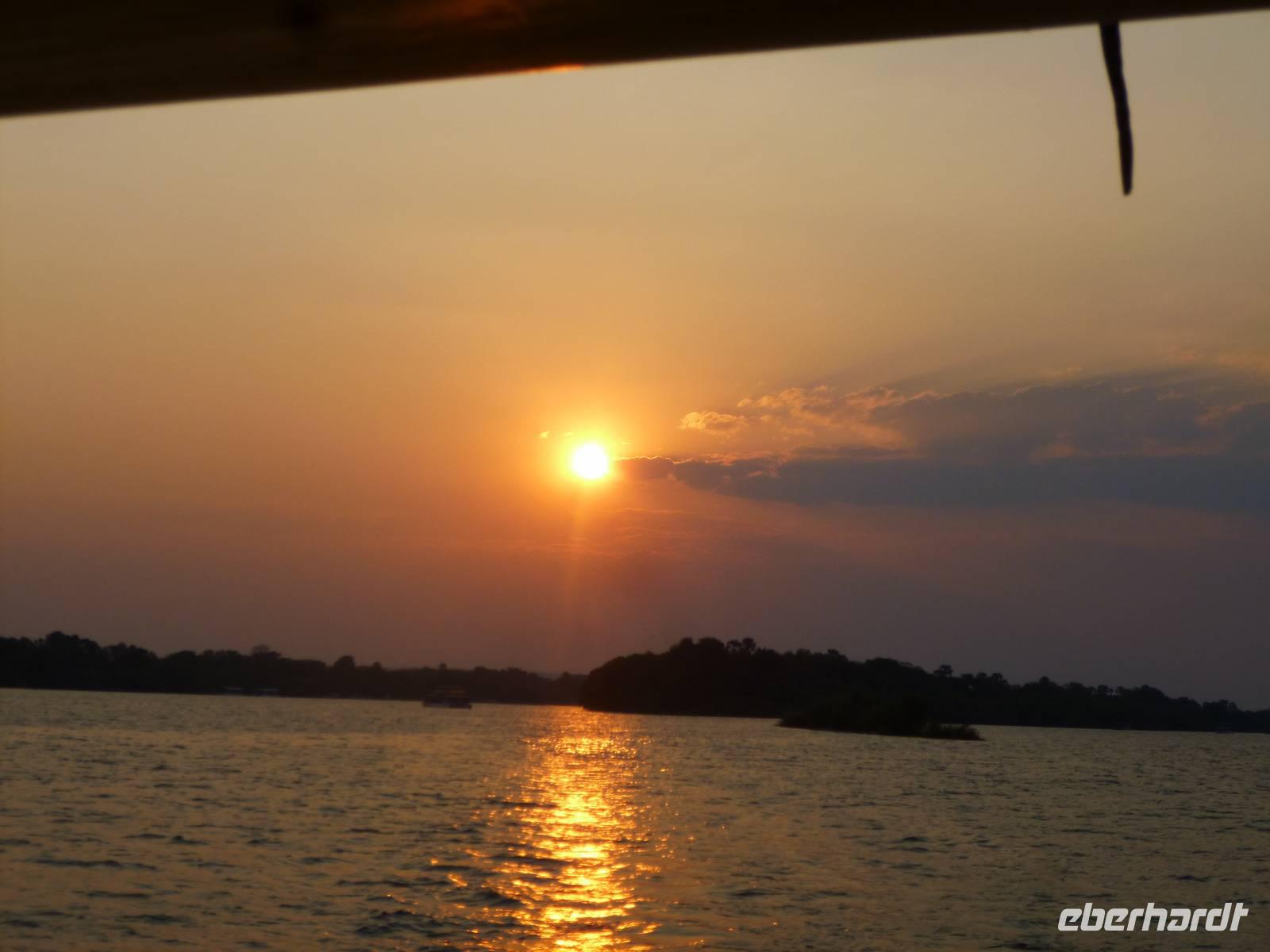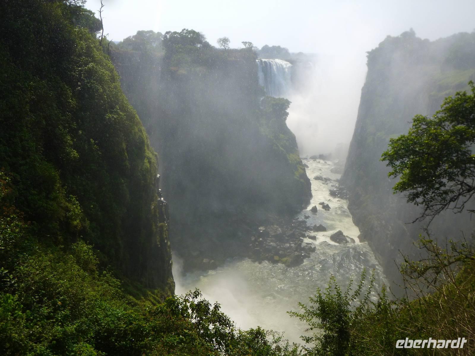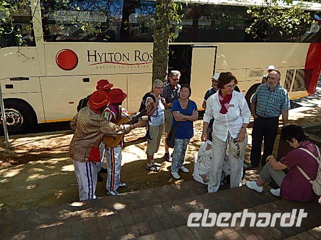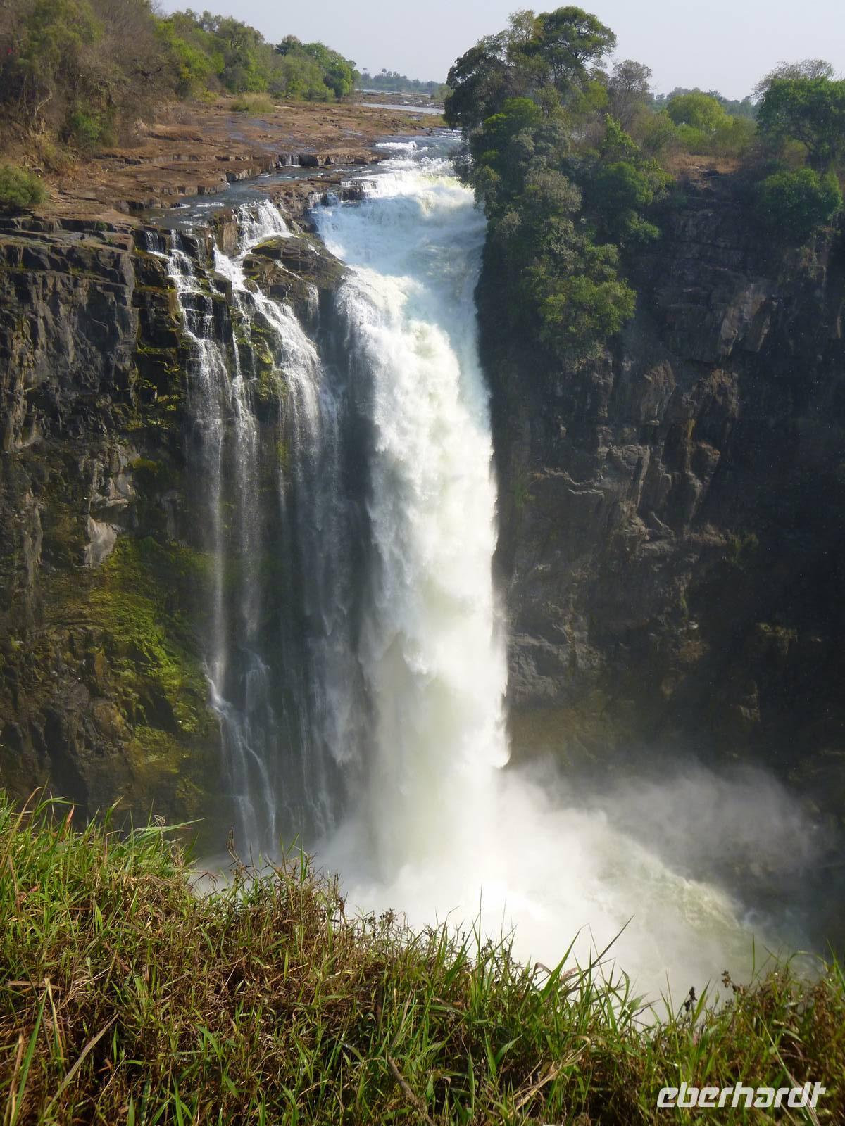 Auf zur leider letzten Etappe unserer Reise, nach Simbabwe zu den berühmten Victoria Wasserfällen. Am Flughafen Johannesburg verabschiedeten wir uns von Christel, unserer Reiseleiterin und Mohammed, unserem Busfahrer. Nach ca. 2 h Flug landeten wir in Livingstone. Eine riesige Schlange an der Passkontrolle, Kathrin sammelte kurzerhand alle Reisepässe ein und erledigte die Formalitäten, während die Eberhardt-Gäste bereits das Gepäck in Empfang nahmen. Am Ausgang wurden wir von Grace empfangen und starteten in Richtung Zimbabwe. An der Grenze ließen wir mit einem mulmigen Gefühl unsere Pässe zurück, die Alternative wäre 2 Stunden warten bei 35 Grad im Schatten. Wir vertrauten Grace... Am Nachmittag hatte wir Zeit unsere Seele baumeln zu lassen, die Krokodilfarm zu besuchten oder einfach in den Hotelpool zu hopsen. Am Abend schlemmten wir am leckeren Buffet und wurden mit Livemusik unterm Sternenhimmel unterhalten.
