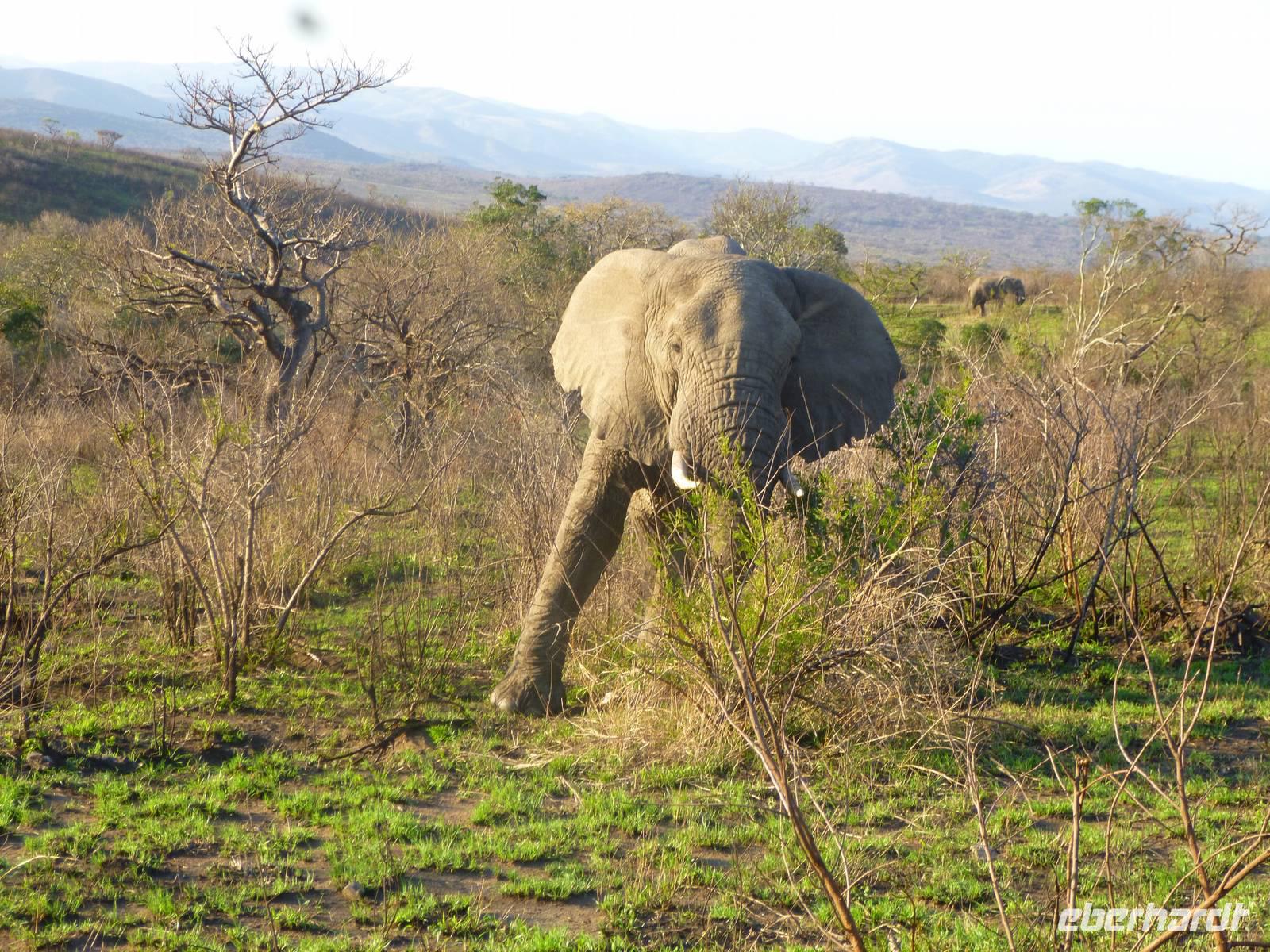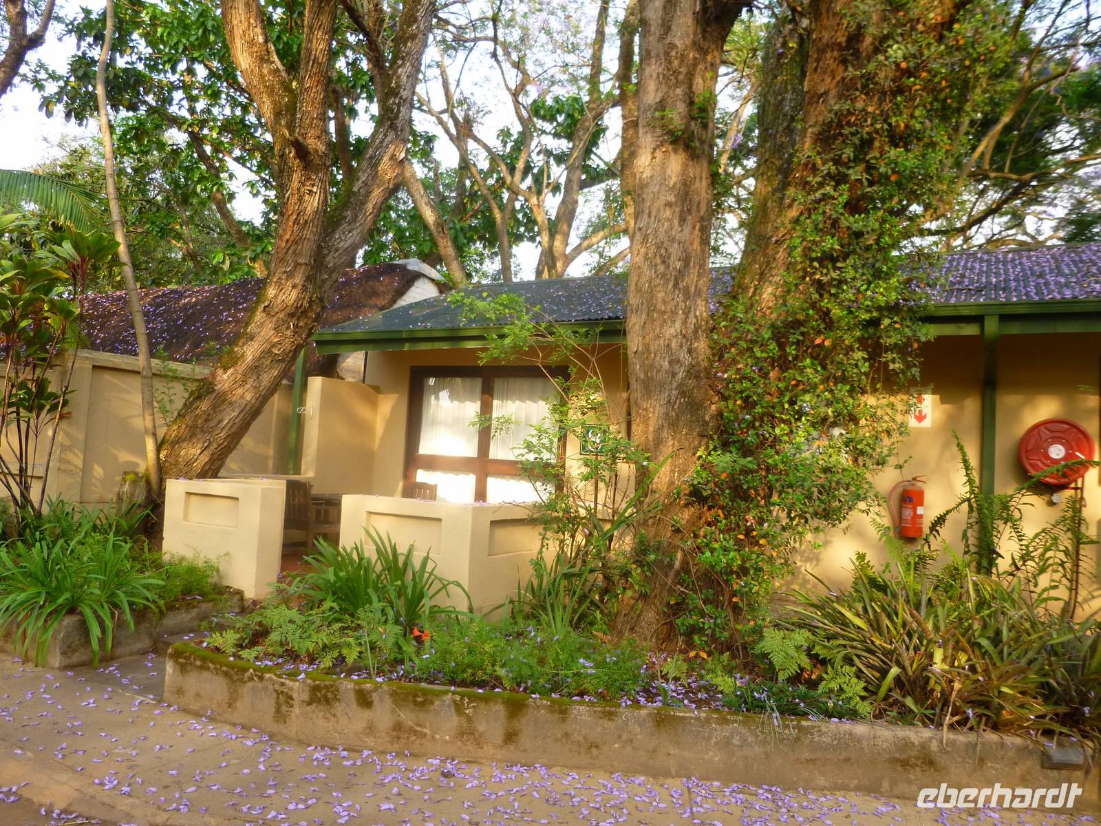Am Nachmittag landeten wir in Durban und wurden von Christel, unserer neuen Reiseleiterin empfangen. Auf direktem Weg fuhren wir nach St. Lucia. Unterwegs weihte uns Christel in die Geschichte des Zululandes und seines Königs Shaka ein. Wir entdeckten nun ein anderes Afrika als in der Kapregion-traditionelle Dörfer mit den typischen Rundhütten und die bunten Märkte der Einheimischen. Am späten Nachmittag erreichten wir das „Elephant Lake Hotel", welches direkt am Ufer des St. Lucia Sees liegt.