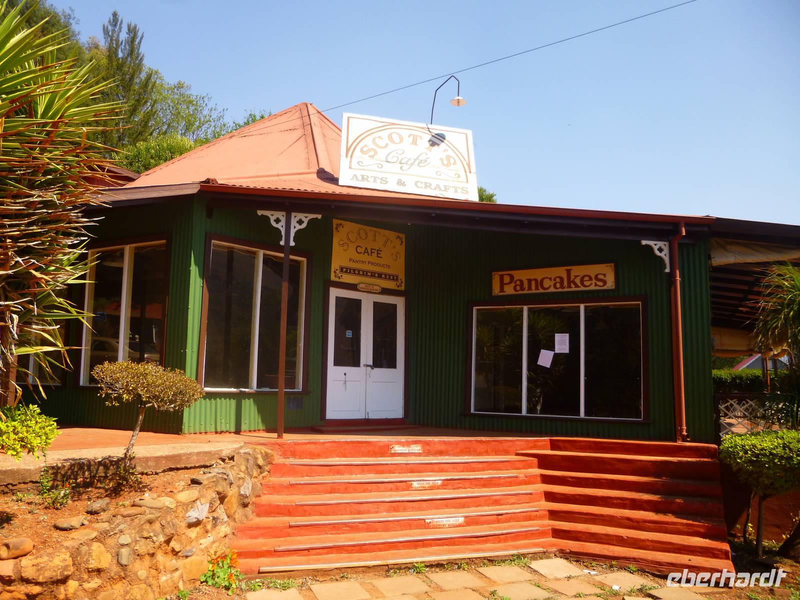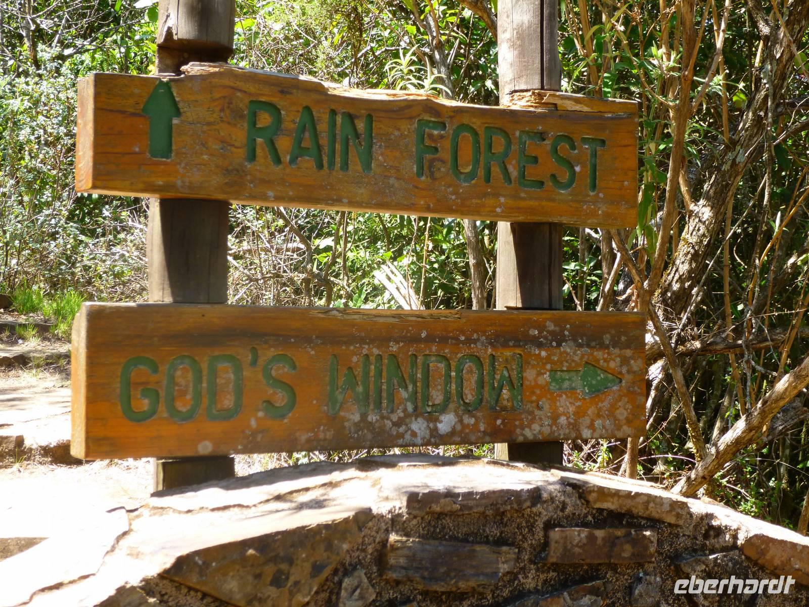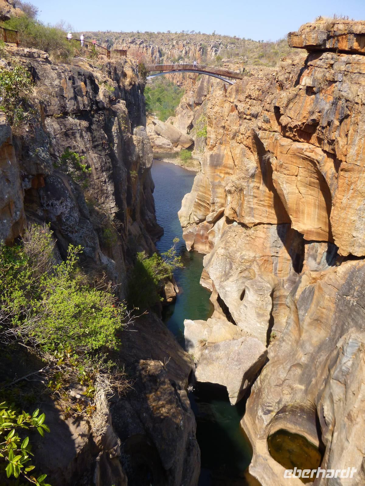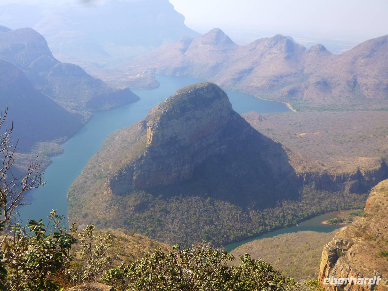 Zunächst unternahmen wir einen Abstecher nach Pilgrim's Rest, dem kleinen Goldgräberstädtchen und bummelten wir über die historische Main Road. Nach einer Mittagspause bei Harrie's in Graskop, wo wir süße oder herzhafte Pancakes schlemmten, fuhren wir zum Aussichtspunkt God's Window. Wirklich wie aus Gottes Fenster blickten wir auf das weite Land bis nach Mosambik. Bei Bourke's Luck Potholes machten wir ebenfalls Stop. Ein Spaziergang auf dem befestigten Weg führte uns durch die beeindruckende Gesteinsformation. Der spektakulärste Aussichtspunkt des Blyde River Canyon ist und bleibt jedoch der bei den Three Rondalves, wo wir natürlich als Fotomodelle posierten. Vom Hochplateau der Panoramaroute ging's nun wieder hinab. Am Abend erreichten wir unserer Hotel in Hazywiew unweit des Krüger-Nationalparks.