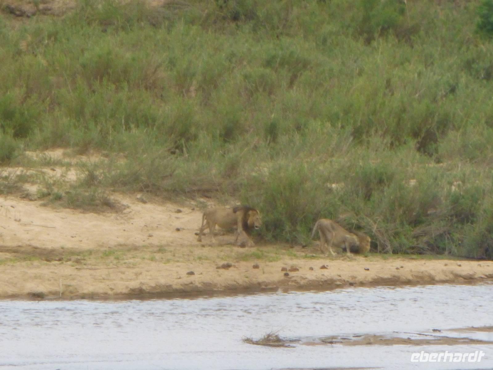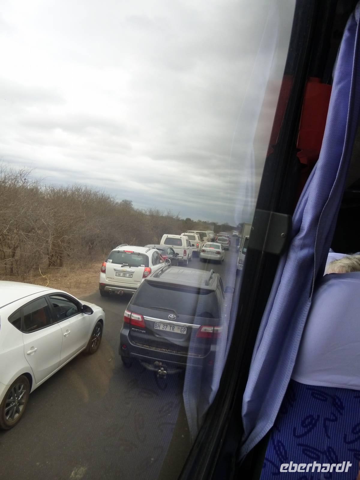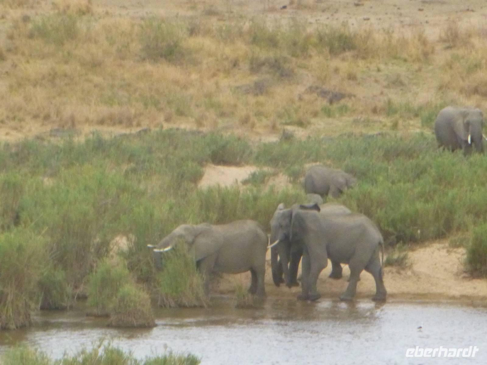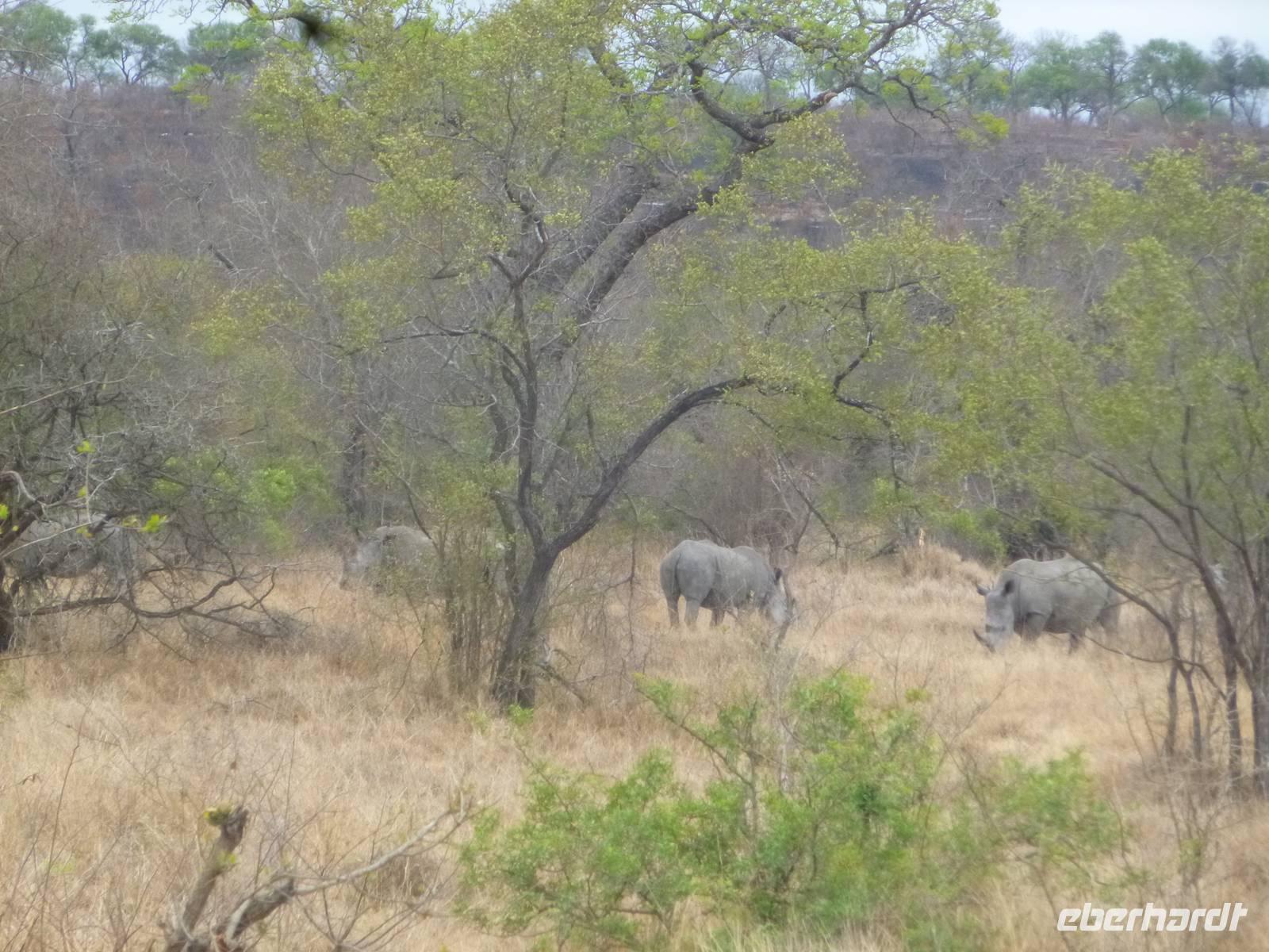 Heute fuhren wir zunächst mit dem Bus durch den Krüger-NP. Zwar darf man dann nur bestimmte Straßen im Park befahren, doch das sollte kein Nachteil sein. Im Bus saßen wir höher, konnten somit weiter schauen. Im Krüger Nationalpark sind die Herden nicht so riesig, die Artenvielfalt aber um einiges größer. Wir hatten riesiges Glück und sahen schon am ersten Tag die „Big five" Nashorn, Büffel, Elefant, Löwe und Leopard. Aus der Ferne konnten wir 2 verschiedene Löwenrudel beobachten, die Beobachtung der Rudel von Menschen ringsum, war aber ebenso spannend.