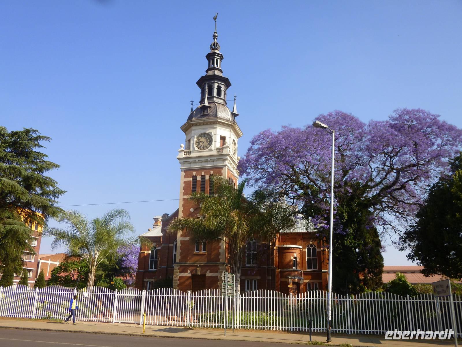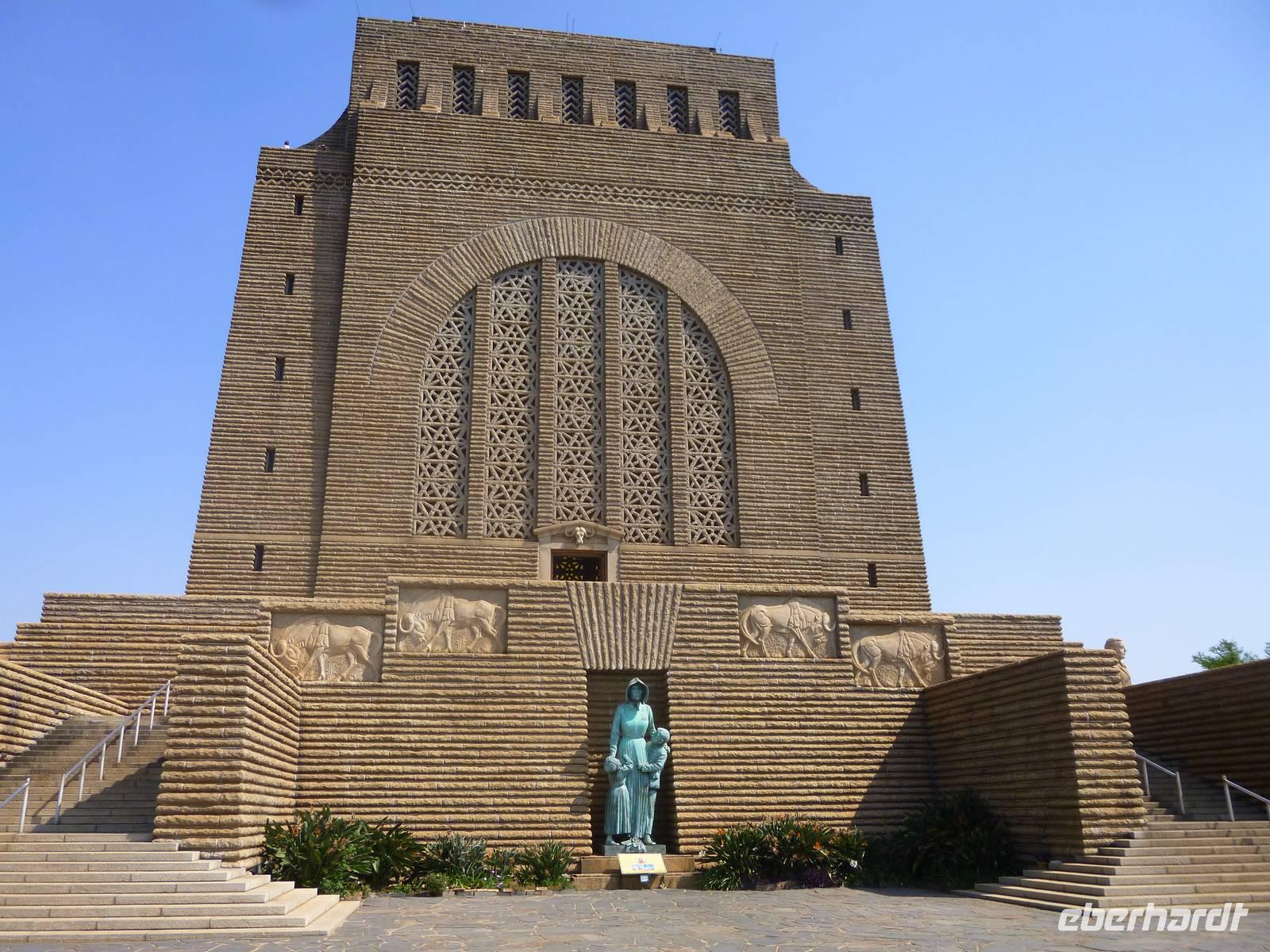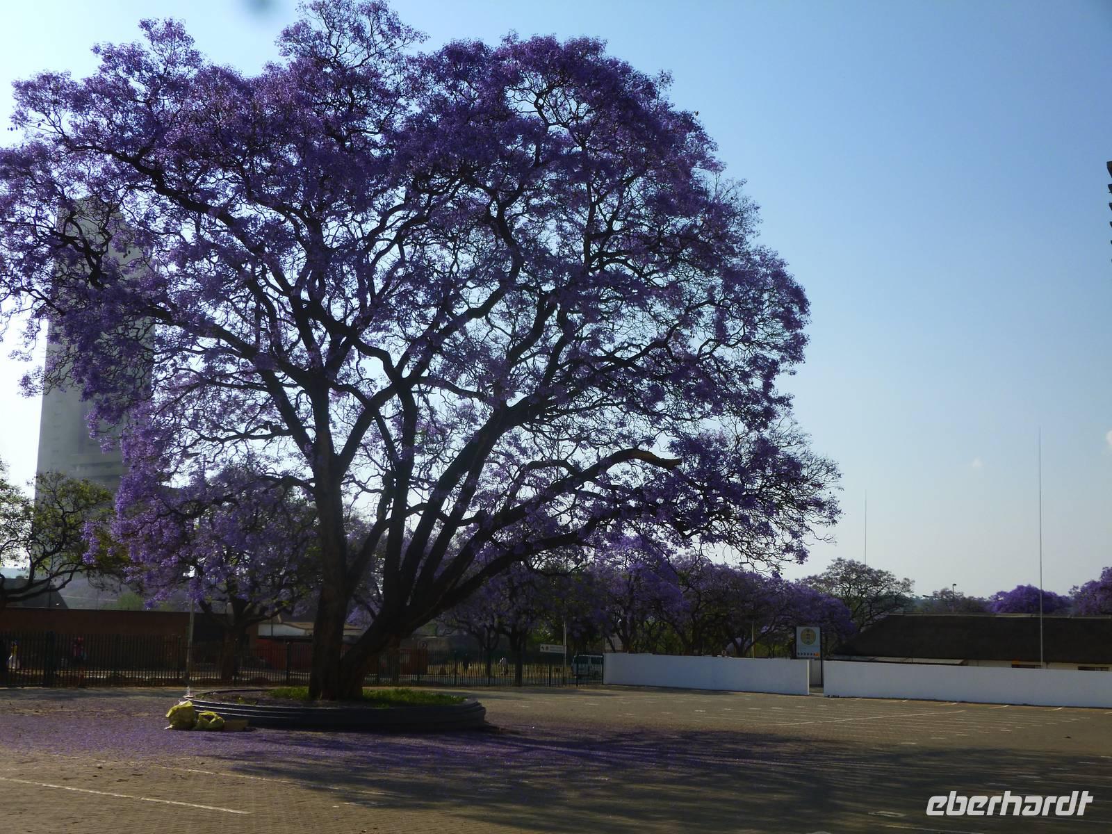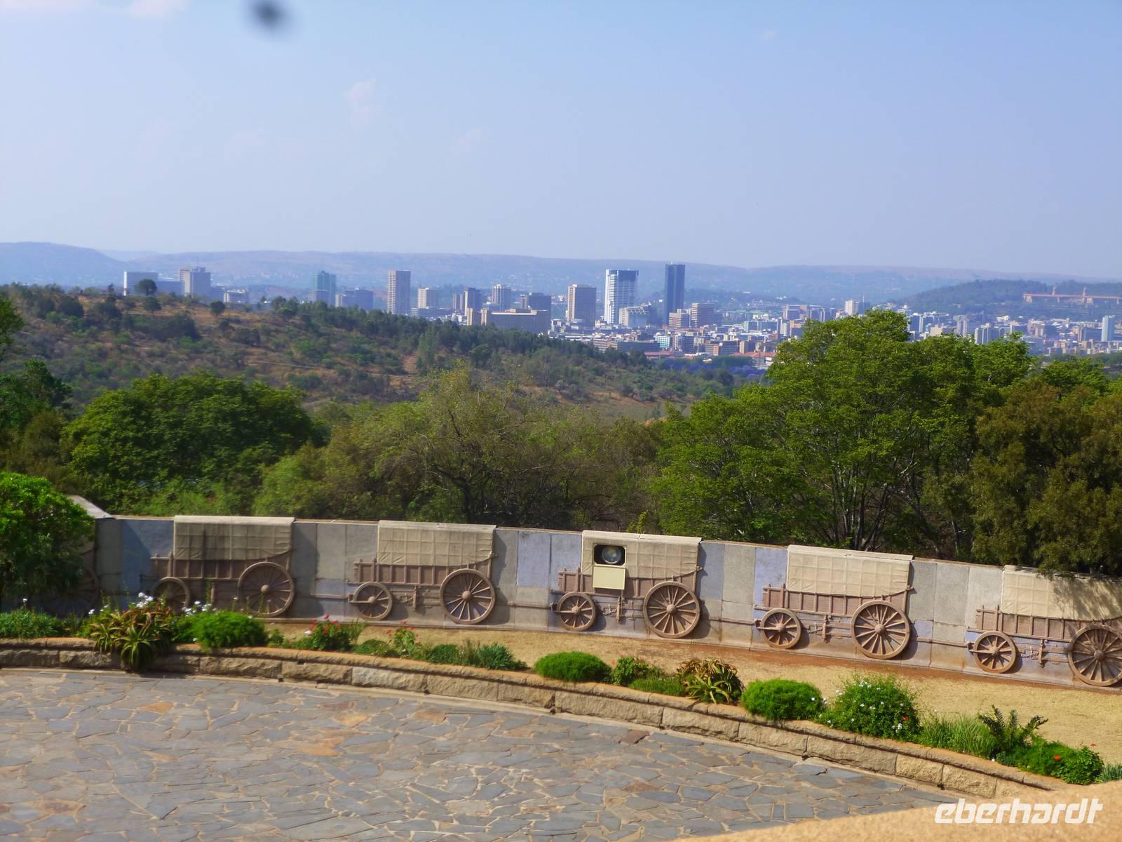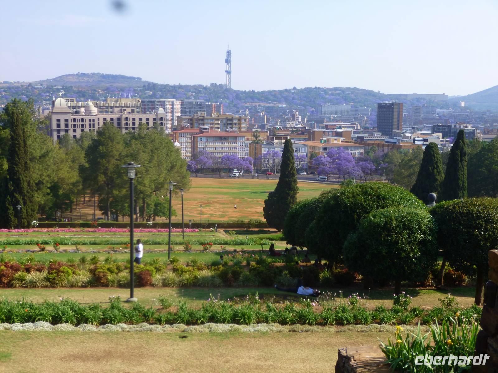 Bei schwülen Temperaturen erklommen wir die Stufen des Vortrekker Monumentes. Es ist für die burisch-stämmigen Südafrikaner ein Nationalheiligtum. Besonders am 16. Dezember, dem Jahrestag der Schlacht am Blood River strömen Afrikaner aus dem ganzen Land zum Vortrekker Denkmal, um eines der bedeutsamsten Ereignisses in der Geschichte Südafrikas zu gedenken. Vom Dach des Monuments hat man einen wunderbaren Panoramablick über Pretoria. Auf unserer anschließenden Fahrt zum Regierungsviertel bestaunen wir die vielen, nur im afrikanischen Frühling blühenden dunkellila Jacaranda Bäume. Die mächtigen exotischen Bäume verwandeln die gesamte Stadt in ein fliederfarbenes Meer.