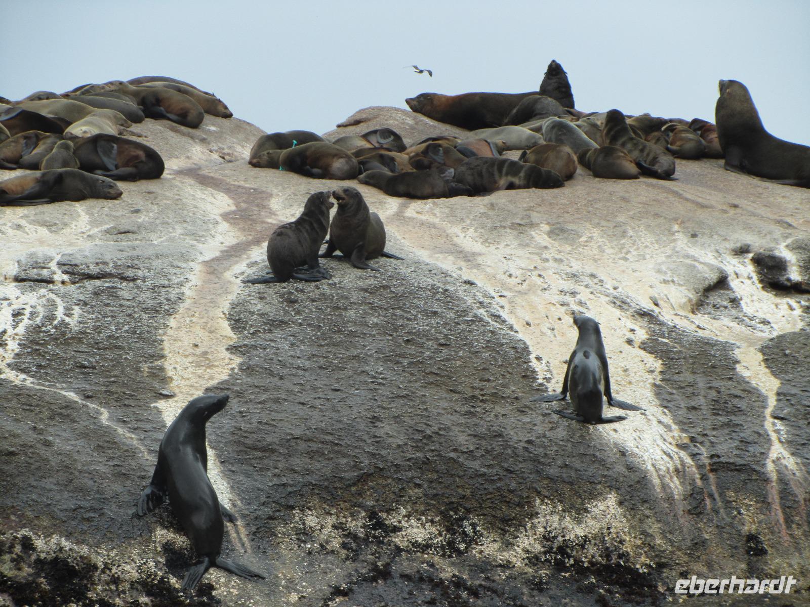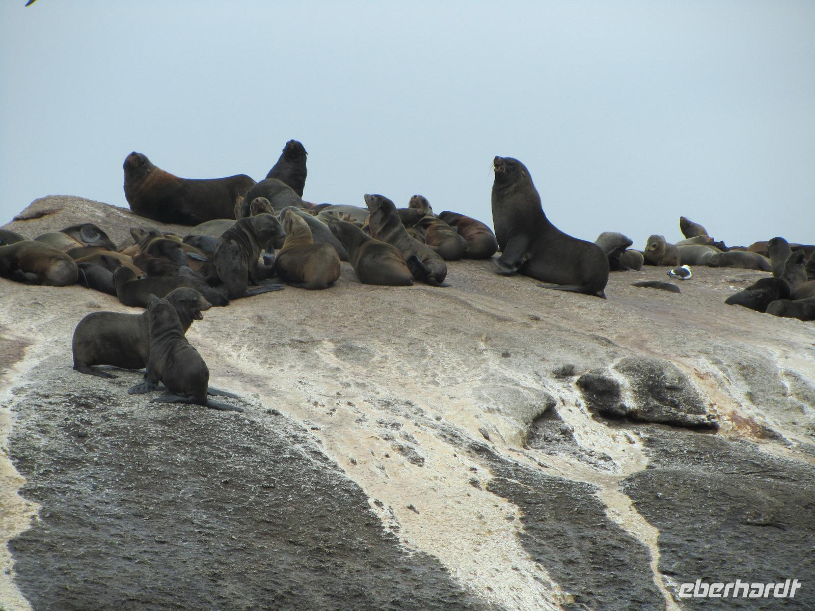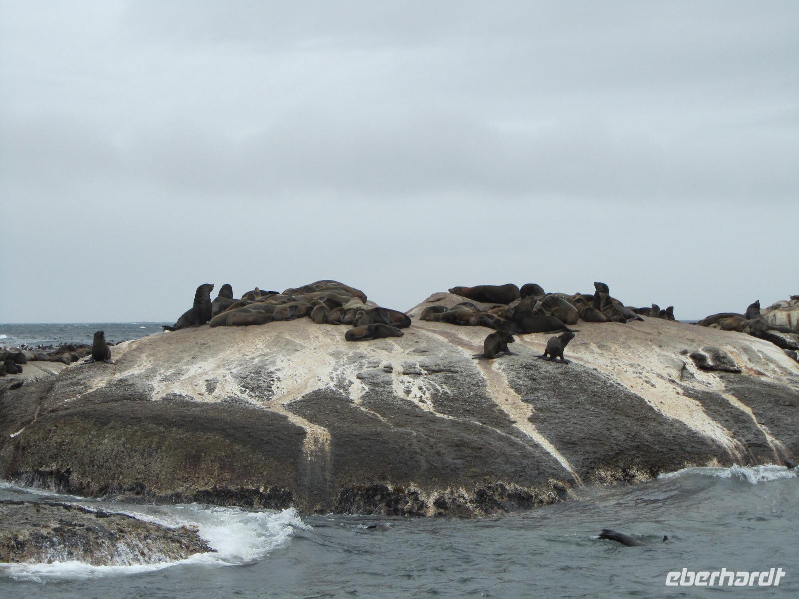 Und auf ging es in den ersten richtigen Tag vor Ort. Nach einer Mütze Schlaf freuten wir uns alle auf das, was vor uns lag. Mit dem Bus ging es nach Hout Bay, wo wir eine Schifffahrt zur Seal Island unternehmen konnten. Fast alle von uns machten diese auch mit und wir konnten unzählige Robben beobachten, auf der Rückfahrt in den Hafen hatten wir sogar noch das Glück einen Wal zu sehen. Weiter ging es dann mit dem Bus über den Chapman's Peak Drive, eine der vielen und berühmten Traumstraßen der Welt. Auf unserem Weg zum Kap, spielte das Wetter leider nicht immer mit, sodass wir einen grauen und wolkenverhangenen Himmel hatten. Am Cape Point angekommen, regnete es dann auch noch so, dass wir eigentlich gleich wieder weiterfahren wollten. Doch dank unserer kurzen Toilettenpause hier, bemerkten wir, dass es auflockerte und der Regen nachließ, also machten wir uns mit der Seilbahn auf den Weg nach oben. Schon während der Auffahrt konnten wir den Strand erkennen und wie sich die Wolken langsam verzogen. Wir waren froh, dass wir es doch gewagt hatten und dafür auch belohnt wurden. Weiter ging es dann noch zum Kap der Guten Hoffnung, wo das obligatorische Gruppenbild gemacht wurde. Für die Kaptaufe hatte ich extra Amarula und Becher im Gepäck damit wir auch richtig anstoßen konnten.