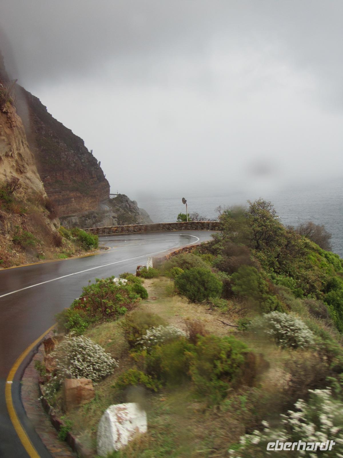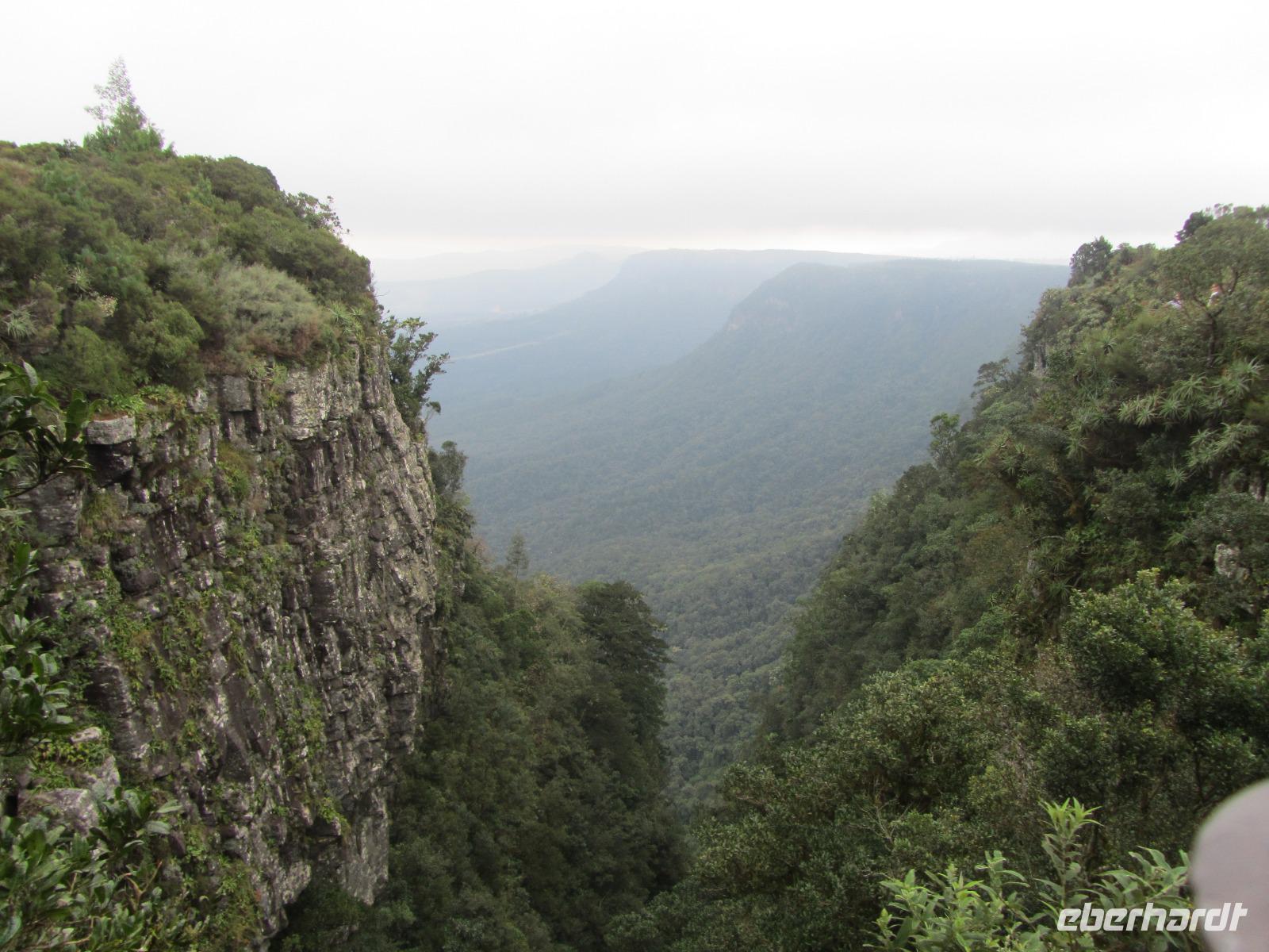 Da das Wetter sich immer mehr zuzog, beschlossen wir für heute das Mittagessen ausfallen zu lassen und weiterzureisen, denn auf unserem Programm stand noch die „göttliche Aussicht". Naja ganz so göttlich war die Aussicht auf die 700 Meter in die Tiefe gehenden Felsen dann leider doch nicht durch den wolkenverhangenen Himmel, aber immerhin wussten wir was gemeint war mit „God's Window".