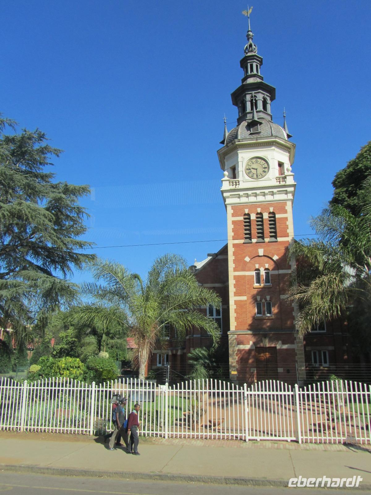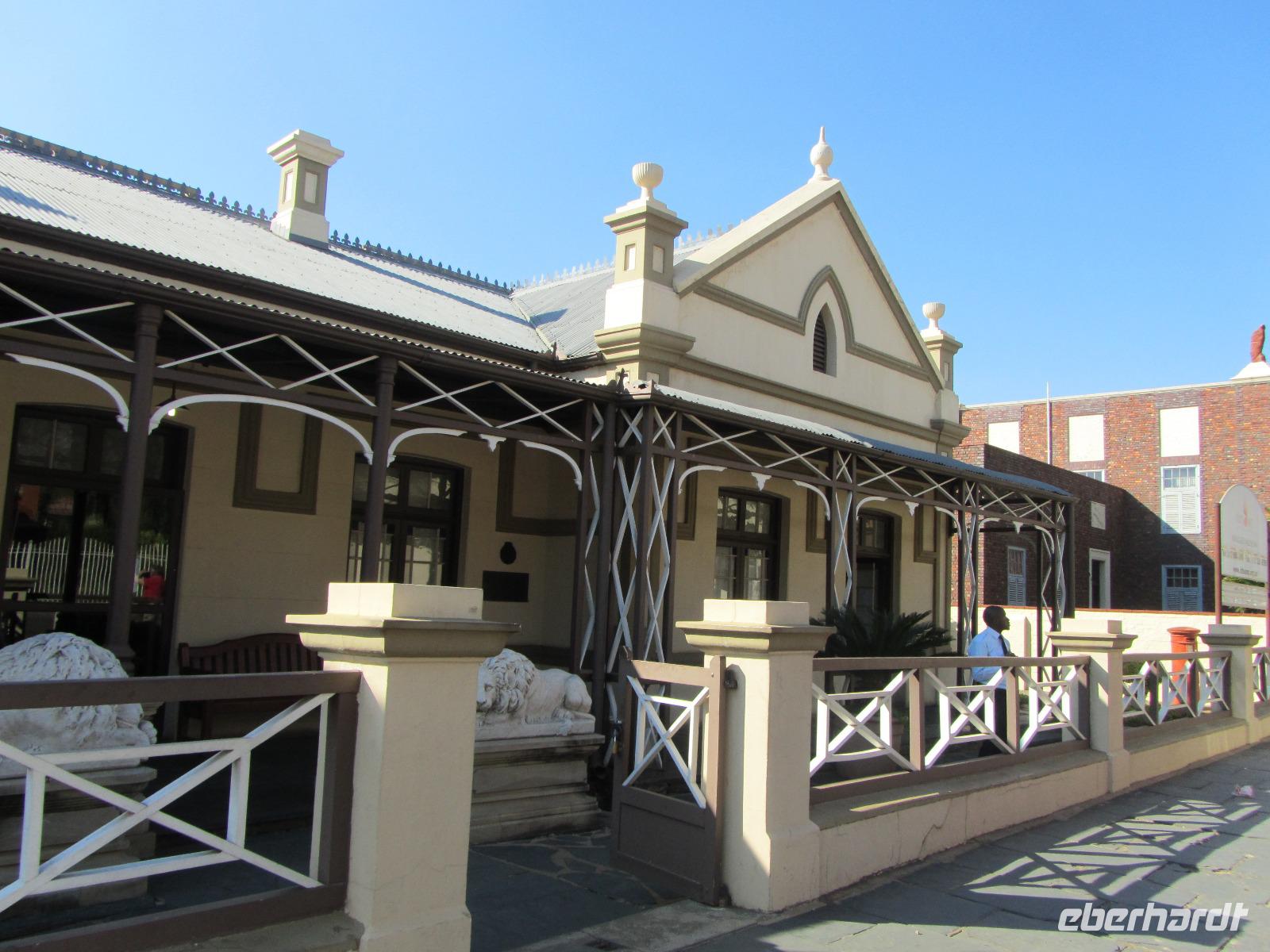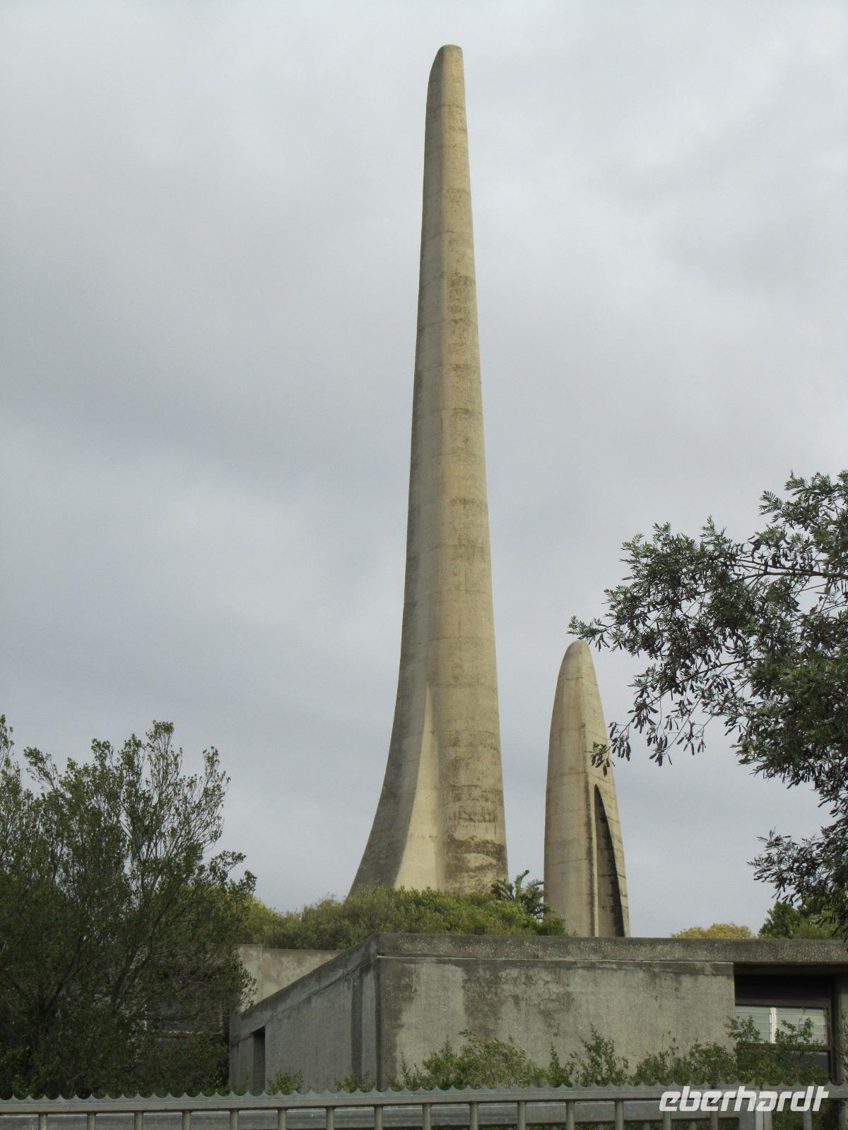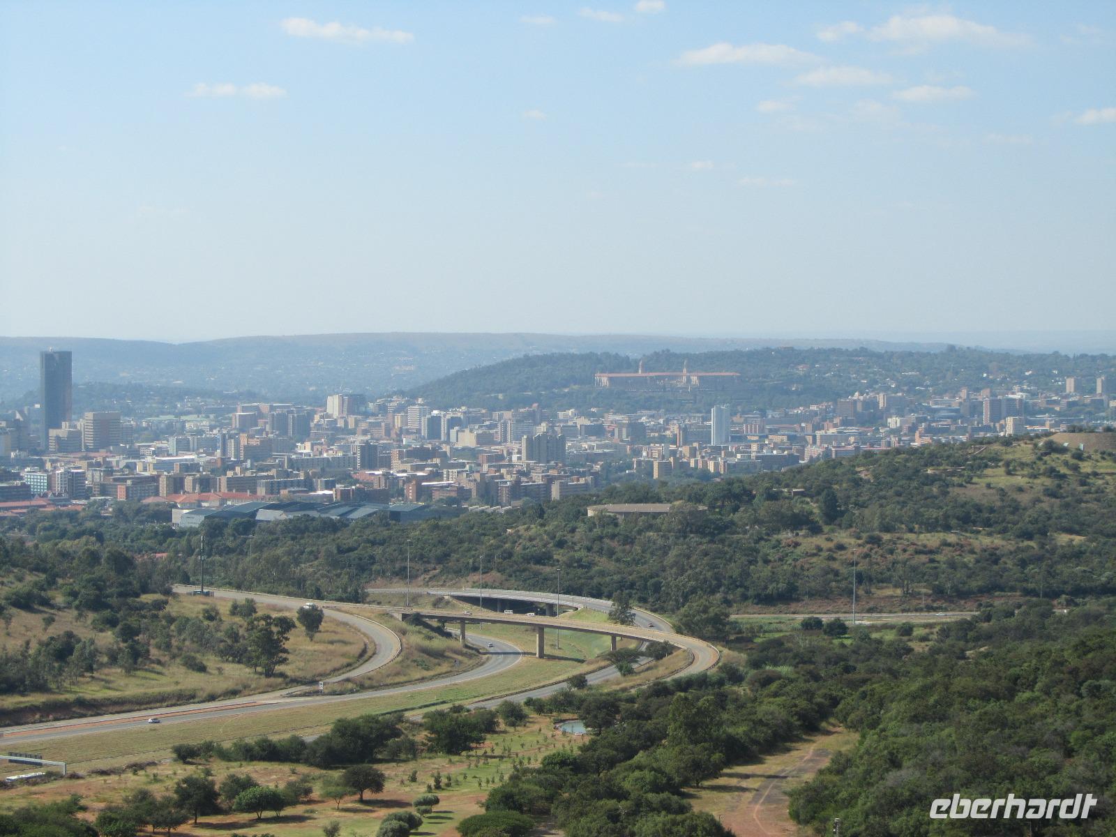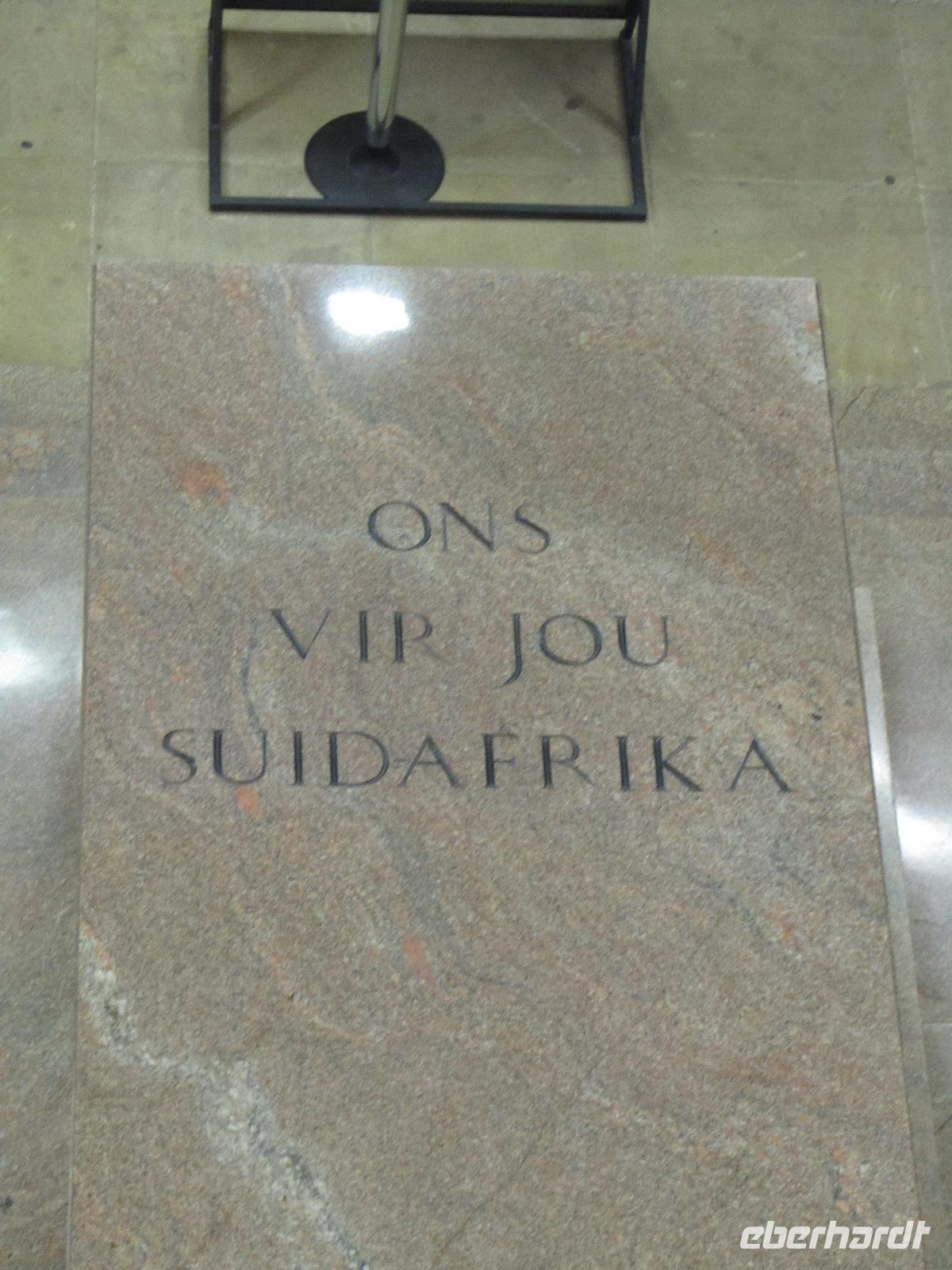 Heute stand mal wieder eine etwas längere Busfahrt auf unserem Programm, denn unser Ziel die Hauptstadt Pretoria lag knapp 500 Kilometer von unserem aktuellen Standort entfernt. Also fuhren wir los und kamen nach guten 5 Stunden Fahrt endlich in Pretoria an. Um die Stadt selbst gibt es derzeit die Diskussionen, ob sie nicht in Tshwane umbenannt werden sollte. Fred vermutet, dass dies auch bald passieren wird. Unseren ersten Halt machten wir am Vortrekker Monument. Das Denkmal erinnert ein wenig an das Völkerschlachtdenkmal von Leipzig mit seiner Bauweise. Die 11 Jahre, die man an dem Denkmal gebaut hat, erscheinen einem auf den ersten Blick sehr lang, doch bei einer genaueren Betrachtung, wird uns allen klar, warum hier so lang dran gearbeitet wurde. Das Vortrekker Monument, erinnert an die weißen Südafrikaner und an die wichtigste Schlacht der Buren, welche sie am 16.12.1838 gewannen. Die Bauweise erinnert nun jährlich am 16. Dezember daran, denn durch eine kleine Öffnung, fällt jedes Jahr die Sonne in das Innere des Monumentes und genau auf den Altar mit dem Schriftzug „Ons vir Jou, Suid Afrika" (Wir für Dich, Südafrika). Auf der Aussichtsplattform des Denkmals, kann man bei guter Sicht auch das rund 60 Kilometer entfernte Johannesburg sehen und wir hatten Glück, die Sicht war nicht die Beste, aber es reichte. Auf der anderen Seite gab es einen Rundum-Blick auf Pretoria selbst. Weiter ging es schließlich durch die Stadt, vorbei am Kruger House Museum, welches das Wohnhaus von dem einst hier lebenden Paul Krüger und seiner Familie war. Bevor wir aber zu unserem Hotel fuhren, ging es noch zum Union Buildings. Viele denken immer, dies sei das Parlamentsgebäude, doch dies ist es nicht. Das Union Buildings, ist nur mit Präsidenten- und Ministerbüros ausgestattet und für die Öffentlichkeit tabu. Interessant für die Besucher ist aber der Garten, hier lohnt sich vorbeizuschauen, nicht nur wegen einem erneuten Ausblick auf die Stadt, sondern auch die Statue Nelson Mandelas ist beeindruckt und von hoher Bedeutung.