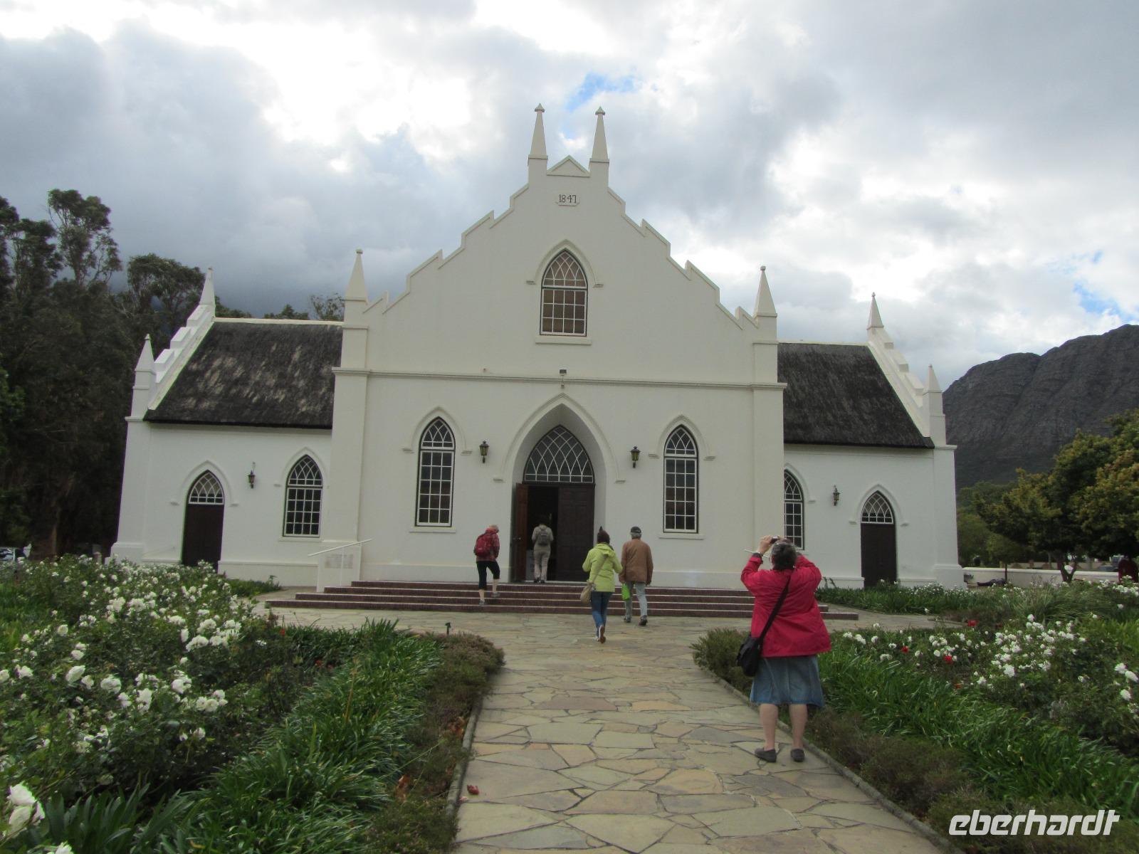 In Franschhoek angekommen, legten wir eine Pause ein um durch die Stadt zu bummeln. Kauften Karten oder besuchten einen kleinen Schokoladen-Laden. Am Hugenottendenkmal trafen wir uns schließlich wieder und setzten die Fahrt zum Weingut Blaauwklippen, mit einer kleinen Stadtrundfahrt durch die Universitätsstadt Stellenbosch fort. Am Weingut angekommen, bekamen wir fabelhaftes Essen und fünf verschiedene Weine zur Verkostung. Anschließend machten wir noch eine Kellerführung und ließen uns die Herstellung des Weines erklären.