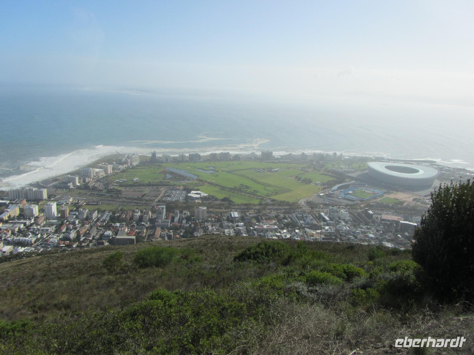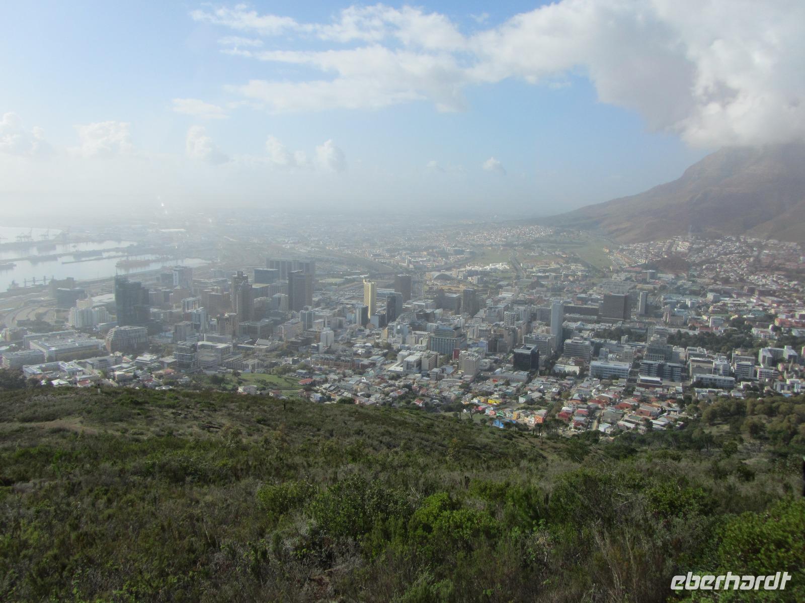 Heute stand uns viel bevor, doch ehe wir die Stadt Kapstadt verließen hofften wir auf Sonnenschein, um den Tafelberg doch noch zusehen. Und es kam wie wir wollten, die Sonne ließ sich am Himmel blicken und wir konnten noch auf den Tafelberg um uns Kapstadt zum Abschied von oben anzusehen. Während wir auf dem Weg nach oben waren, zogen schon die ersten Wolken auf und die Sicht auf die Stadt war nur noch begrenzt möglich. Also schnell wieder runter und ab zum Signal Hill, um die Stadt zusehen. Hier lachte uns dann die Sonne entgegen und wir hatten einen tollen Blick nochmal auf Kapstadt.