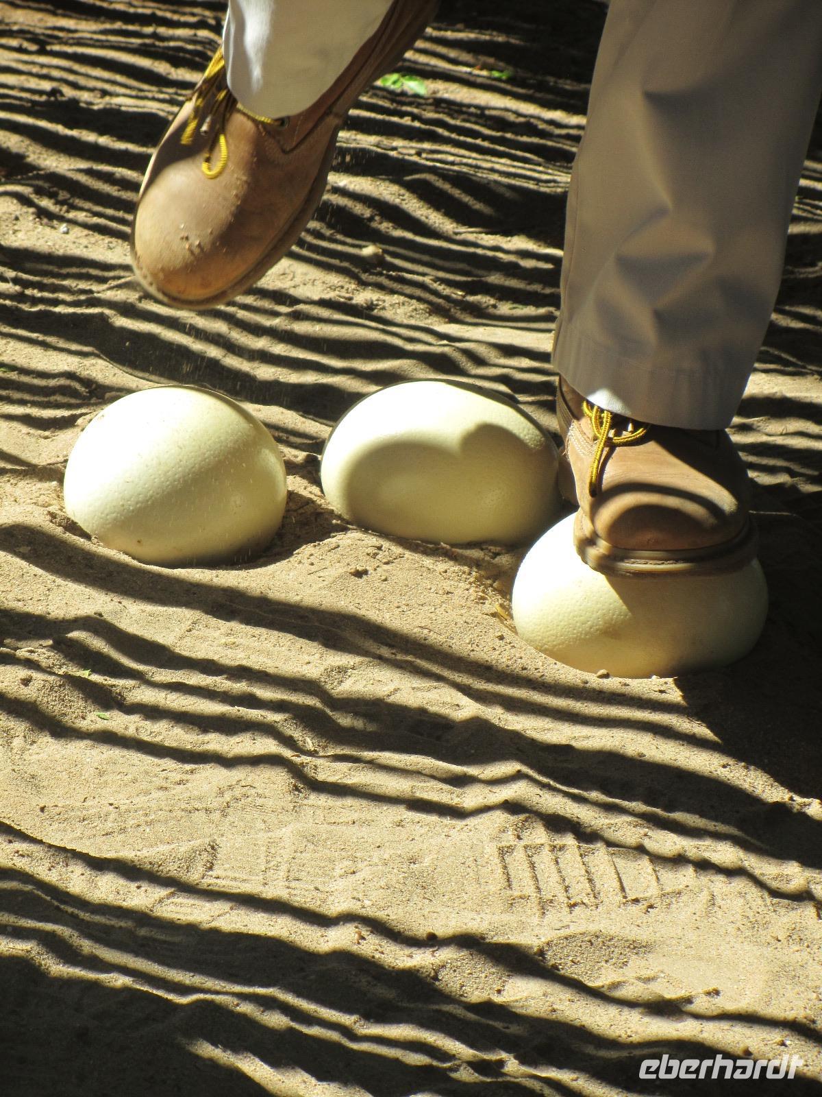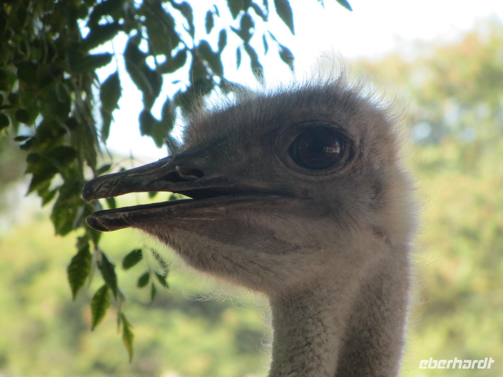 Im Anschluss ging es auf die Straußenfarm. Hier gibt es viele verschiedene Strauße, Gezähmte und Wilde, Rote und Blaue. Justin, der nette Herr von der Farm zeigte uns auch die Strauße mit einer Pigmentstörung, auf der Farm hießen die beiden liebevoll „LadyGaga" und „Michael Jackson". Wer wollte, durfte die Strauße auch noch füttern, streicheln, auf ihnen sitzen oder gar reiten.