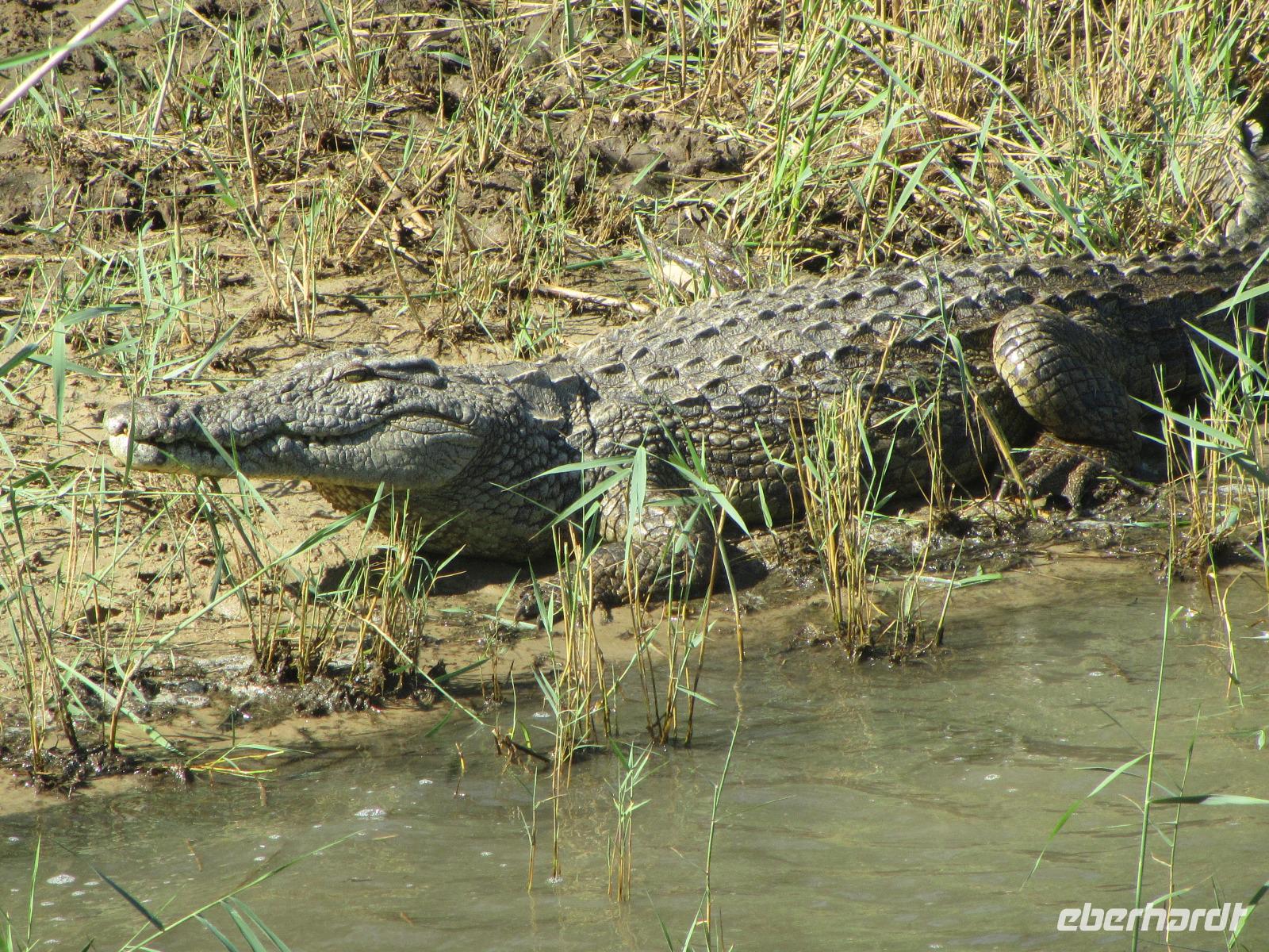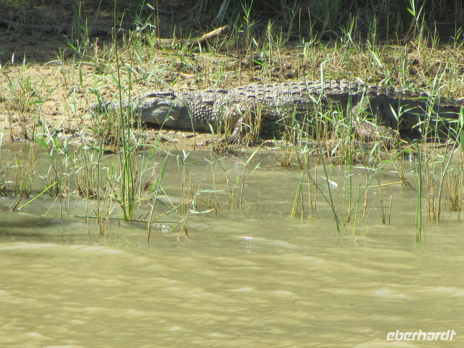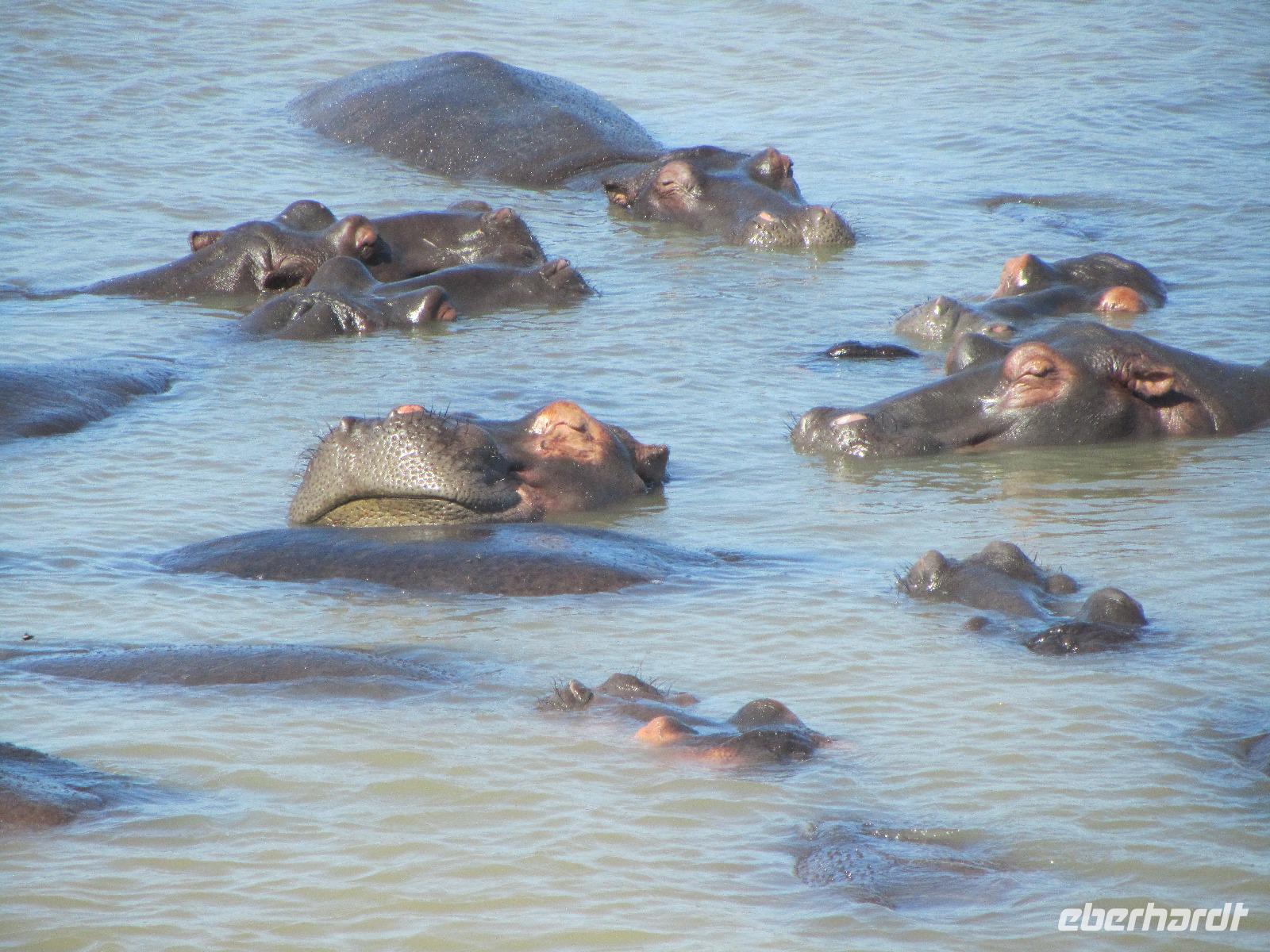 Schon beim Frühstück besuchte uns der Buschbock und eine kleine Familie Mangusten. Den Tag begannen wir auf dem St. Lucia See mit einer fast zweistündigen Bootsfahrt. Hier hatten wir das Glück immer mal wieder die Nilpferde zusehen. Wer ein Foto erhaschen wollte, musste teilweise schnell sein, denn nur kurz lassen sich die Hippos blicken und auch dann nur mit Kopf und Rücken. Außerdem lagen noch am Ufer ein paar faule Krokodile, die sich die Sonne, welche heute endlich mal wieder schön schien, auf den Rücken brennen.