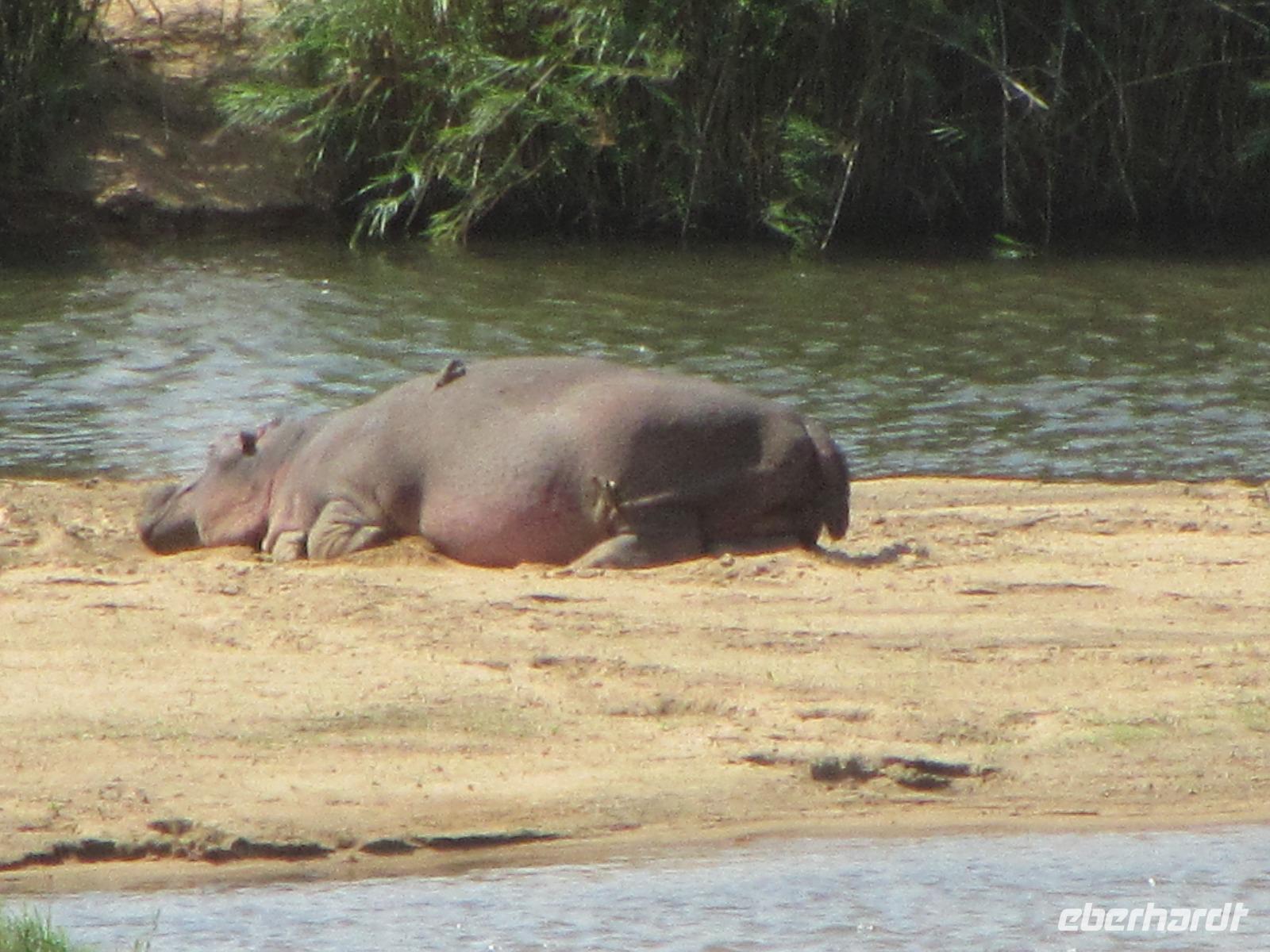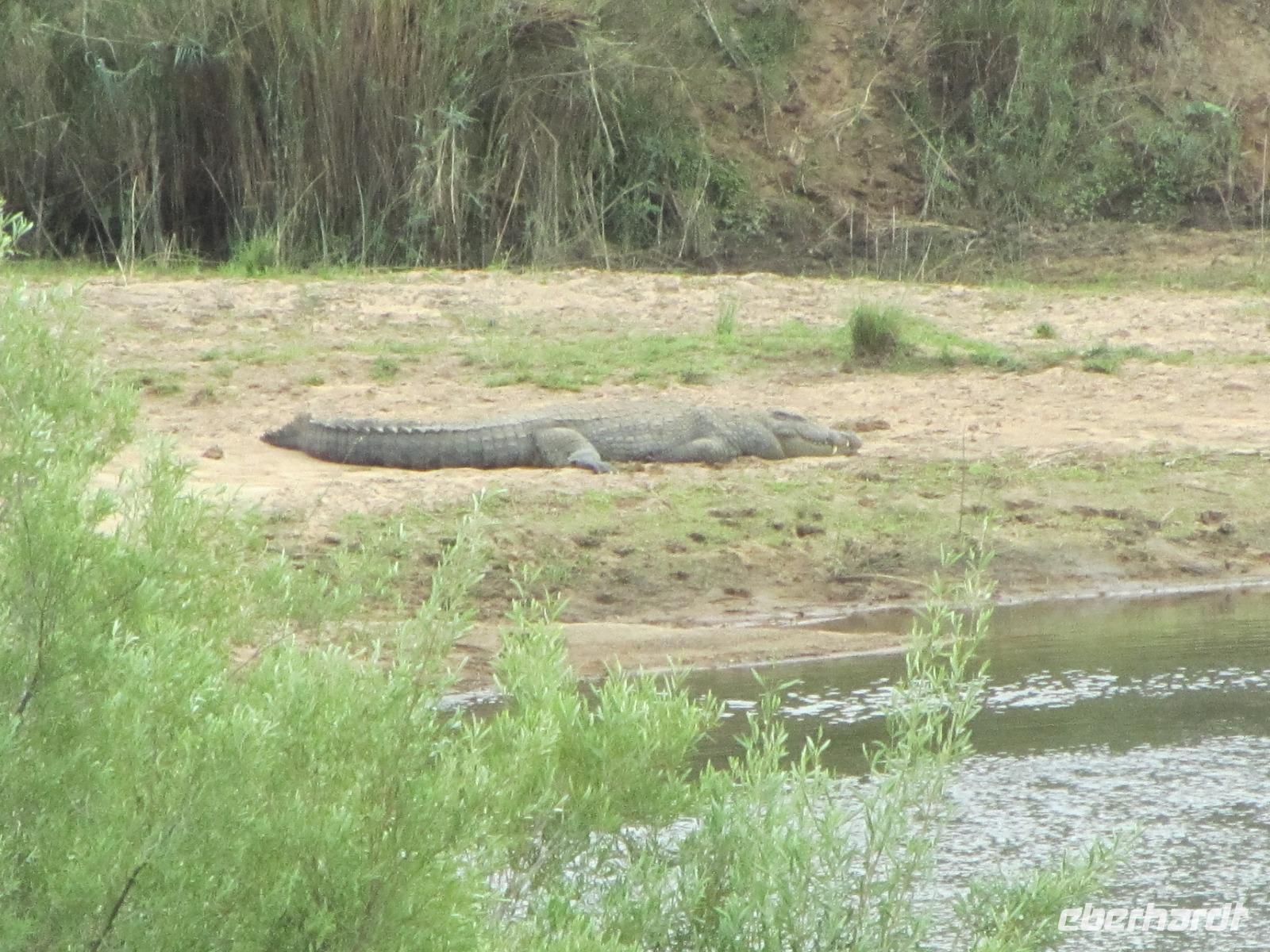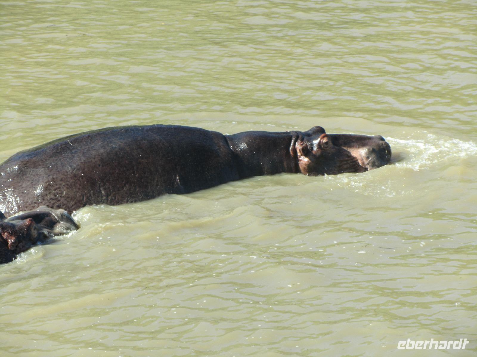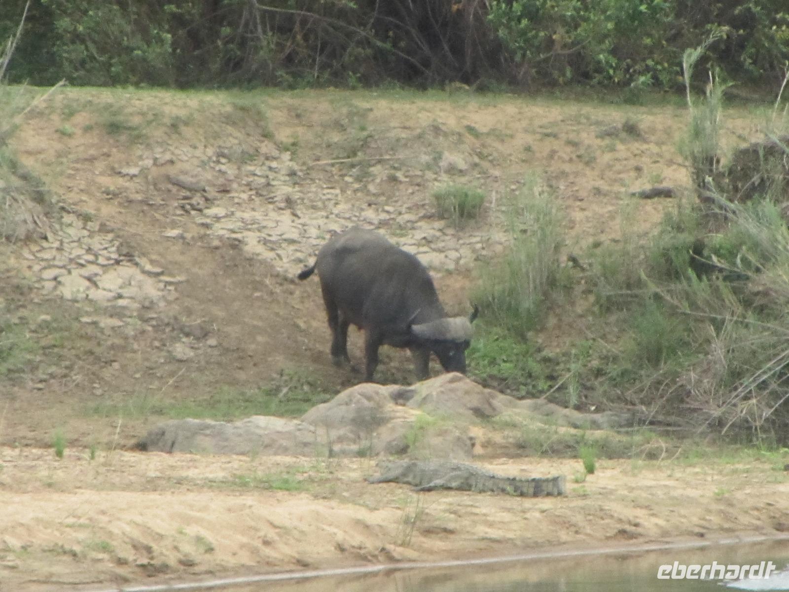 Schon beim Frühstück besuchte uns der Buschbock und eine kleine Familie Mangusten. Den Tag begannen wir auf dem St. Lucia See mit einer fast zweistündigen Bootsfahrt. Hier hatten wir das Glück immer mal wieder die Nilpferde zusehen. Wer ein Foto erhaschen wollte, musste teilweise schnell sein, denn nur kurz lassen sich die Hippos blicken und auch dann nur mit Kopf und Rücken. Außerdem lagen noch am Ufer ein paar faule Krokodile, die sich die Sonne, welche heute endlich mal wieder schön schien, auf den Rücken brennen.