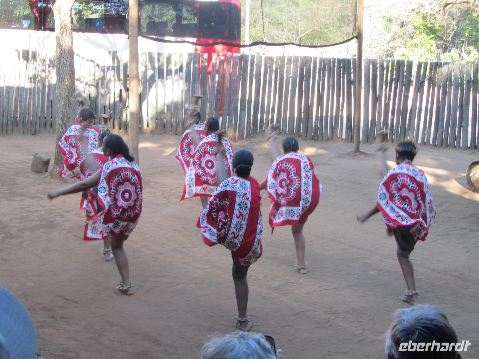 Weiter ging es schließlich in das Mantenga Village, einem Swazi-Dorf. Ein Einheimischer erklärte uns die Sitten und Bräuche, zum Beispiel, dass Männer hier 2 Frauen haben konnten und die Kinder ab dem 6. Lebensjahr nicht mehr bei den Eltern schlafen würden, sondern mit den anderen Mädchen aus dem Dorf in einer eigenen Hütte. Ehe wir das Dorf in Richtung Hotel verließen, bekamen wir noch einen Einblick in die Tänze und den Gesang. Es war faszinierend und anderes hingegen erklärte sich uns nicht in vollem Umfang.