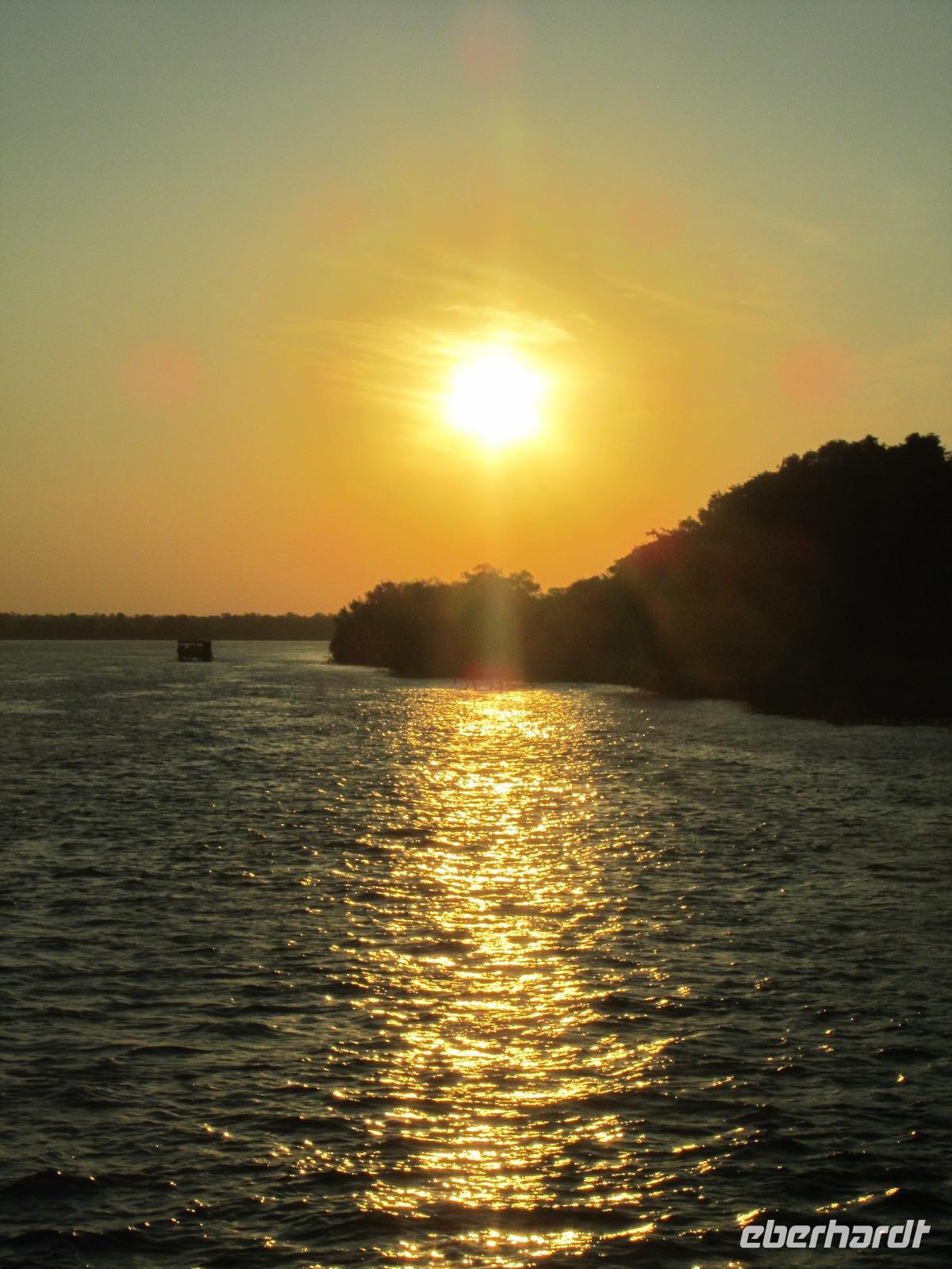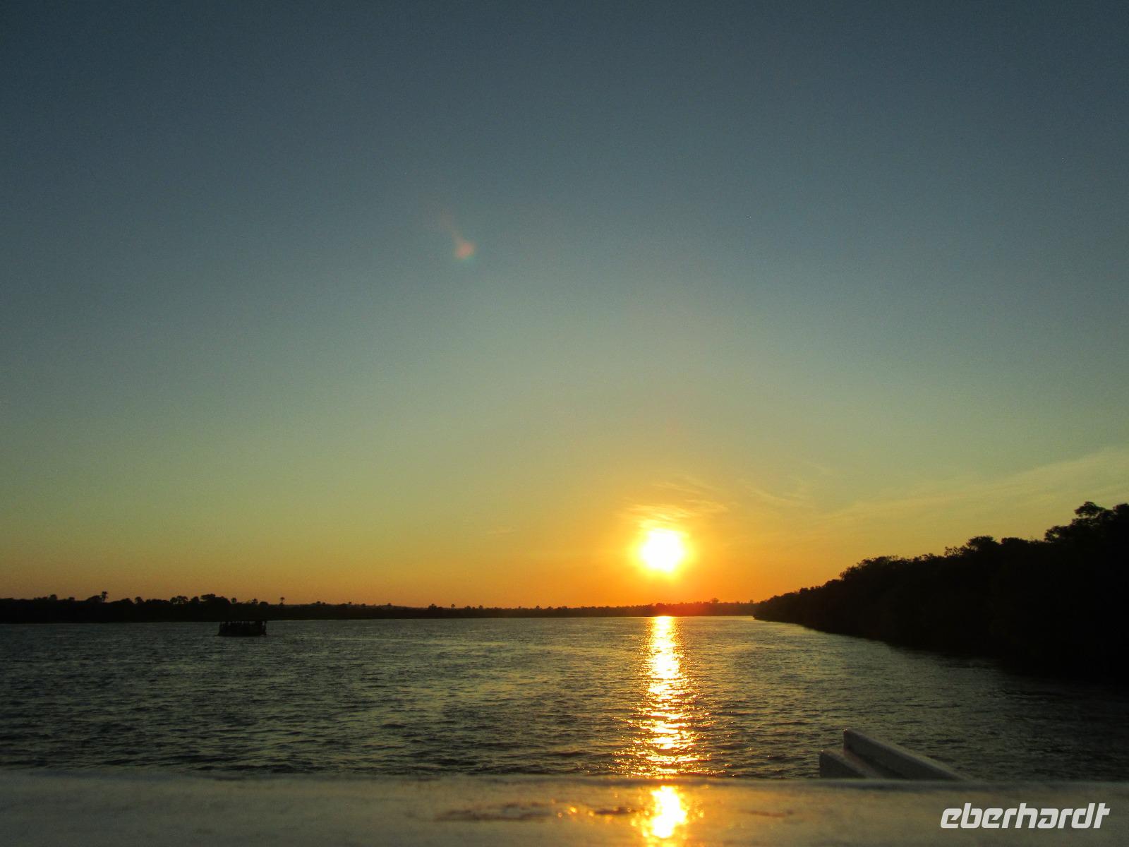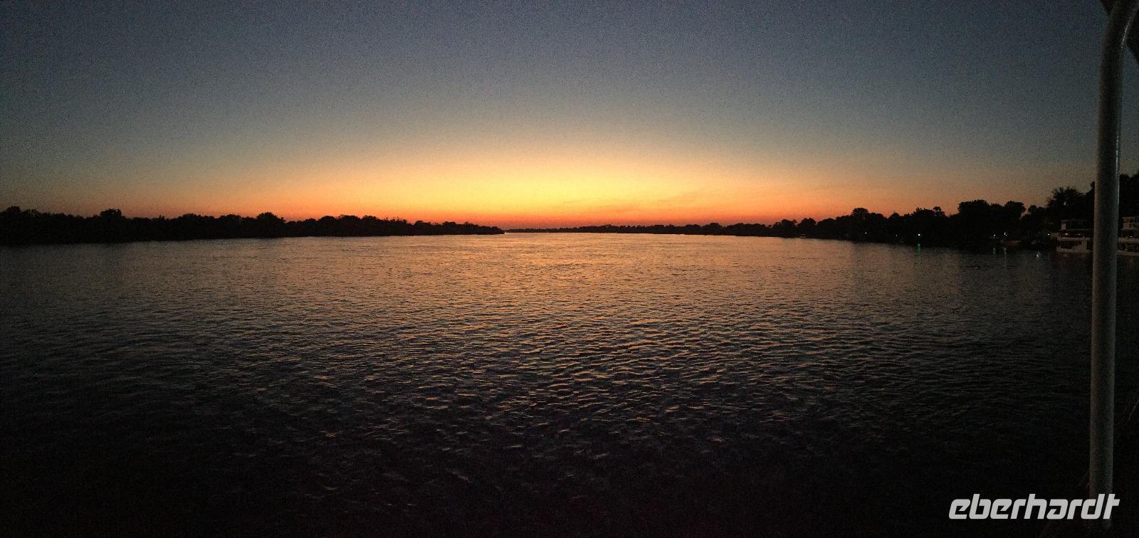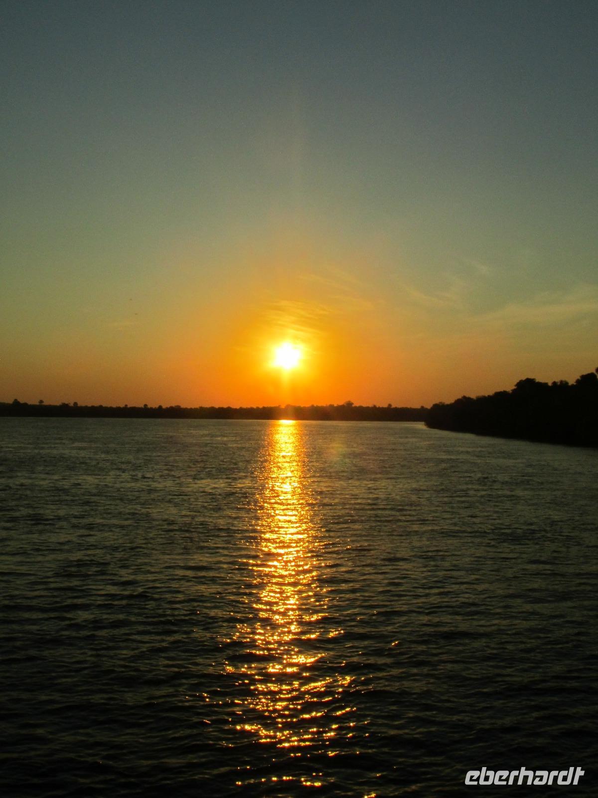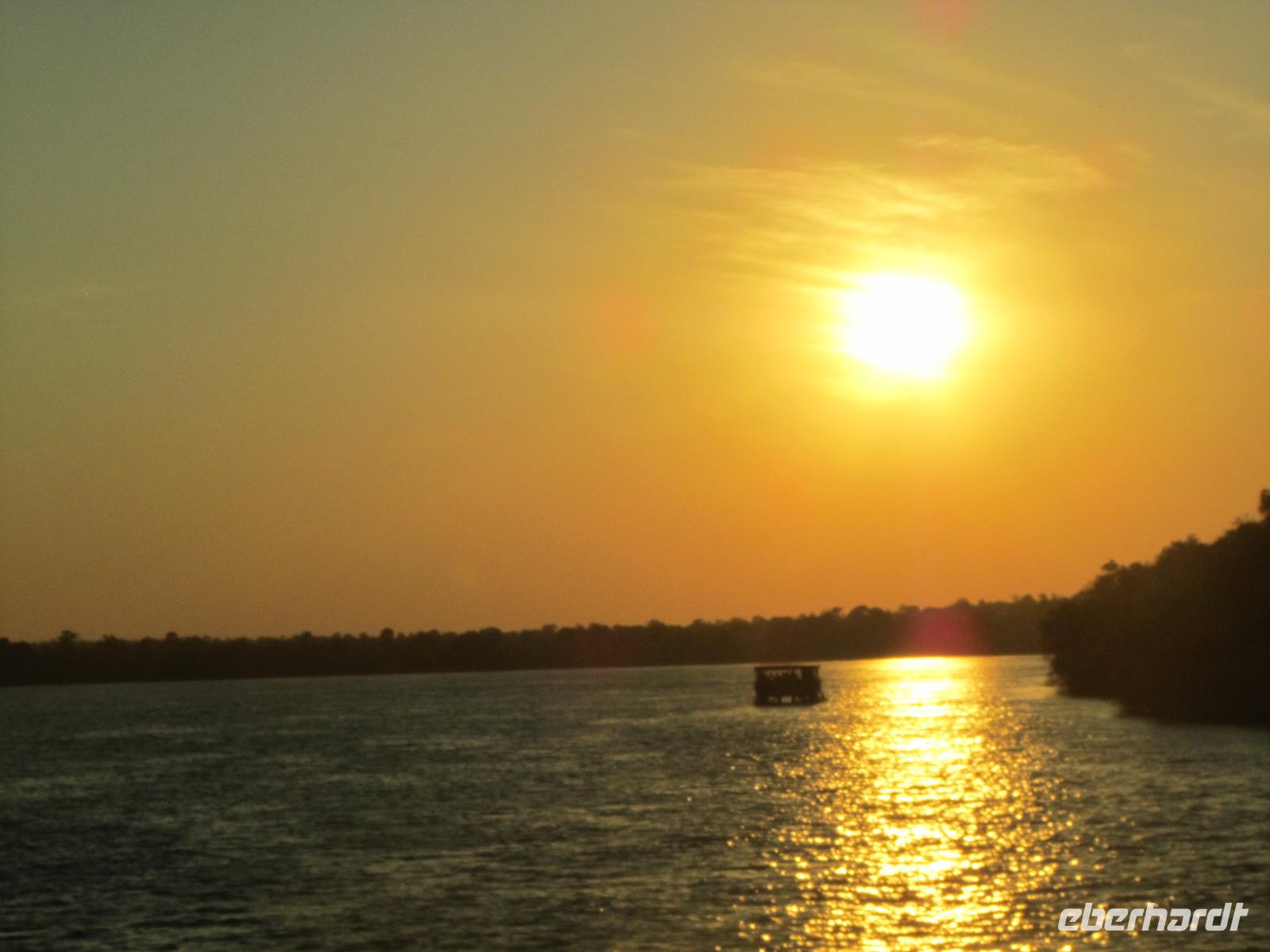 Am Abend gab es dann den zubuchbaren Ausflug die Sundowner Cruise. Es war einfach toll, pünktlich wurden wir am Hotel abgeholt und zu unserem Schiff gebracht, welches auch gleich startete. Wir fuhren ganz langsam flussaufwärts immer Richtung Sonne und konnten die letzten Stunden noch einmal so richtig genießen. Gegen 17.30 Uhr war es dann endlich soweit und die Sonne verabschiedete sich langsam. Es war ein toller Sonnenuntergang, welchen wir hier geboten bekamen.