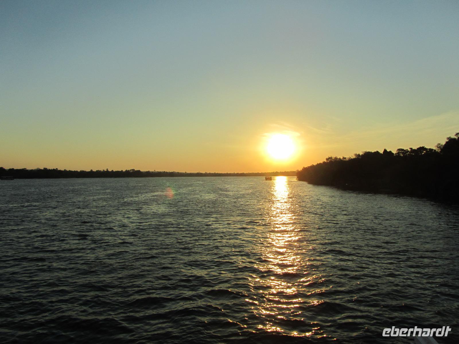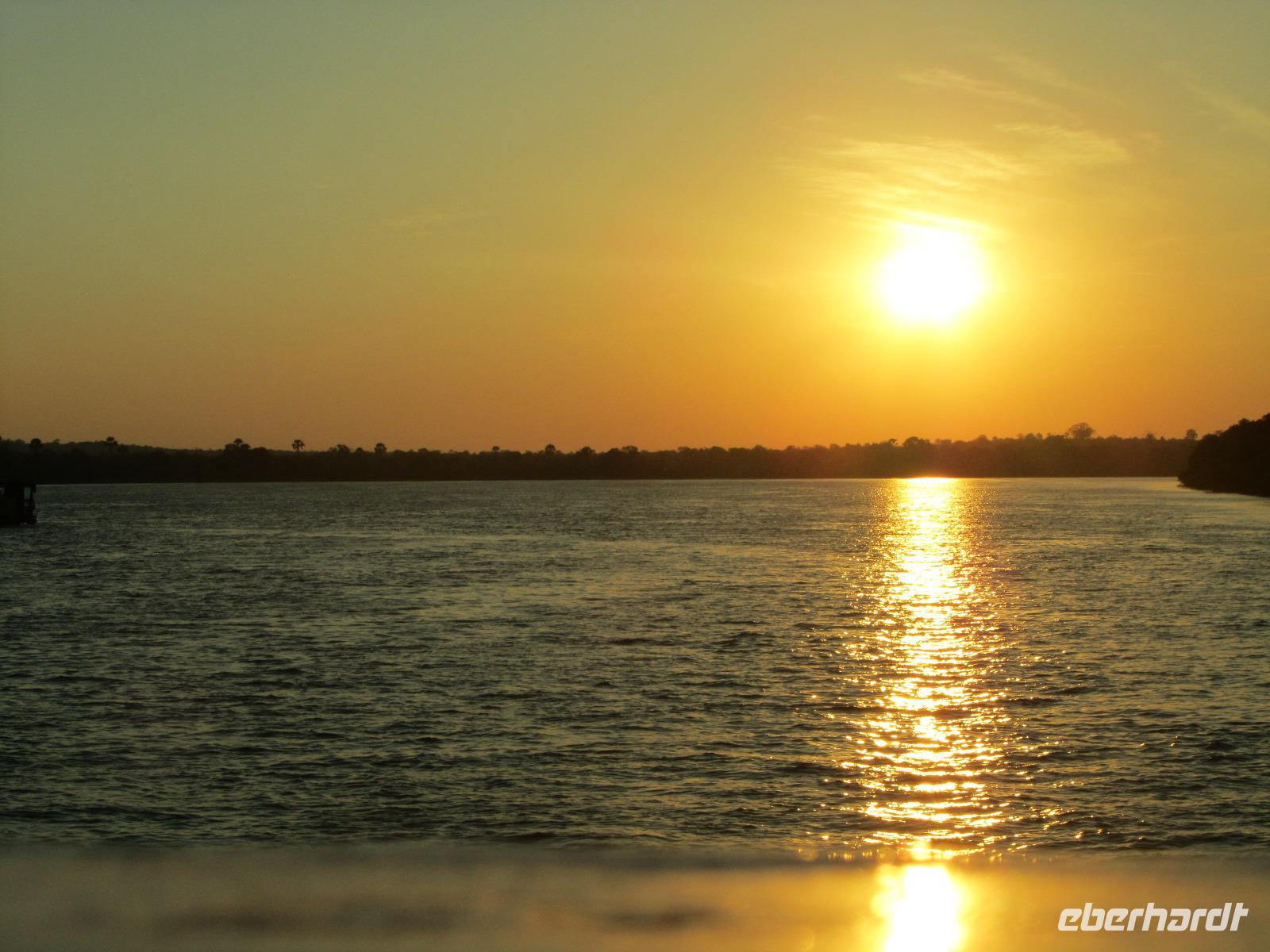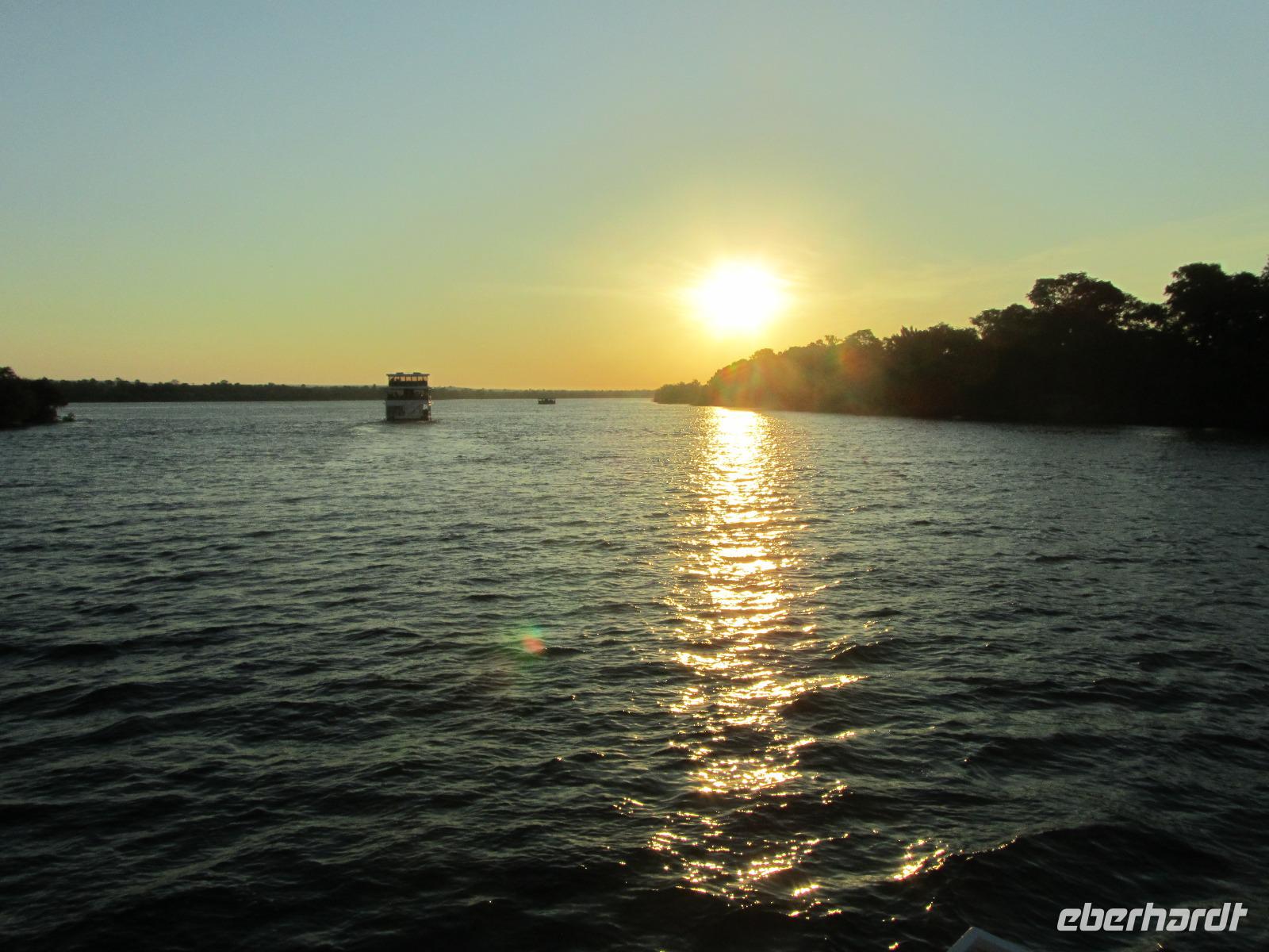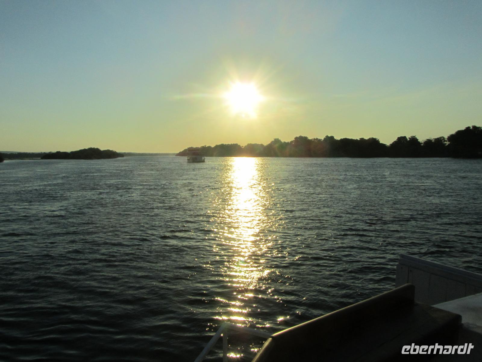 Am Abend gab es dann den zubuchbaren Ausflug die Sundowner Cruise. Es war einfach toll, pünktlich wurden wir am Hotel abgeholt und zu unserem Schiff gebracht, welches auch gleich startete. Wir fuhren ganz langsam flussaufwärts immer Richtung Sonne und konnten die letzten Stunden noch einmal so richtig genießen. Gegen 17.30 Uhr war es dann endlich soweit und die Sonne verabschiedete sich langsam. Es war ein toller Sonnenuntergang, welchen wir hier geboten bekamen.