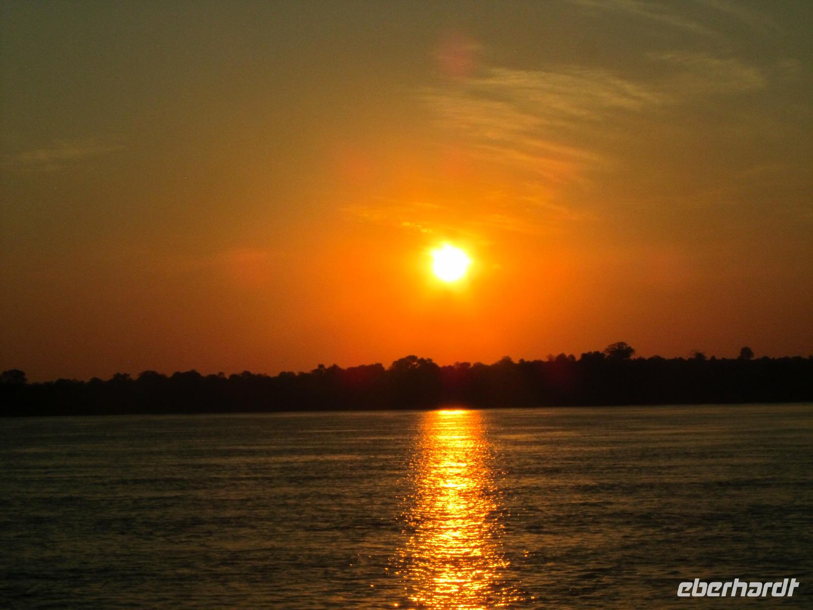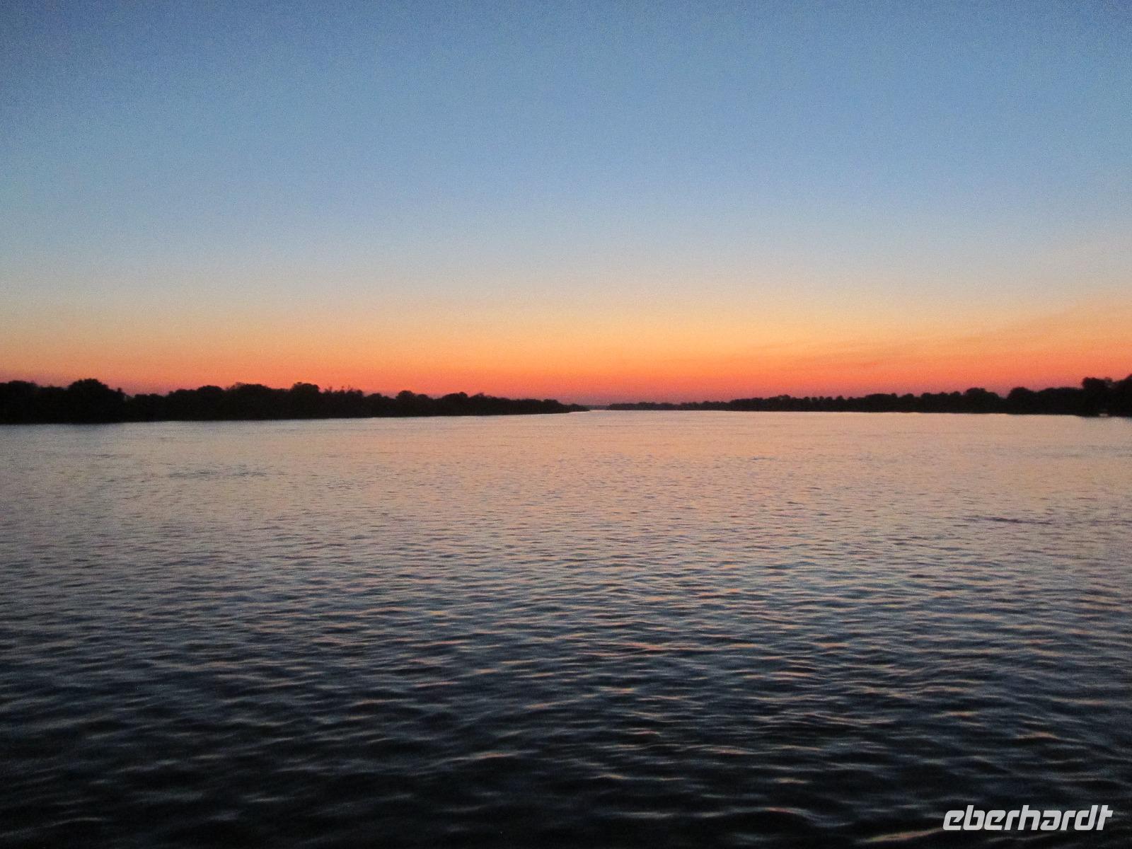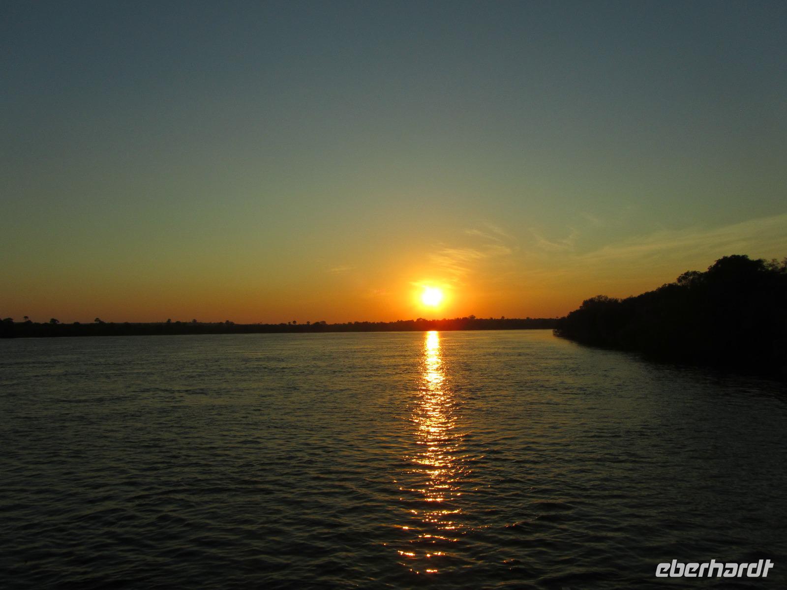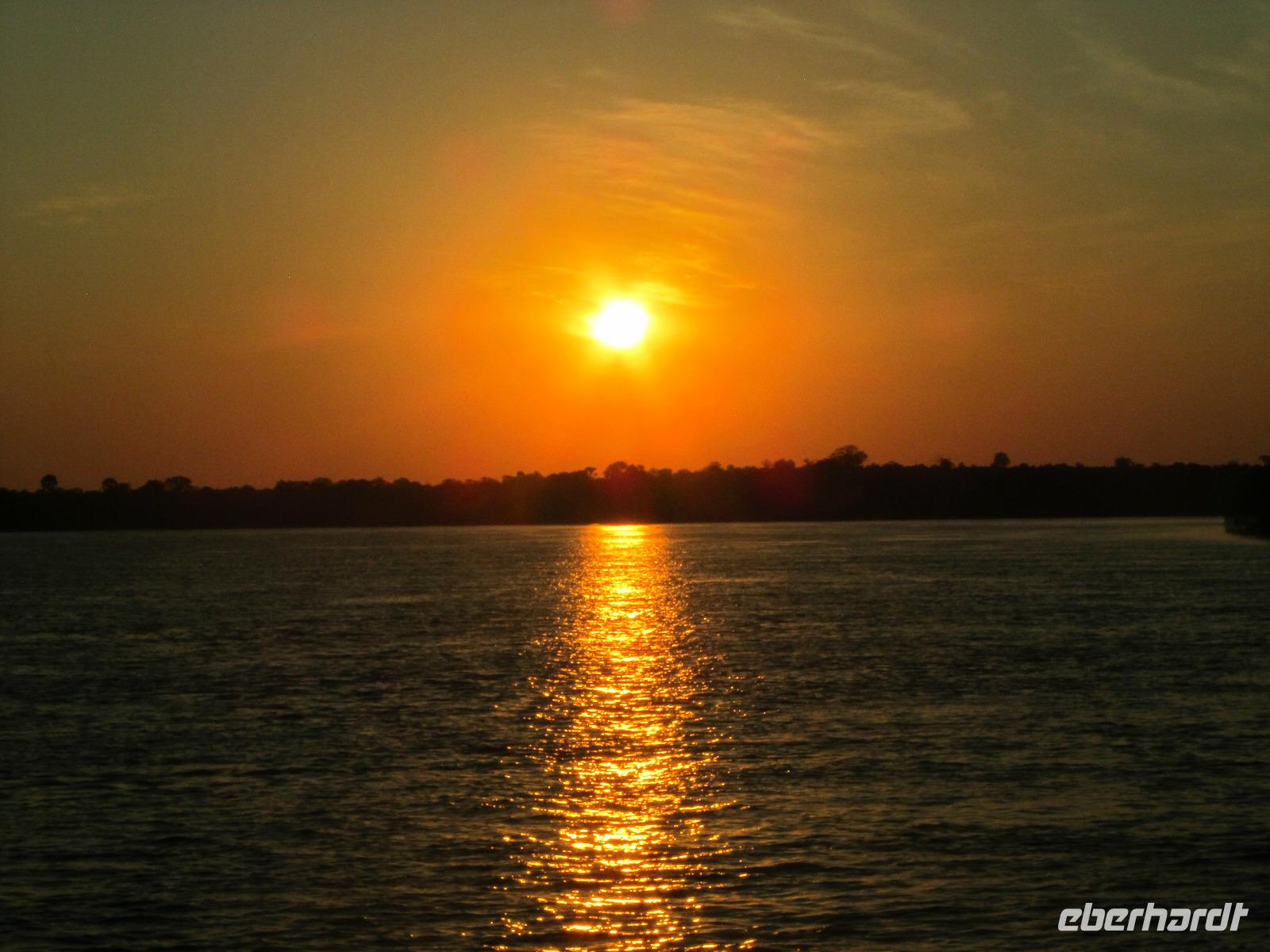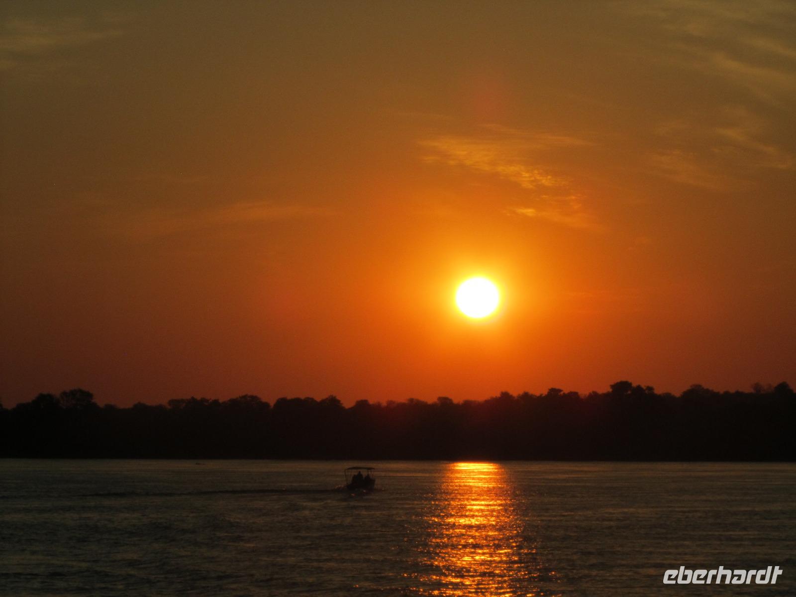 Am Abend gab es dann den zubuchbaren Ausflug die Sundowner Cruise. Es war einfach toll, pünktlich wurden wir am Hotel abgeholt und zu unserem Schiff gebracht, welches auch gleich startete. Wir fuhren ganz langsam flussaufwärts immer Richtung Sonne und konnten die letzten Stunden noch einmal so richtig genießen. Gegen 17.30 Uhr war es dann endlich soweit und die Sonne verabschiedete sich langsam. Es war ein toller Sonnenuntergang, welchen wir hier geboten bekamen.