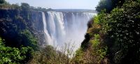 Heute heißt es nochmals, Simbabwe mit den Victoria Wasserfällen kennenlernen und in vollen Zügen genießen. So starten wir nach einem reichhaltigen Frühstücksbuffet am frühen Morgen mit Fahrer Shalton zu den Wasserfällen. Am frühen Morgen sind die Temperaturen noch angenehm, womit wir die herrliche Natur, die uns umgibt, in vollen Zügen genießen können. Von Shalton, der hier auch unser Guide ist, erfahren wir, dass die Vic Falls, wie sie auch umgangssprachlich genannt werden, 1700 m lang und an der höchsten Stelle über 100 m in die Tiefe fließen. 1854 wurden diese von David Livingstone als europäischem Entdecker vorgefunden und er benannte sie nach der damaligen Königin Victoria. Wenige Jahre erlag er einer Malariainfektion, wurde in sein Heimatland überführt, jedoch sein Herz in Afrika begraben. Nun heißt es für uns-auf die Fälle erkunden. An insgesamt sechzehn Aussichtspunkten hat man verschiedene Perspektiven auf die Wassermassen und man wird durch die aufsteigende Gischt mal mehr, mal weniger befeuchtet. Einfach nur herrlich, die kleine Abkühlung zwischendurch-im nächsten Moment ist man sofort wieder trocken. Wir blicken außerdem auf den sogenannten Devils Pool, in dem besonders Waghalsige ein kühles Bad mit Blick auf den Abgrund nehmen. Ein Abenteuer der eher fraglichen Art! Am Ende unseres Weges entlang der Fälle sehen wir die Brücke, die zum Nachbarland Sambia führt. Von dort aus geht es wieder gemütlich zurück und so hatten wir alle ausreichend Muße, dieses beeindruckende Naturphänomen zu erleben. Zurück in der Lodge, werden wir indessen für die gebuchten Helikopterflüge abgeholt. Nach einer kurzen Einweisung und Wiegen aller Fluggäste erfolgt die Platzierung und der sogenannte 12/13 minütige Rundflug „Flight of Angels“. Alles bestens organisiert und zurück kommen strahlende Gesichter und man ist sich einig-es war ein einmaliges und unvergessliches Abschlusserlebnis. Von der Luft aus lassen sich die gesamten Dimensionen so richtig begreifen, nicht nur die Wasserfälle, auch der riesige Zambezi Fluss kommt bestens zur Geltung. Als weiteres Highlight werden noch Elefanten in der Savanne gesichtet-was will man mehr!!!! Zurück in der Lodge heißt es, ein kühles Getränk genießen und bald darauf geht es mit Fahrer Shalton zum Flughafen, den wir nach zwanzig Minuten erreicht haben.